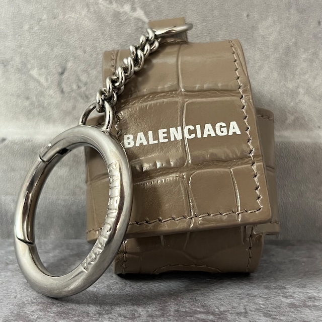 【BALENCIAGA】AirPodsケース グレージュ キーホルダータイプ スナップボタン レザー