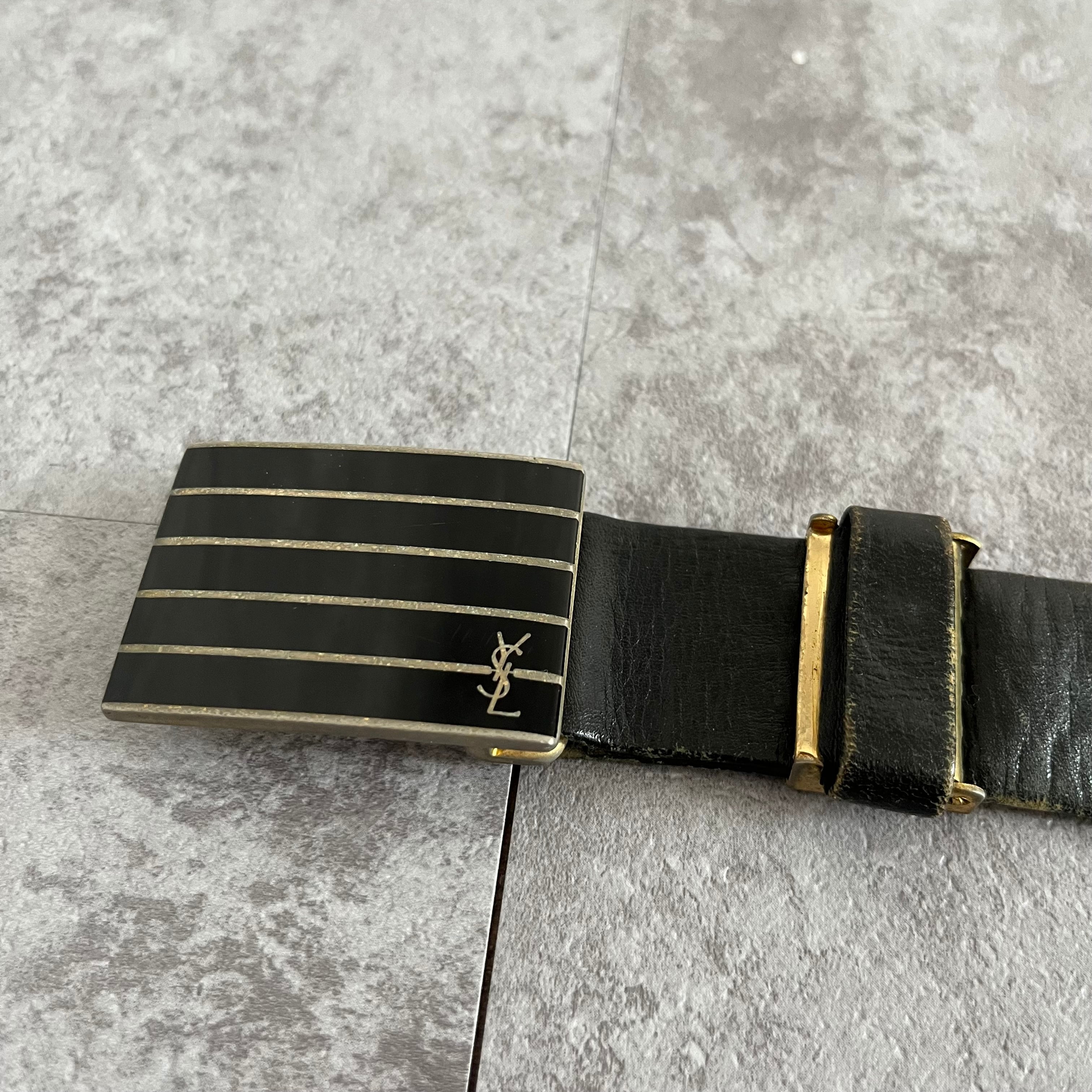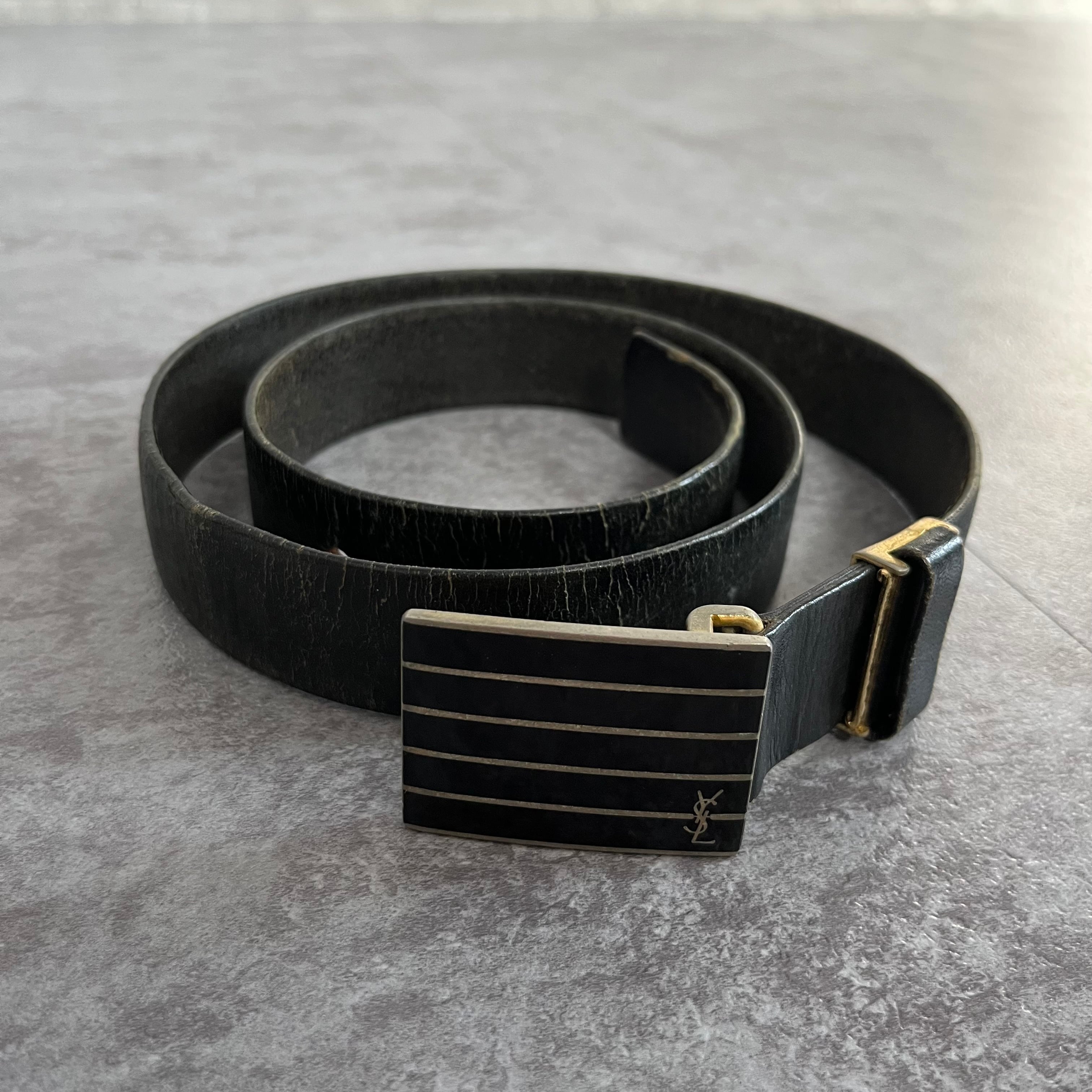 【Yves Saint Laurent】ベルト レザー ブラック 黒 ロゴ入り YSL