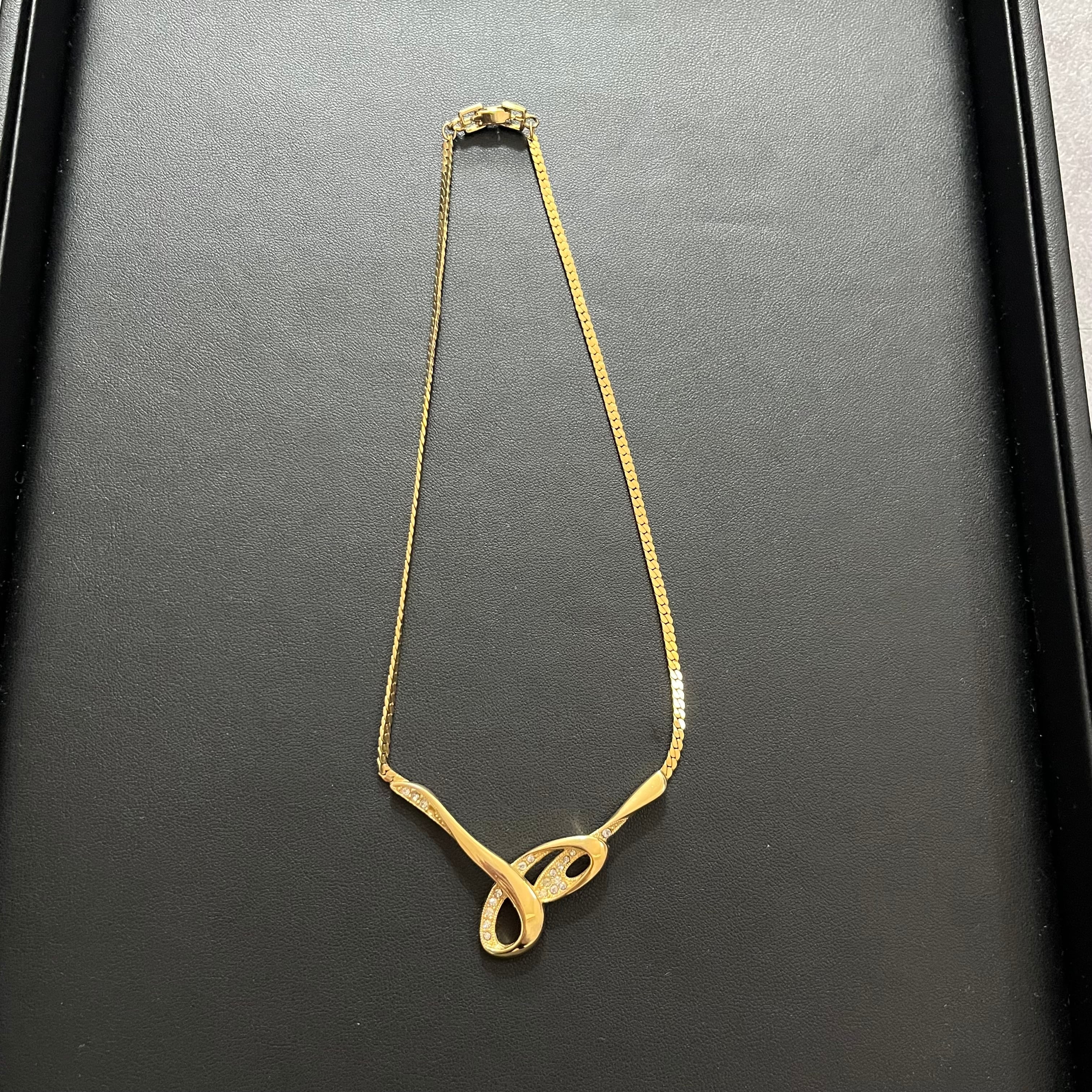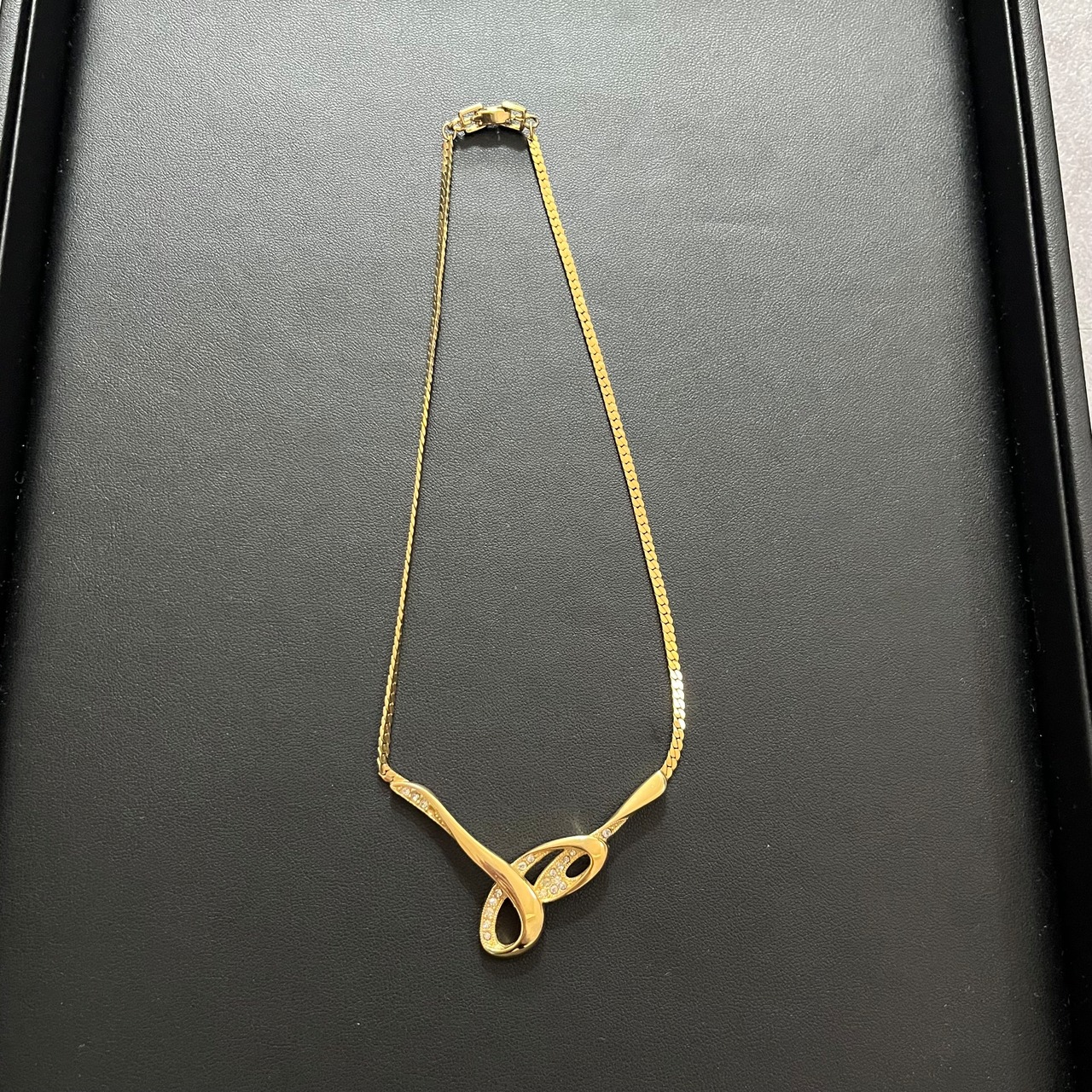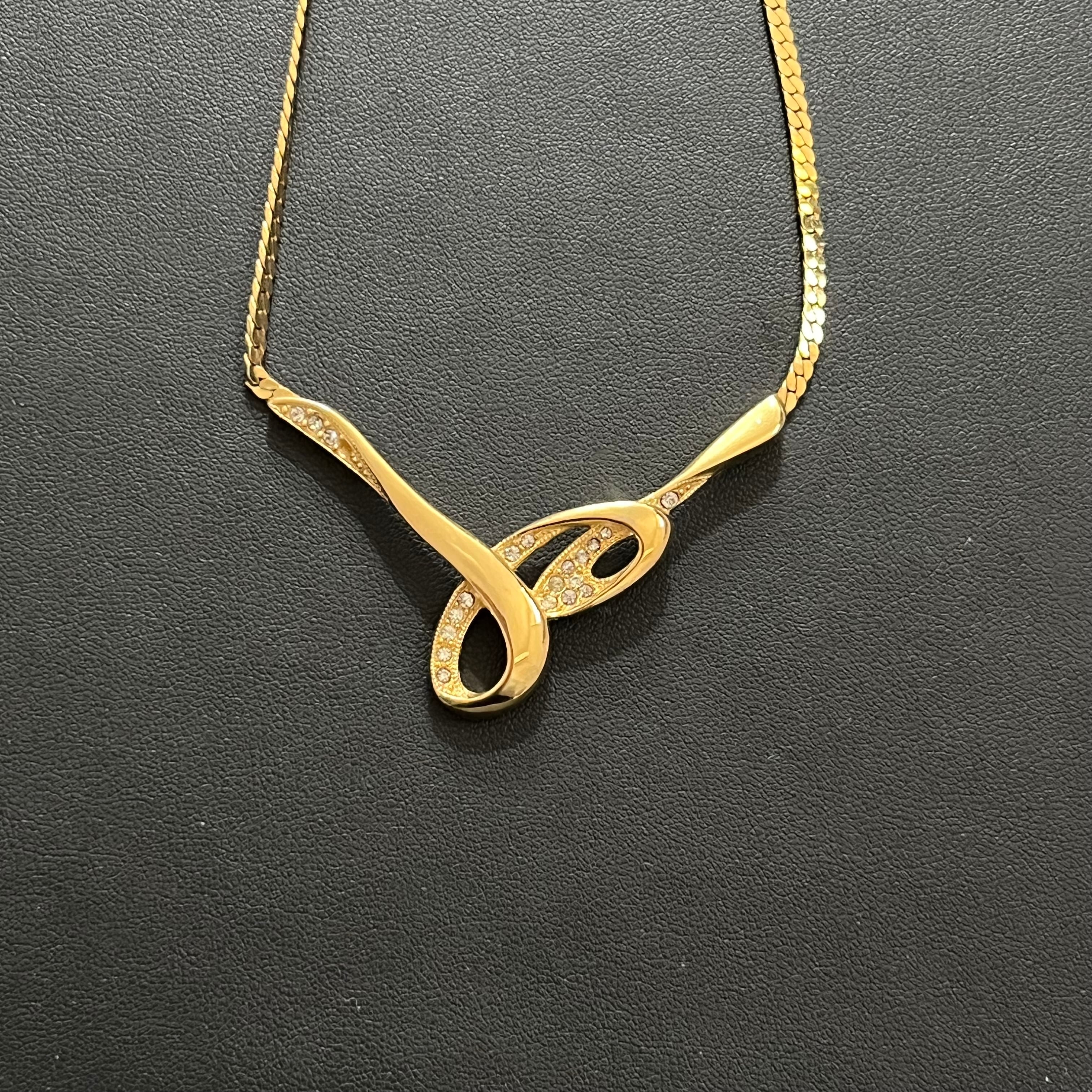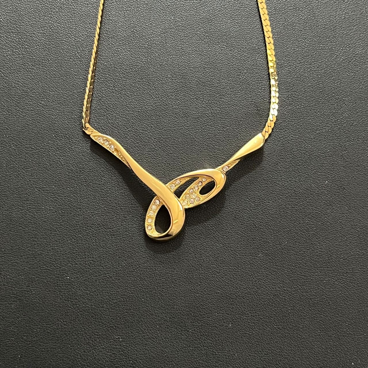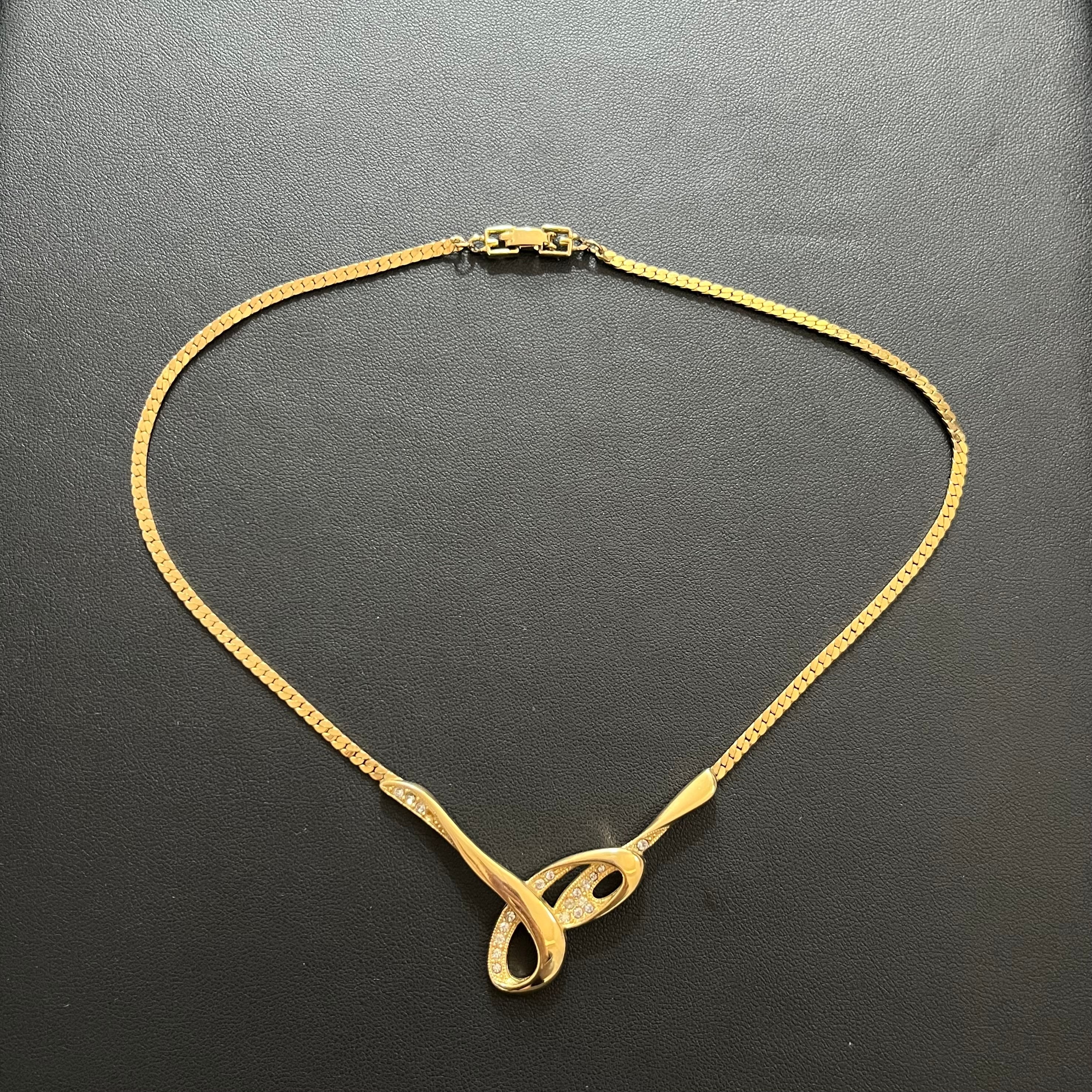 【GIVENCHY】リボンモチーフネックレス ゴールド ストーン付き ラインストーン