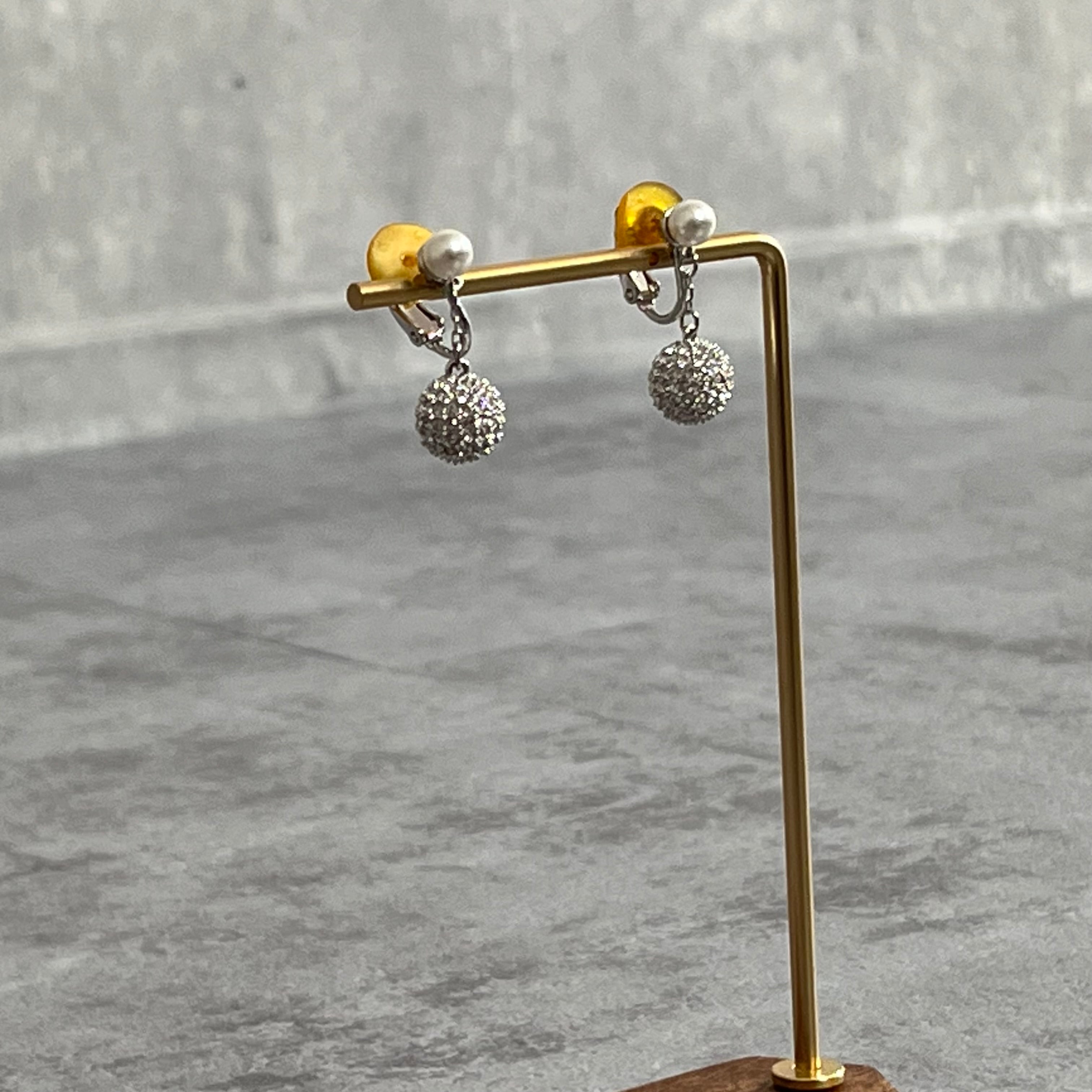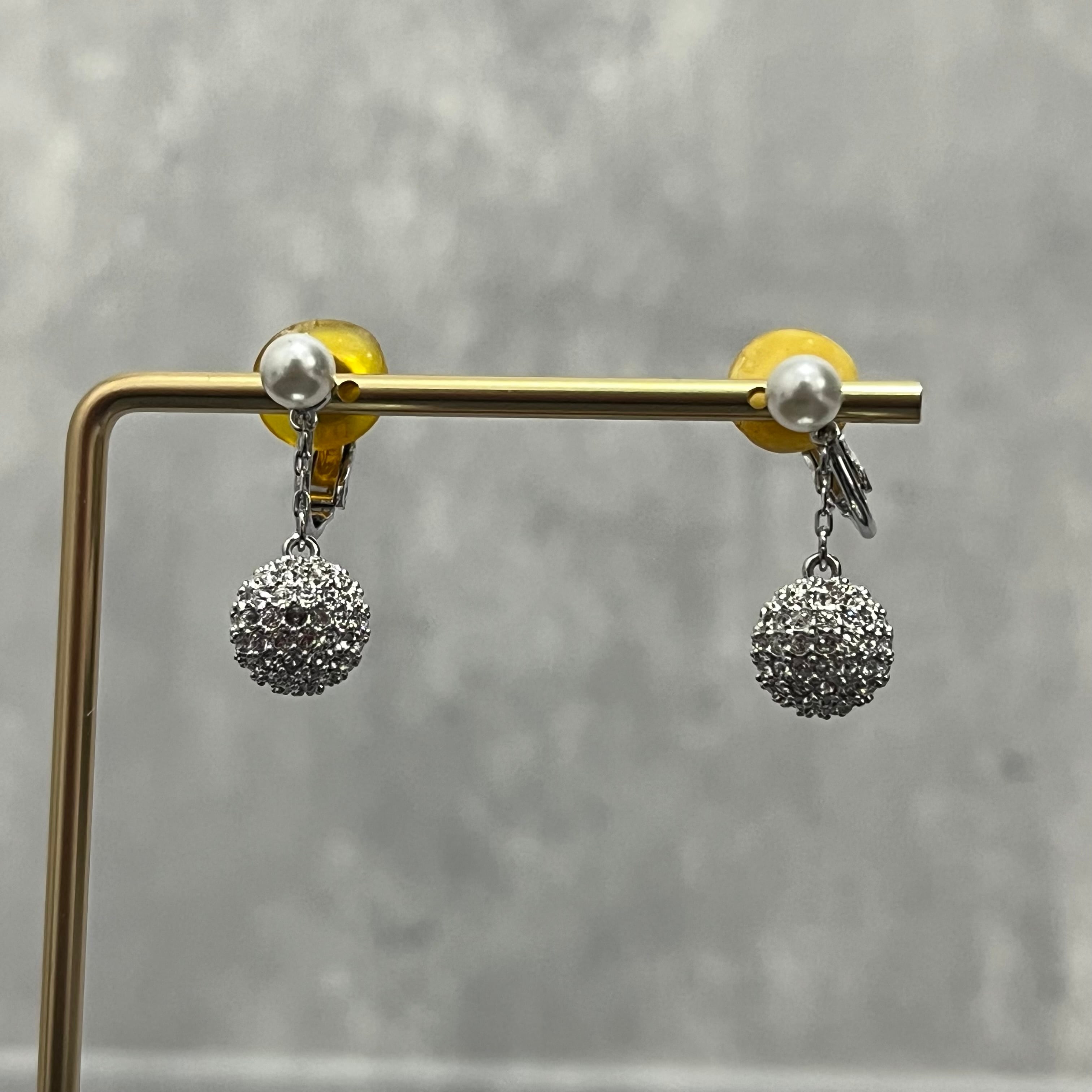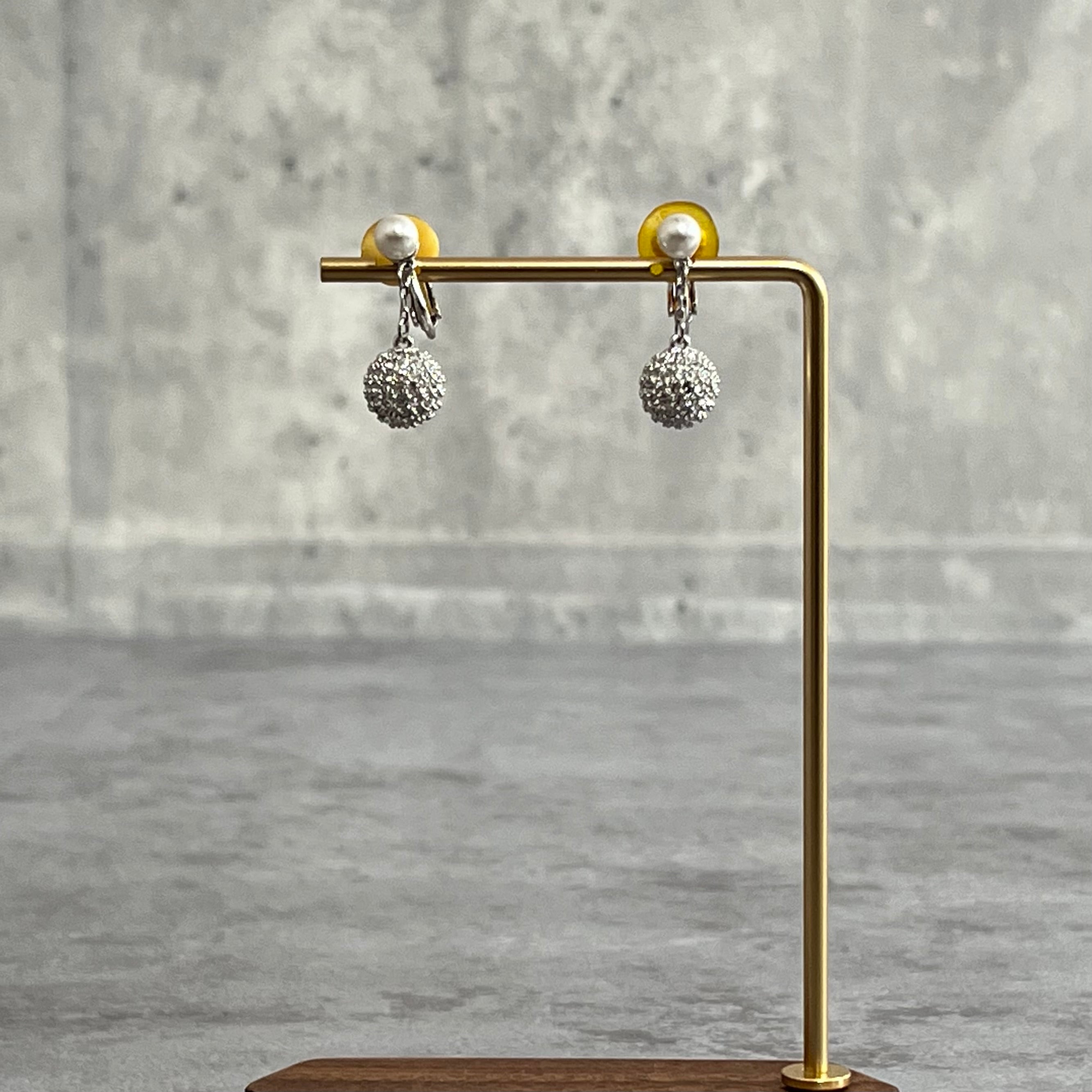 【Swarovski】ラインストーンパールイヤリング シルバー