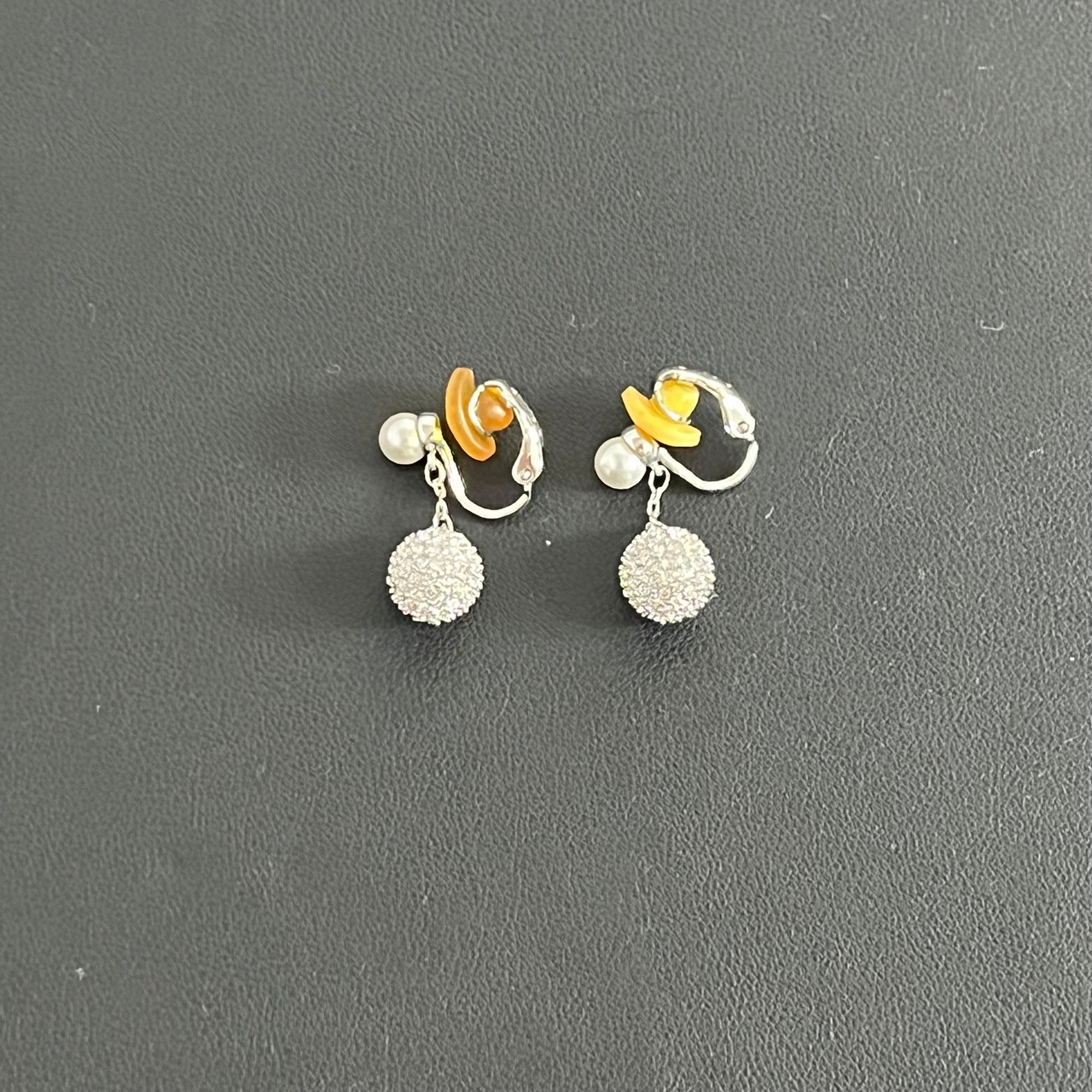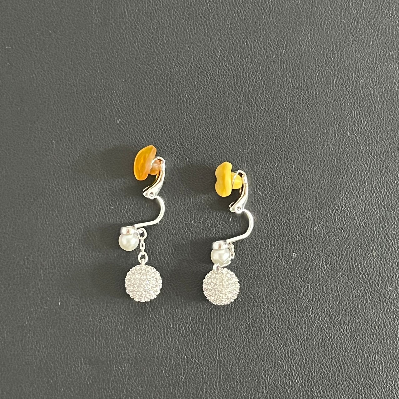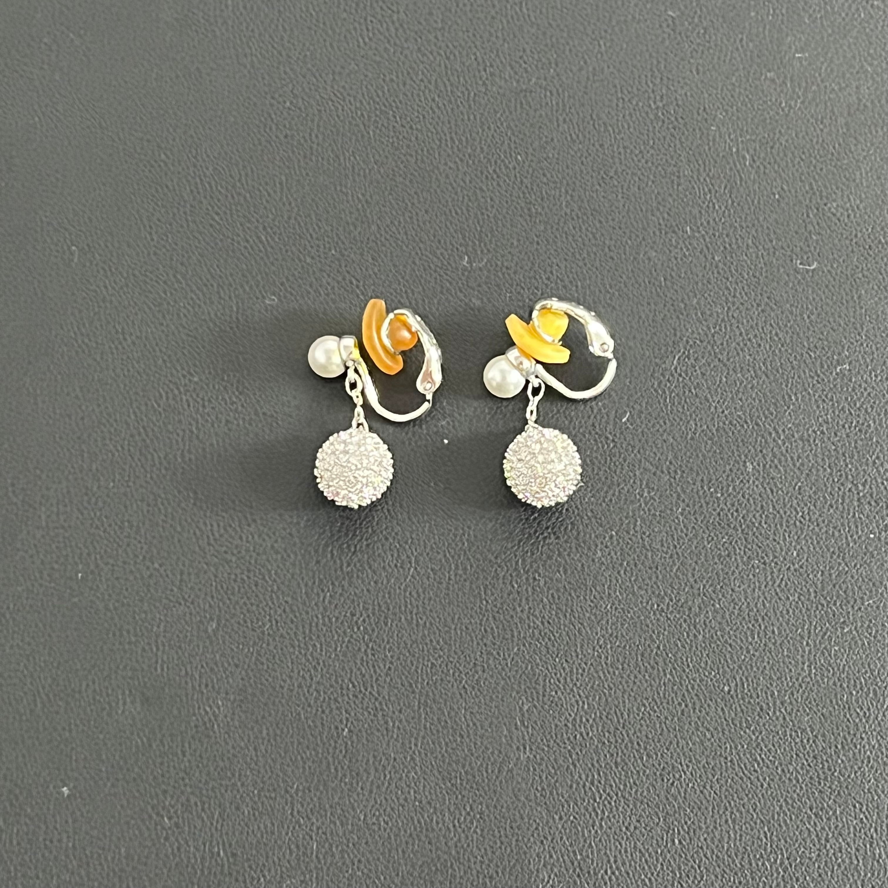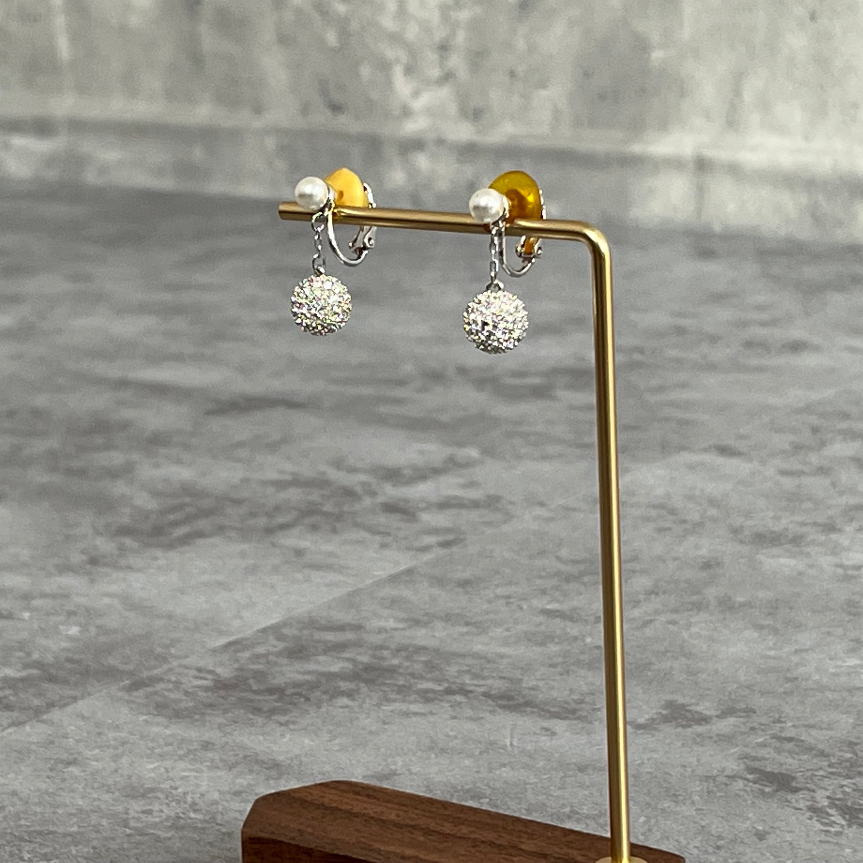 【Swarovski】ラインストーンパールイヤリング シルバー