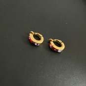 【GIVENCHY】レッドカラーストーンイヤリング ゴールド