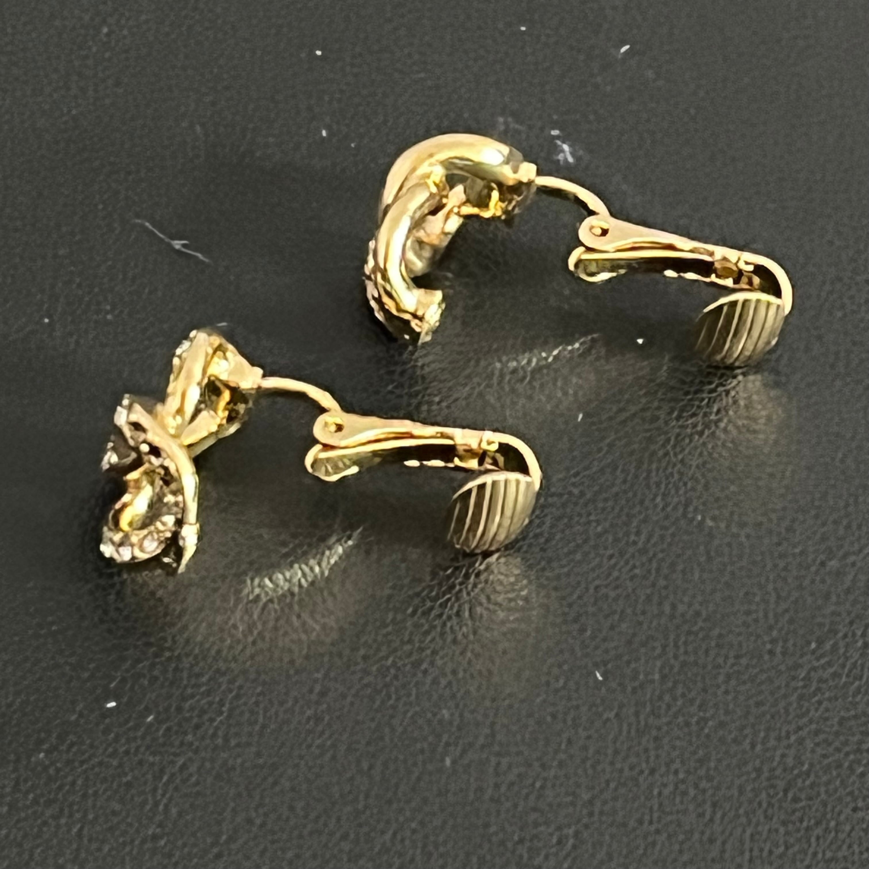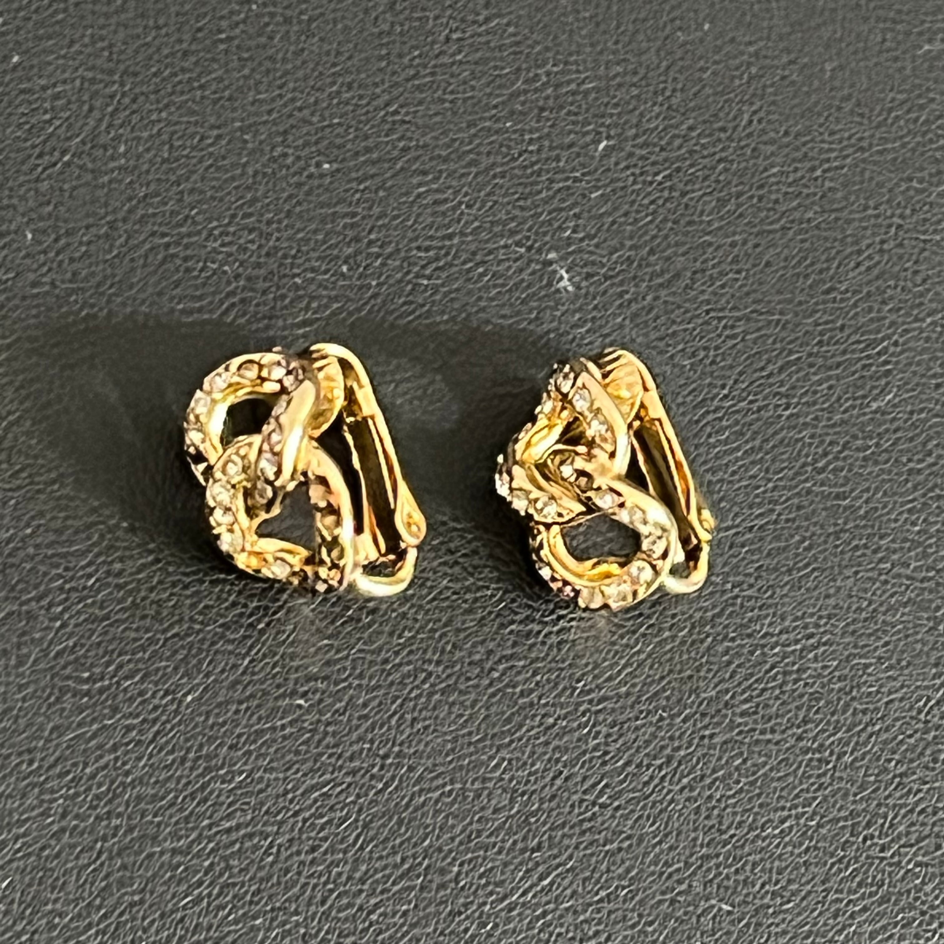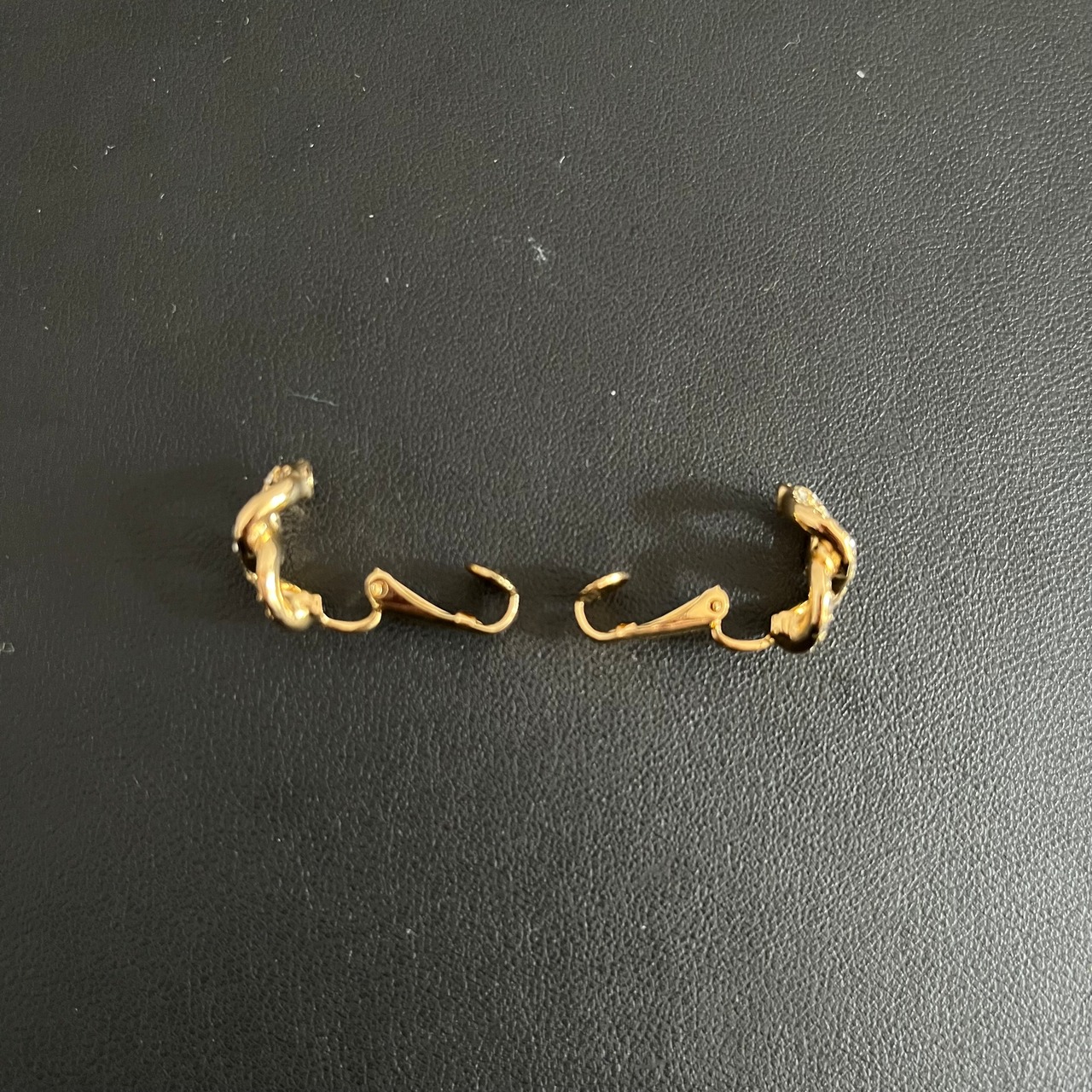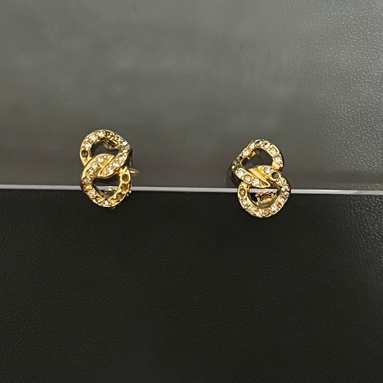 【Christian Dior】2連リングイヤリング ラインストーン ゴールド