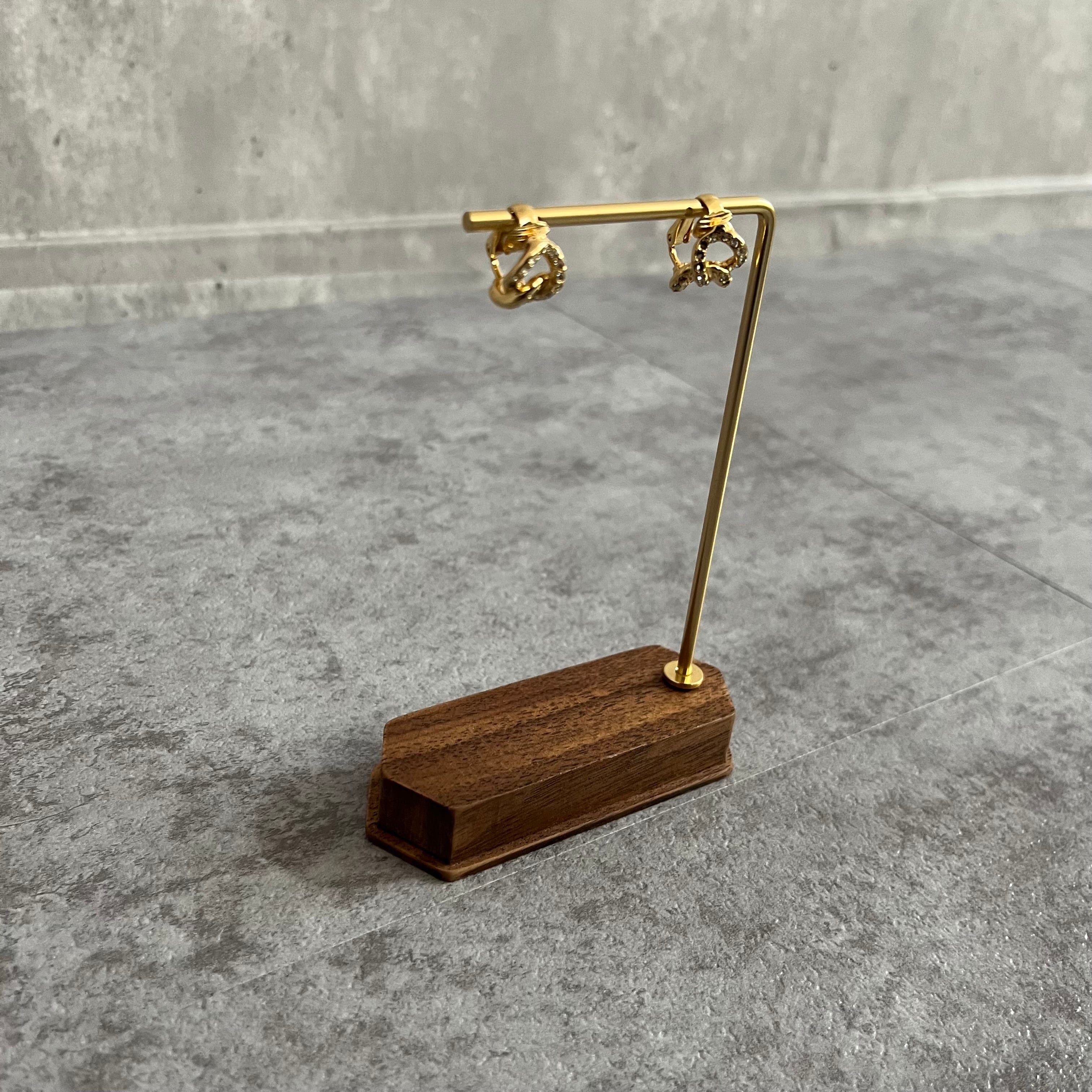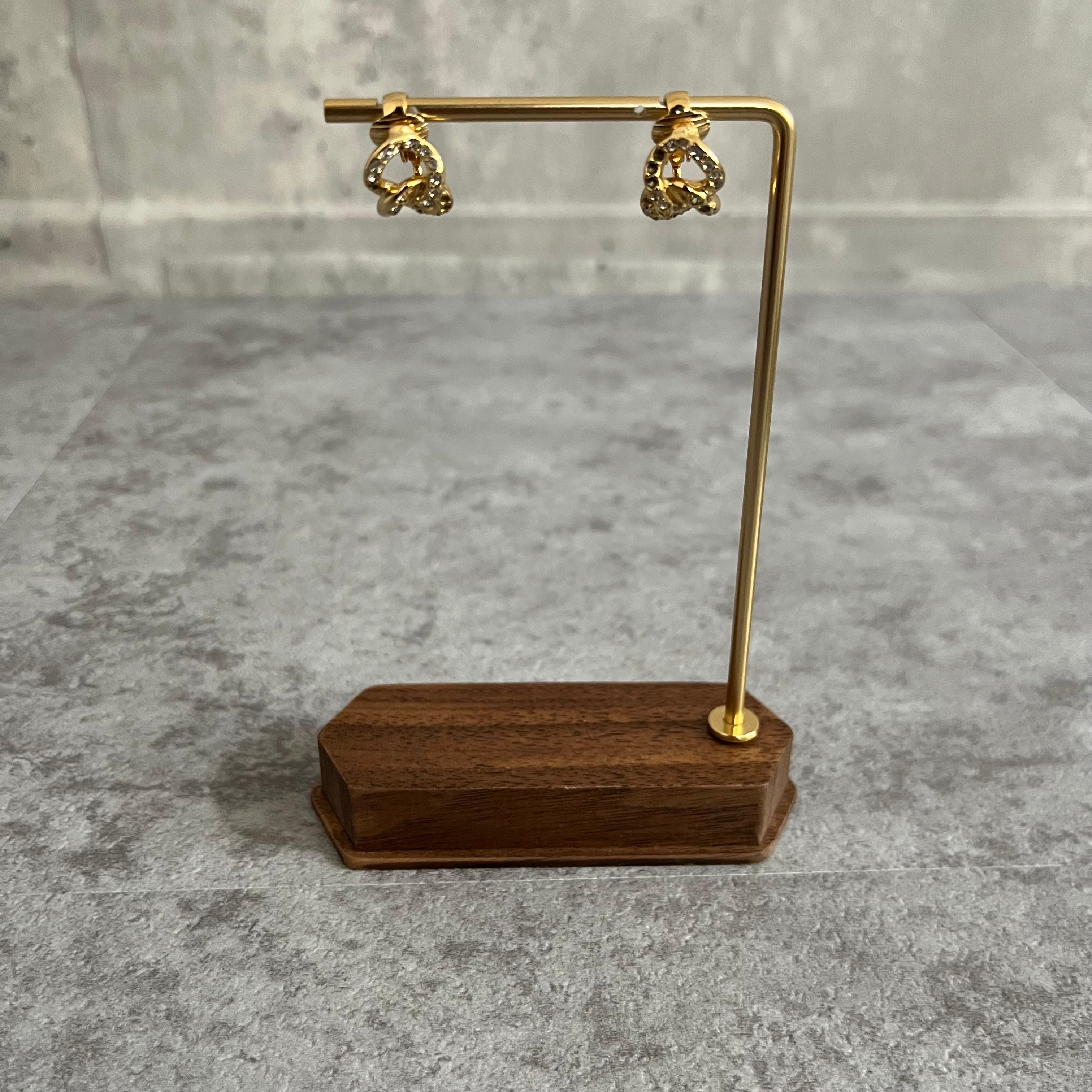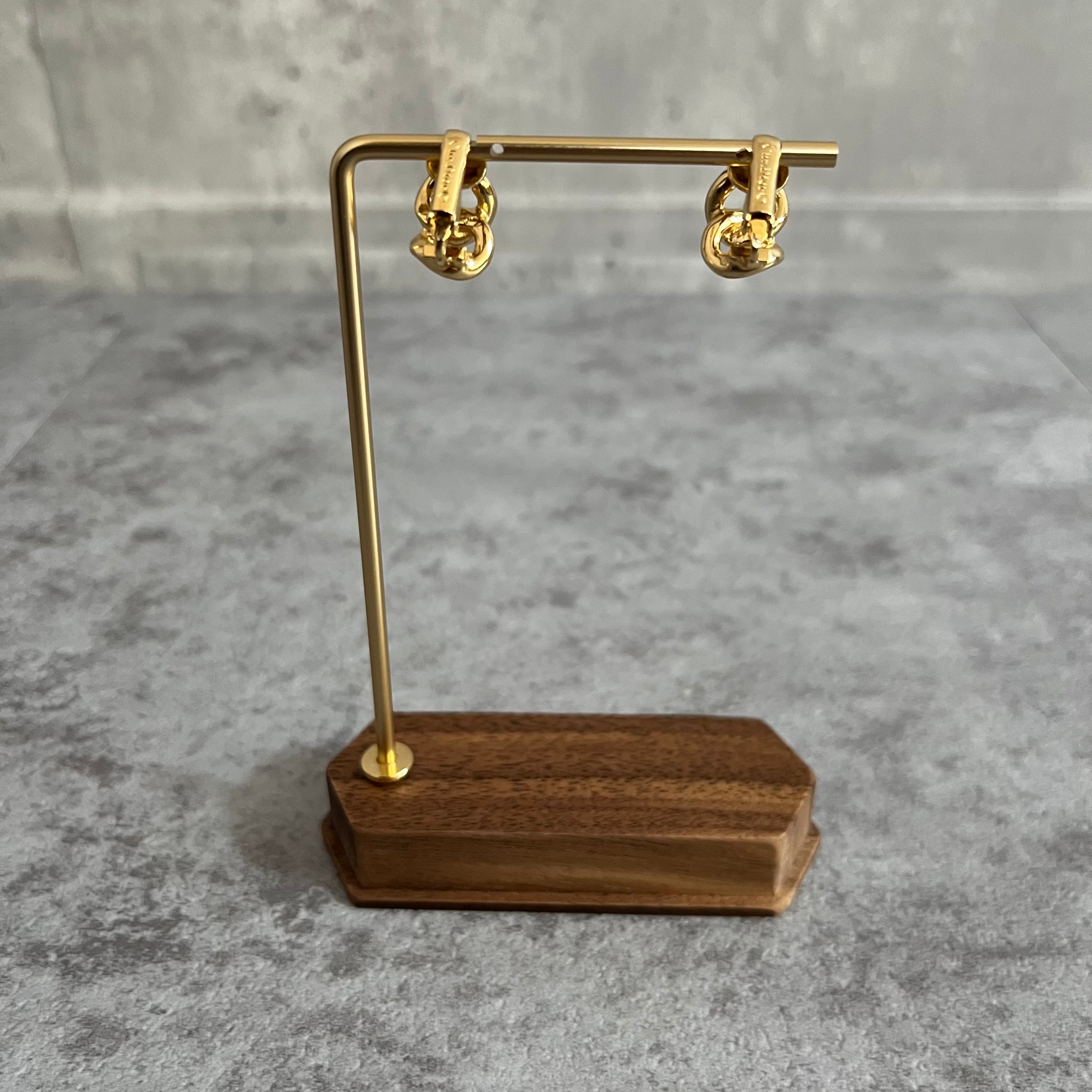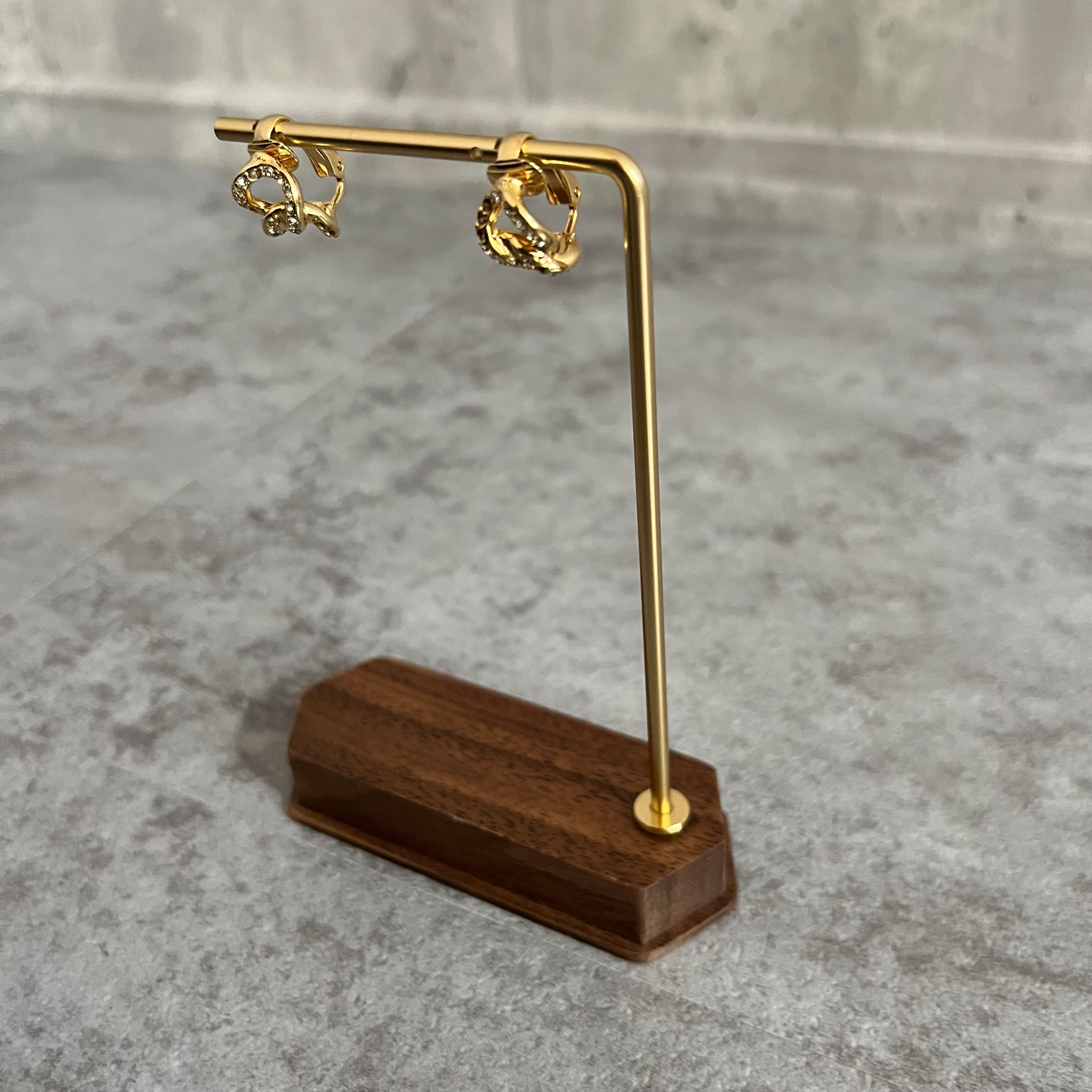 【Christian Dior】2連リングイヤリング ラインストーン ゴールド