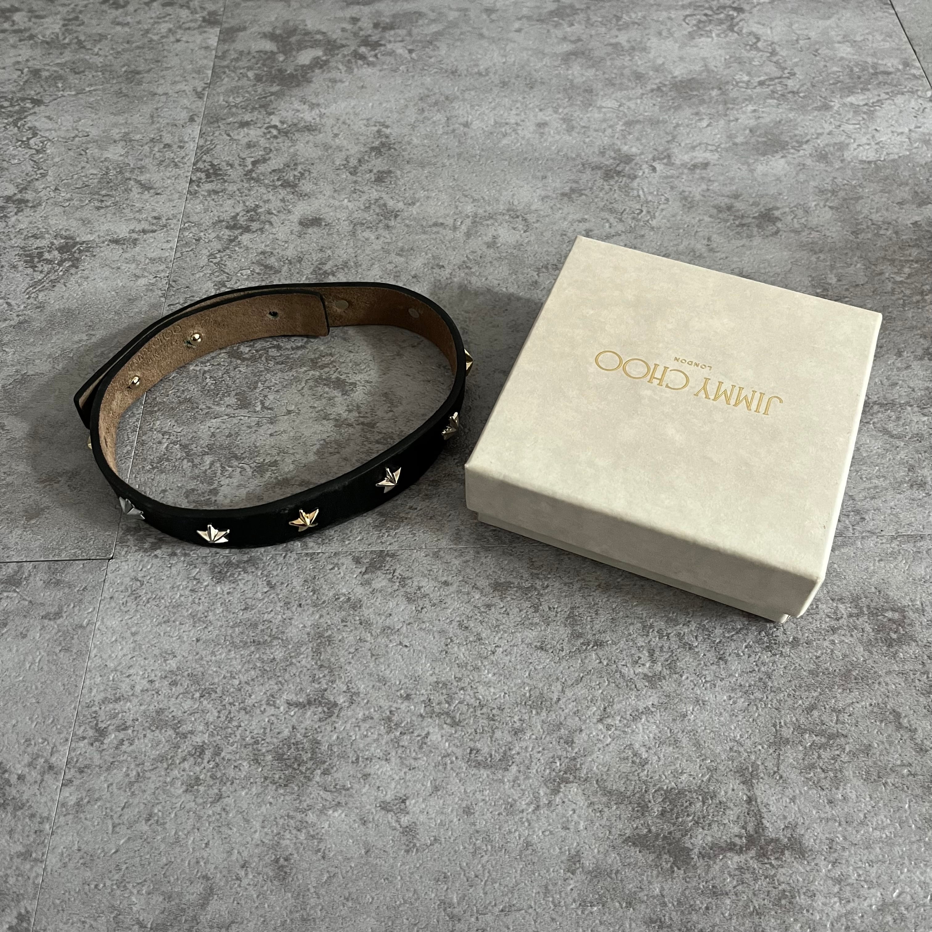 【JIMMY CHOO】ブレスレット 箱付き スタッツ 星 スター ブラック レザー 黒