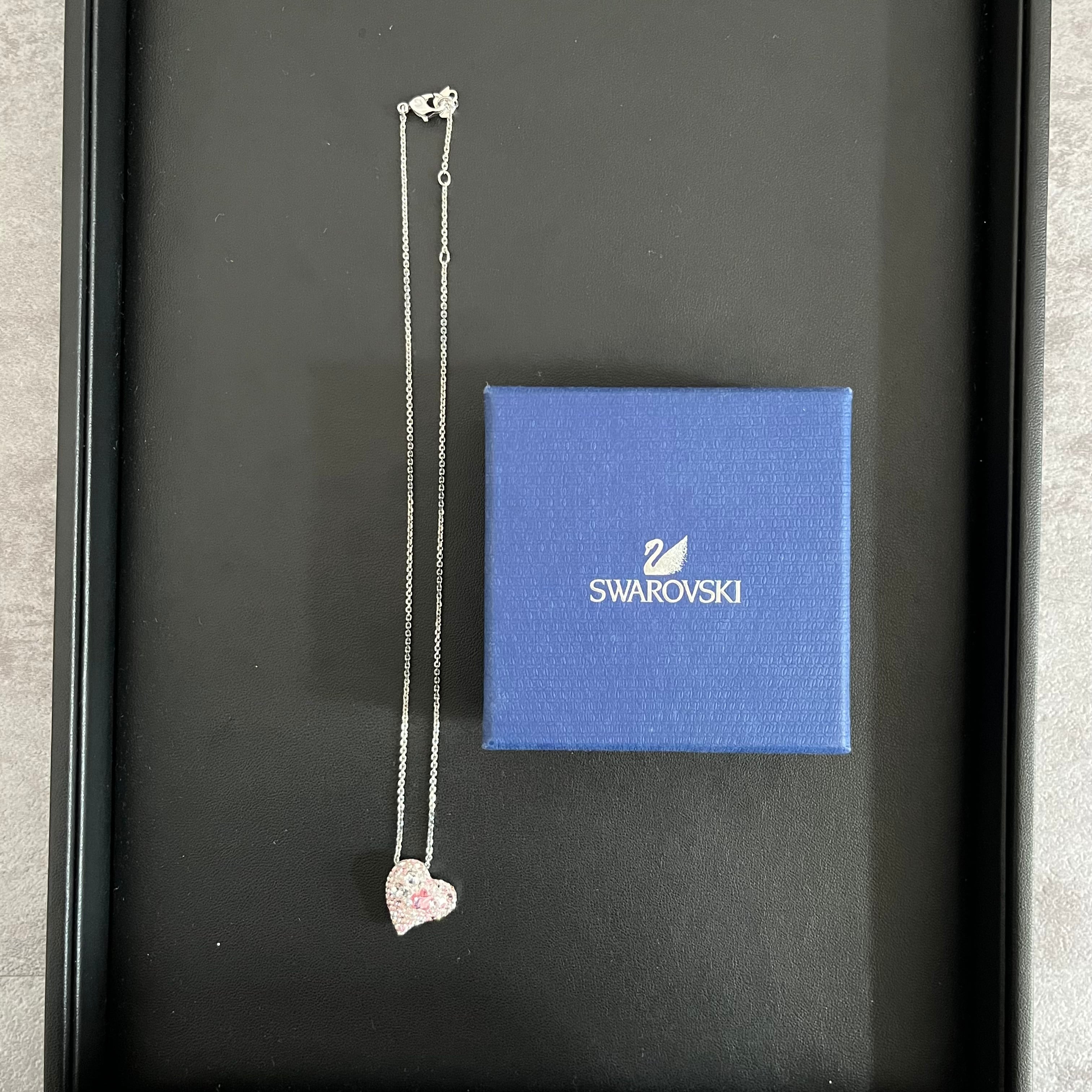 【Swarovski】ハートモチーフネックレス 箱付き ペンダント ピンク シルバー クリスタル