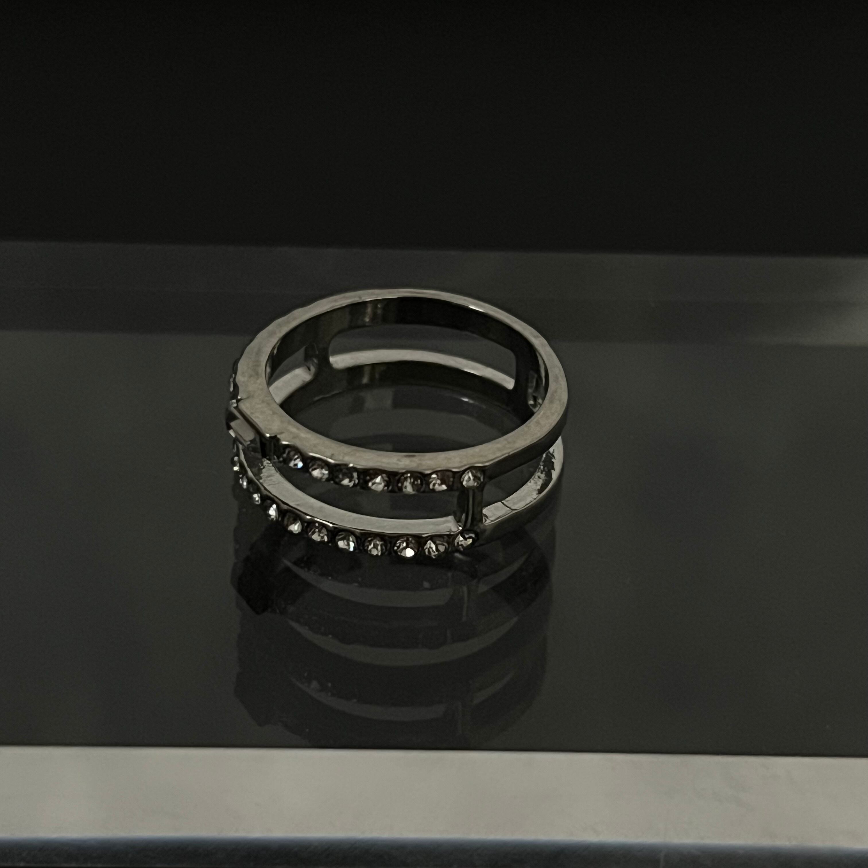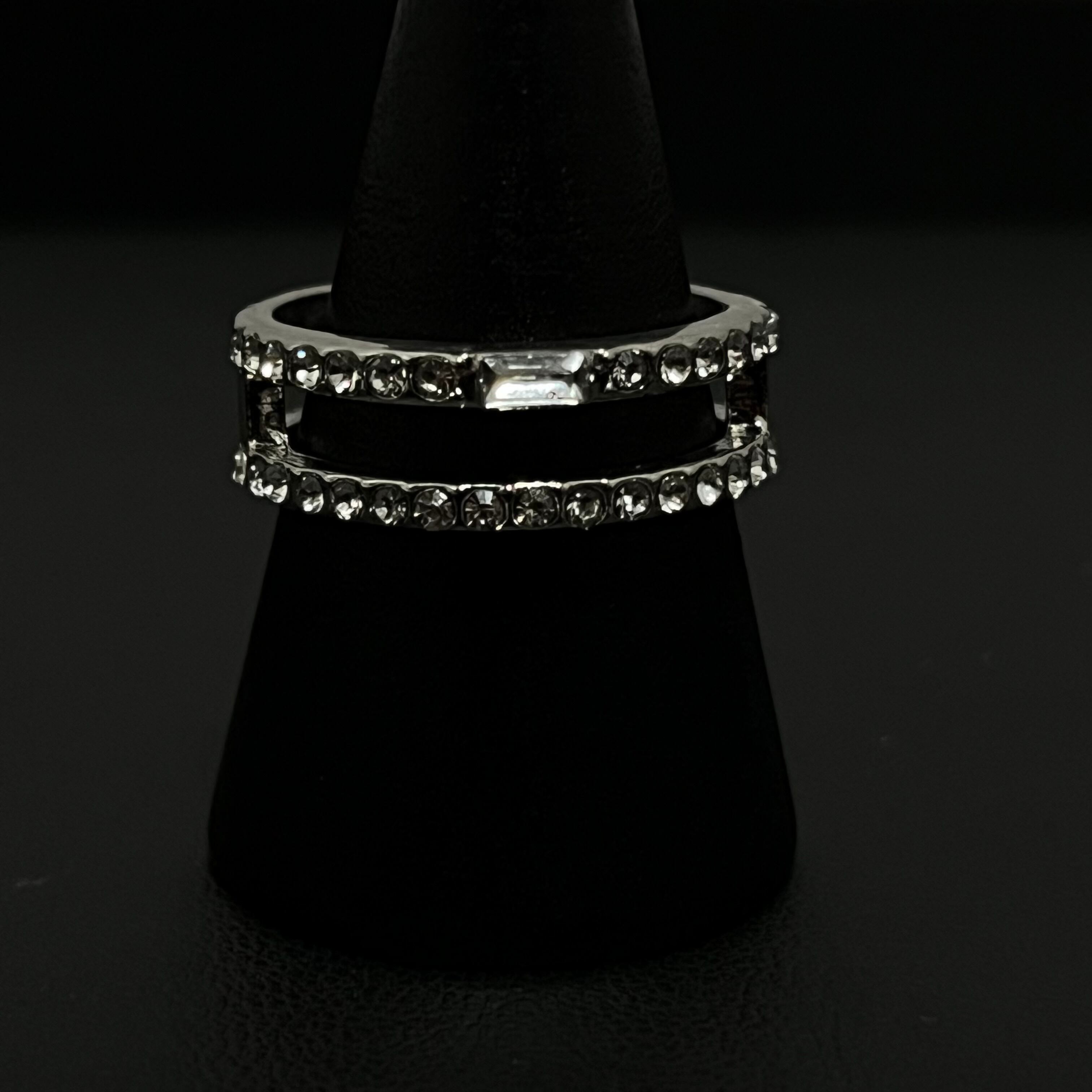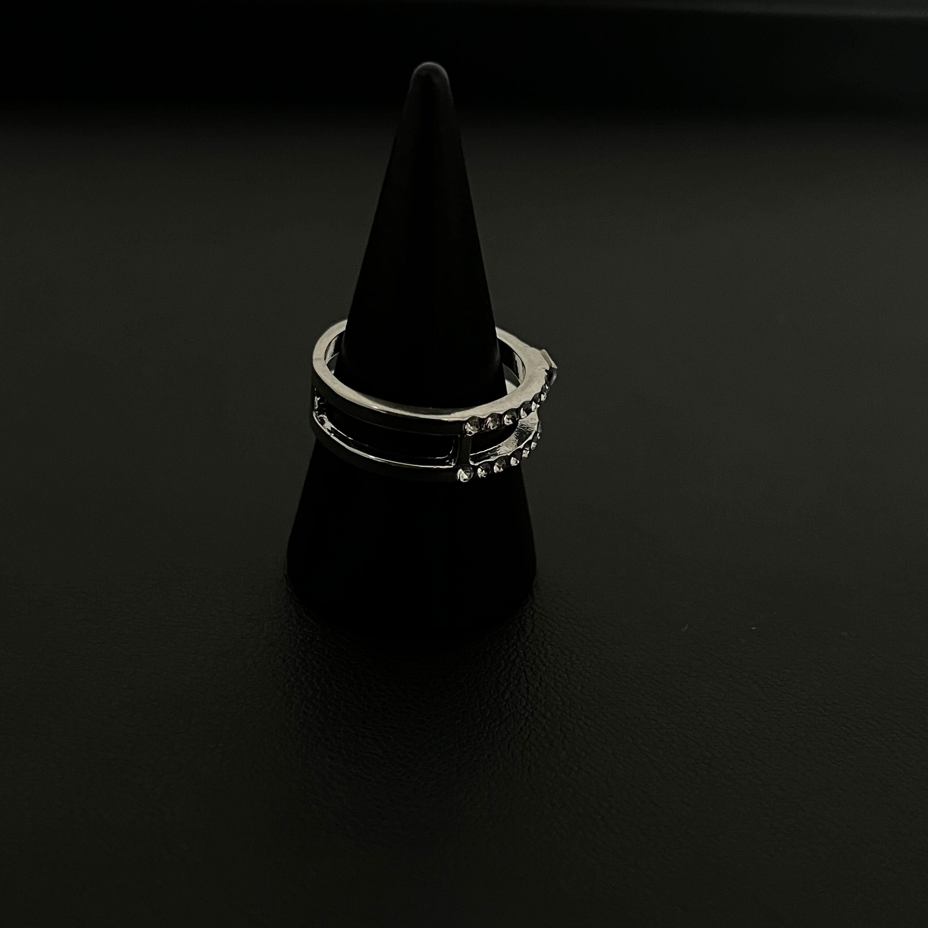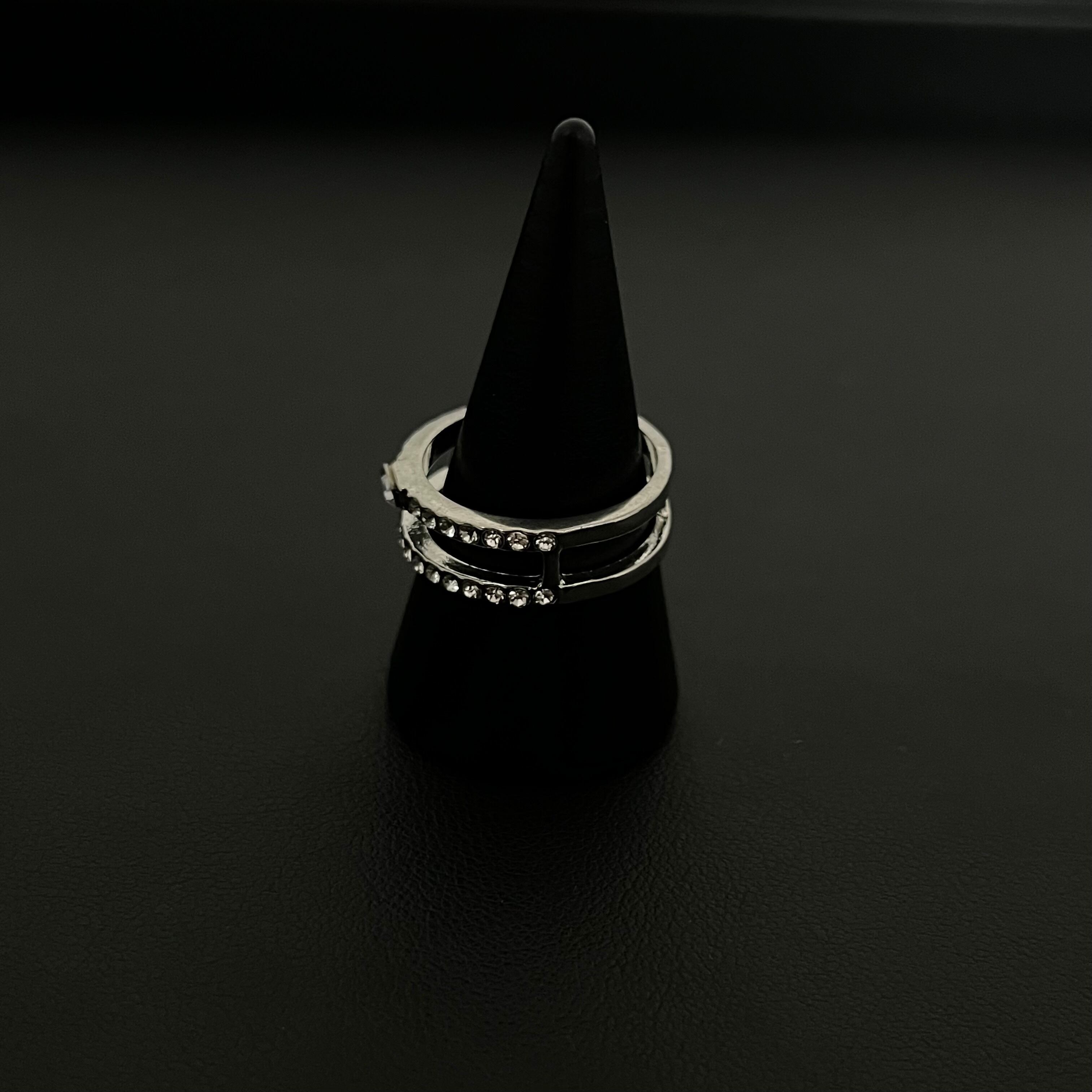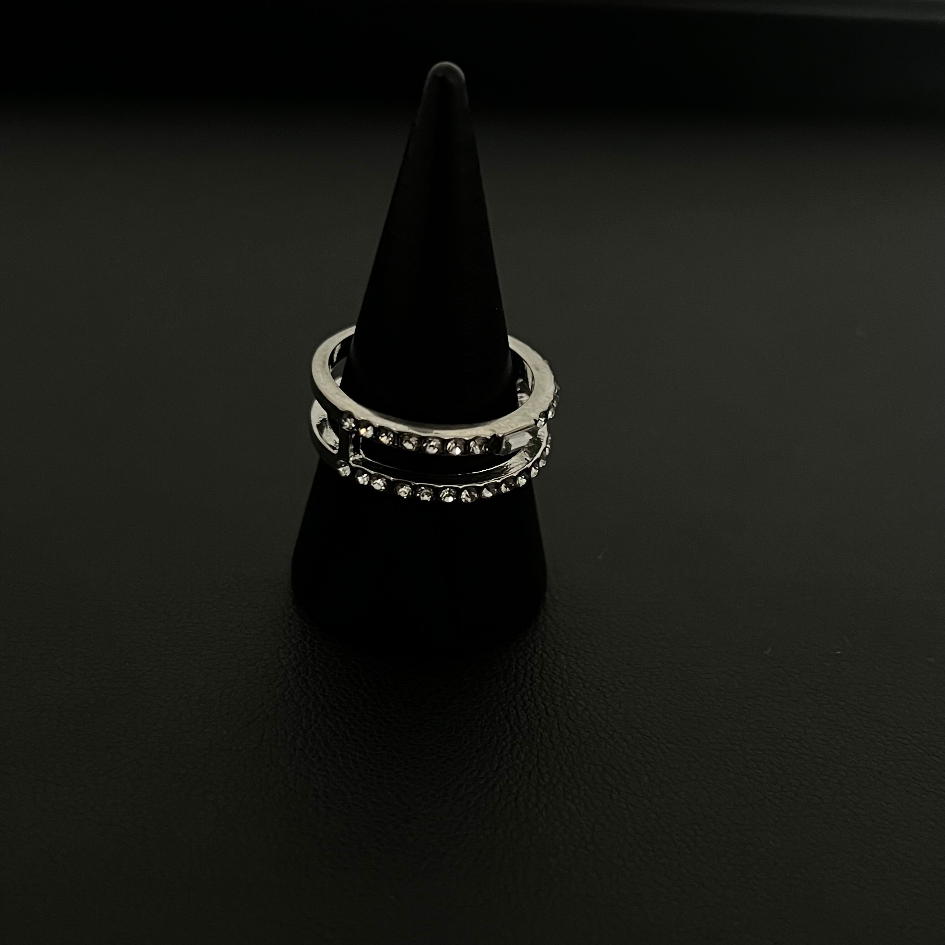 デザインリング ラインストーン シルバー 二重リング