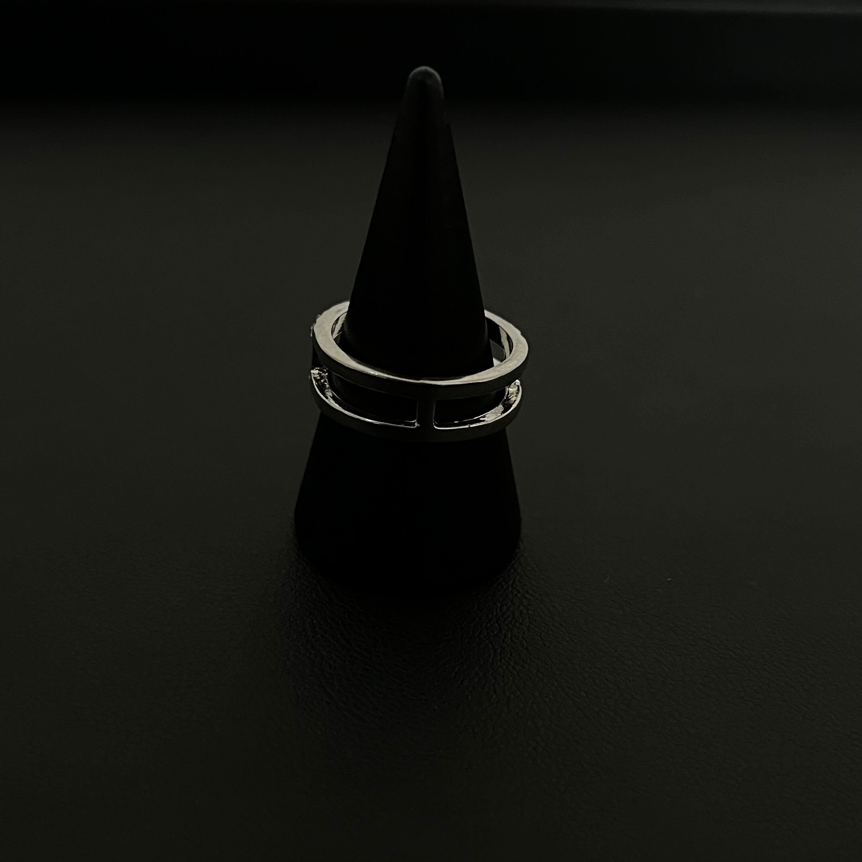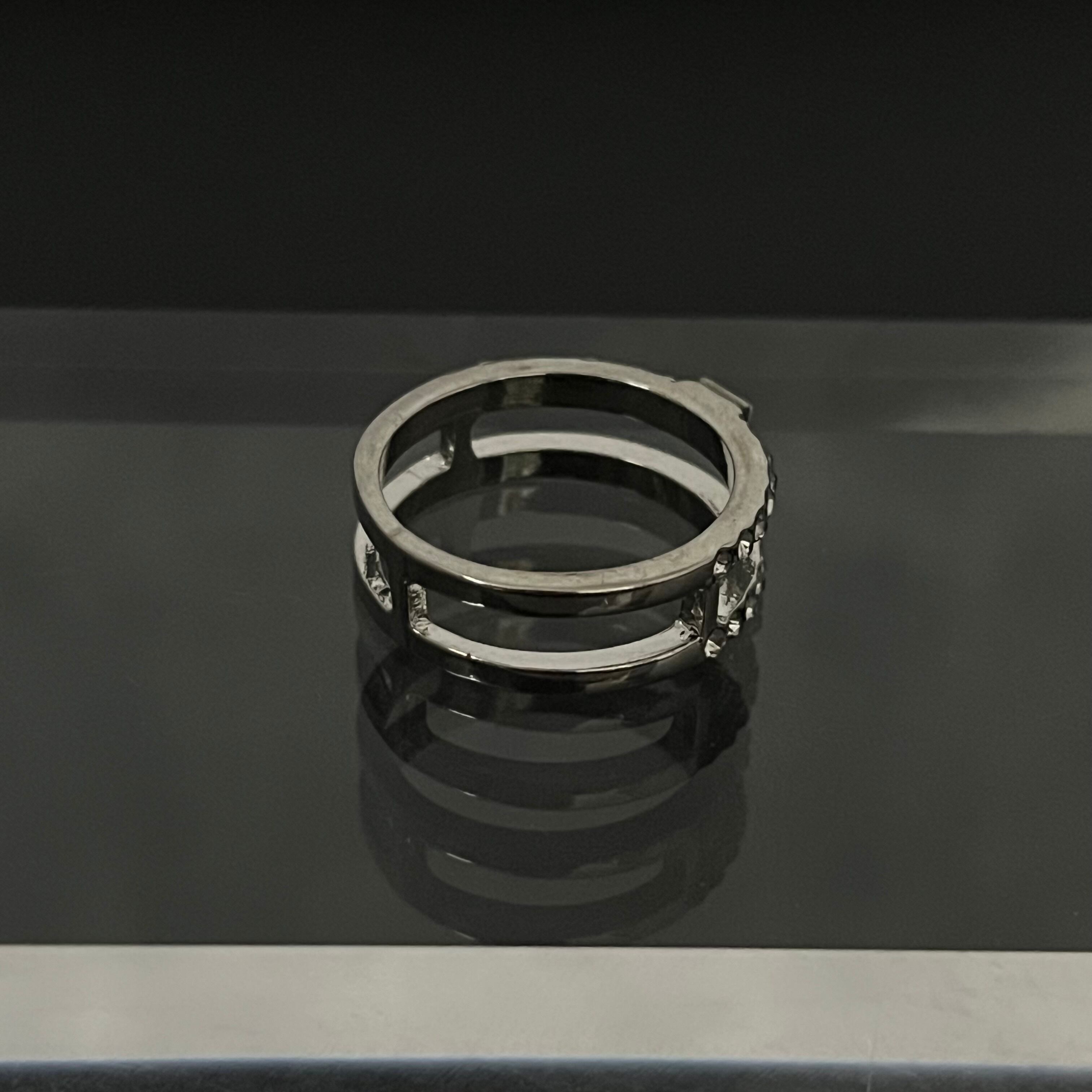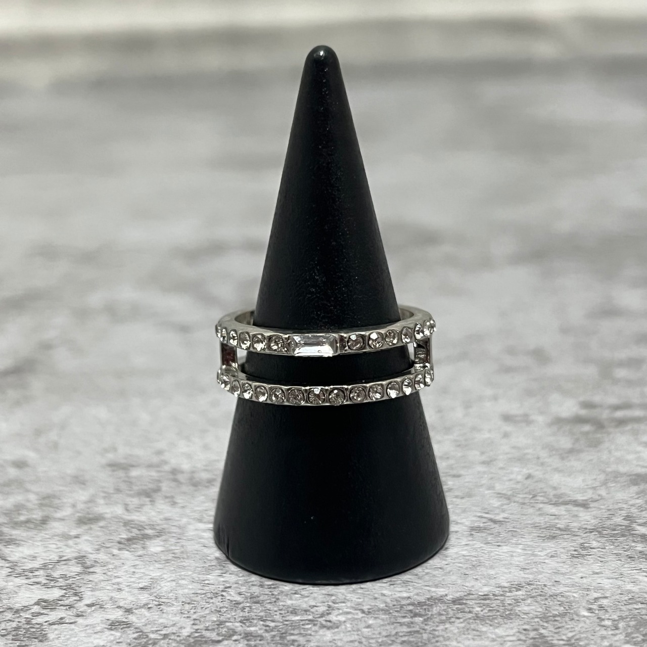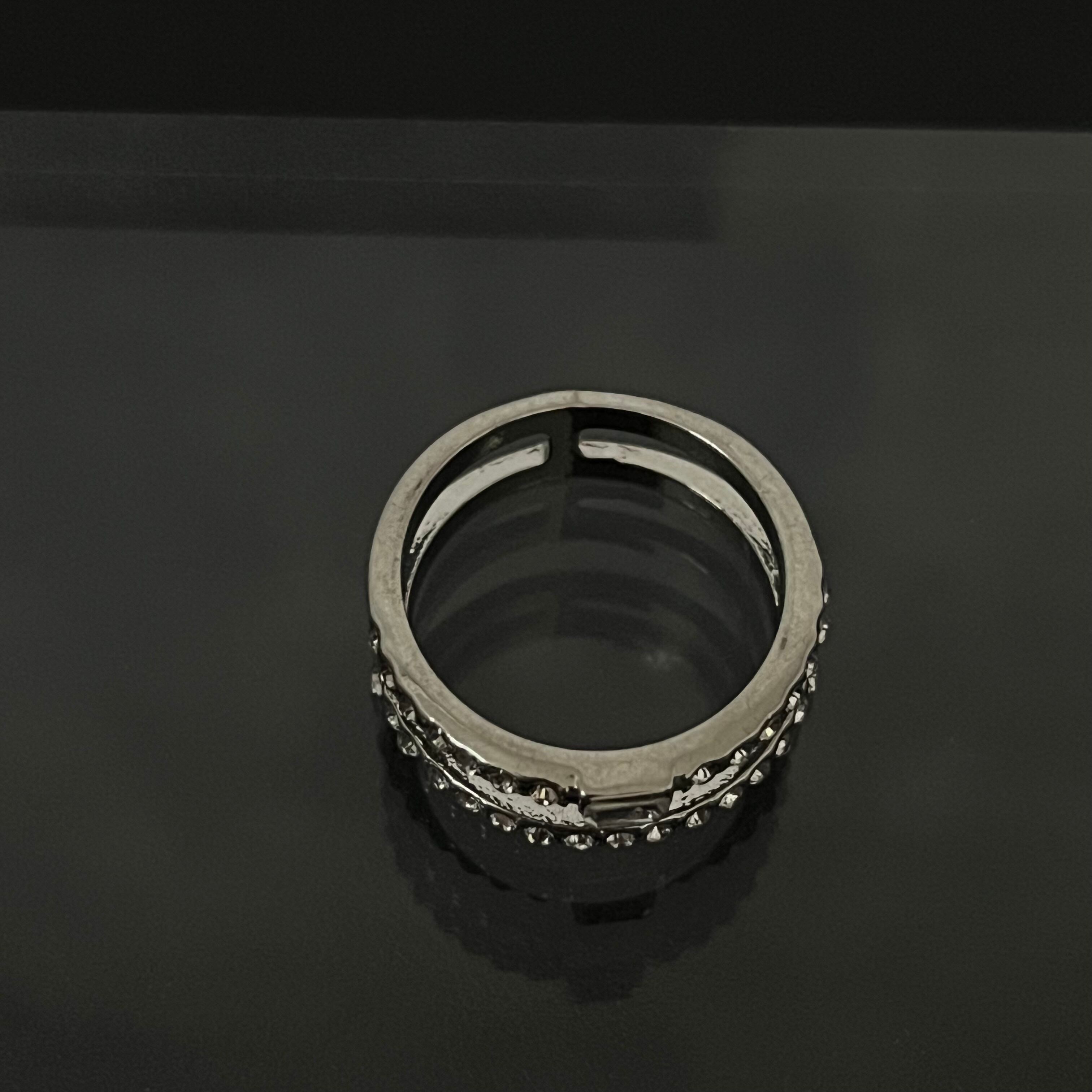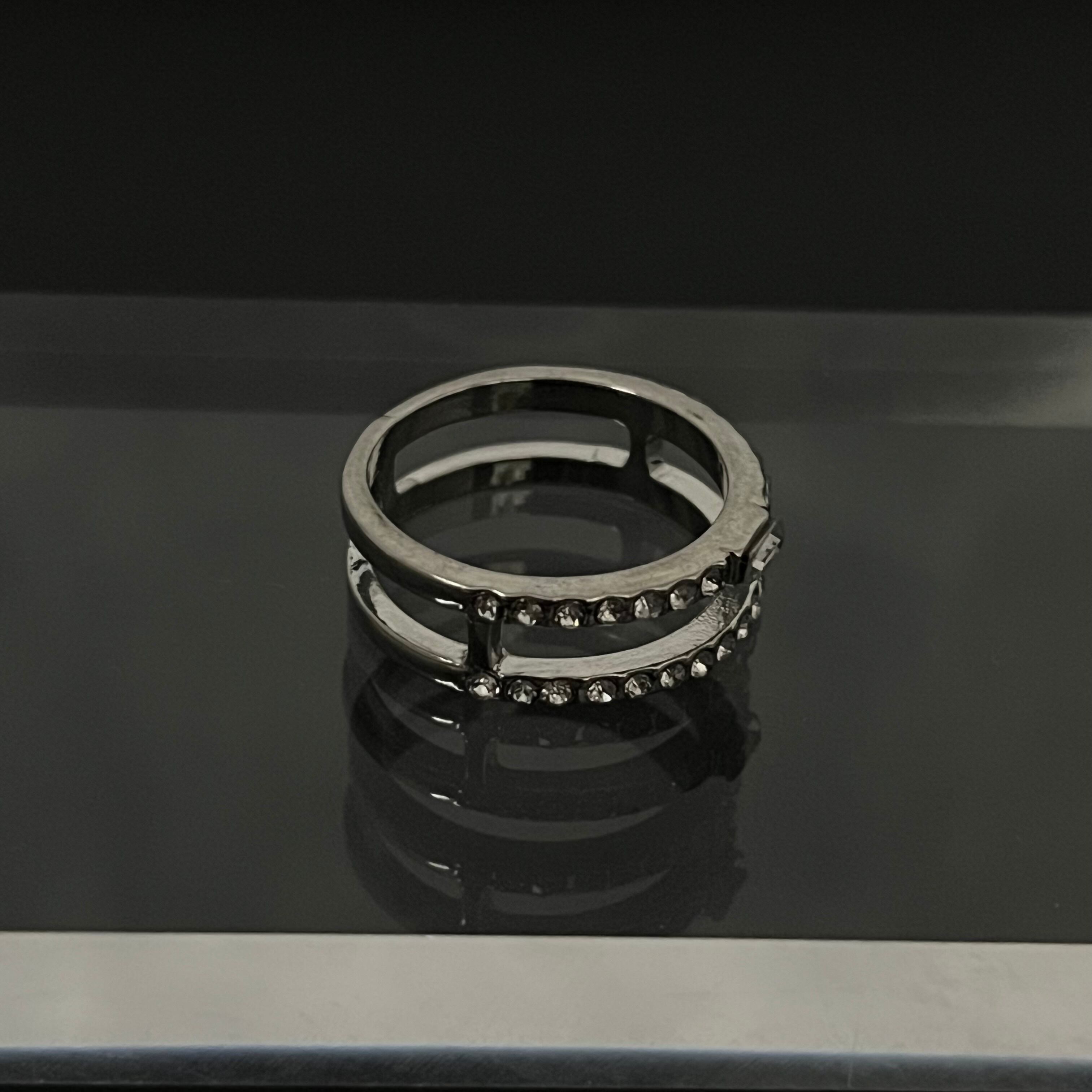 デザインリング ラインストーン シルバー 二重リング