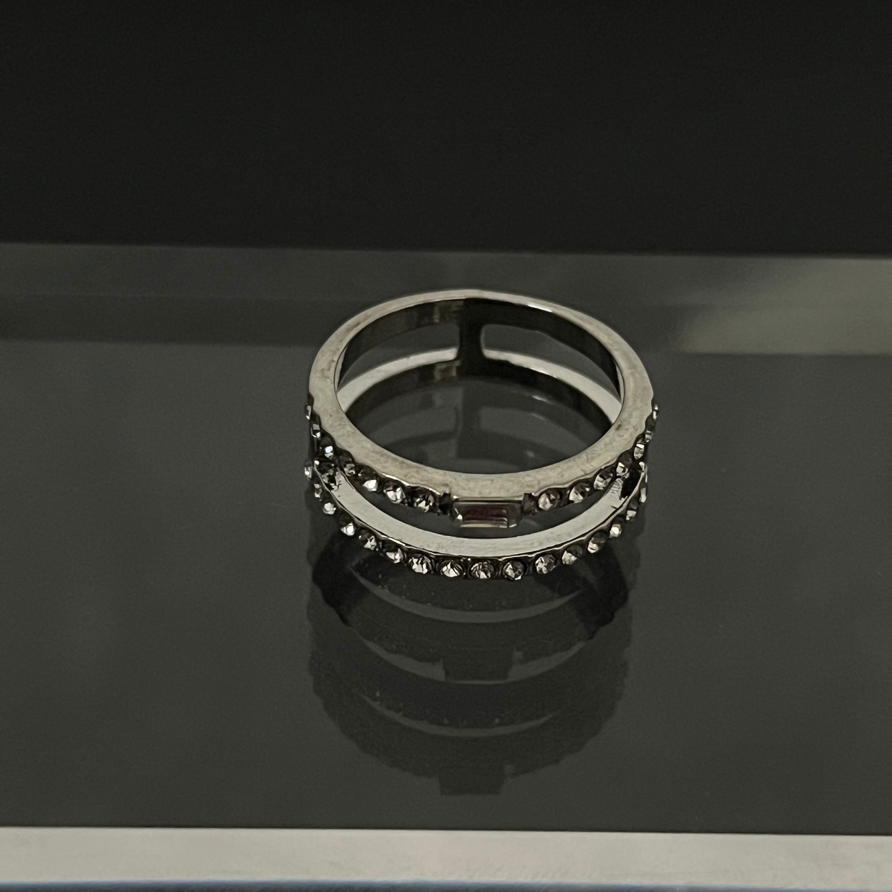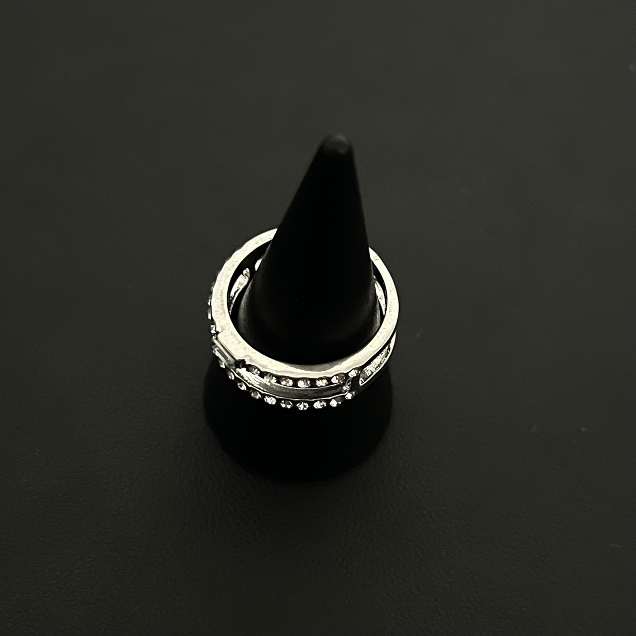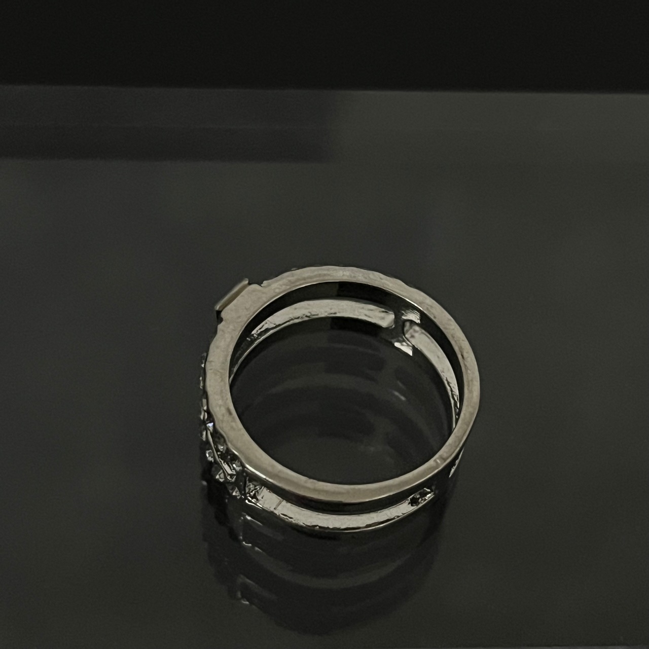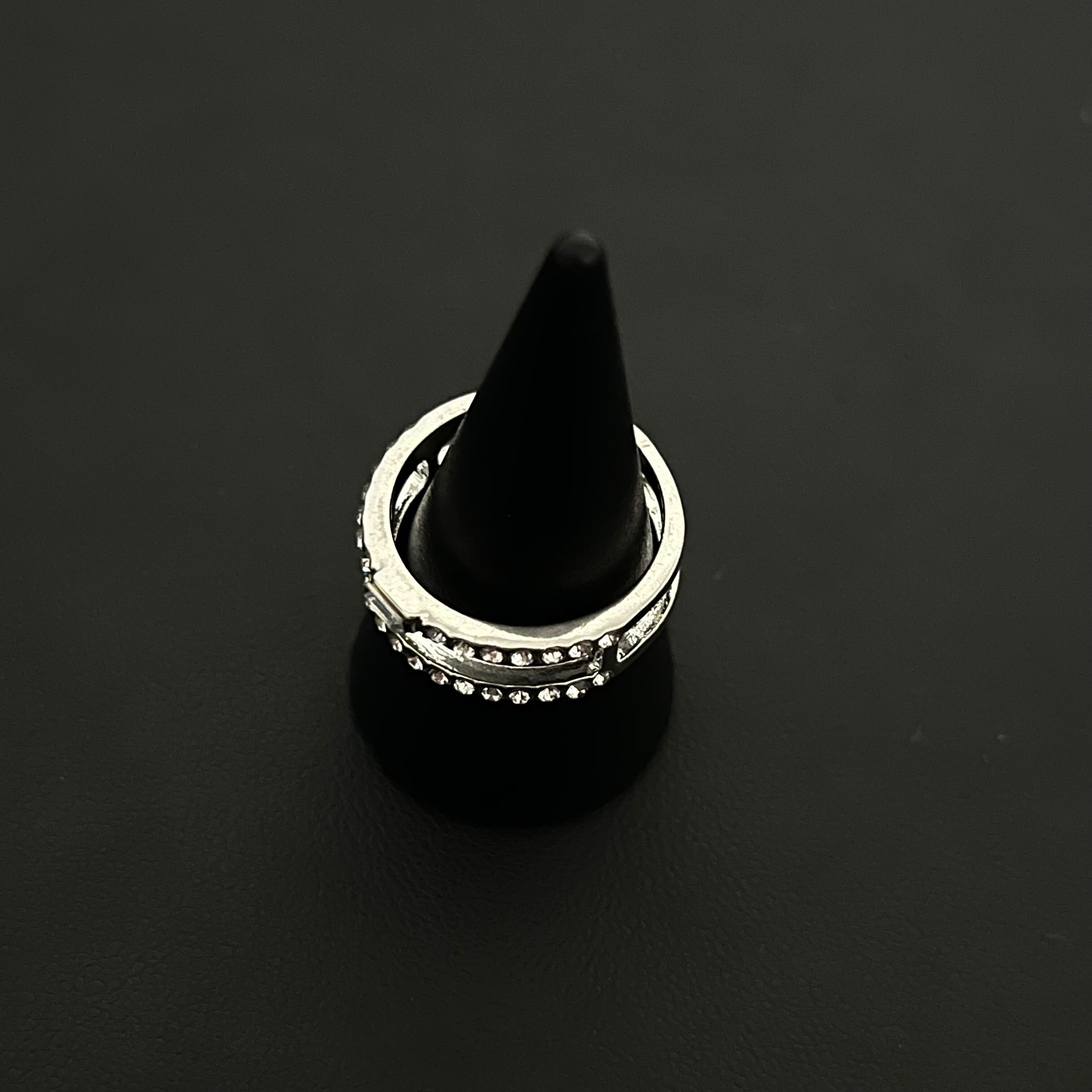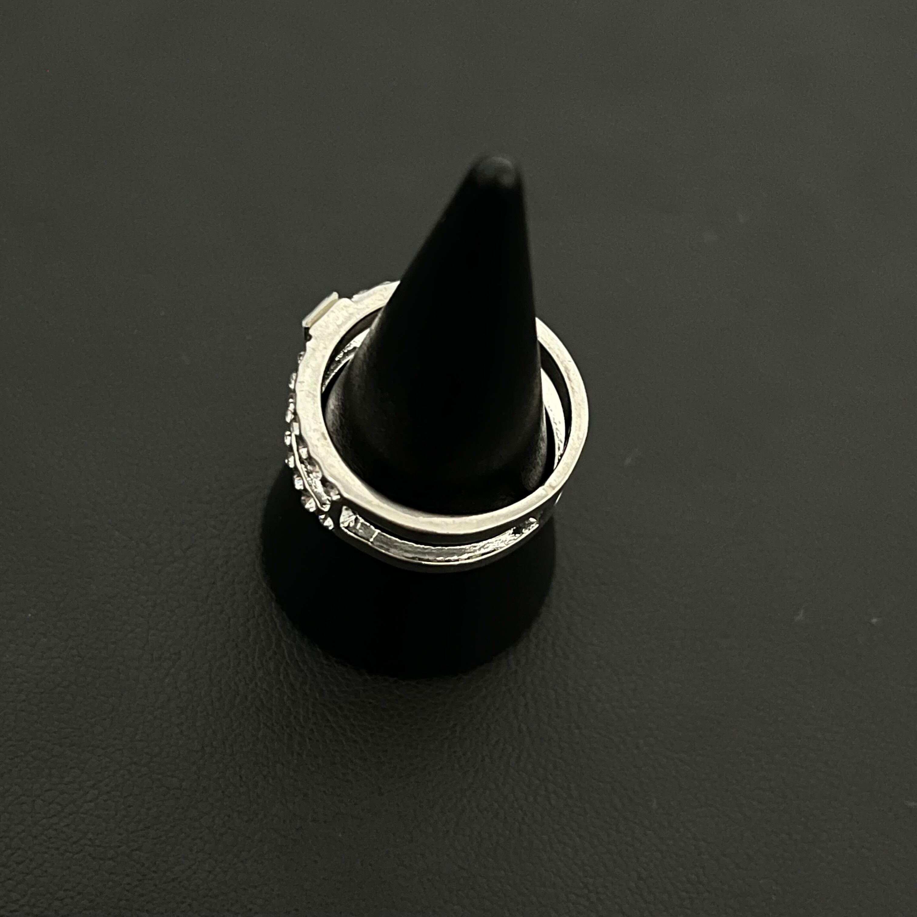 デザインリング ラインストーン シルバー 二重リング