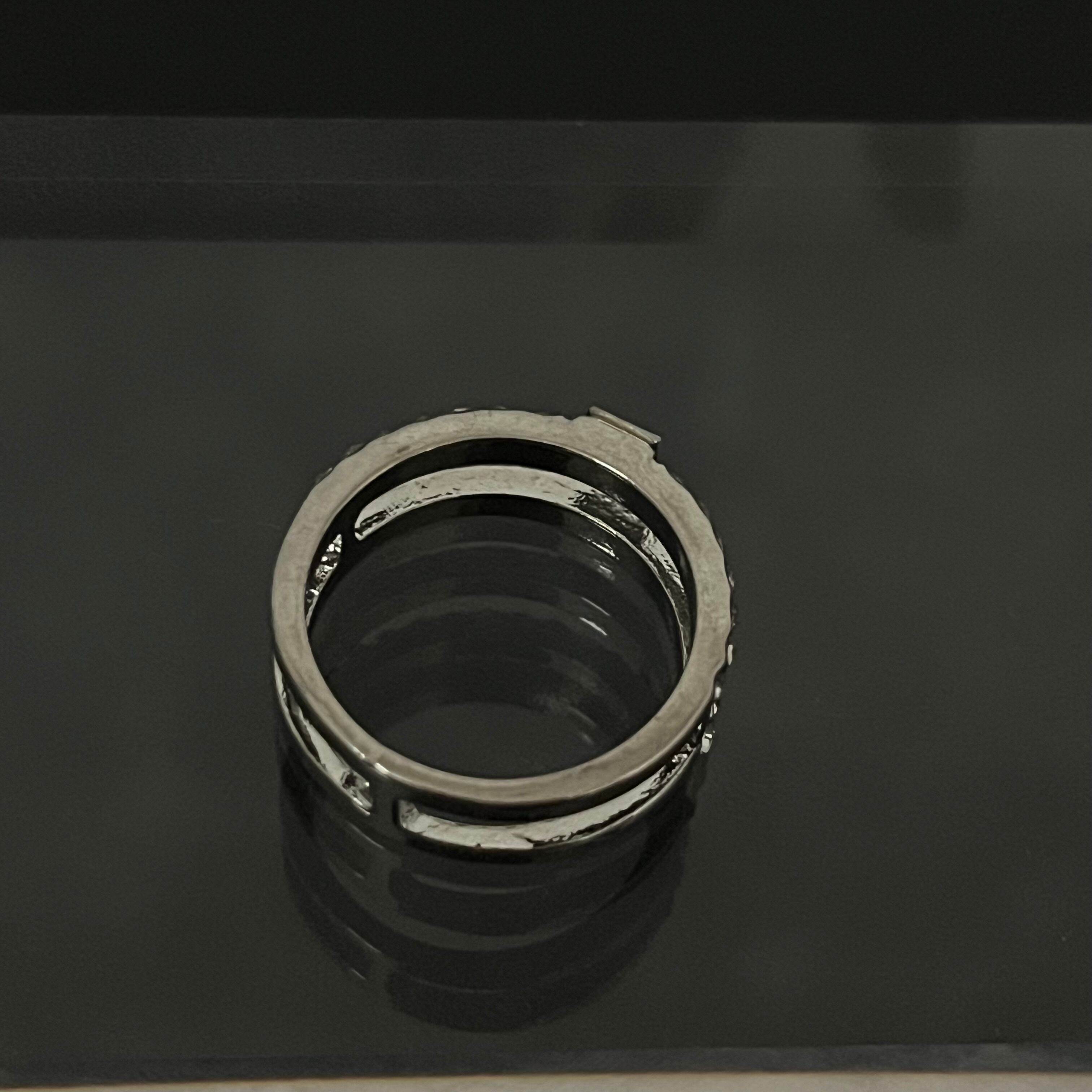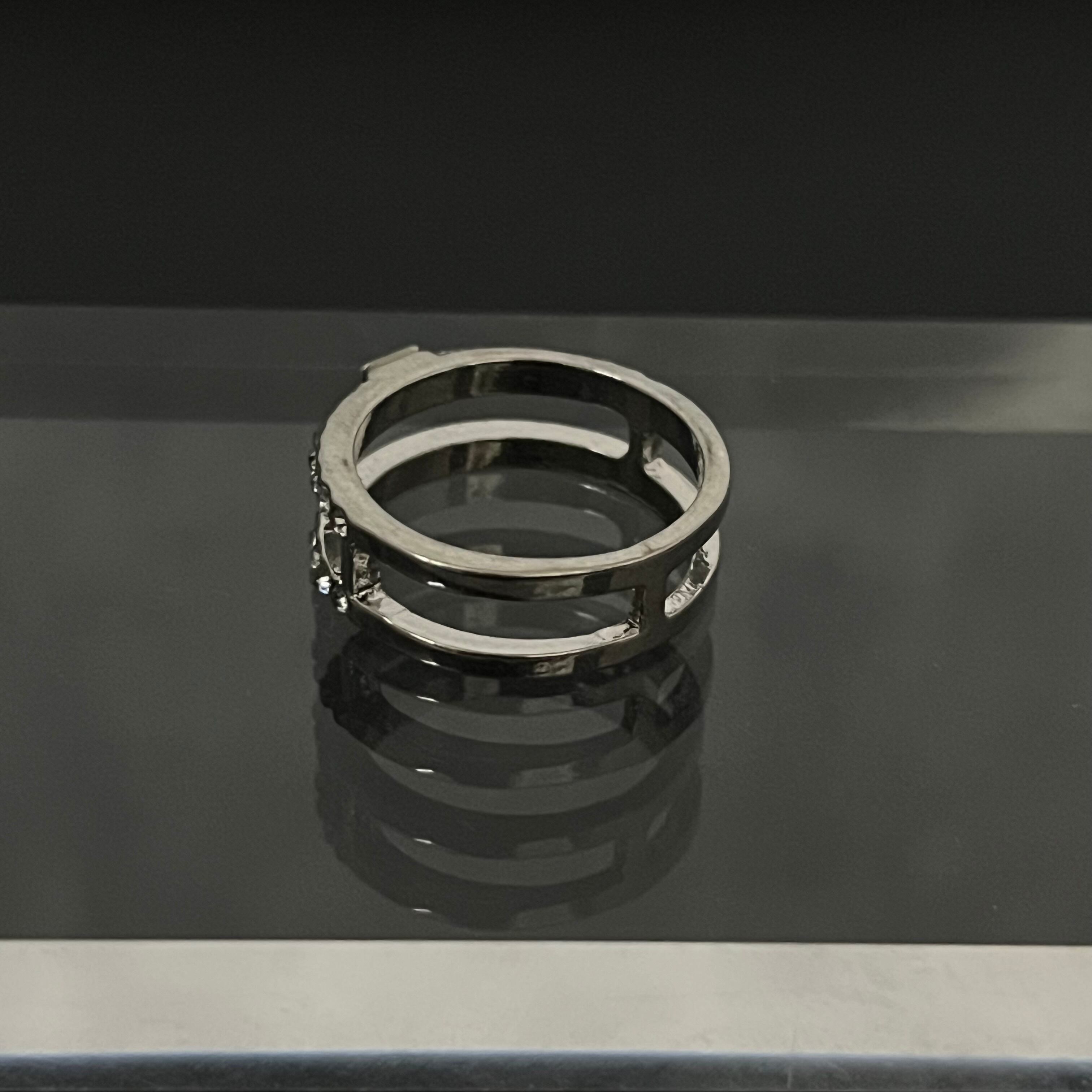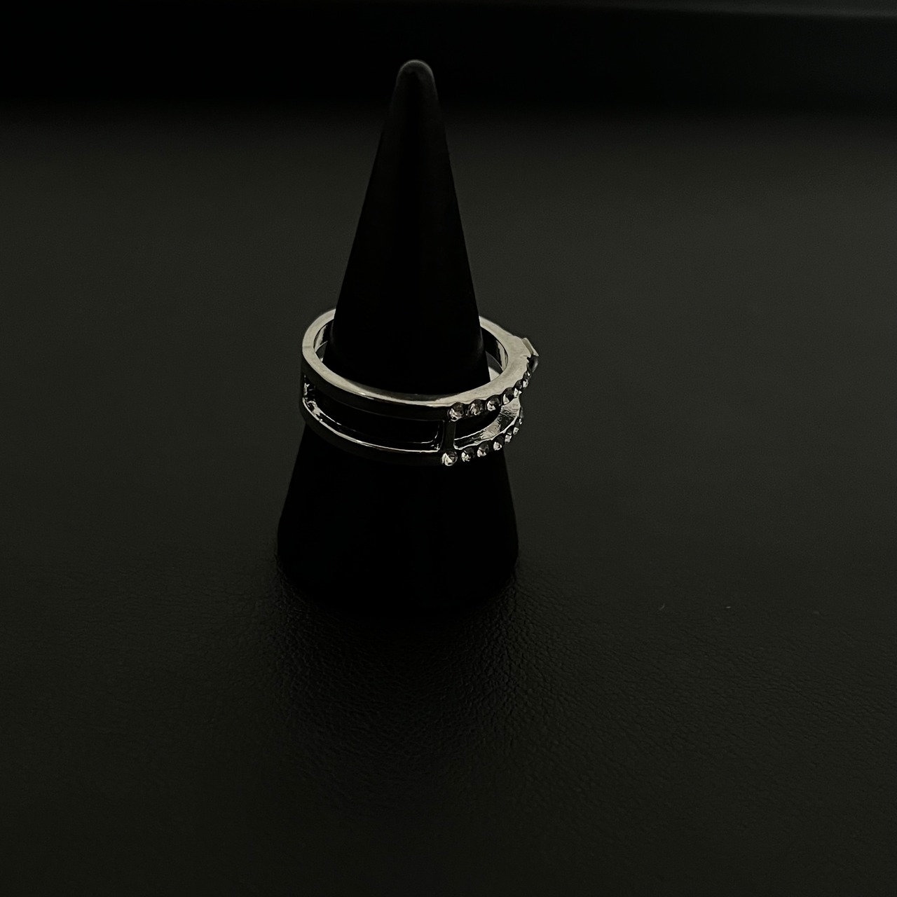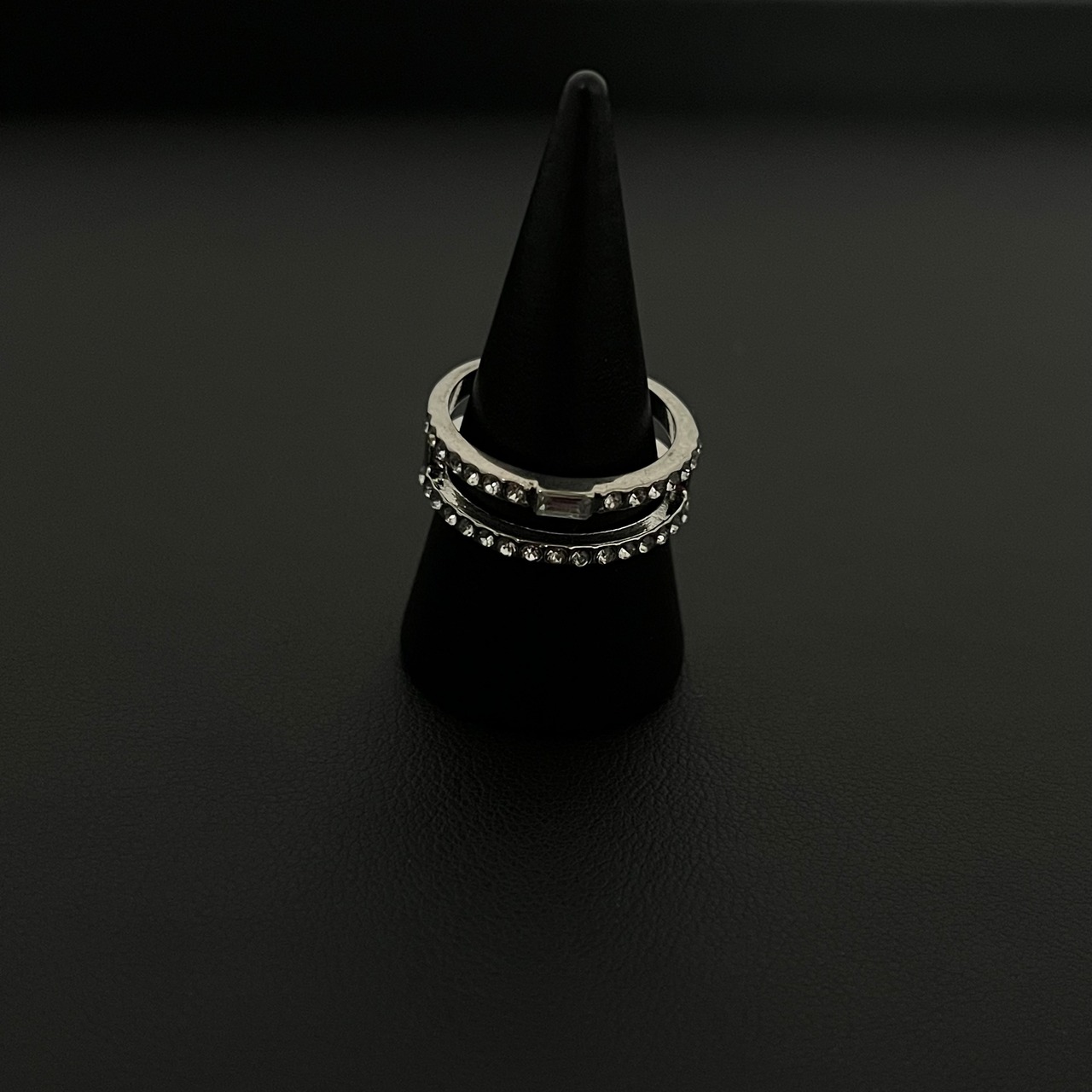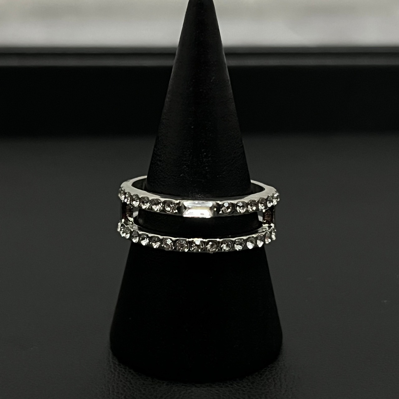 デザインリング ラインストーン シルバー 二重リング