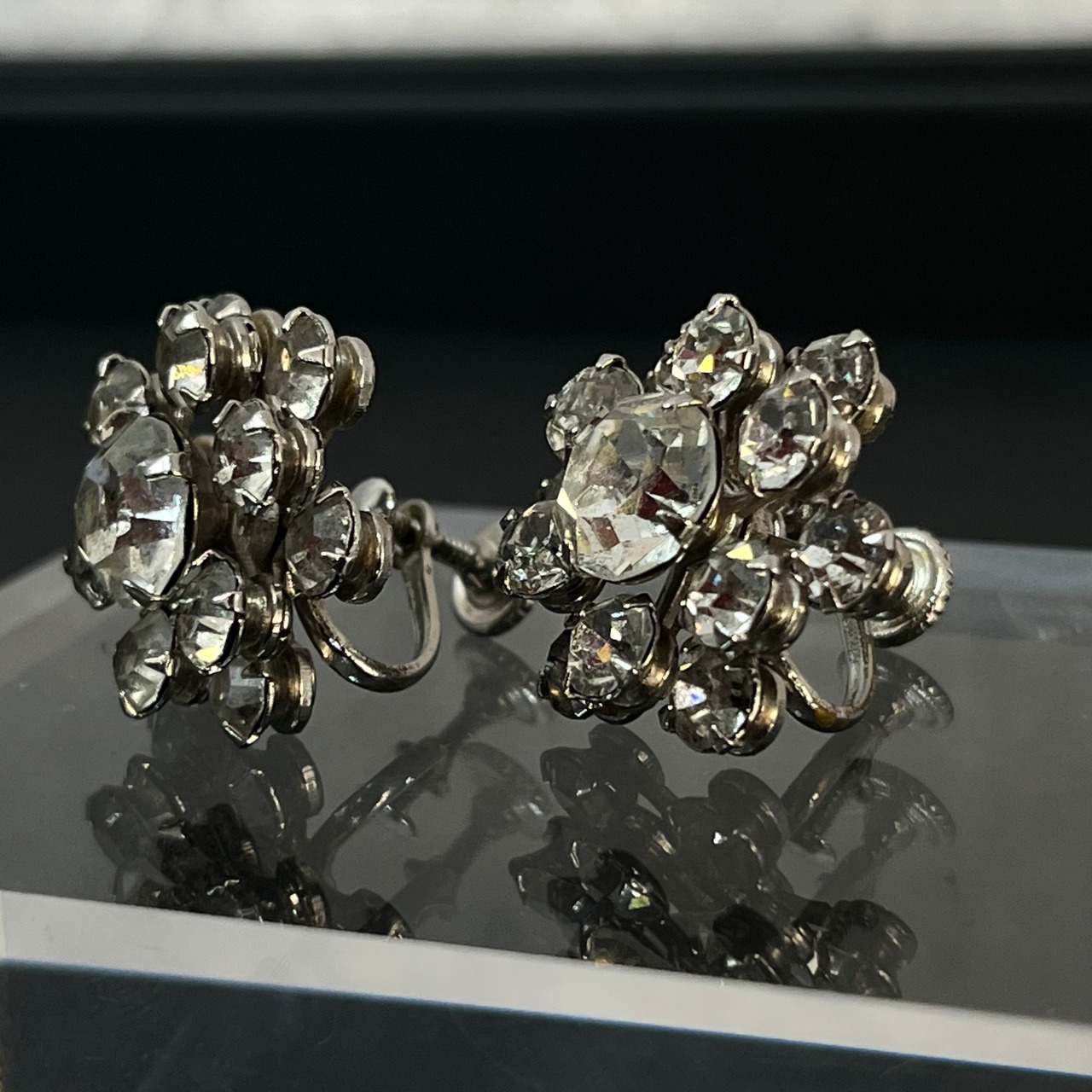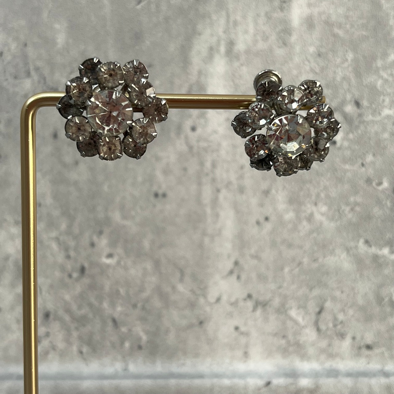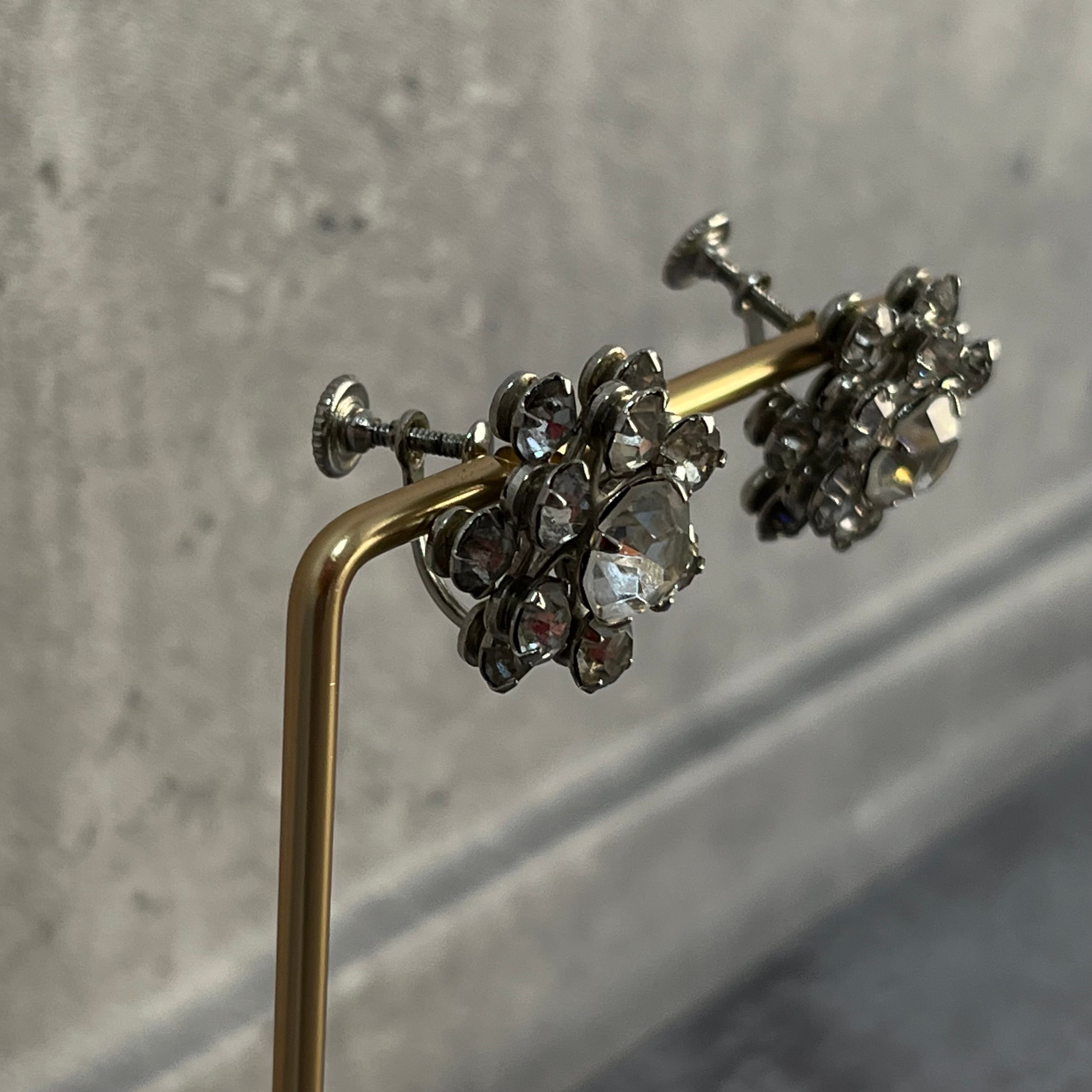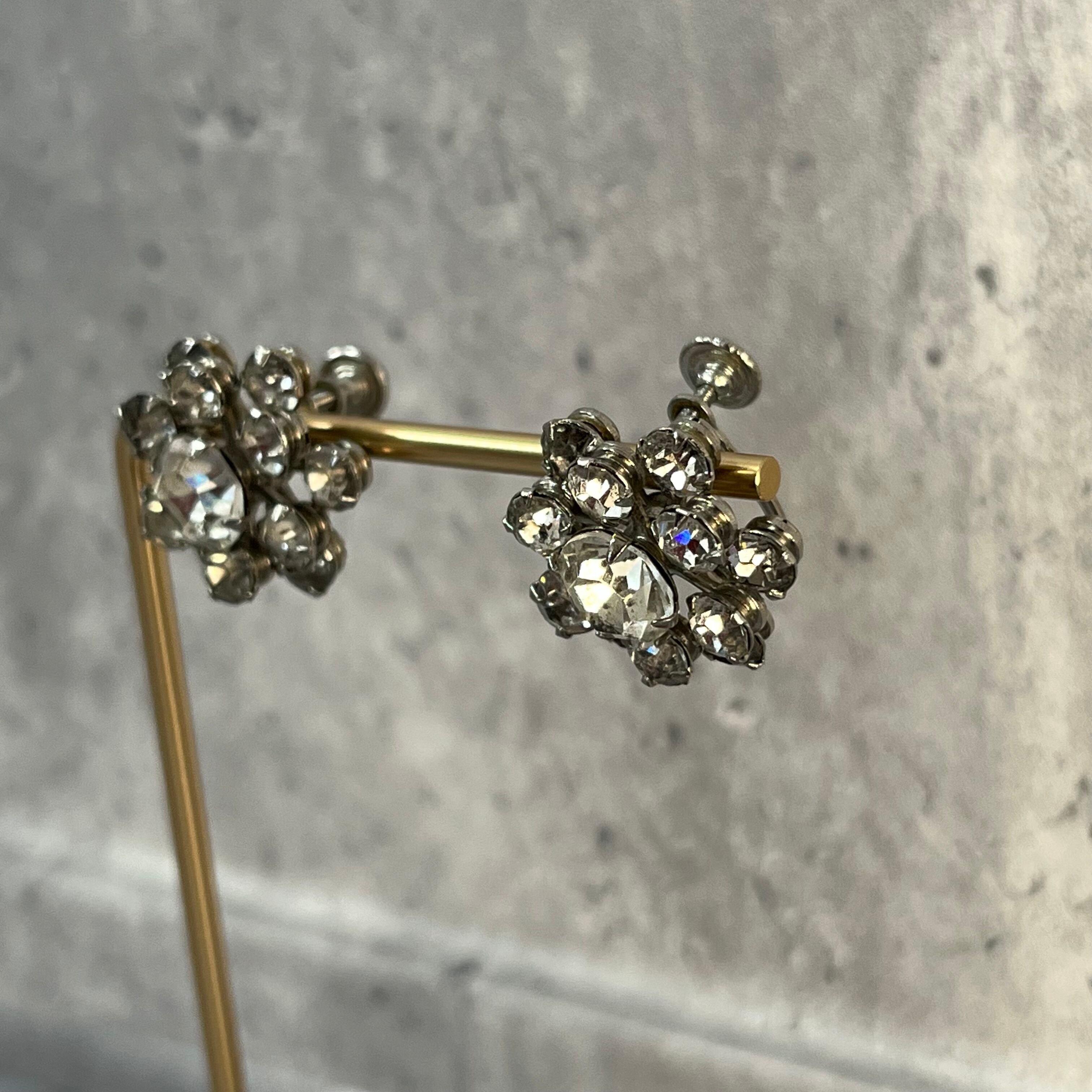 デザインイヤリング シルバー ラインストーン ヴィンテージ y2k