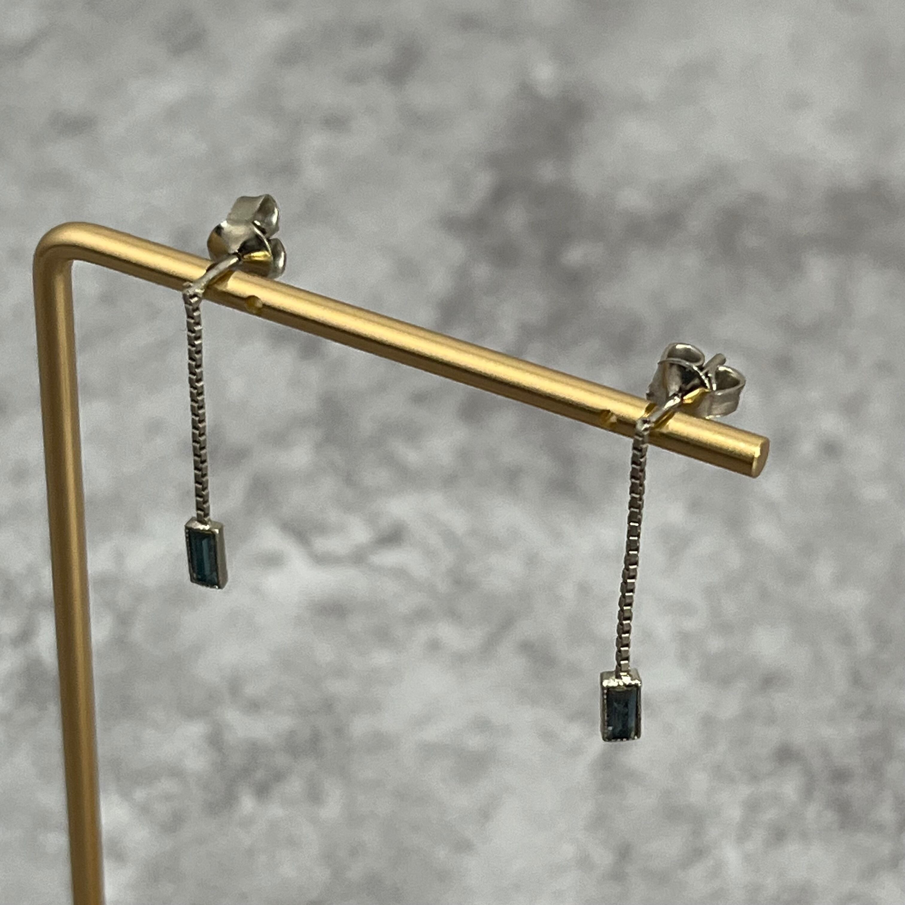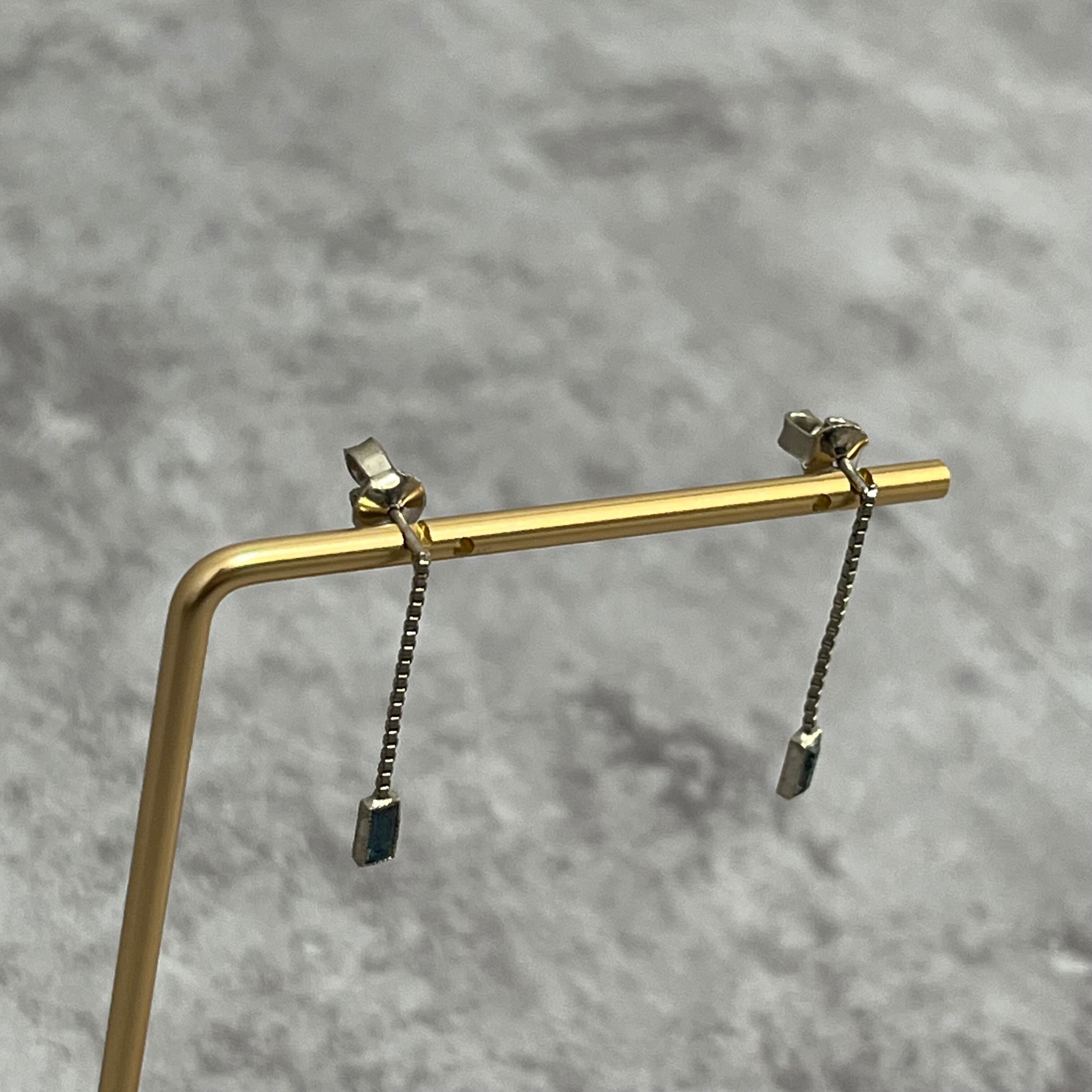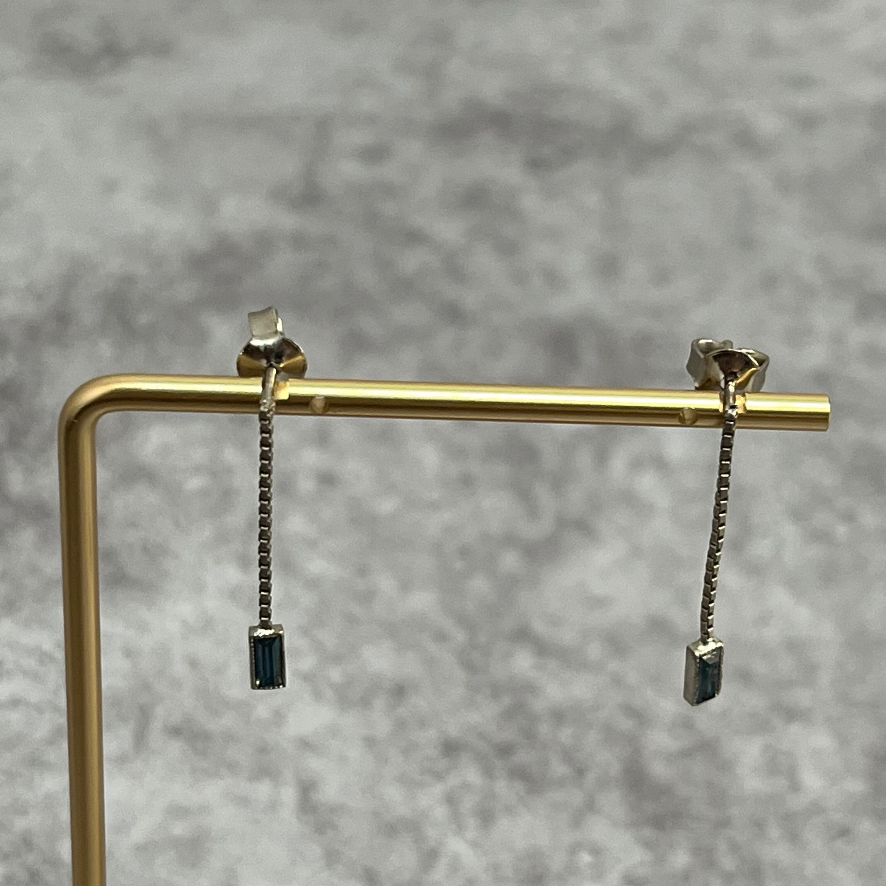 デザインピアス ロングピアス ストーン ブルー 四角 スクエア シンプル シルバー