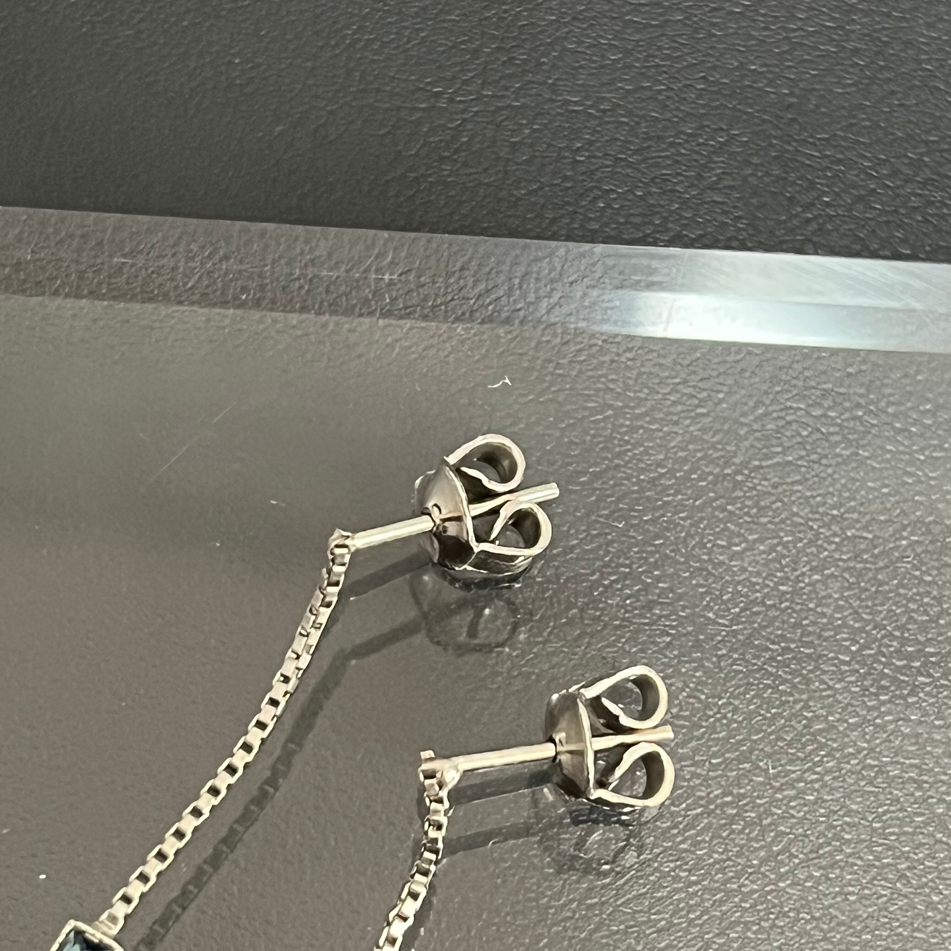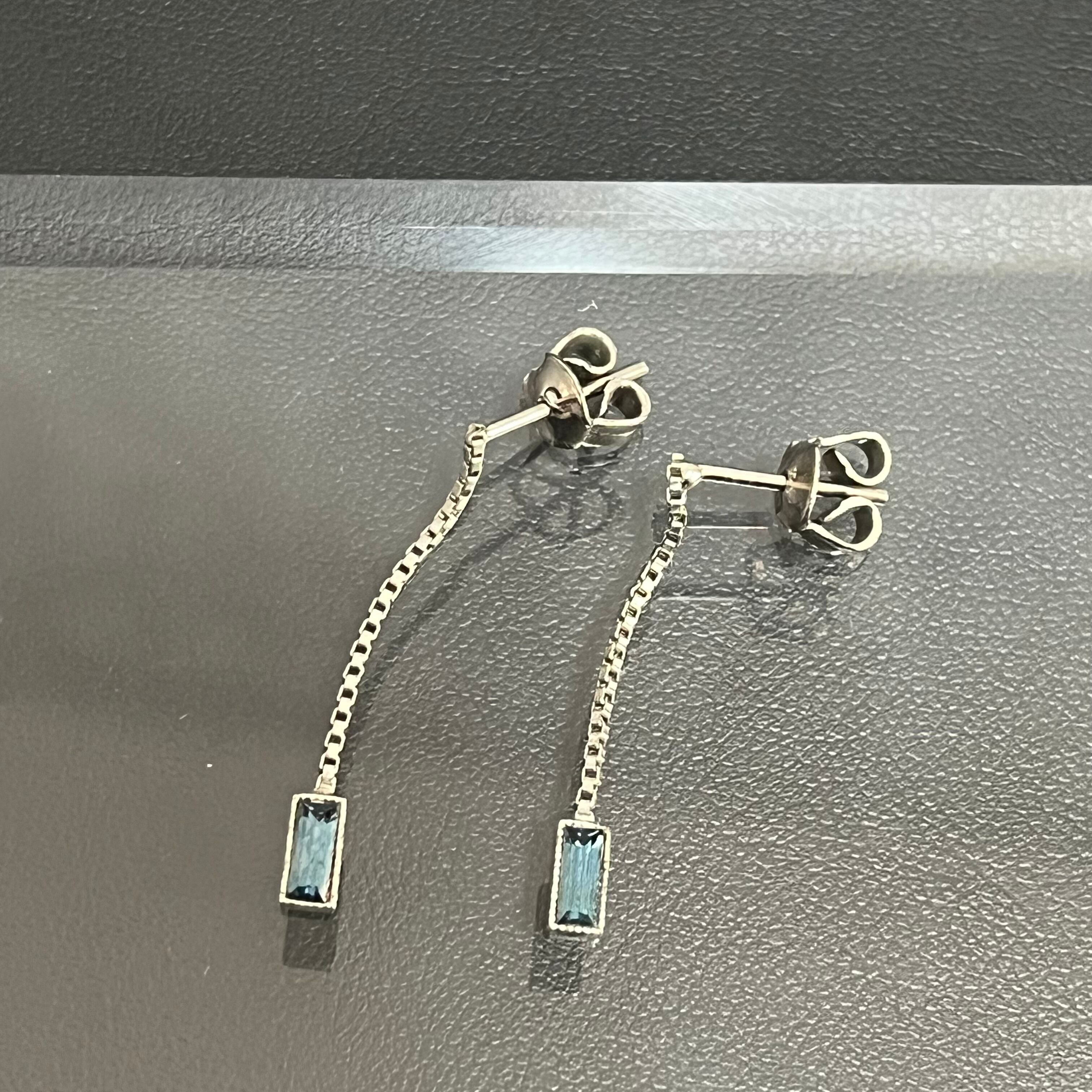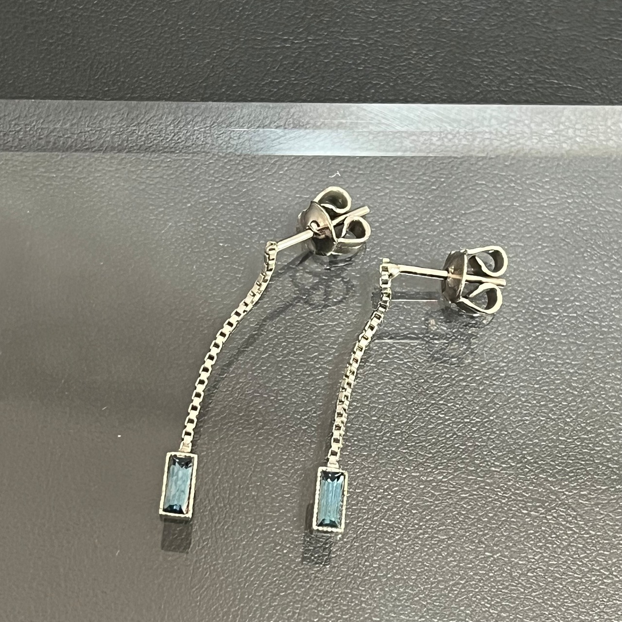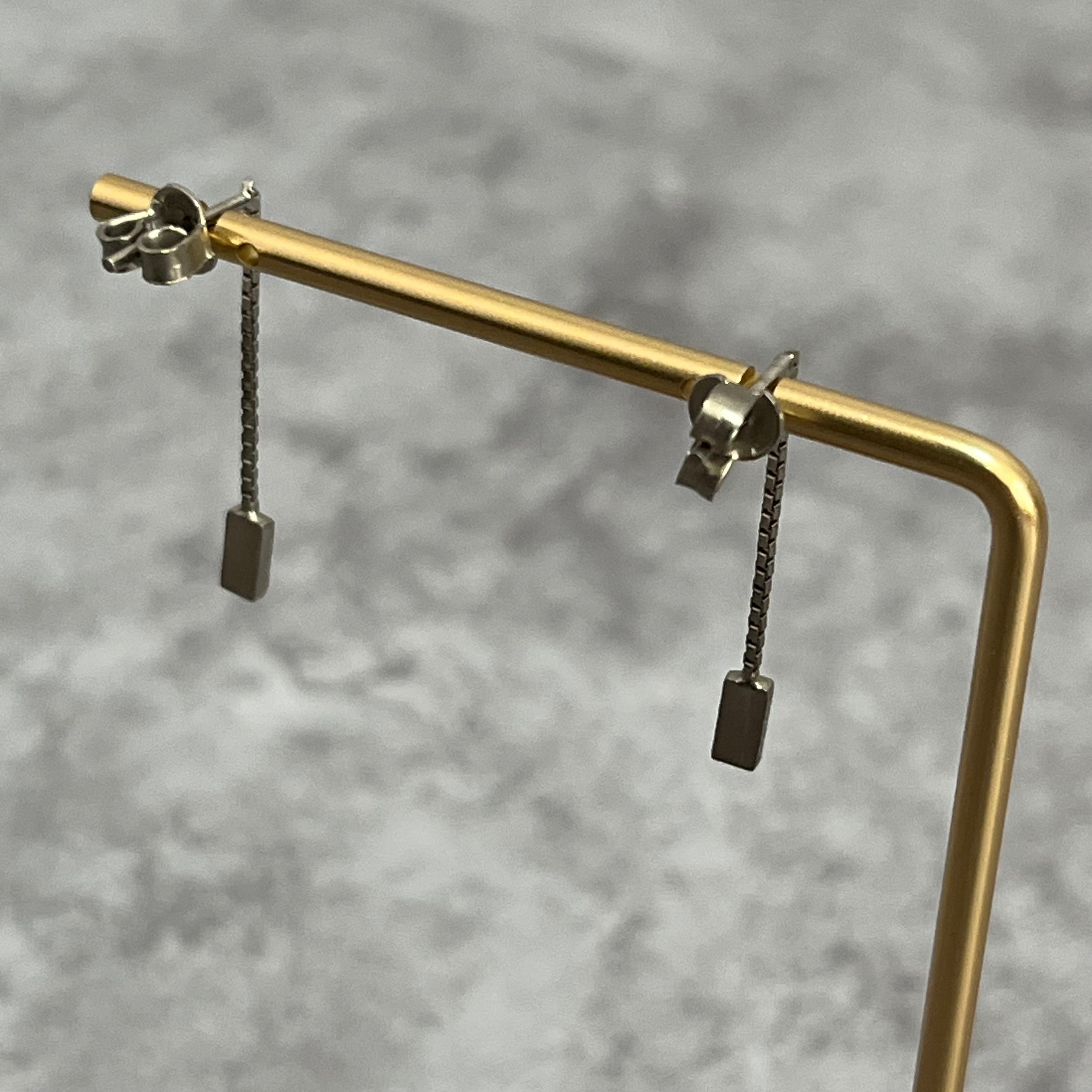 デザインピアス ロングピアス ストーン ブルー 四角 スクエア シンプル シルバー