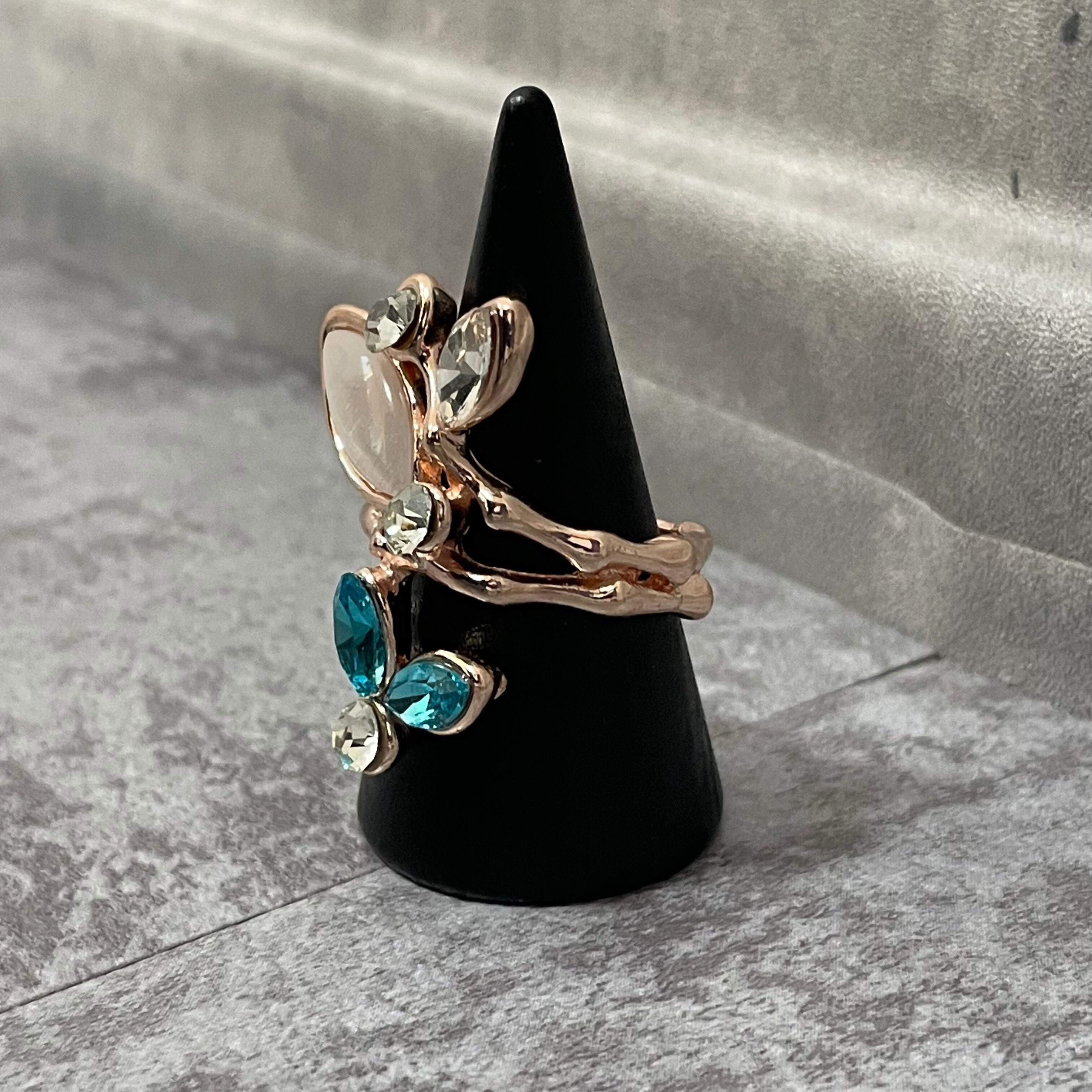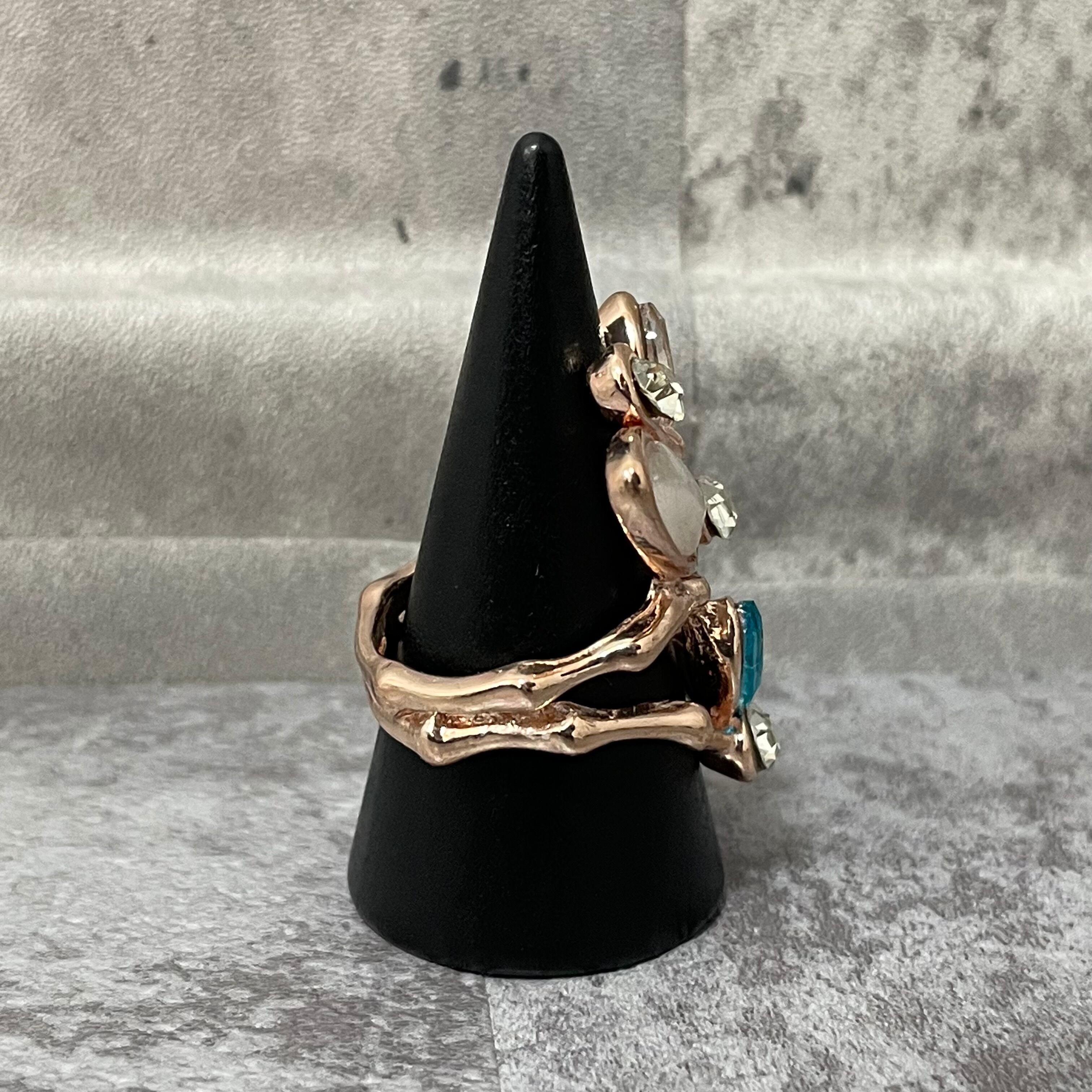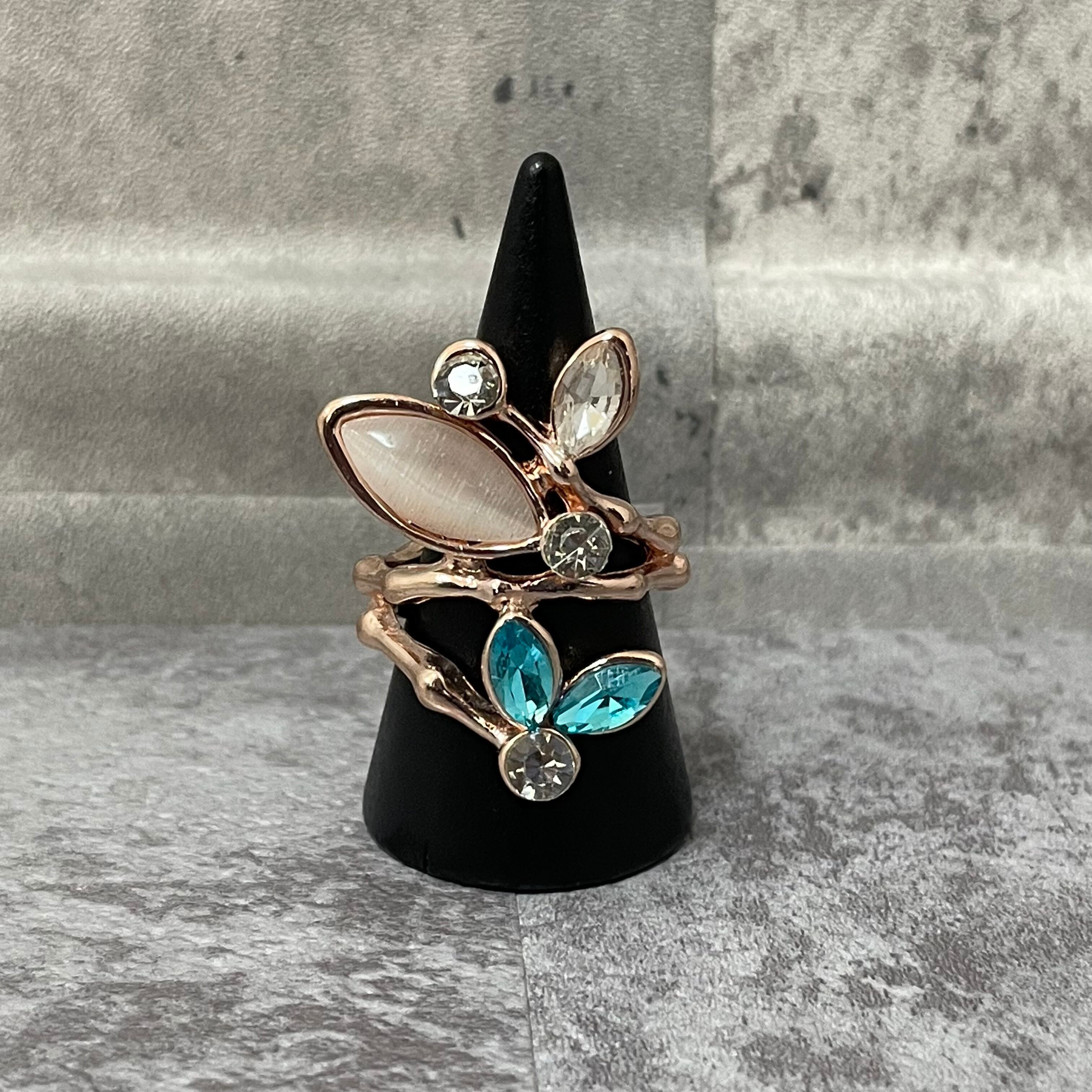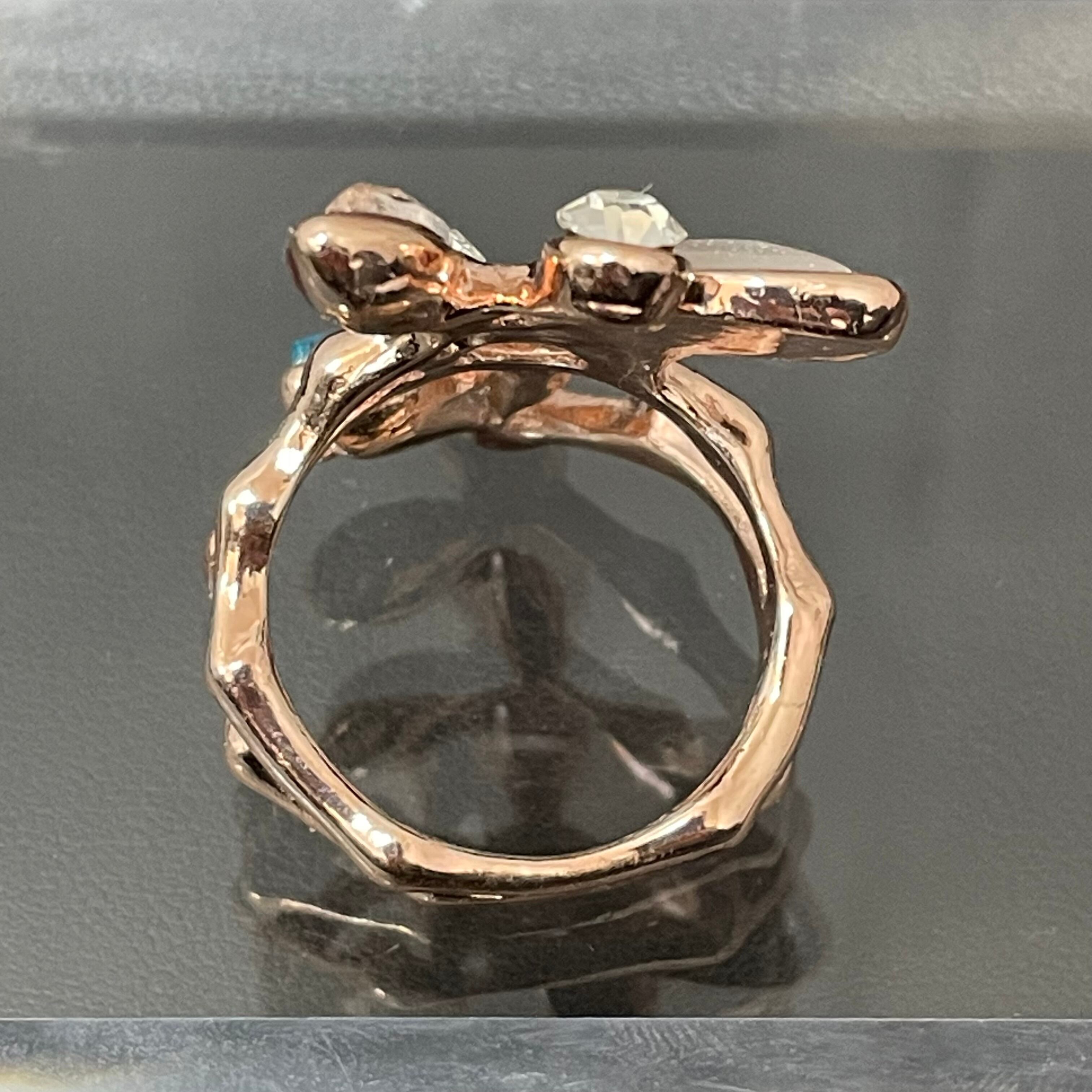 デザインリング ストーンモチーフ リーフモチーフ ゴールド マルチカラー シルバー ブルー 薄ピンク