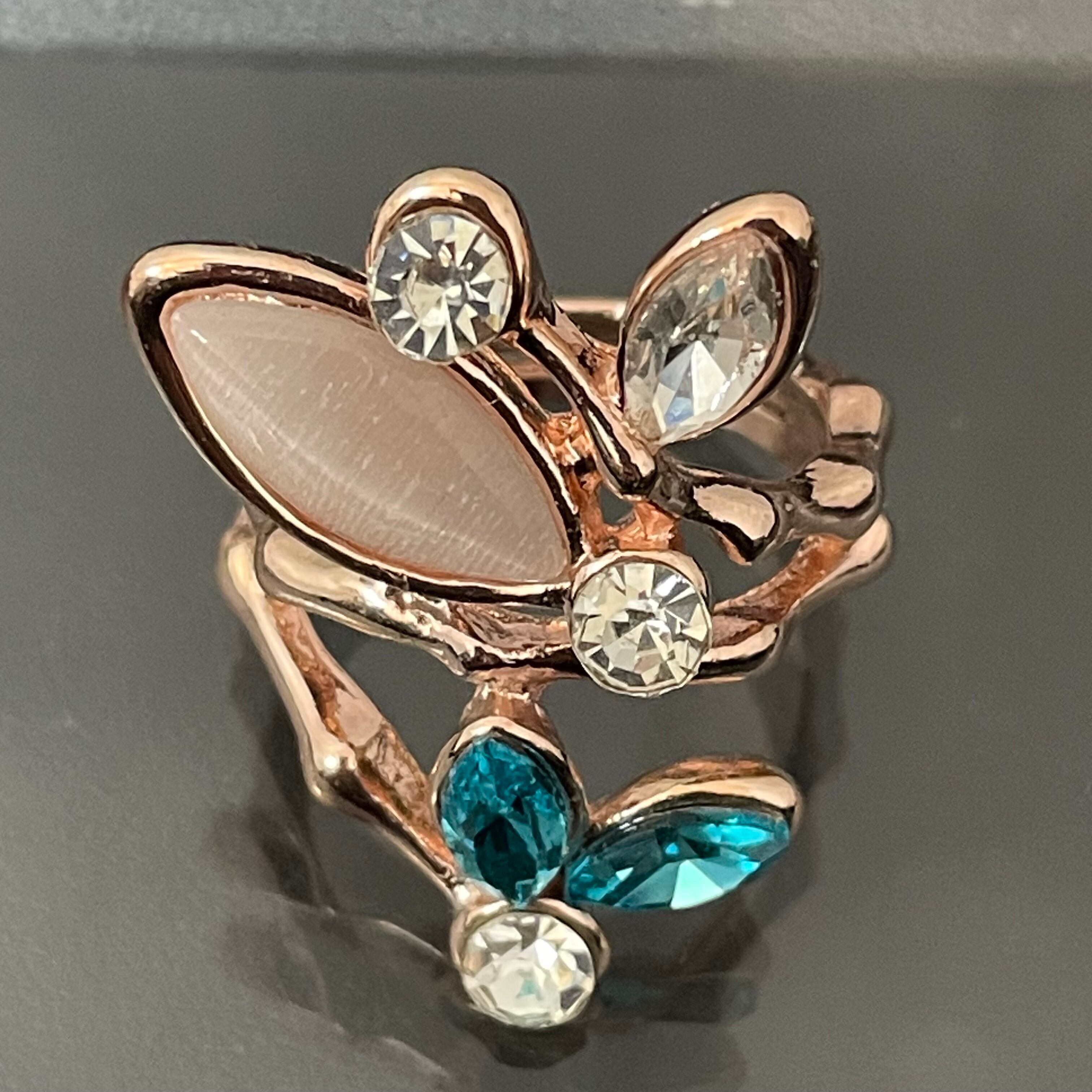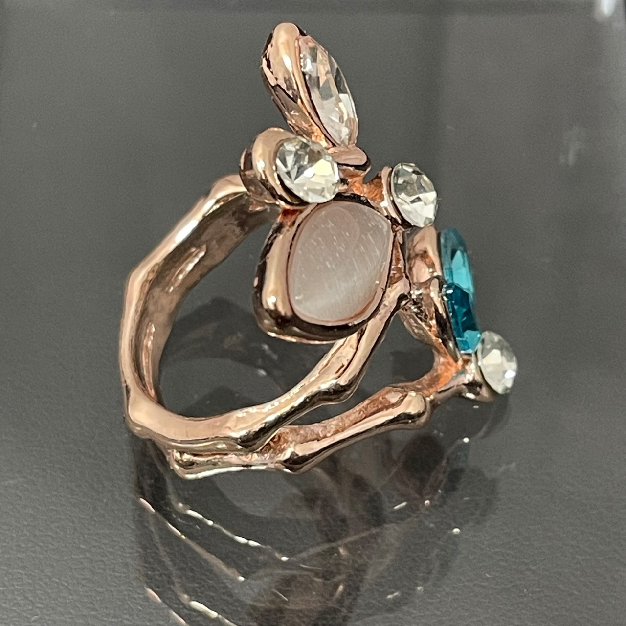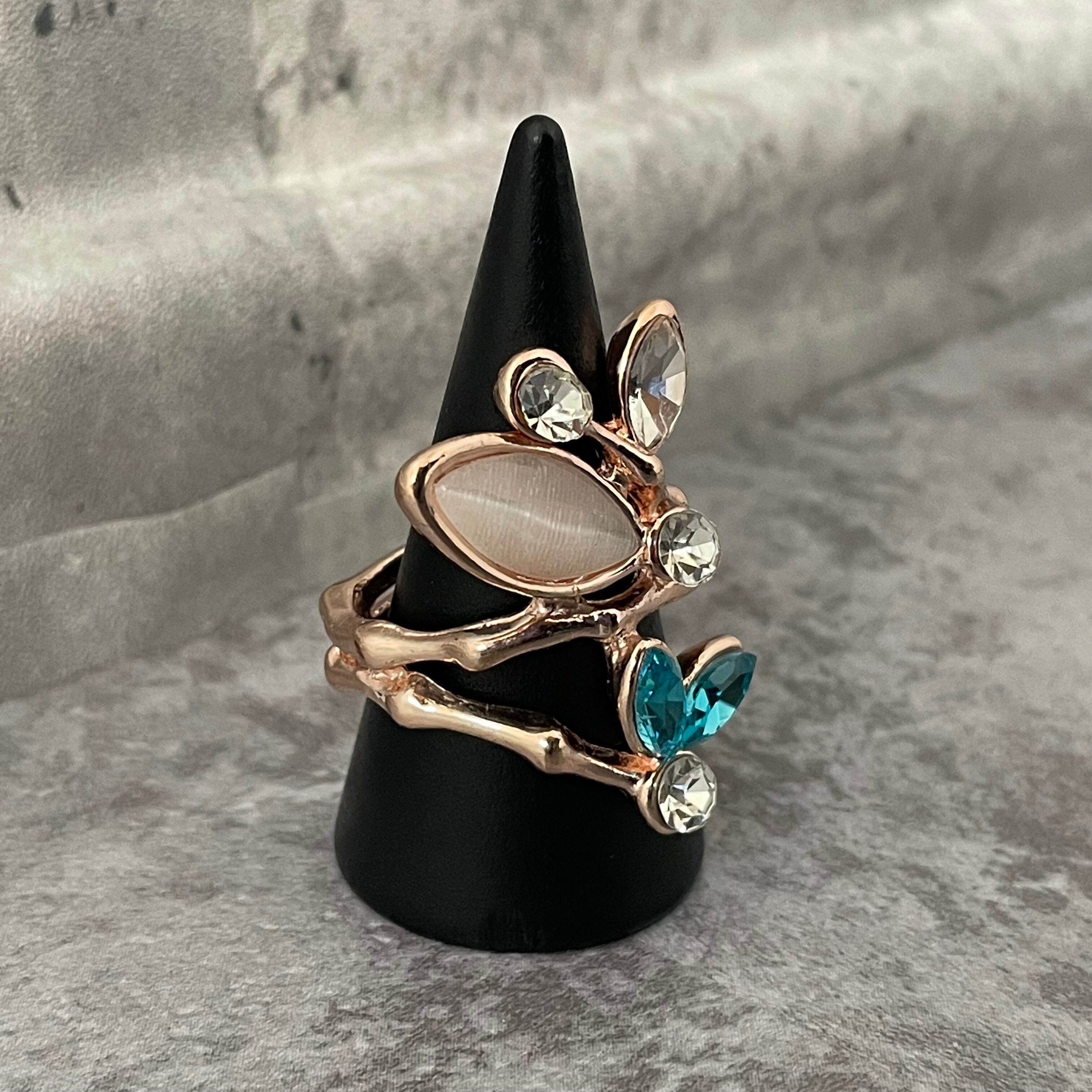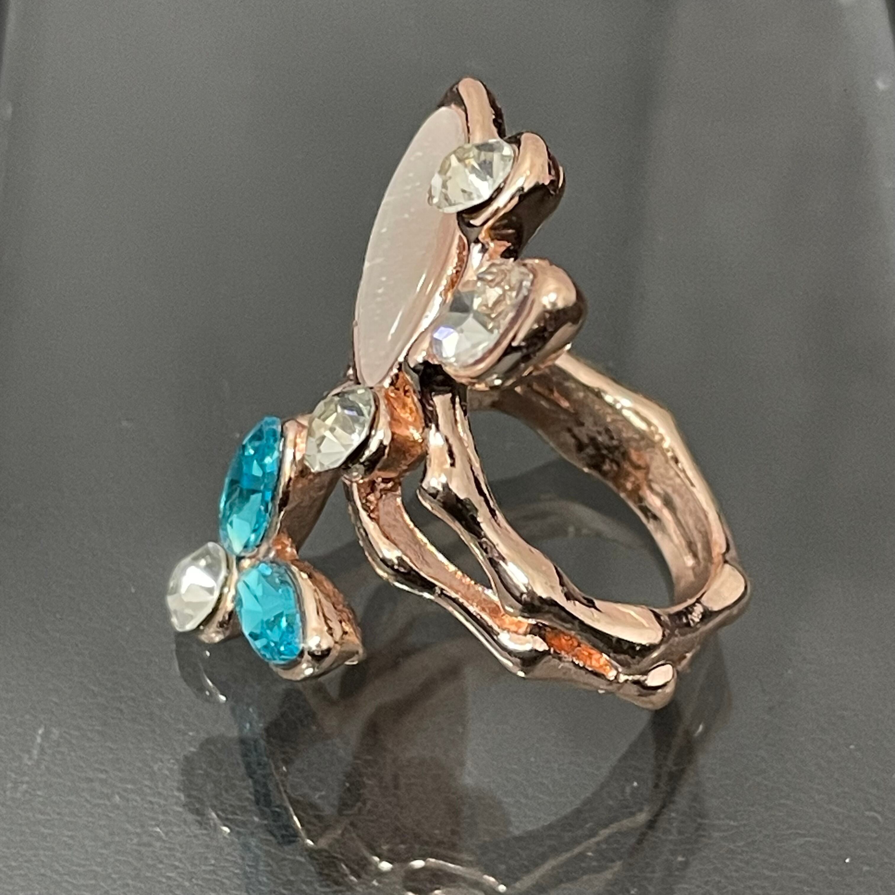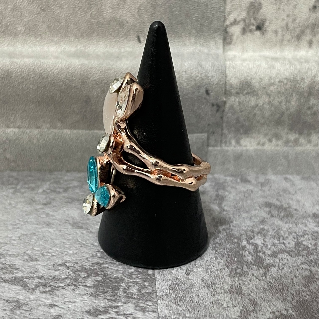 デザインリング ストーンモチーフ リーフモチーフ ゴールド マルチカラー シルバー ブルー 薄ピンク