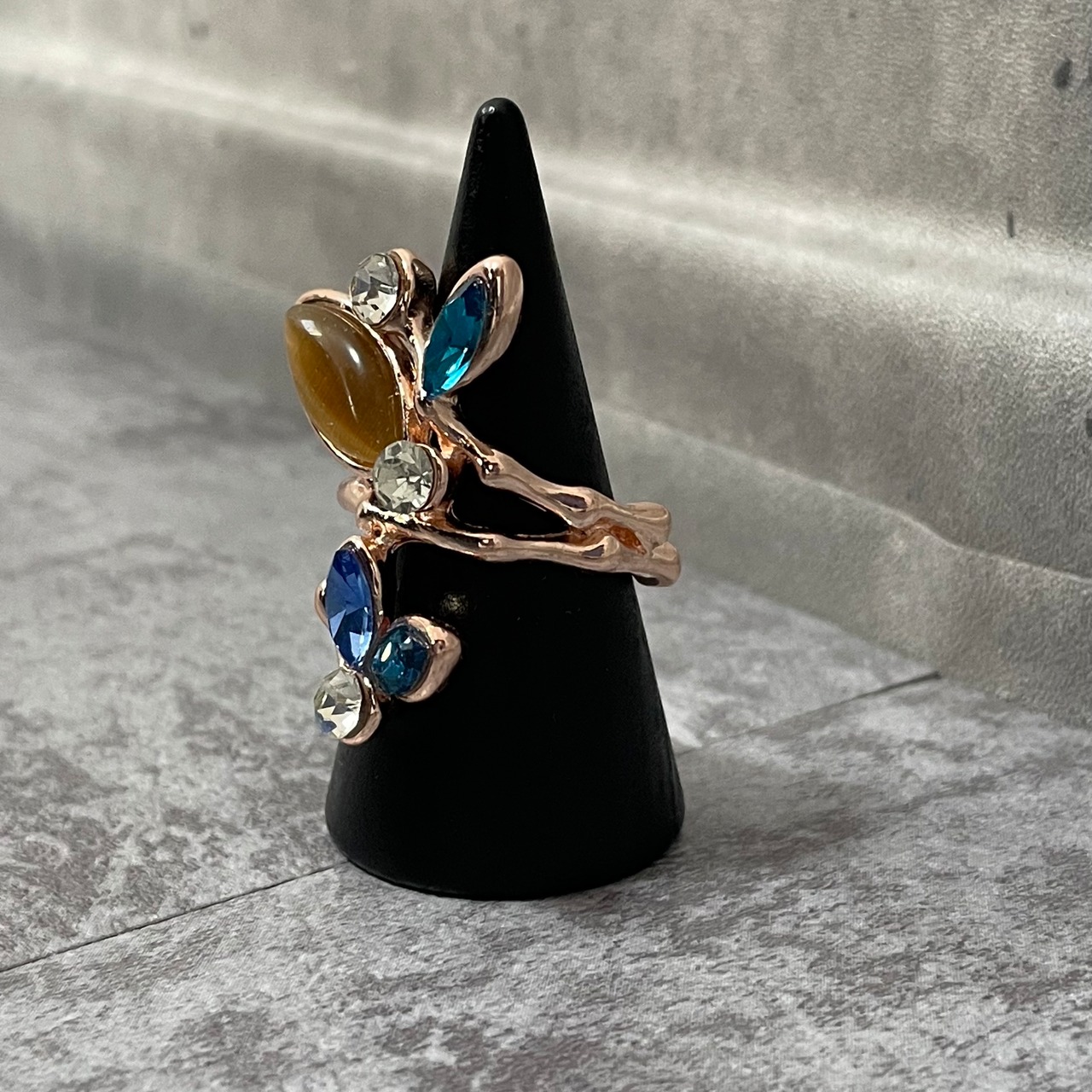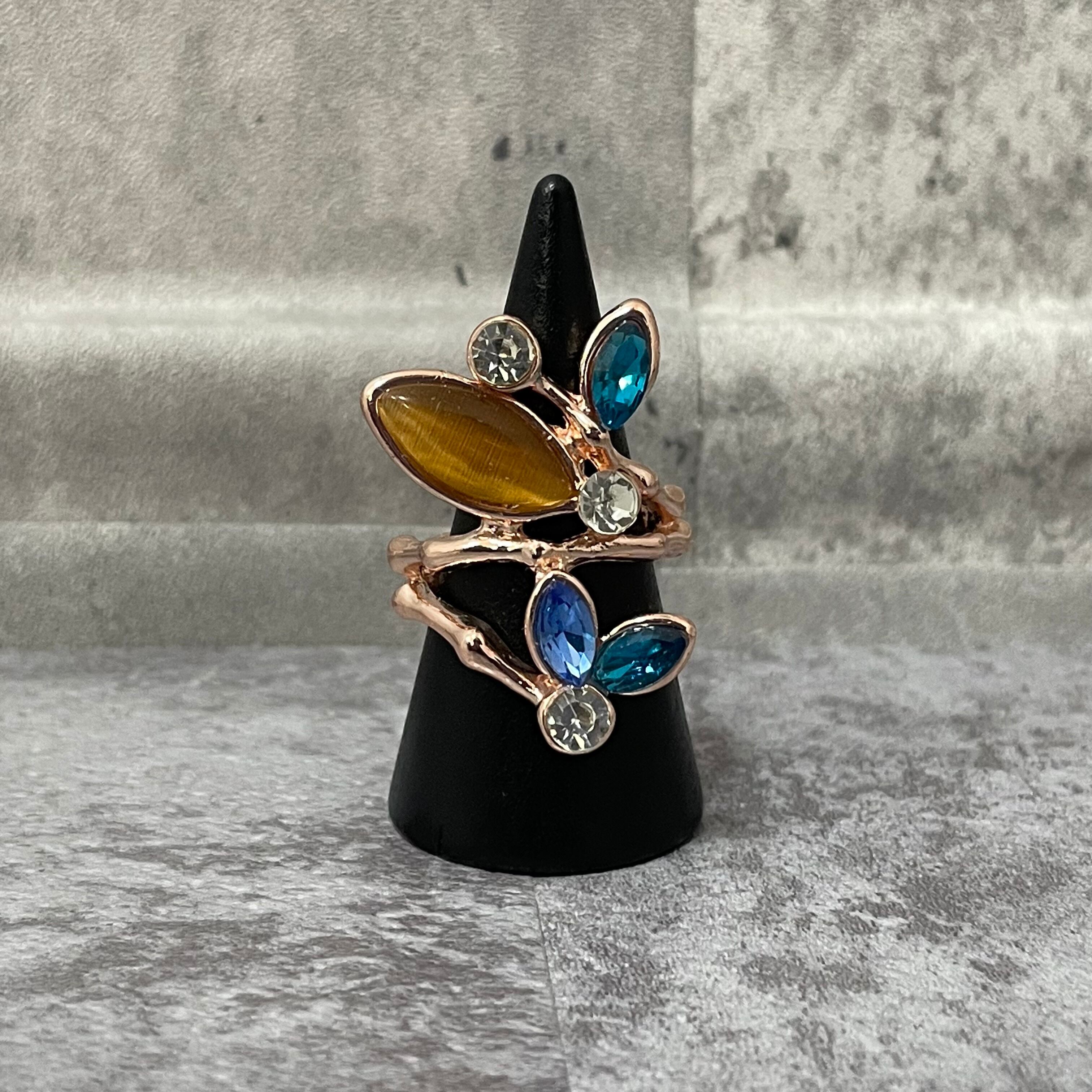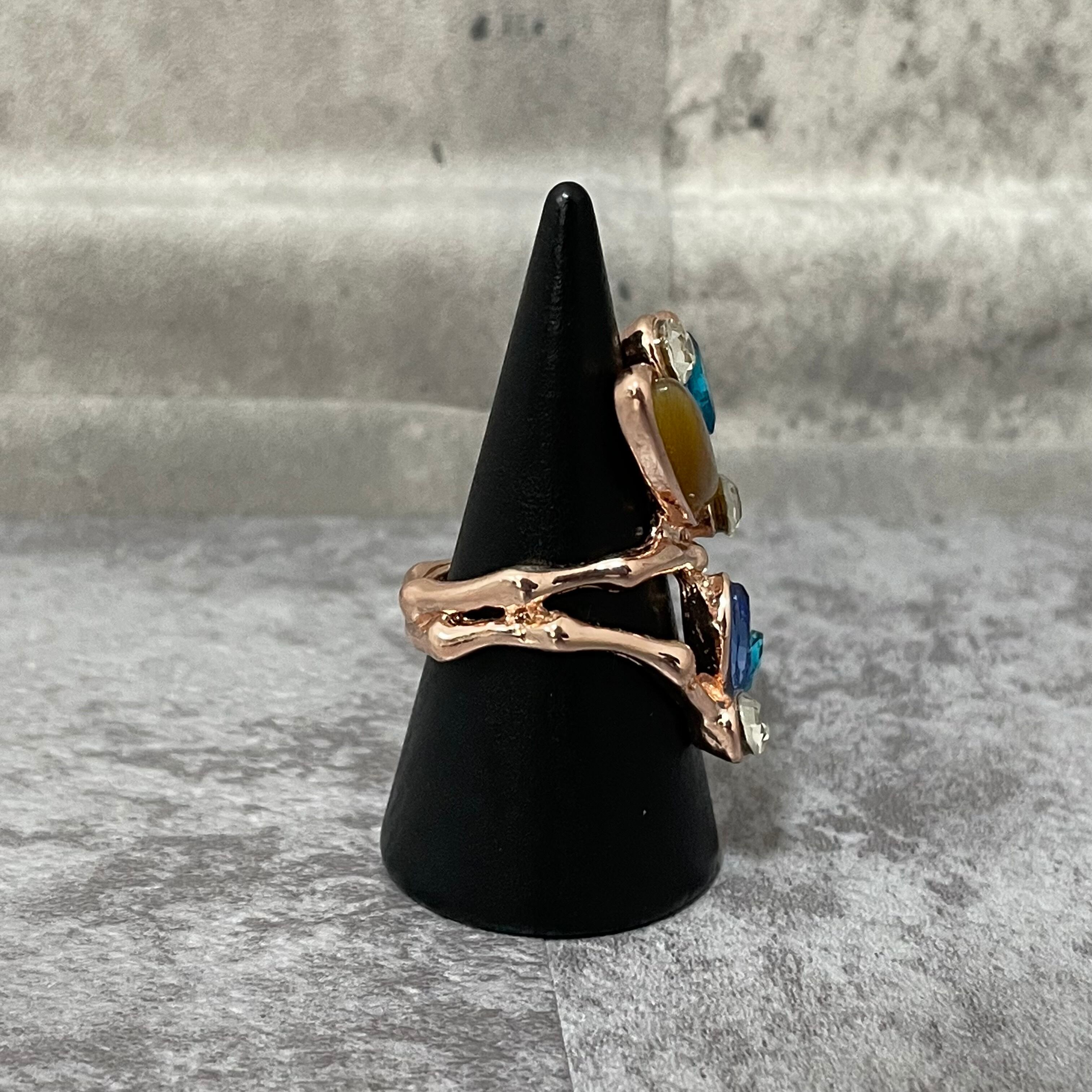 デザインリング ストーンモチーフ リーフモチーフ ゴールド マルチカラー シルバー ブルー ブラウン ライトブルー