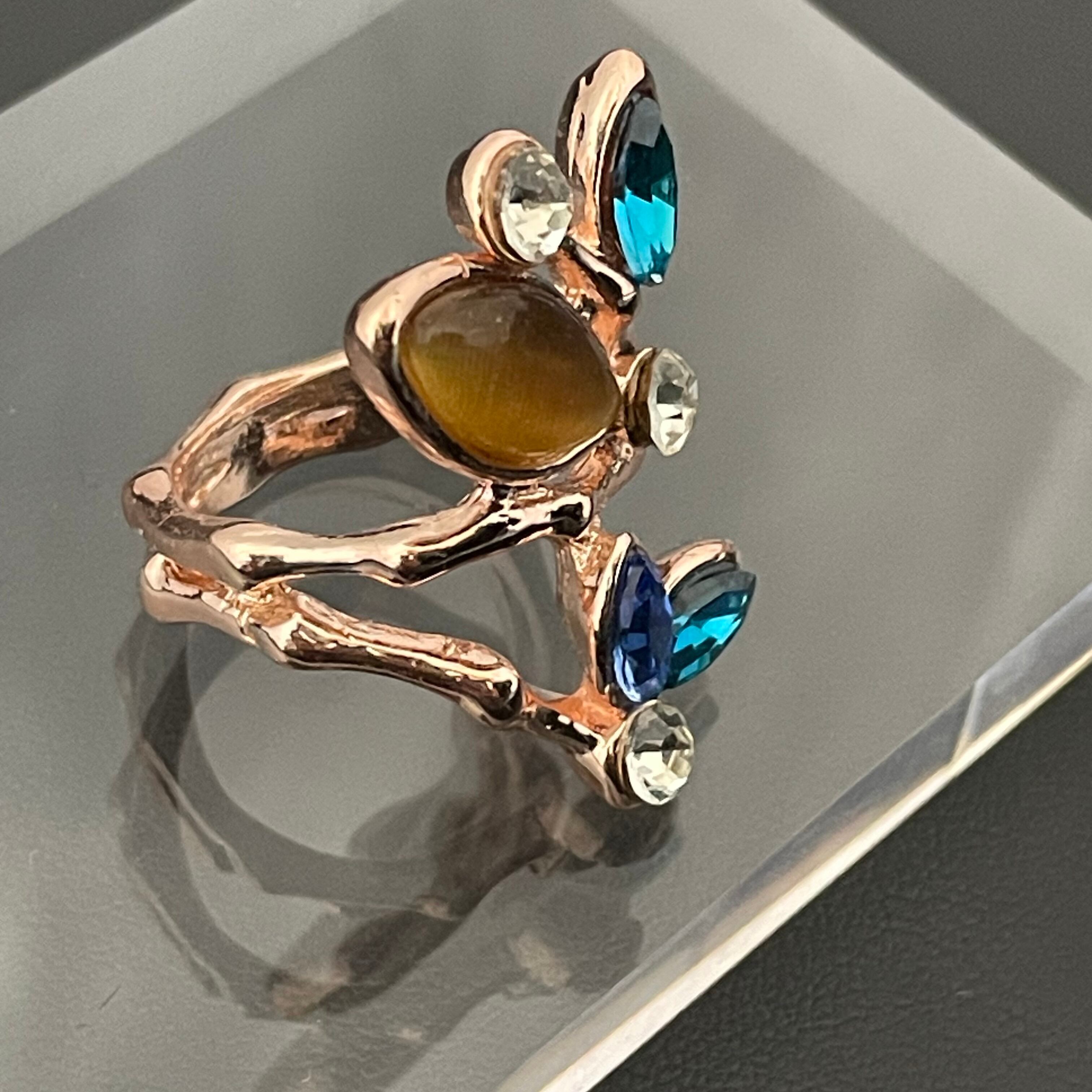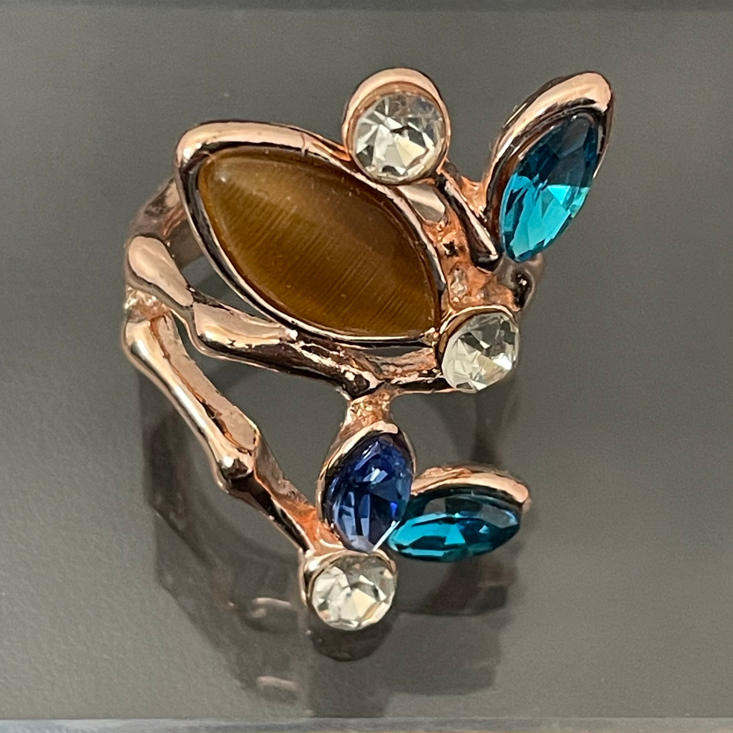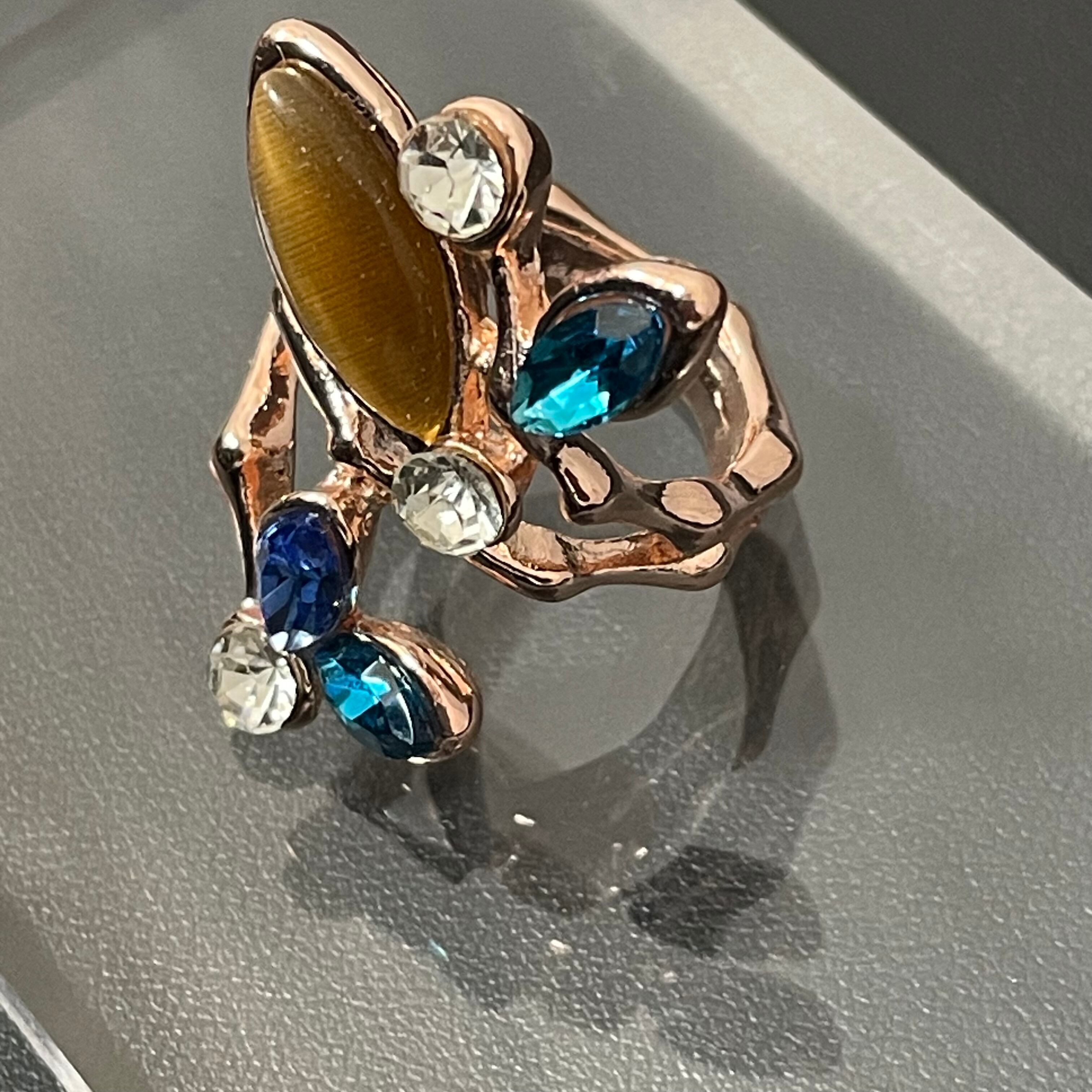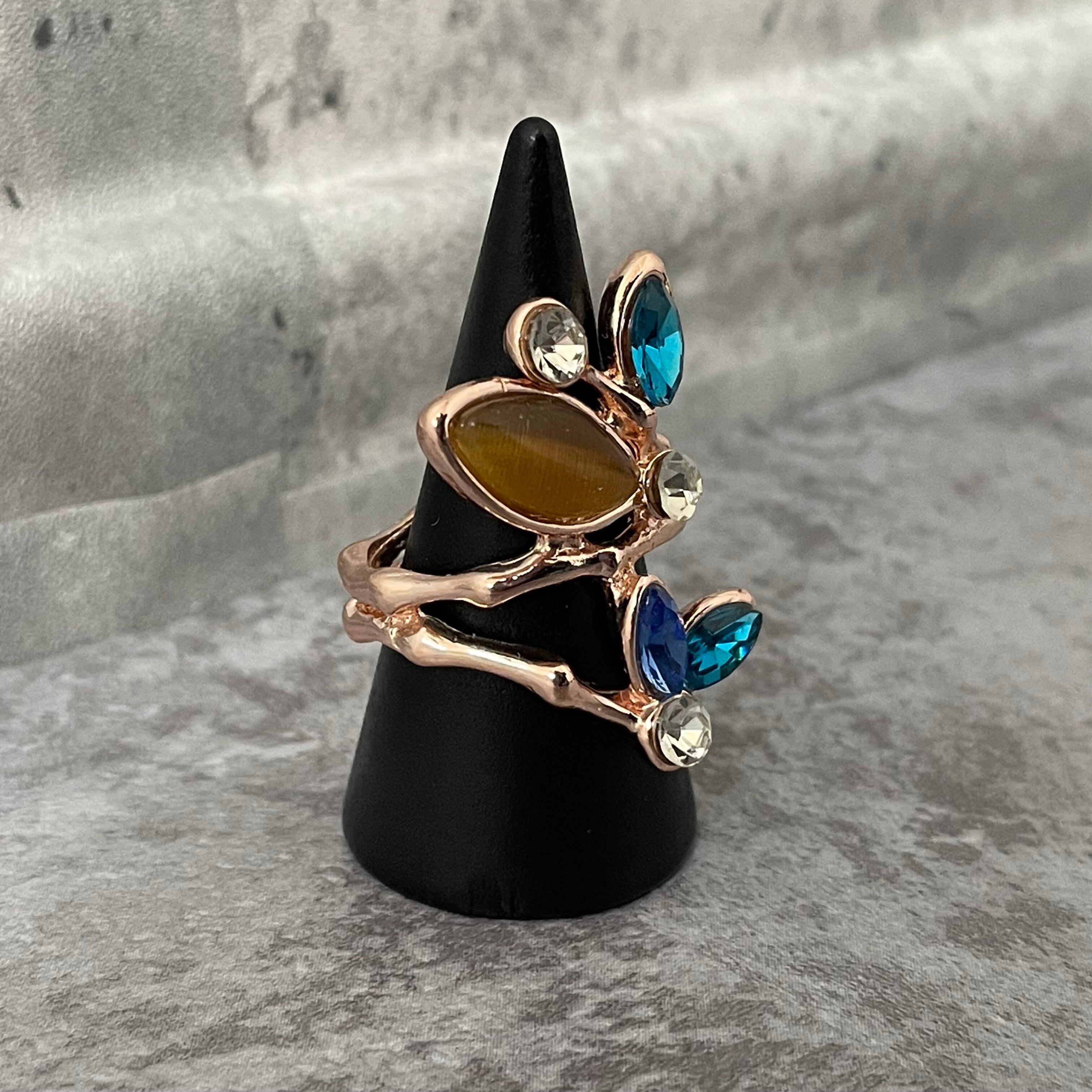 デザインリング ストーンモチーフ リーフモチーフ ゴールド マルチカラー シルバー ブルー ブラウン ライトブルー