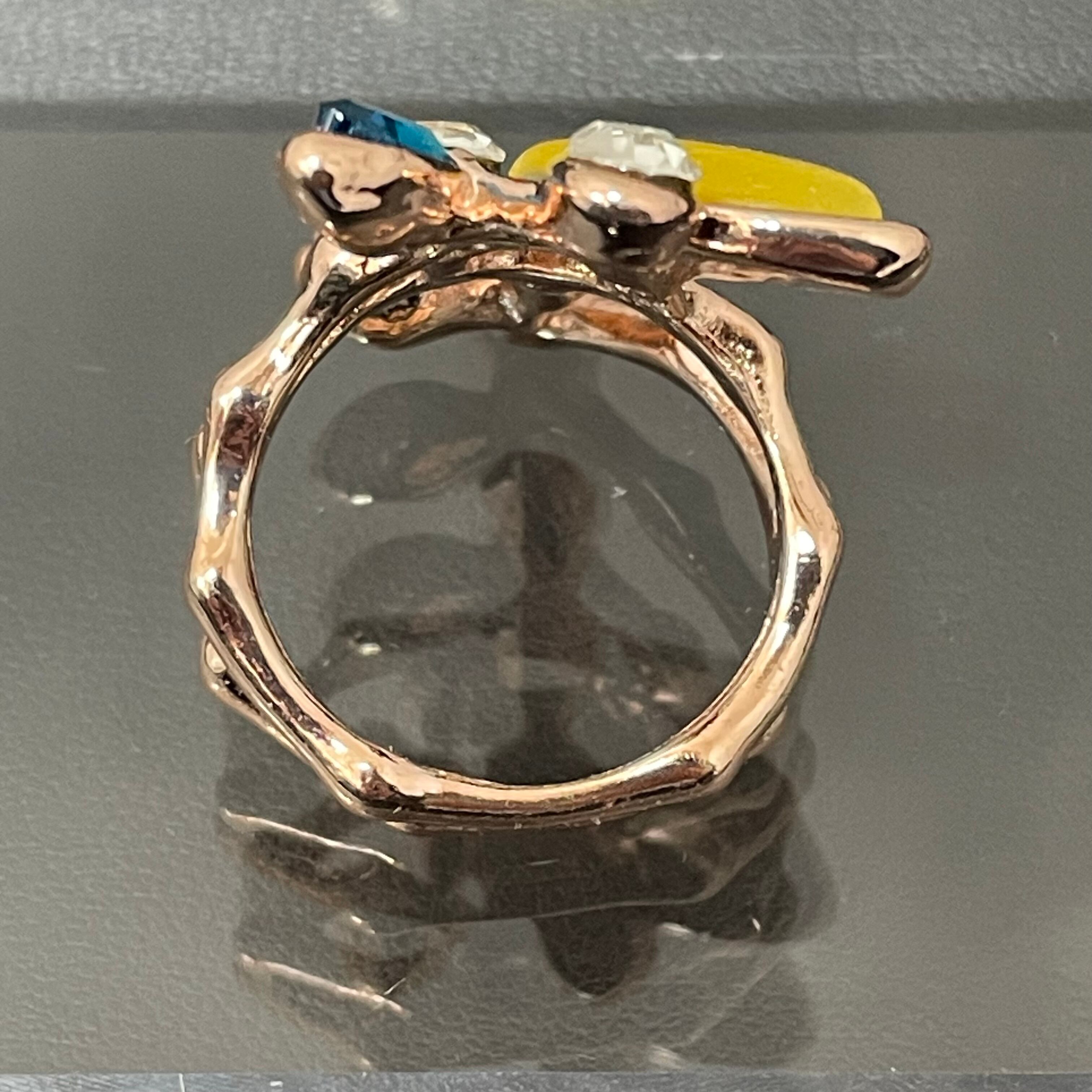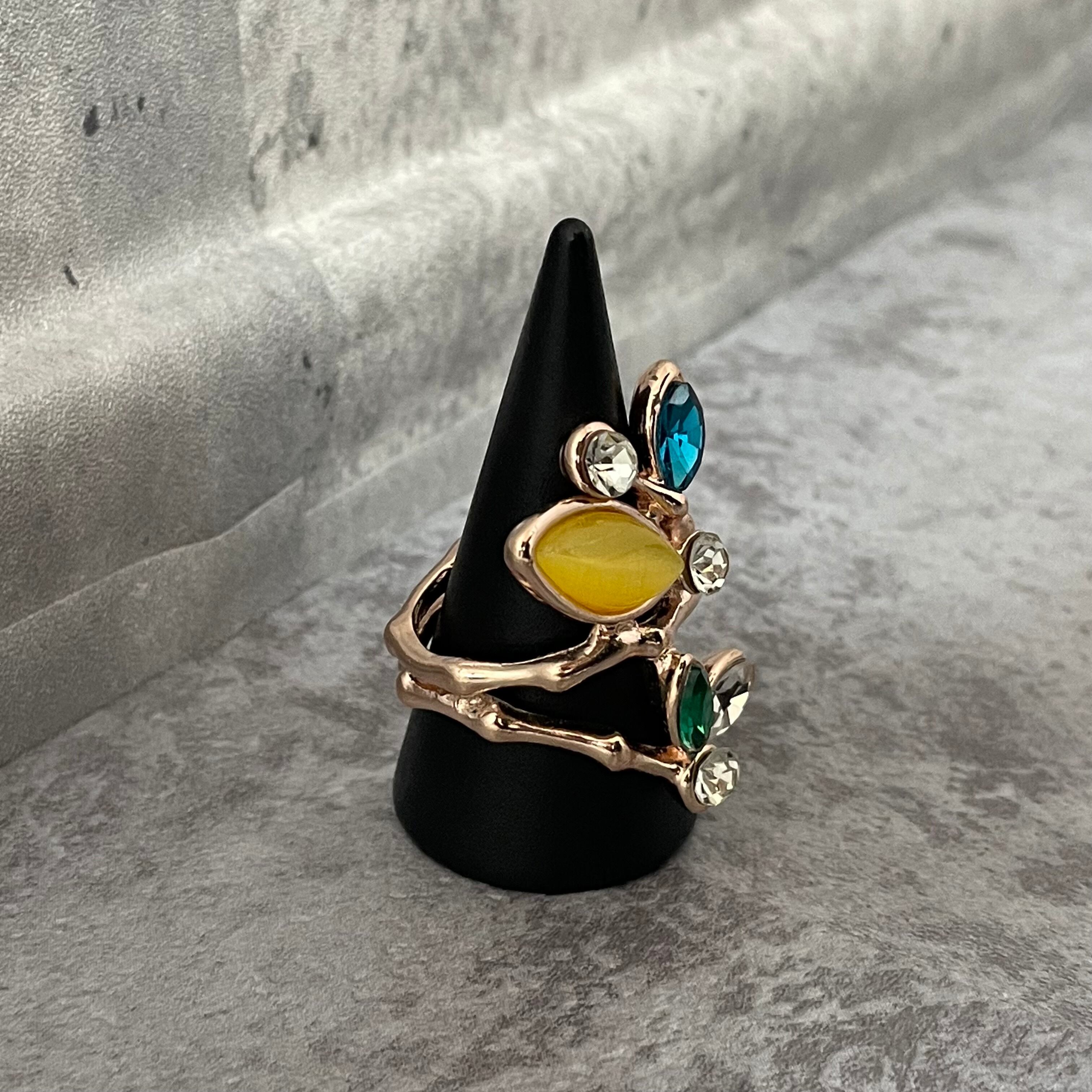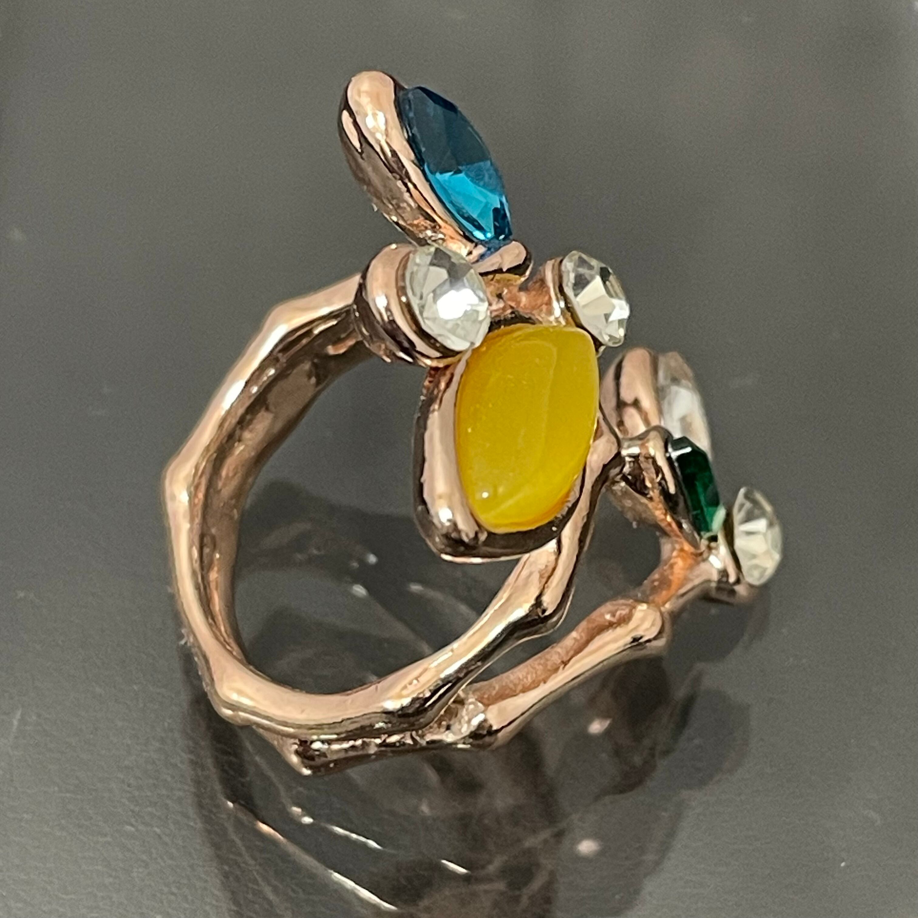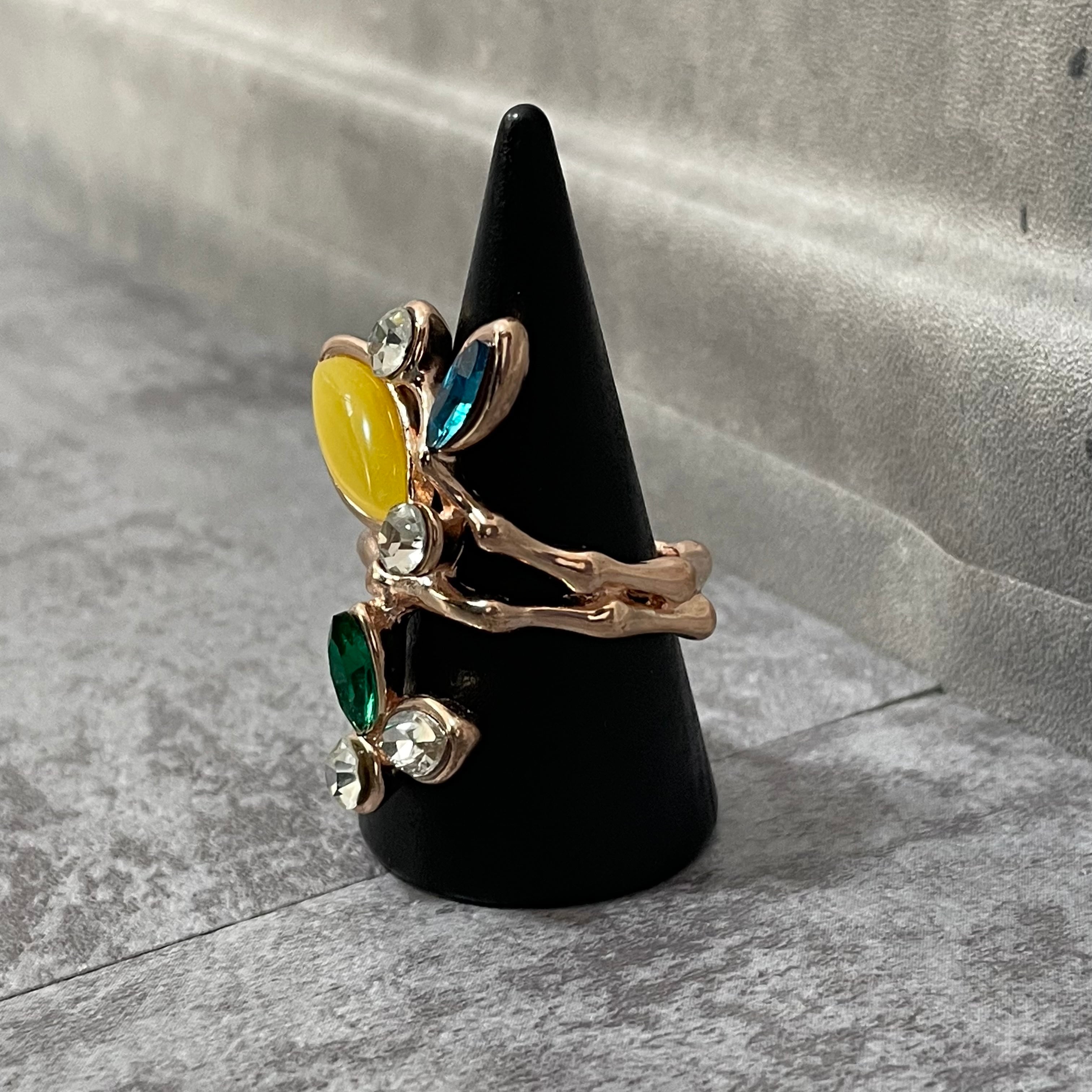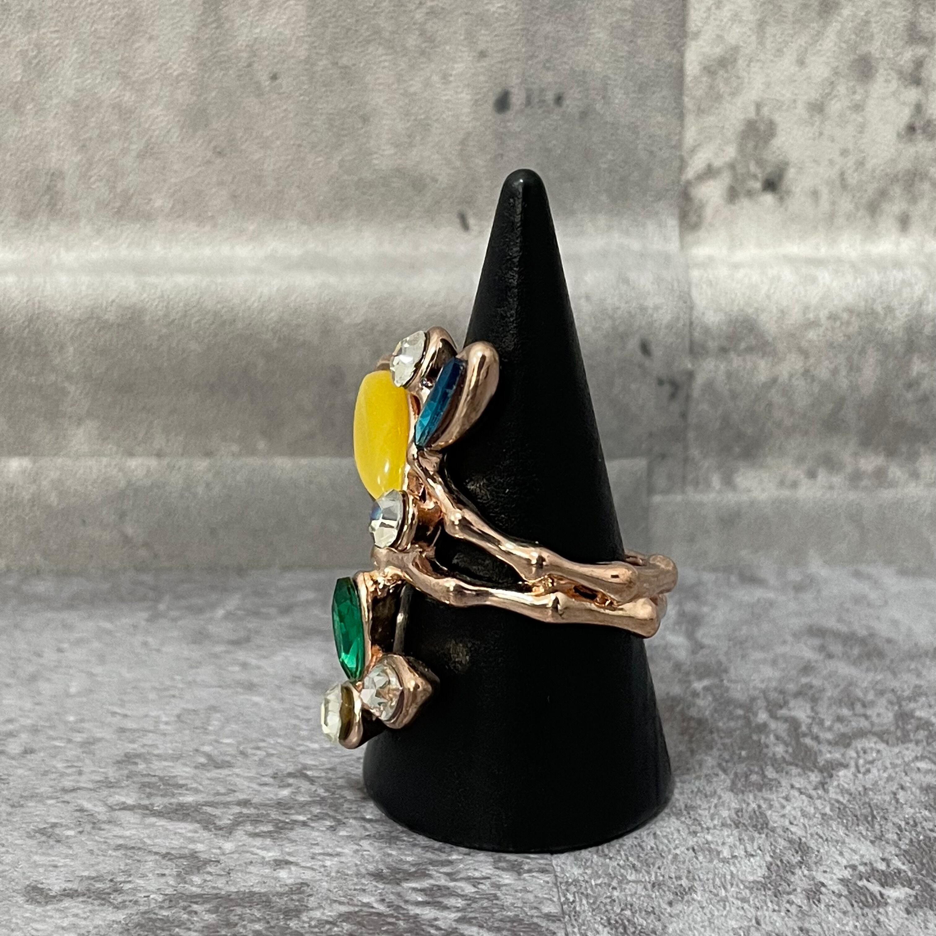 デザインリング ストーンモチーフ リーフモチーフ ゴールド マルチカラー イエロー ブルー グリーン
