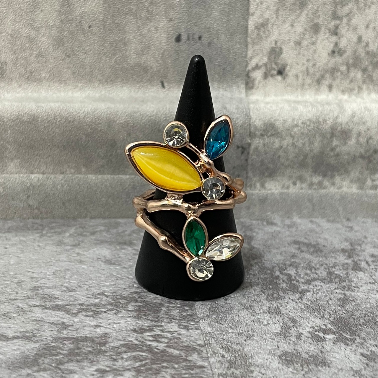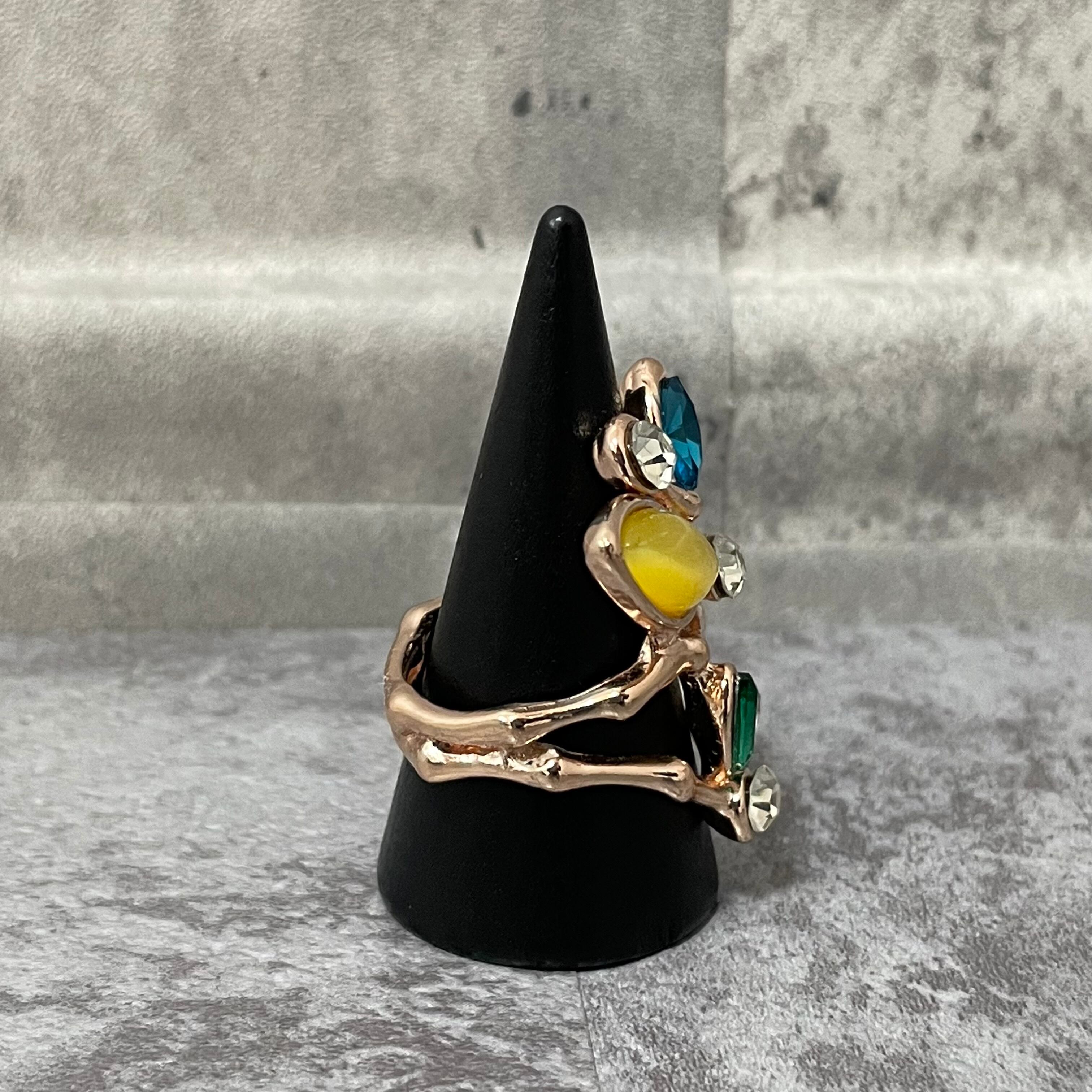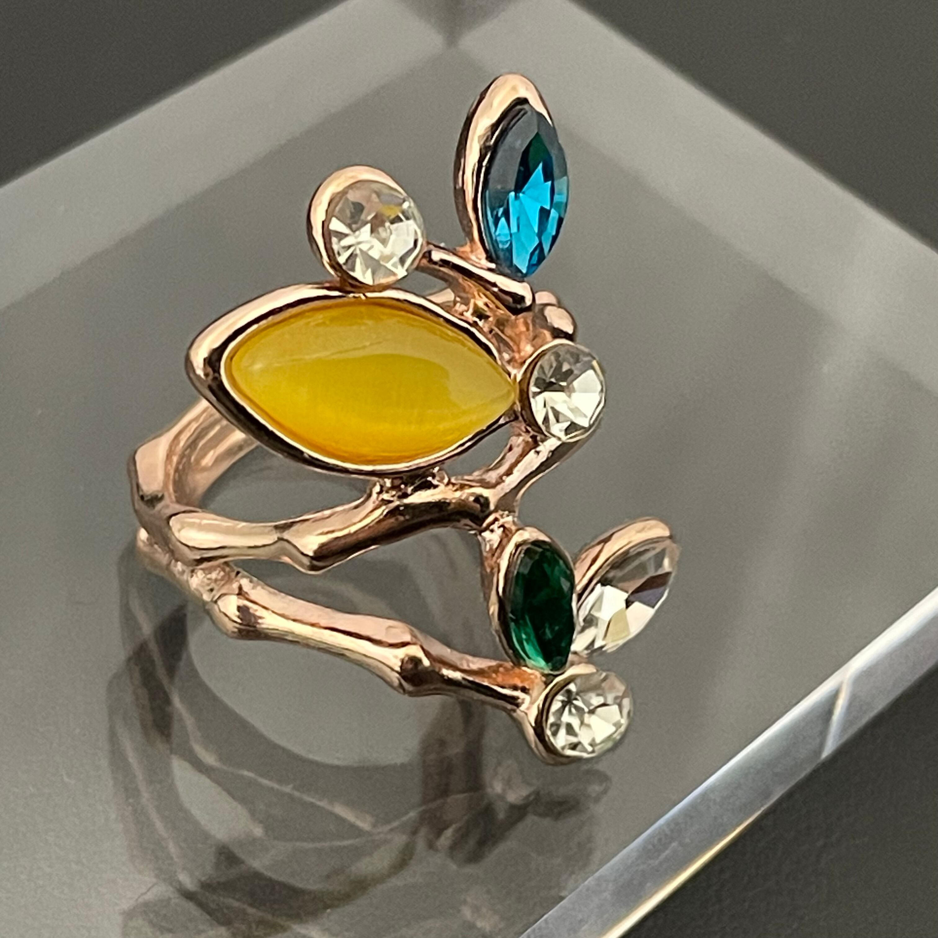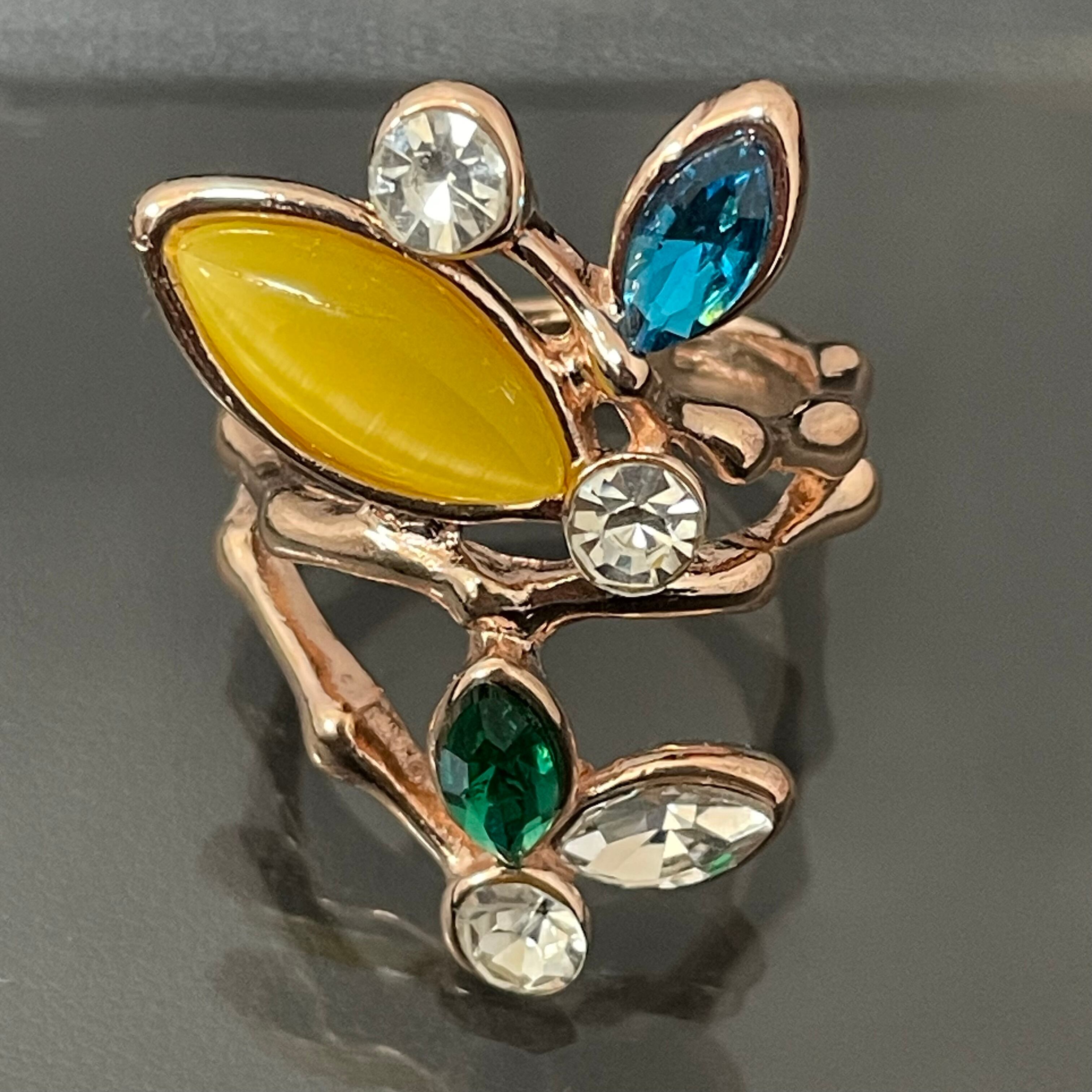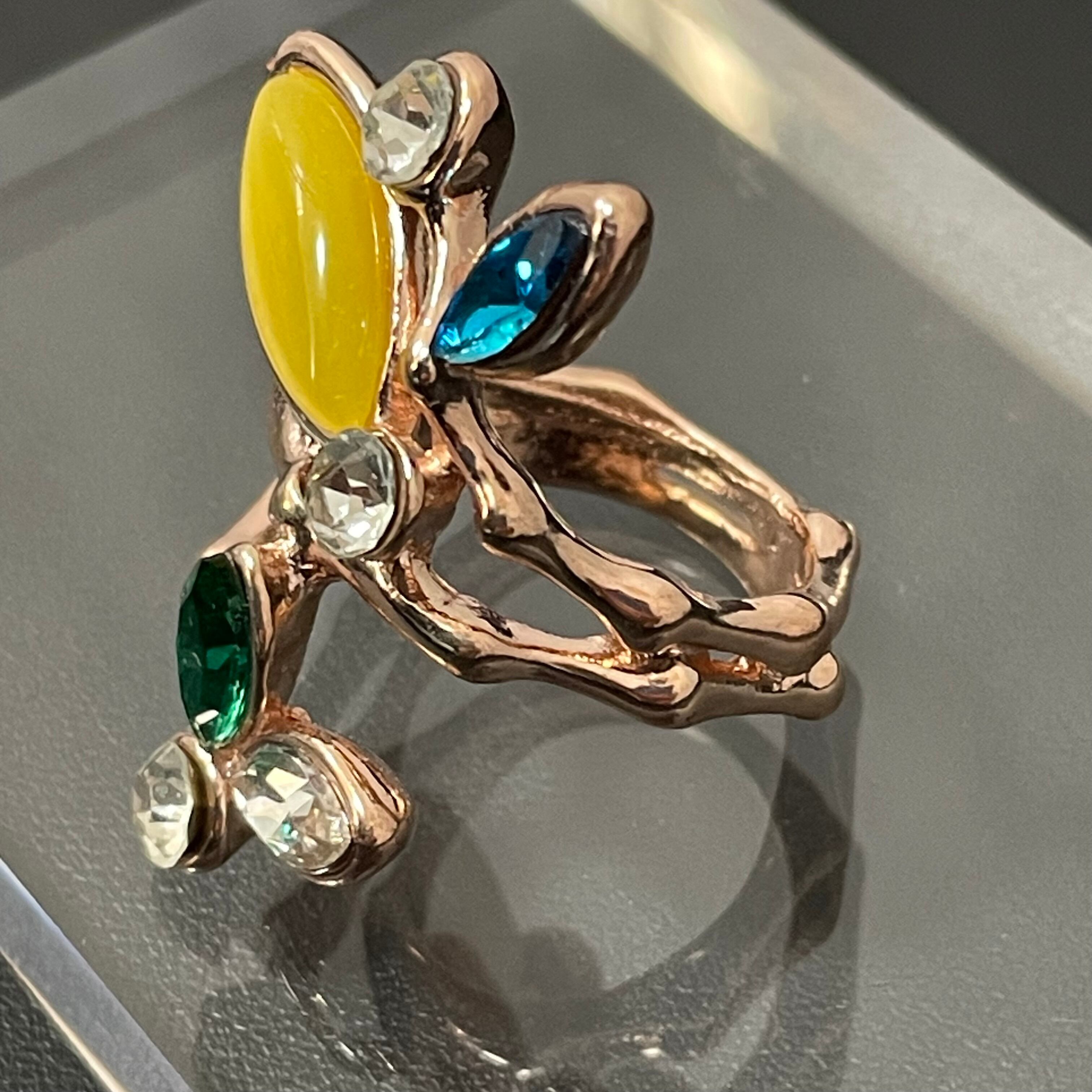 デザインリング ストーンモチーフ リーフモチーフ ゴールド マルチカラー イエロー ブルー グリーン