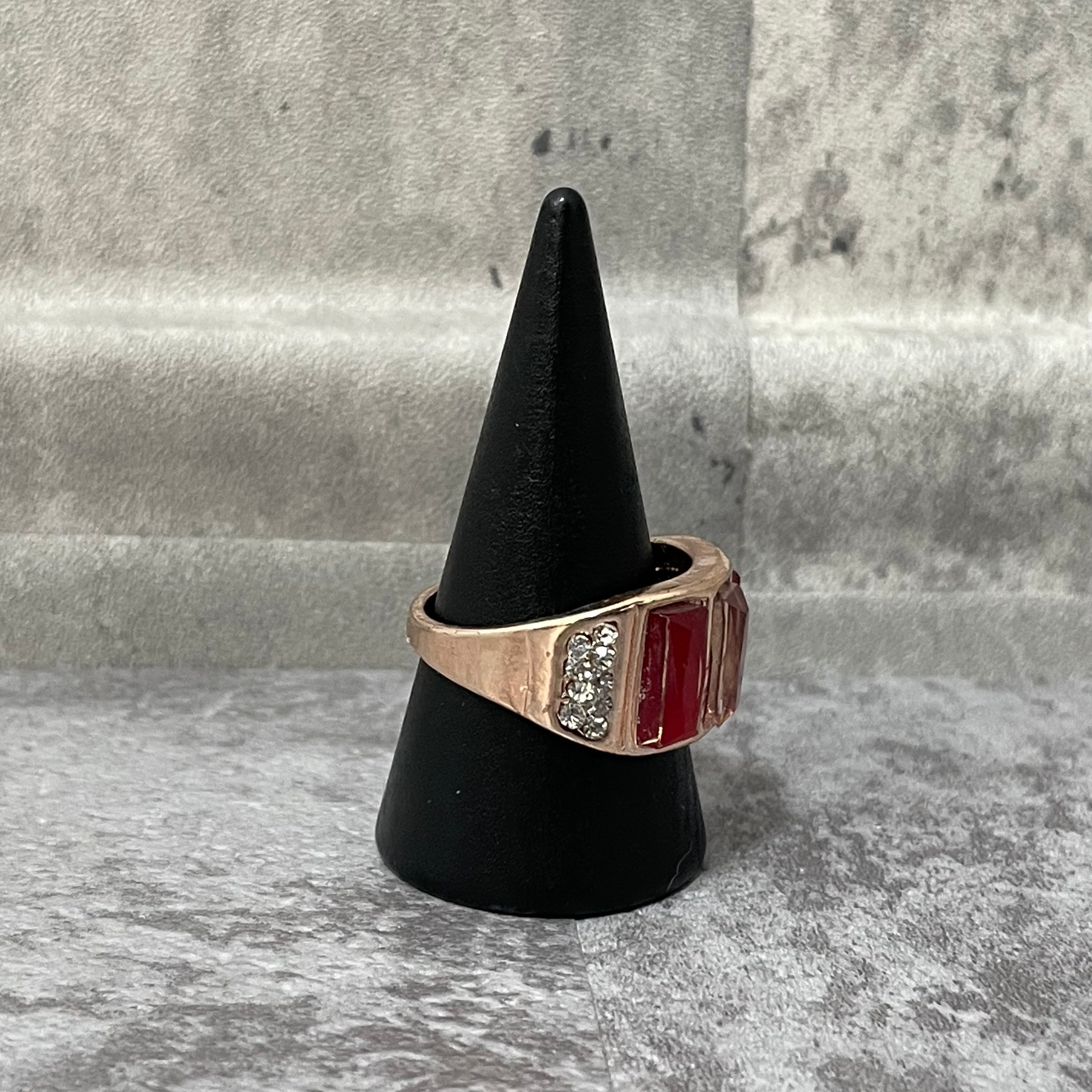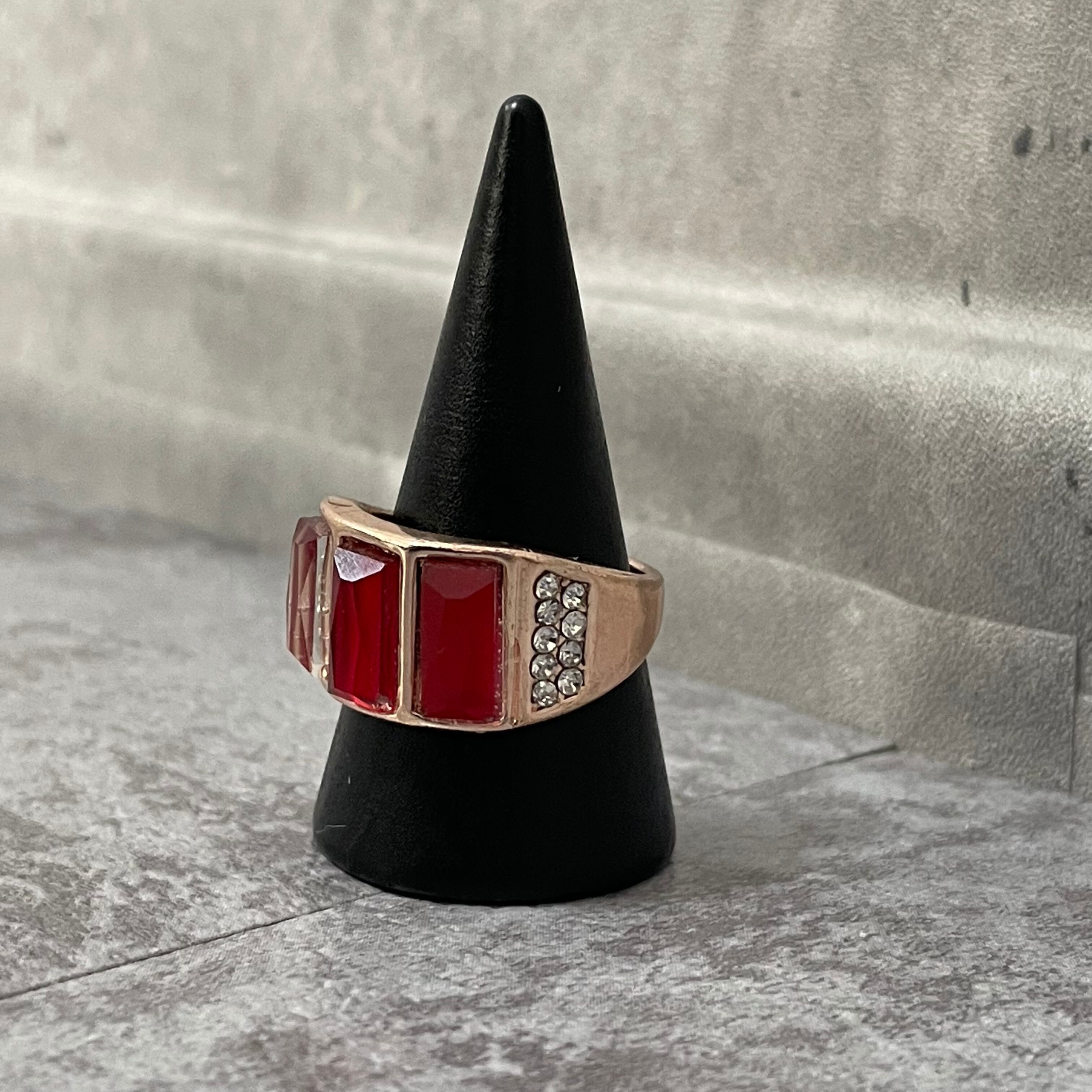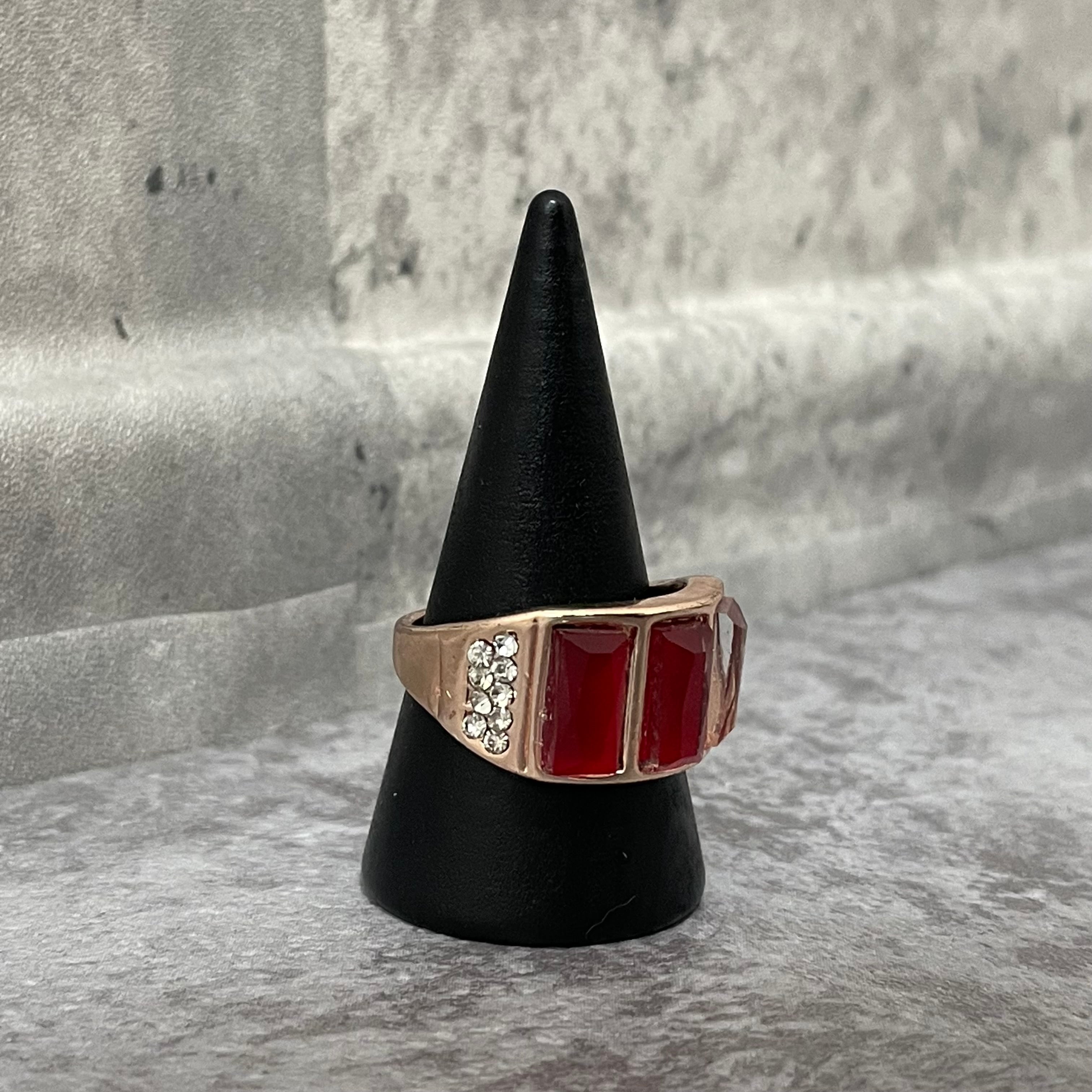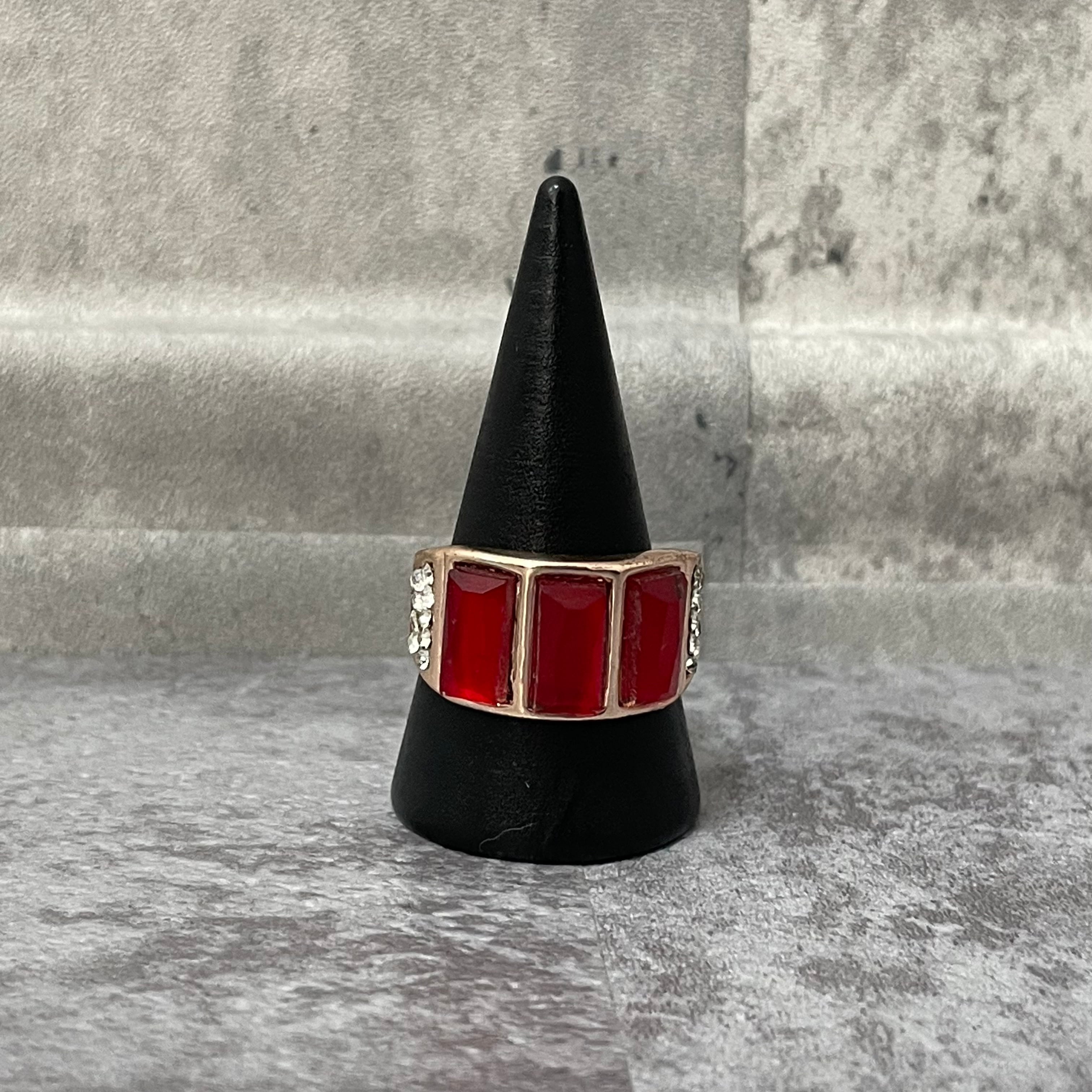 デザインリング ストーンモチーフ ゴールド レッド スクエア 四角形