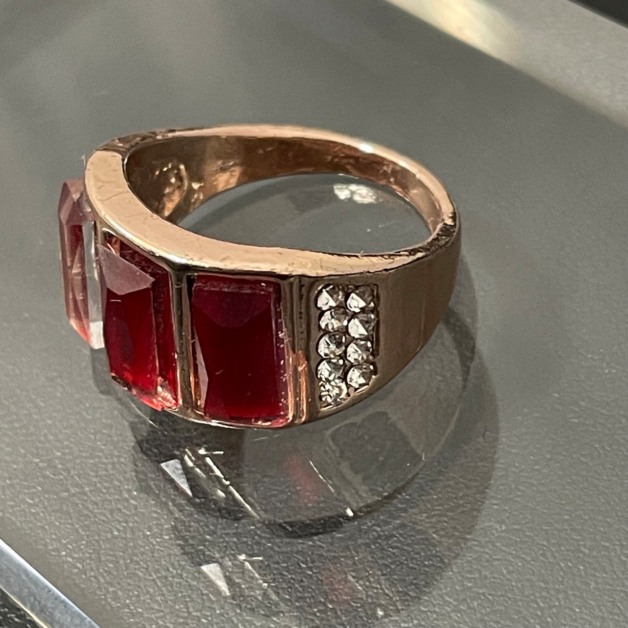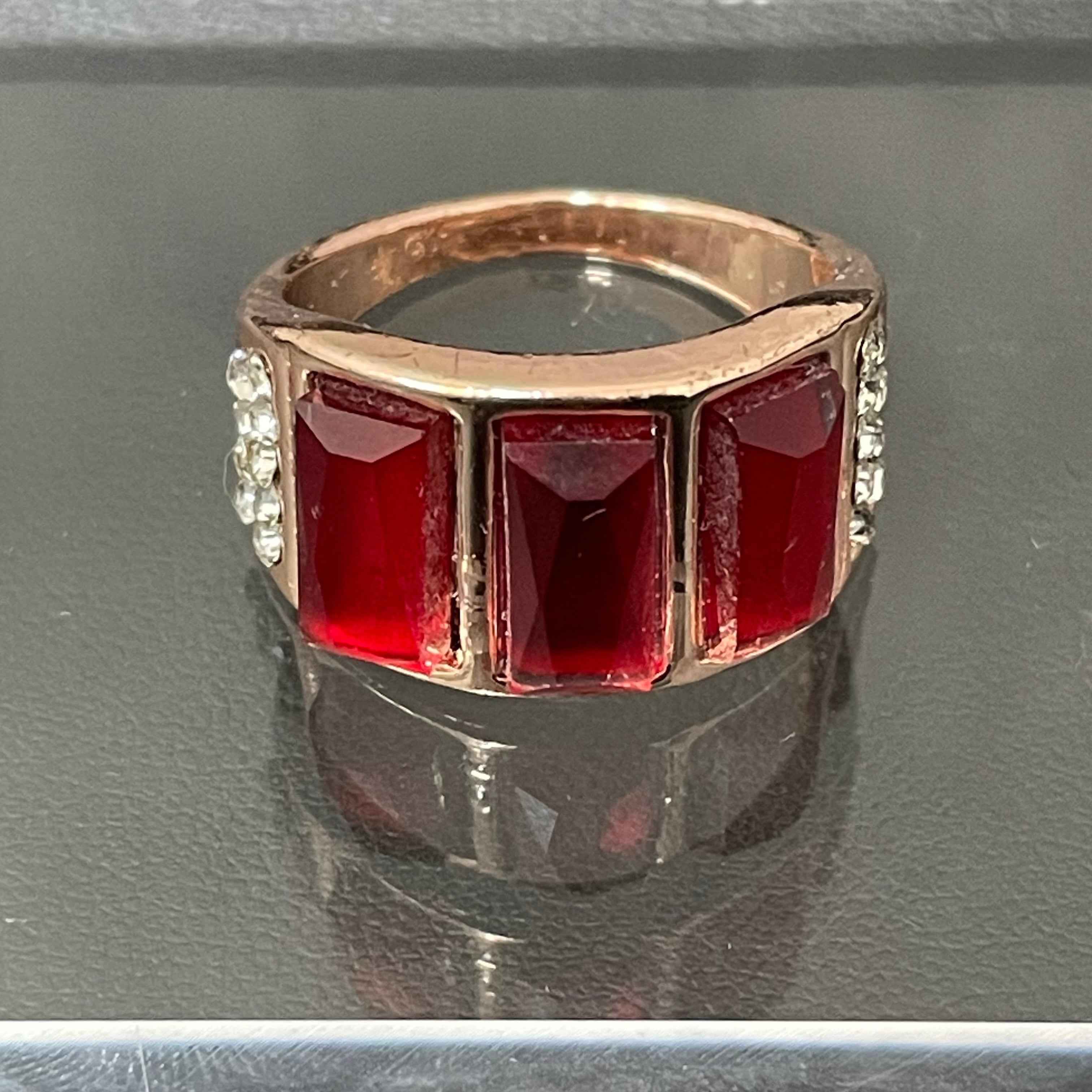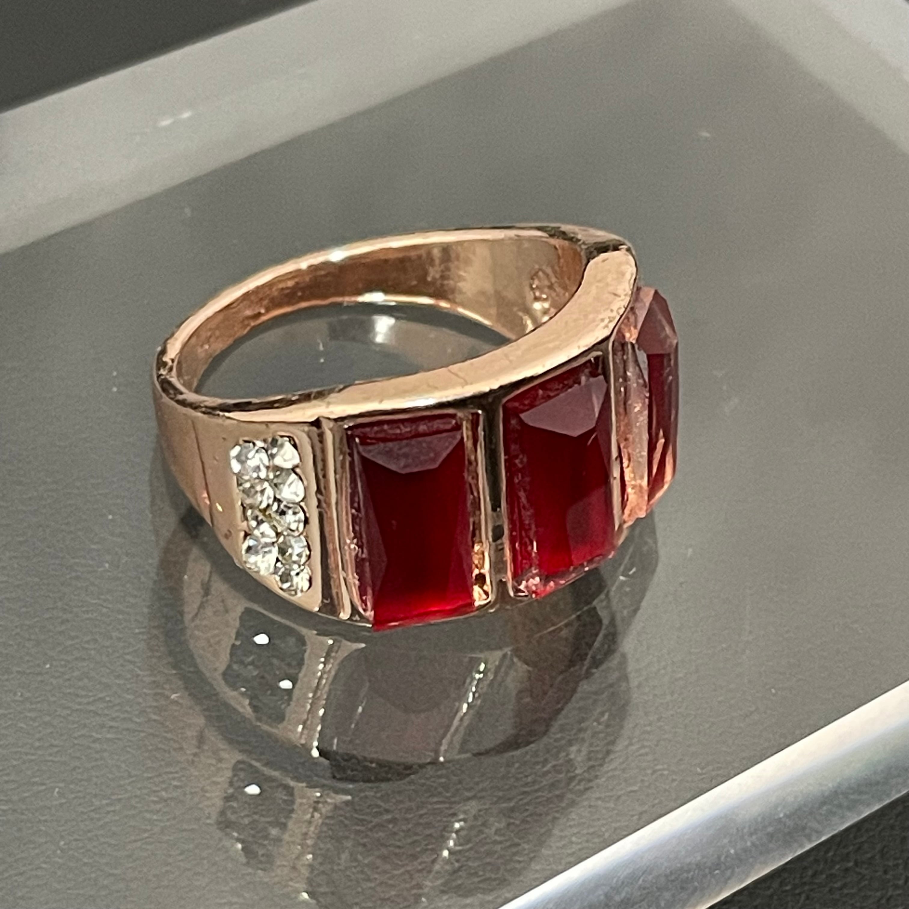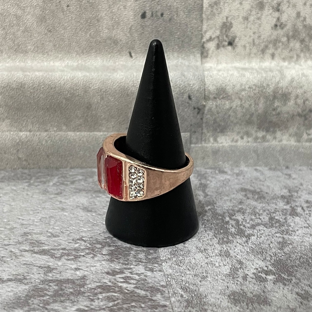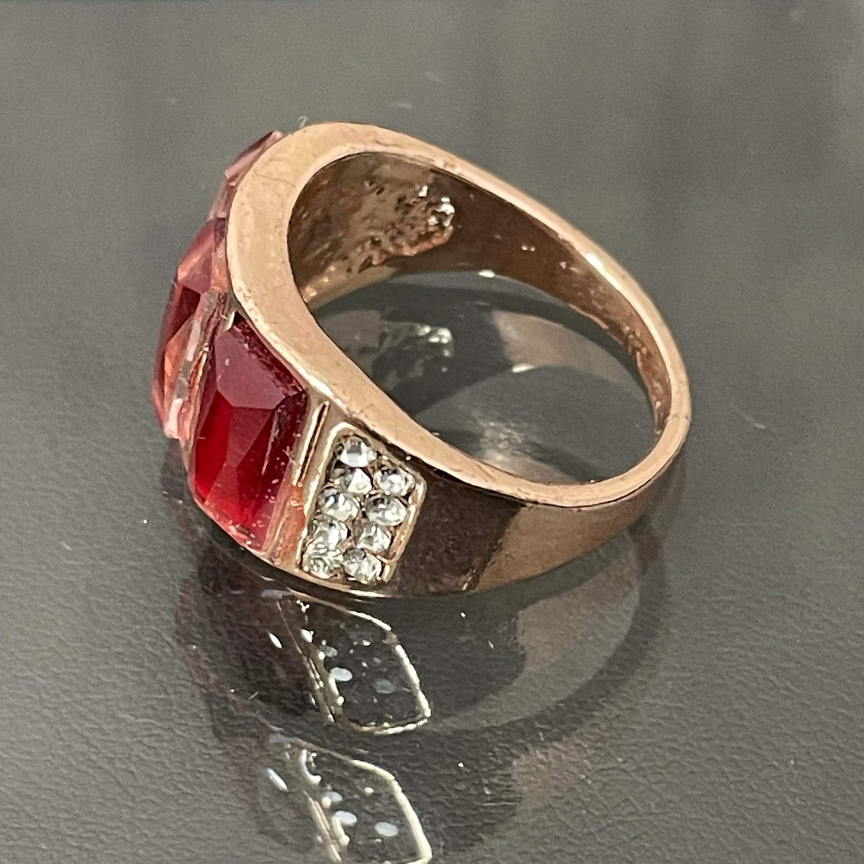 デザインリング ストーンモチーフ ゴールド レッド スクエア 四角形