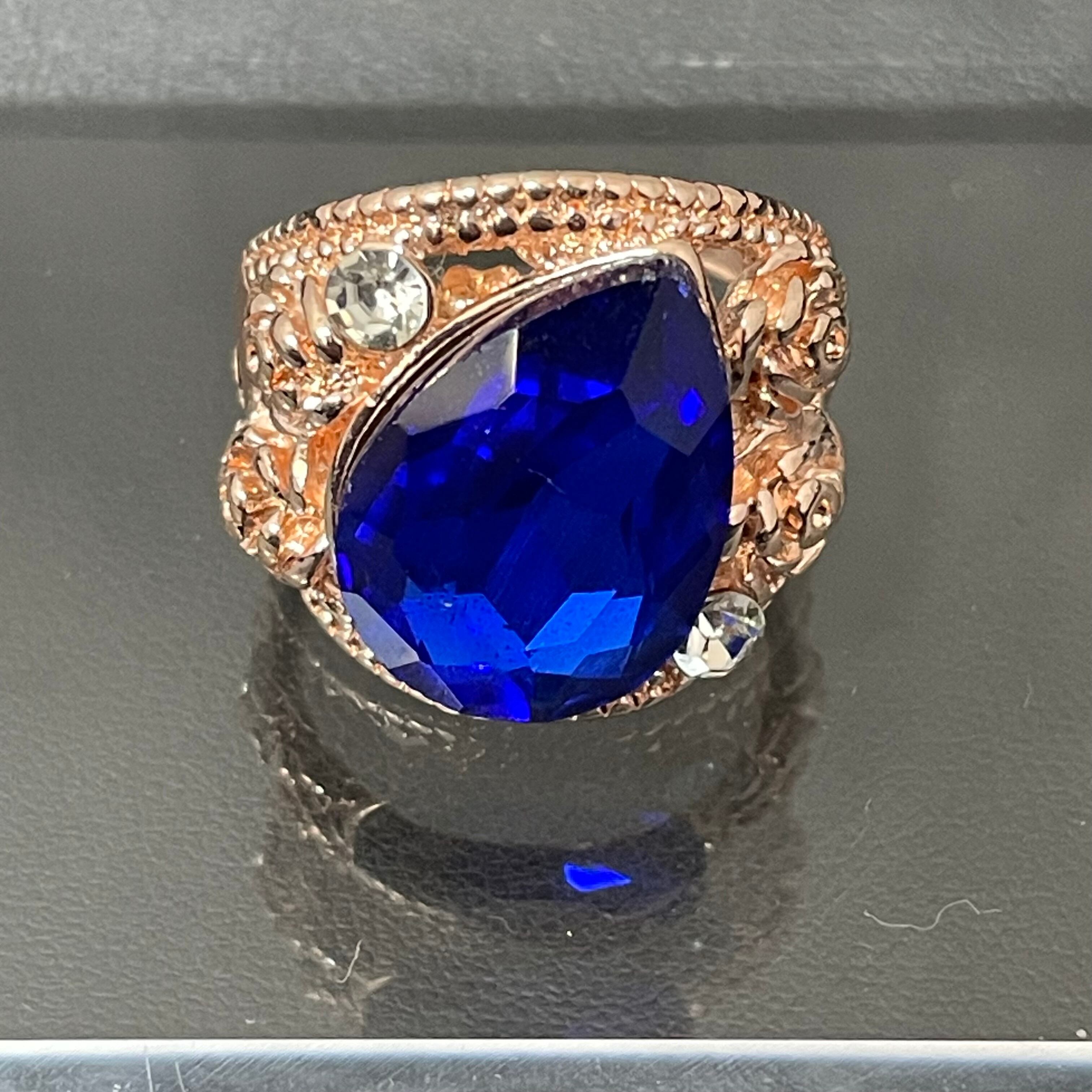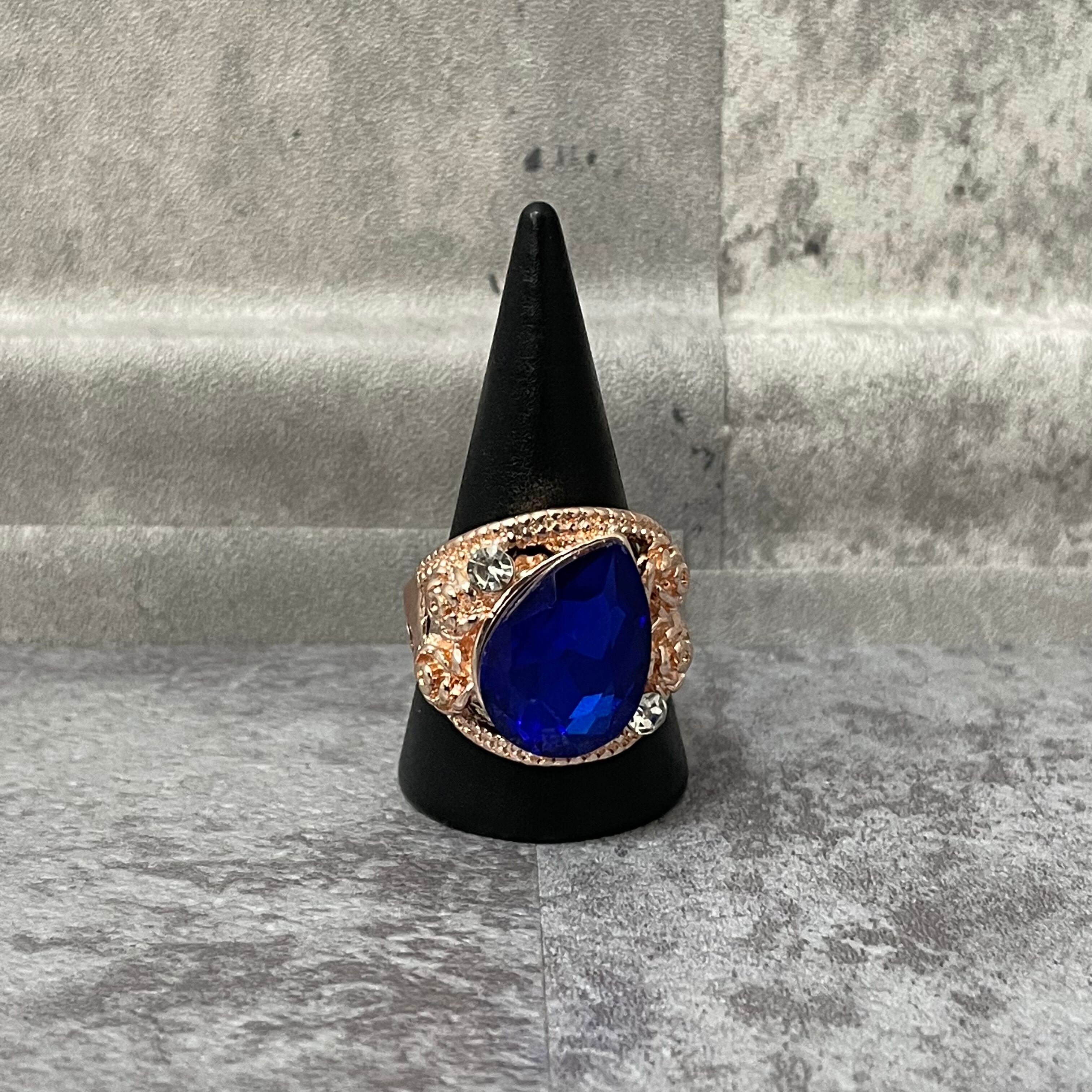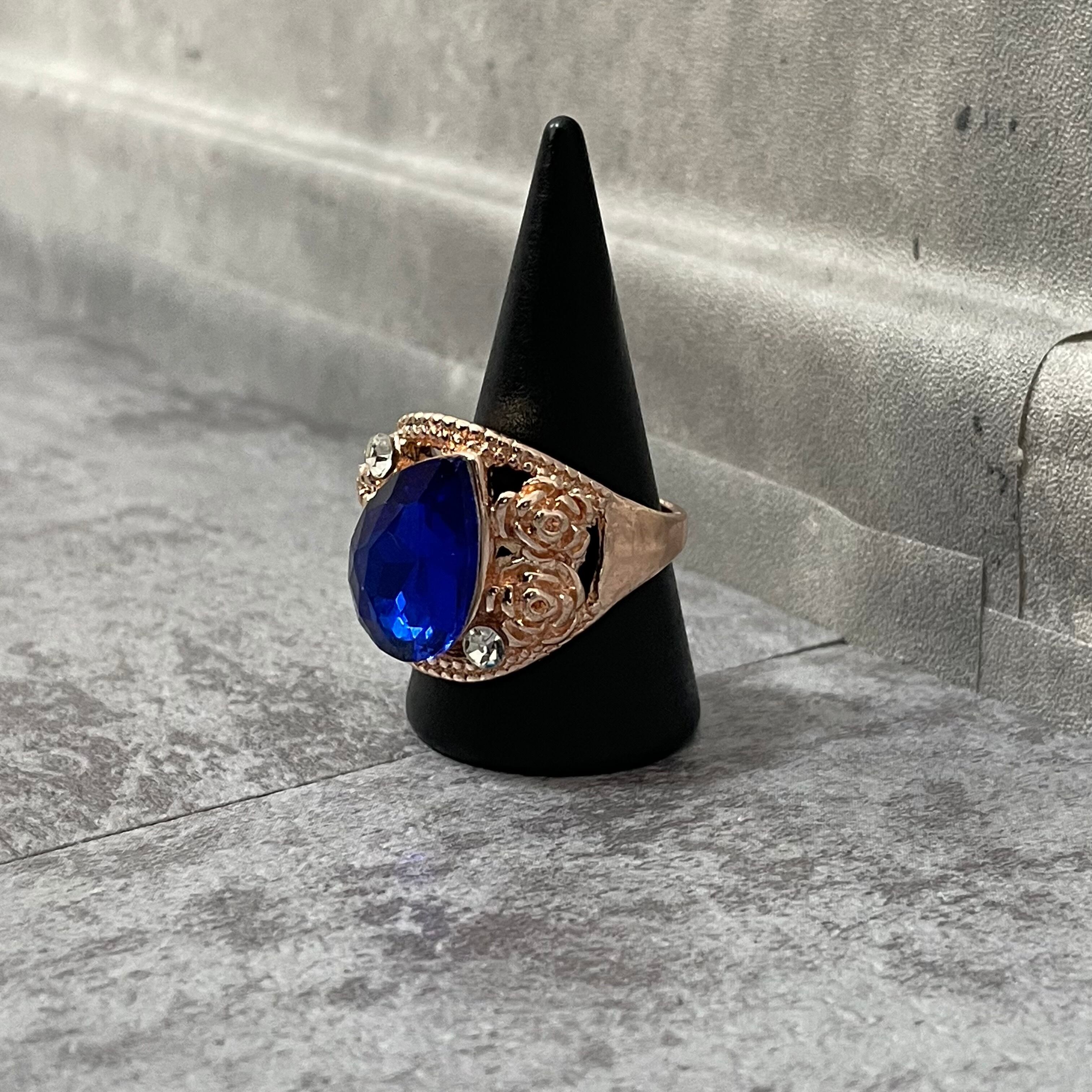 デザインリング ストーンモチーフ ティアドロップ ゴールド ブルー
