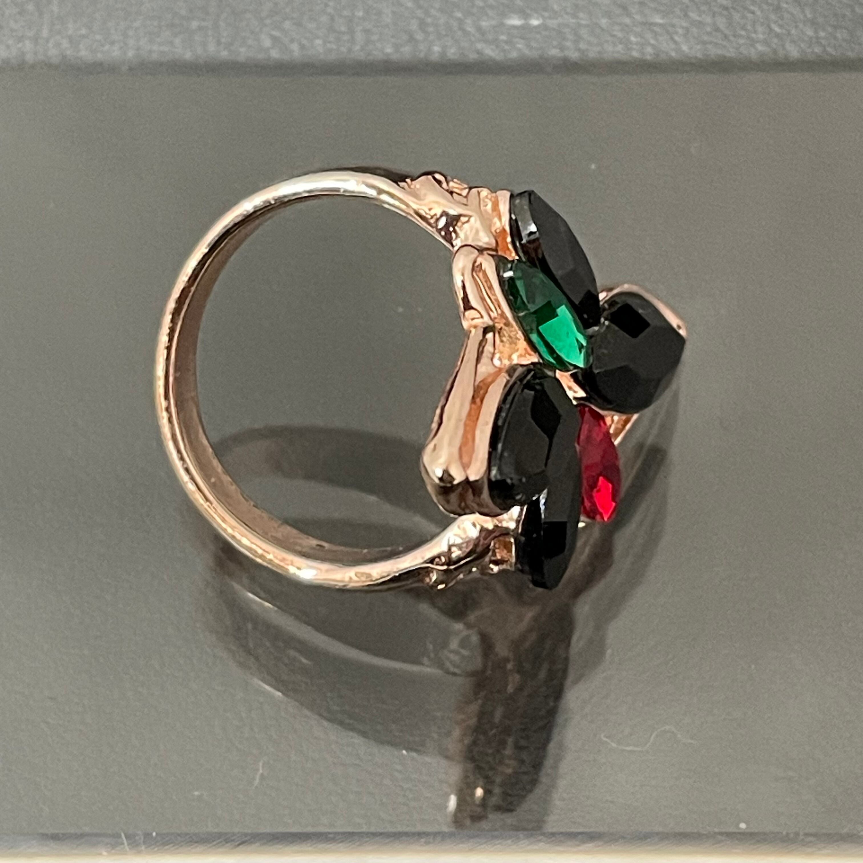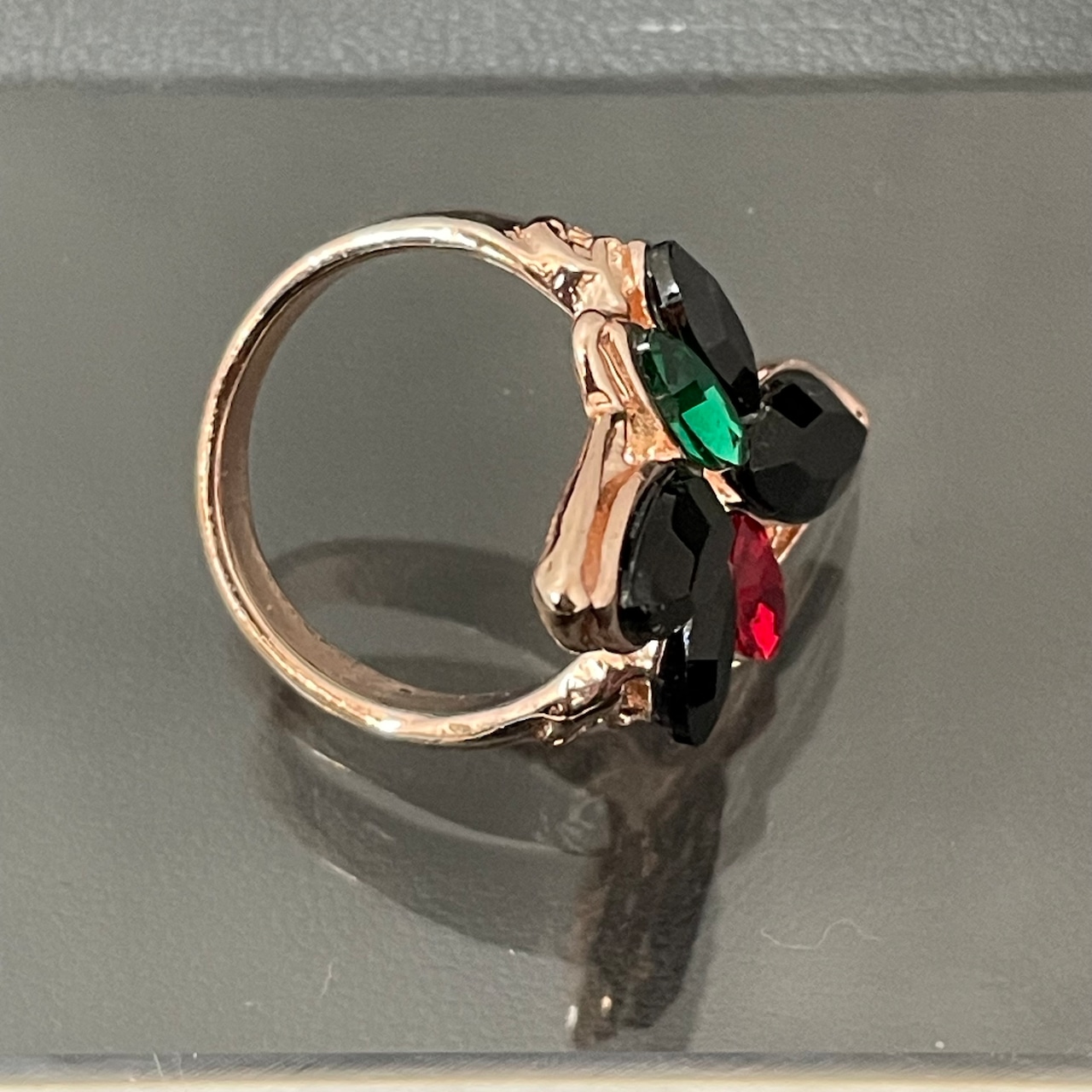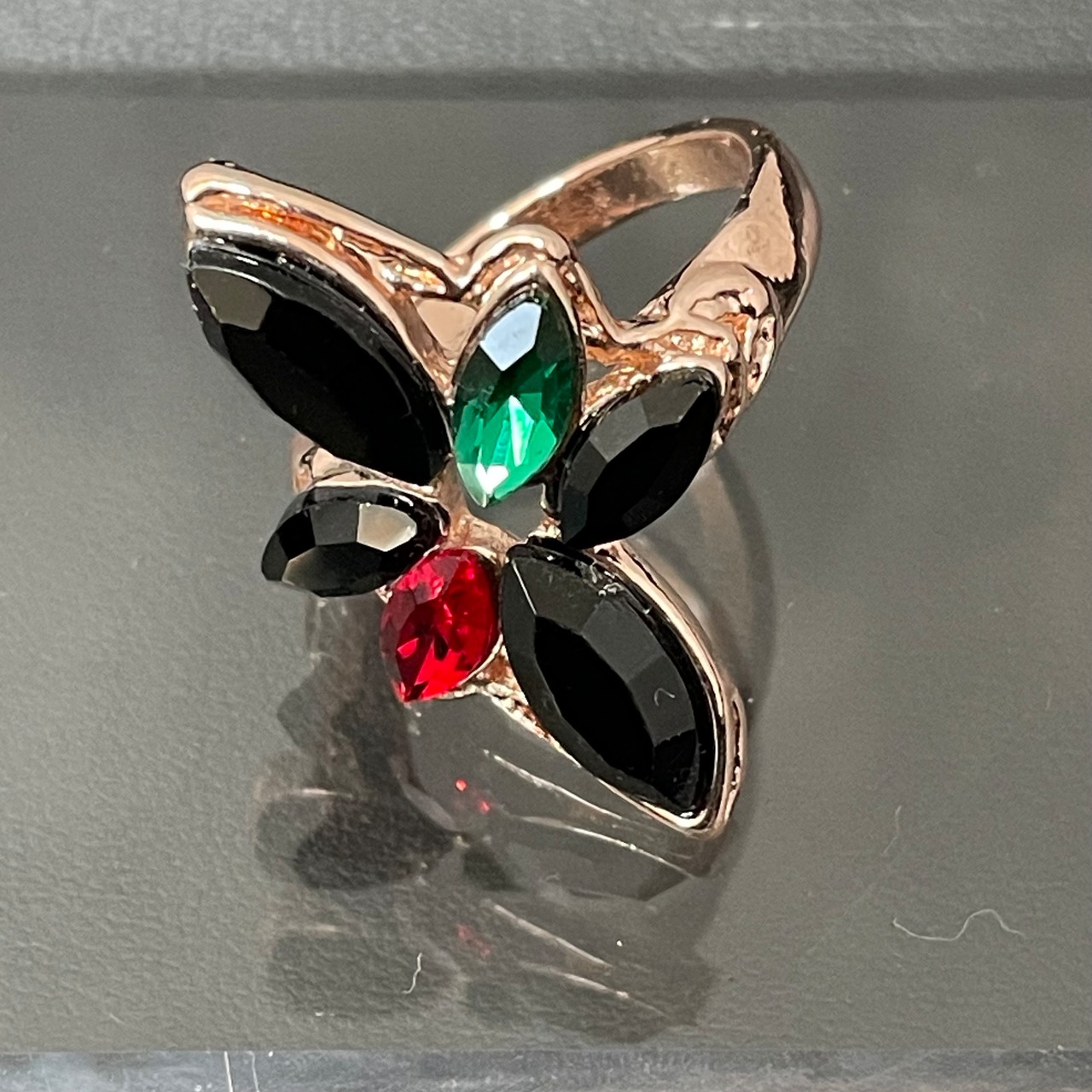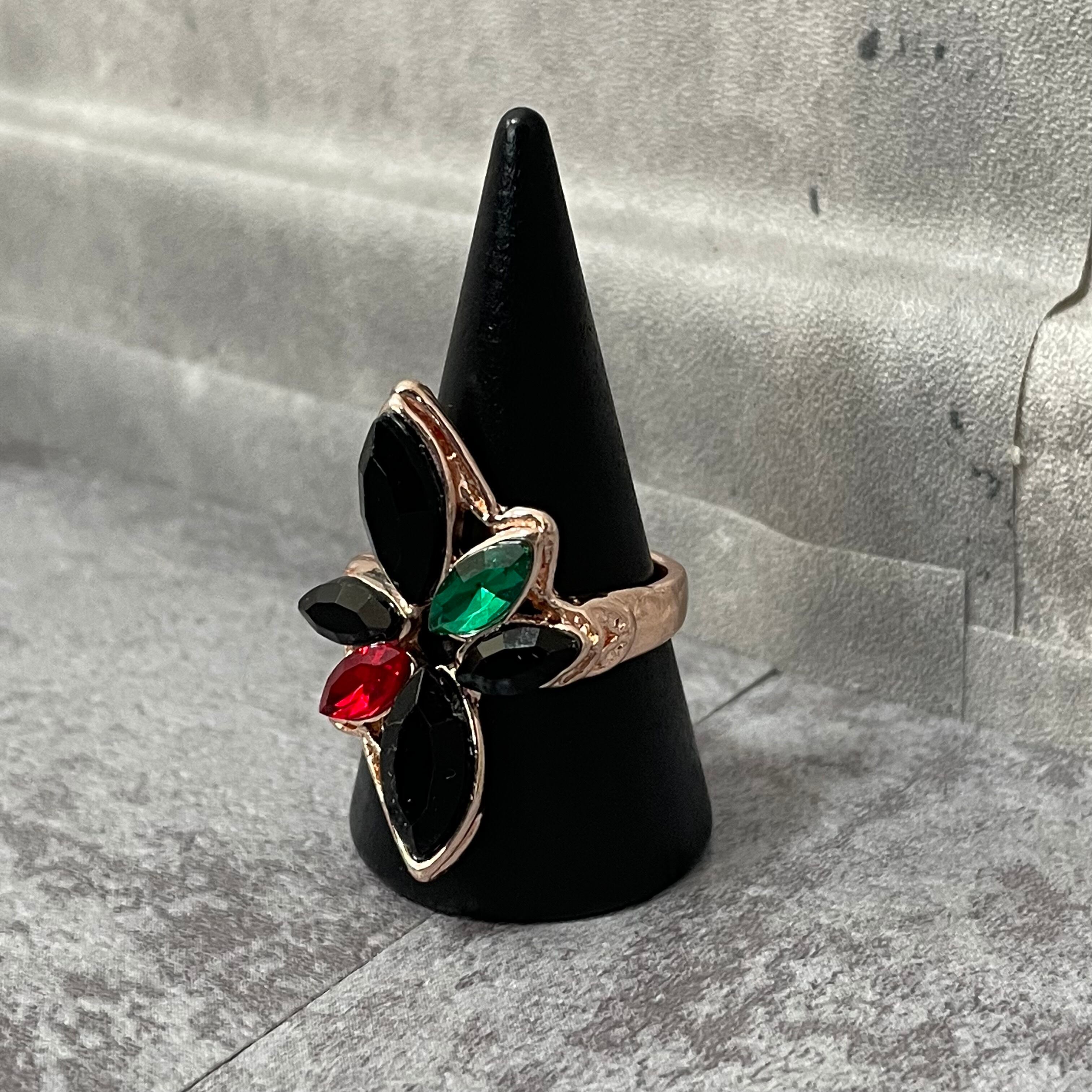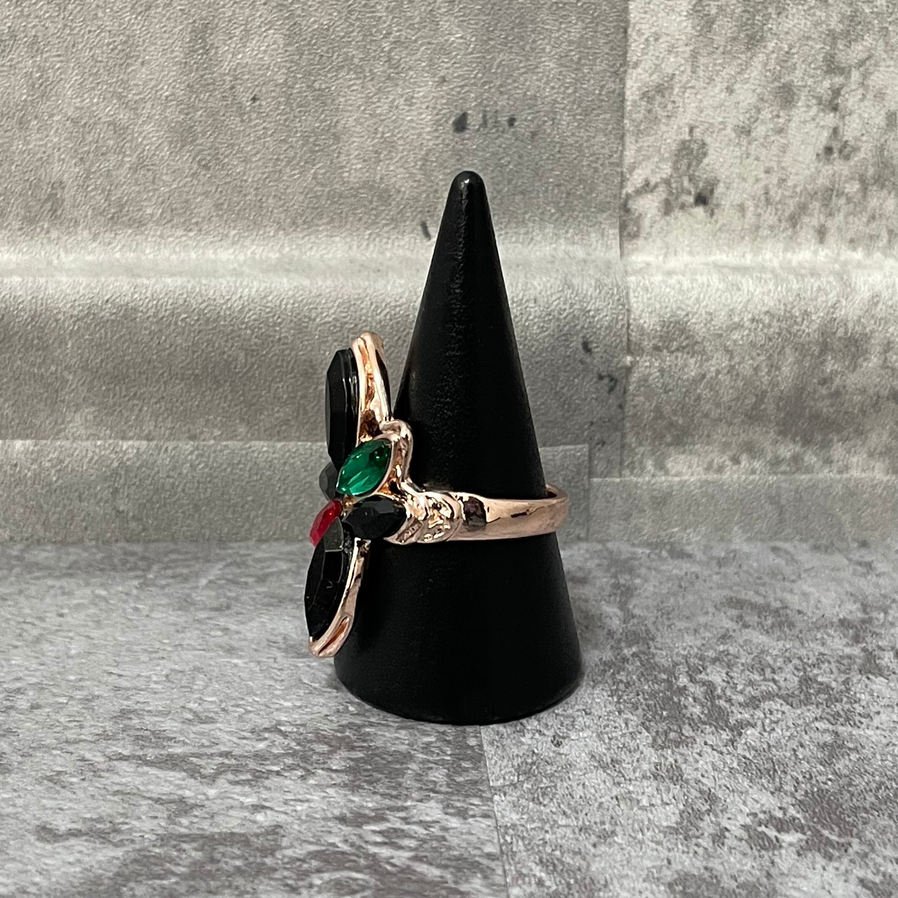 デザインリング ストーンモチーフ ゴールド ブラック レッド