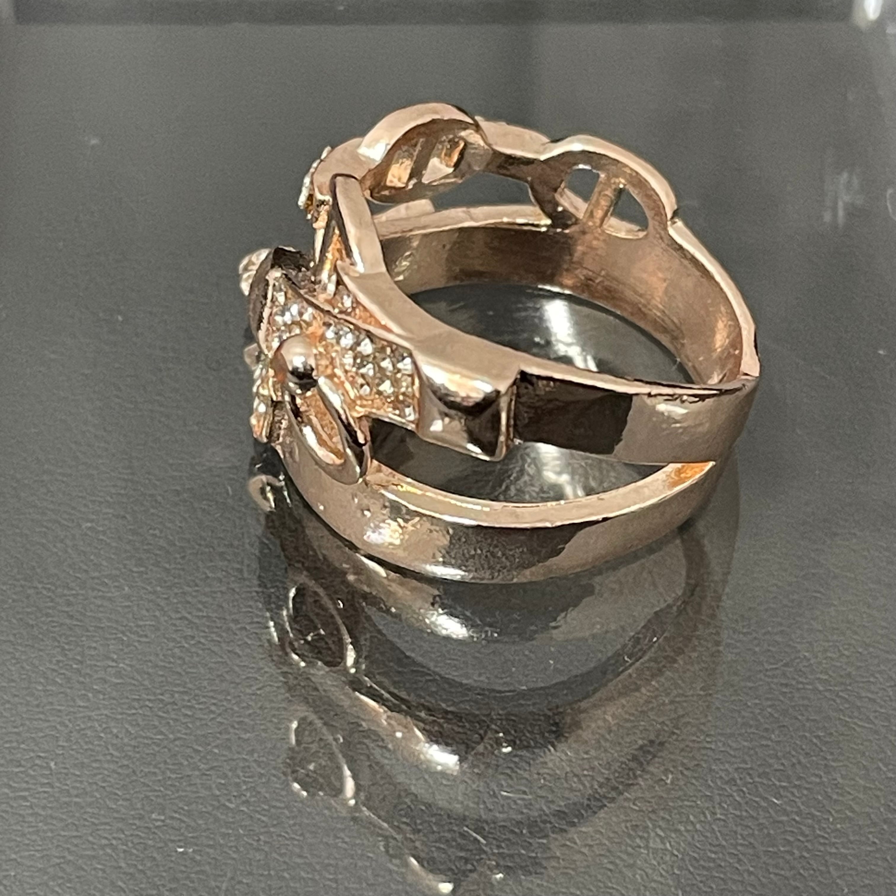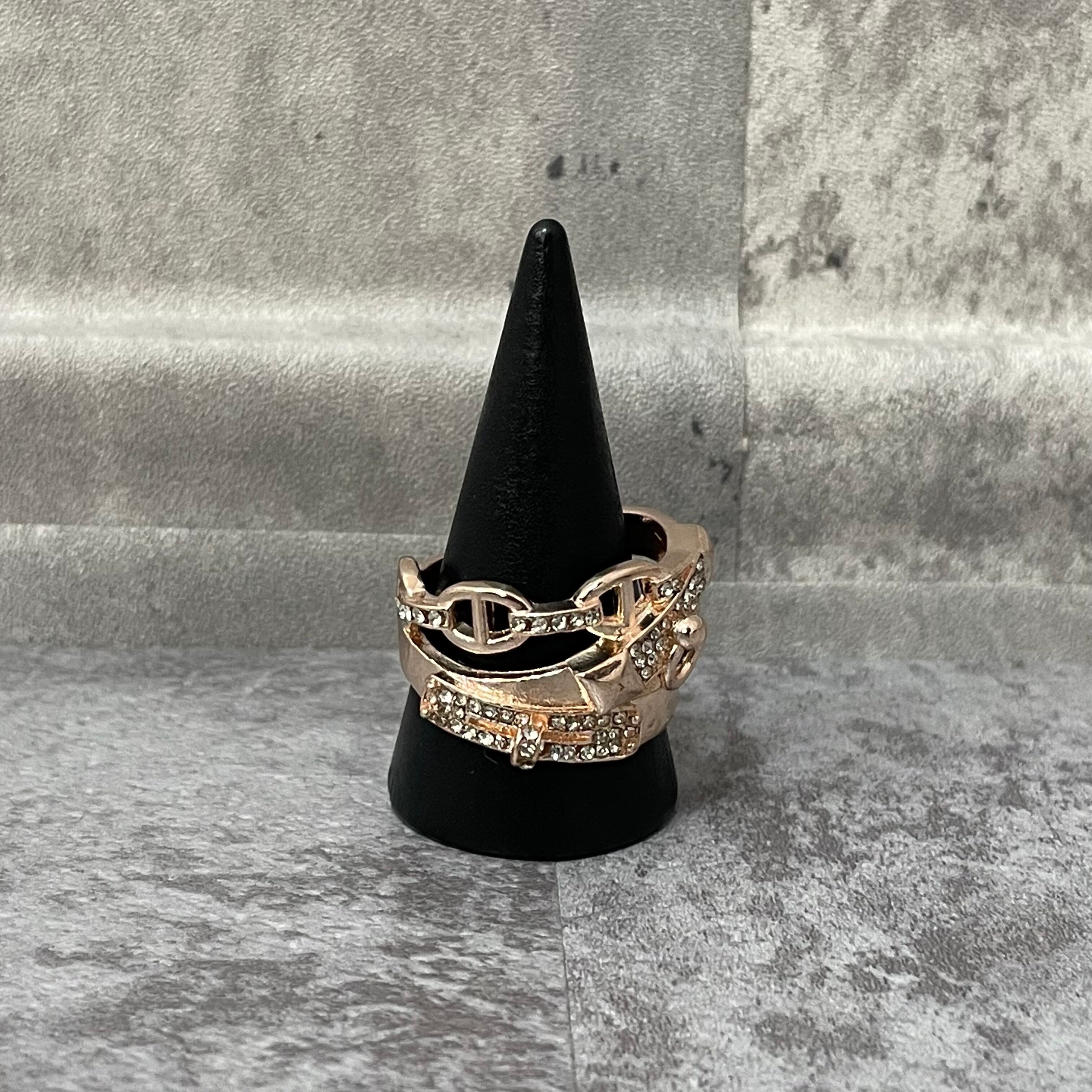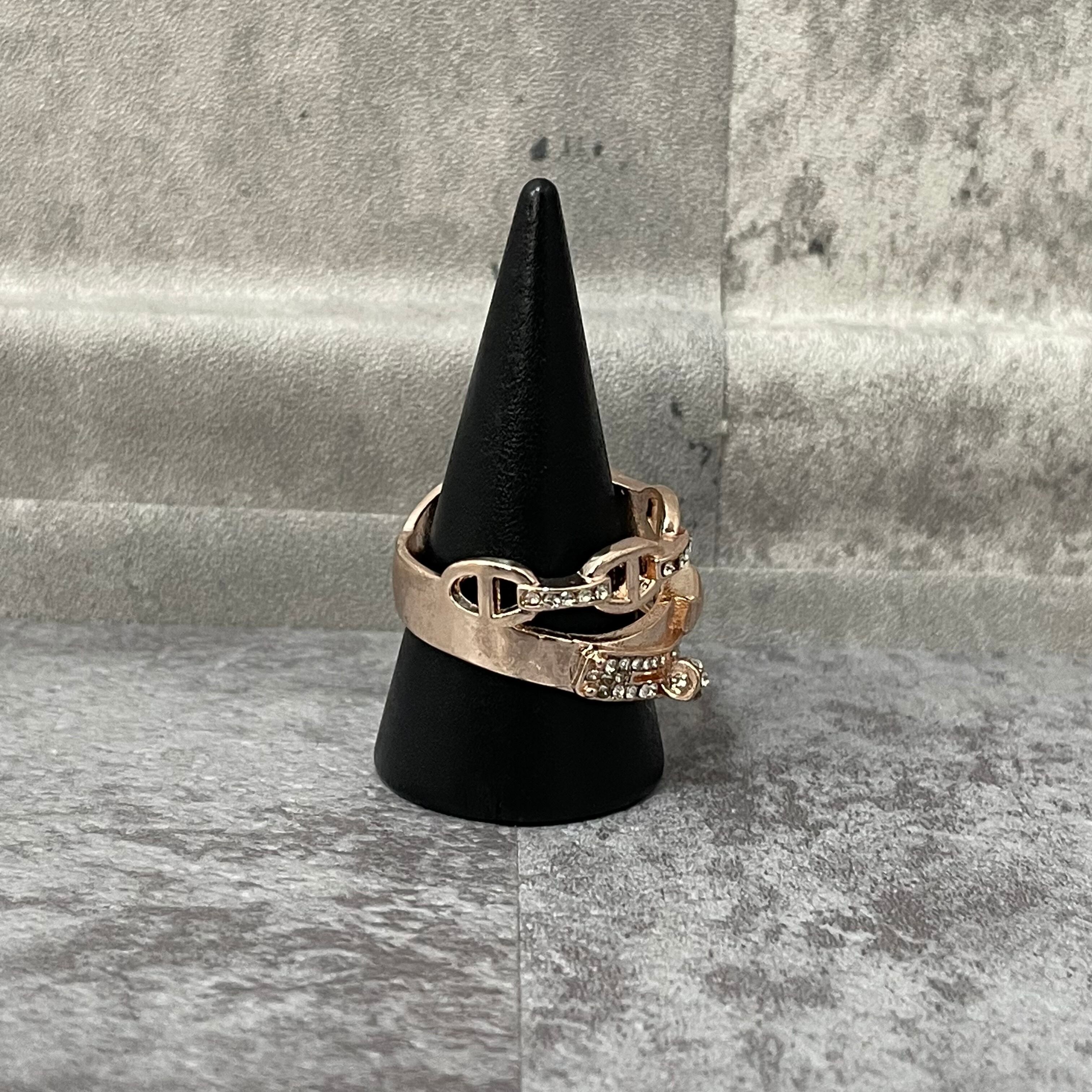 デザインリング ベルトモチーフ ゴールド ラインストーン クリア