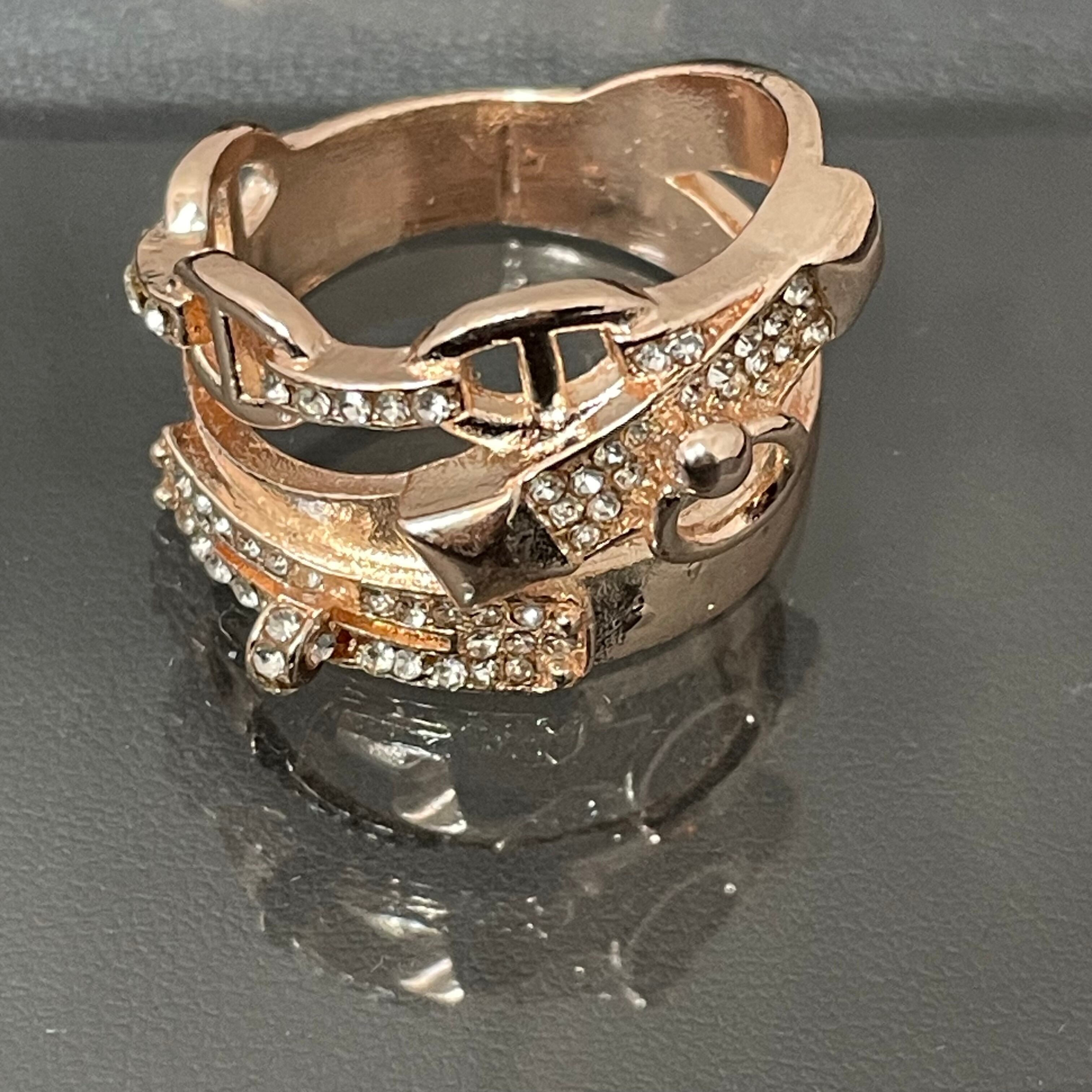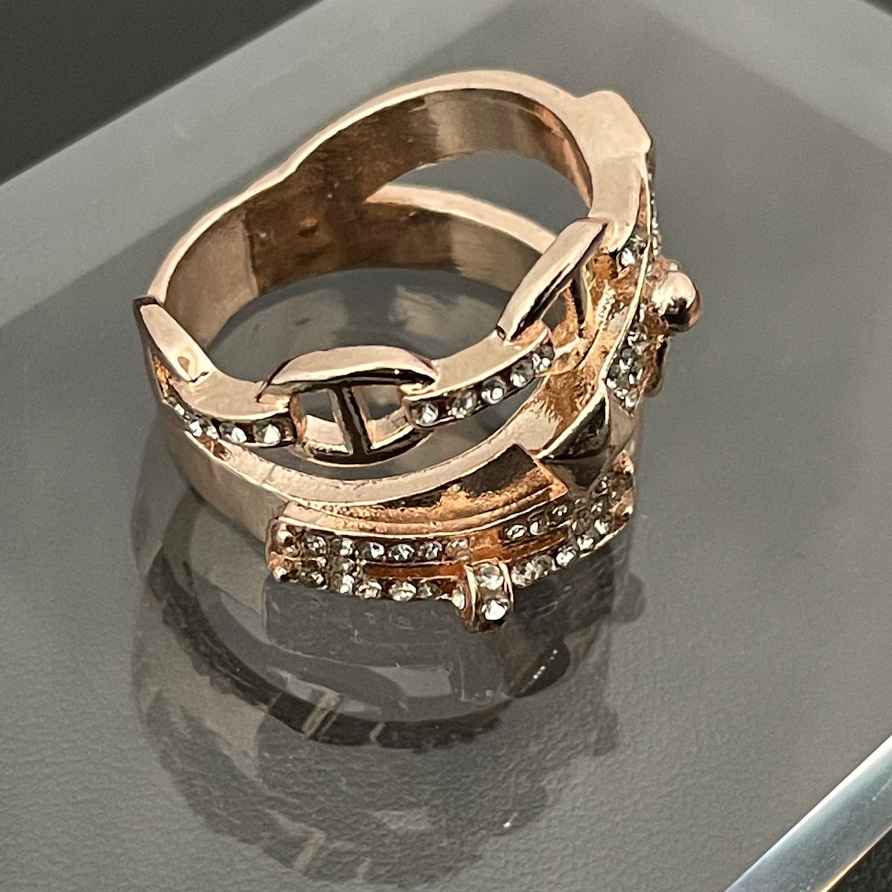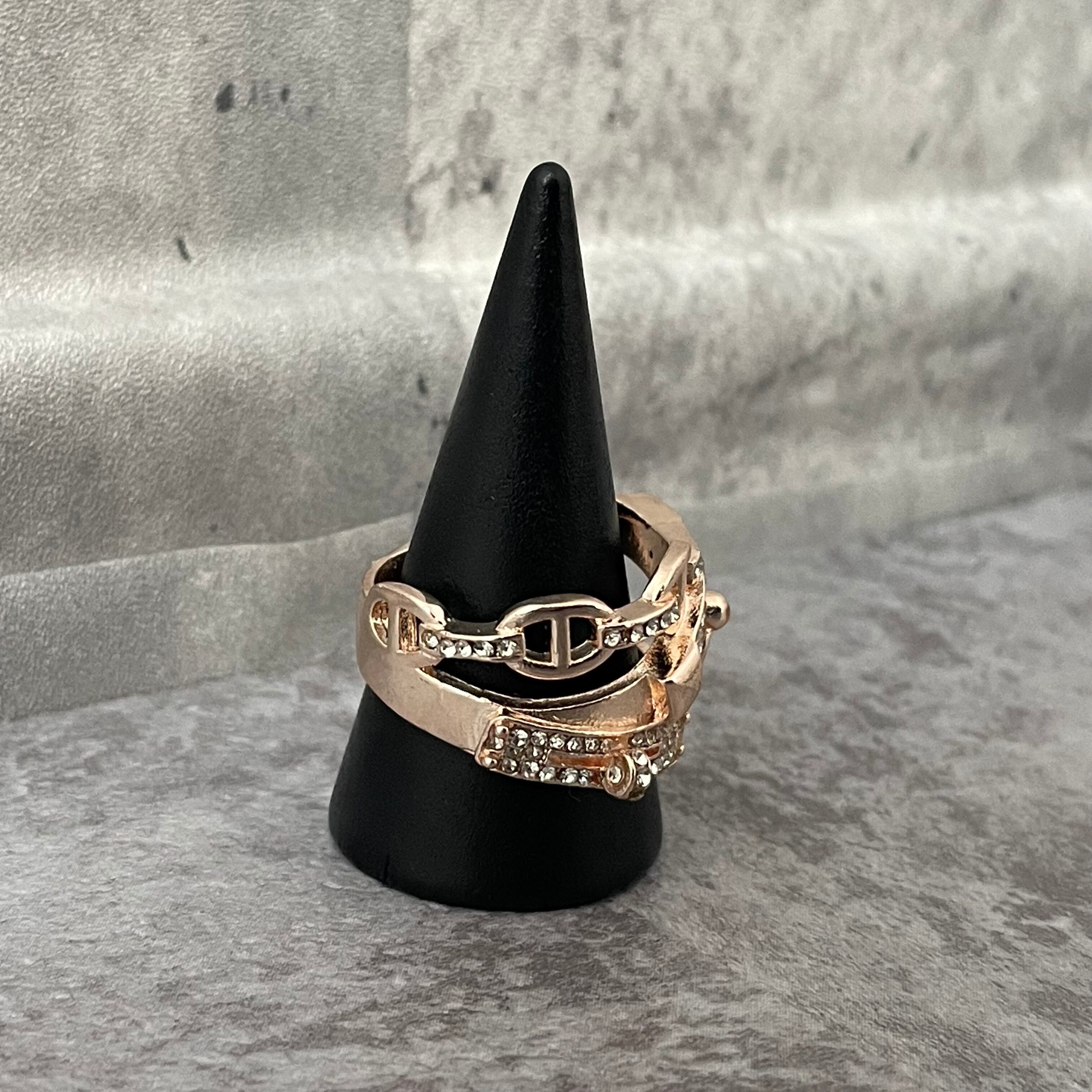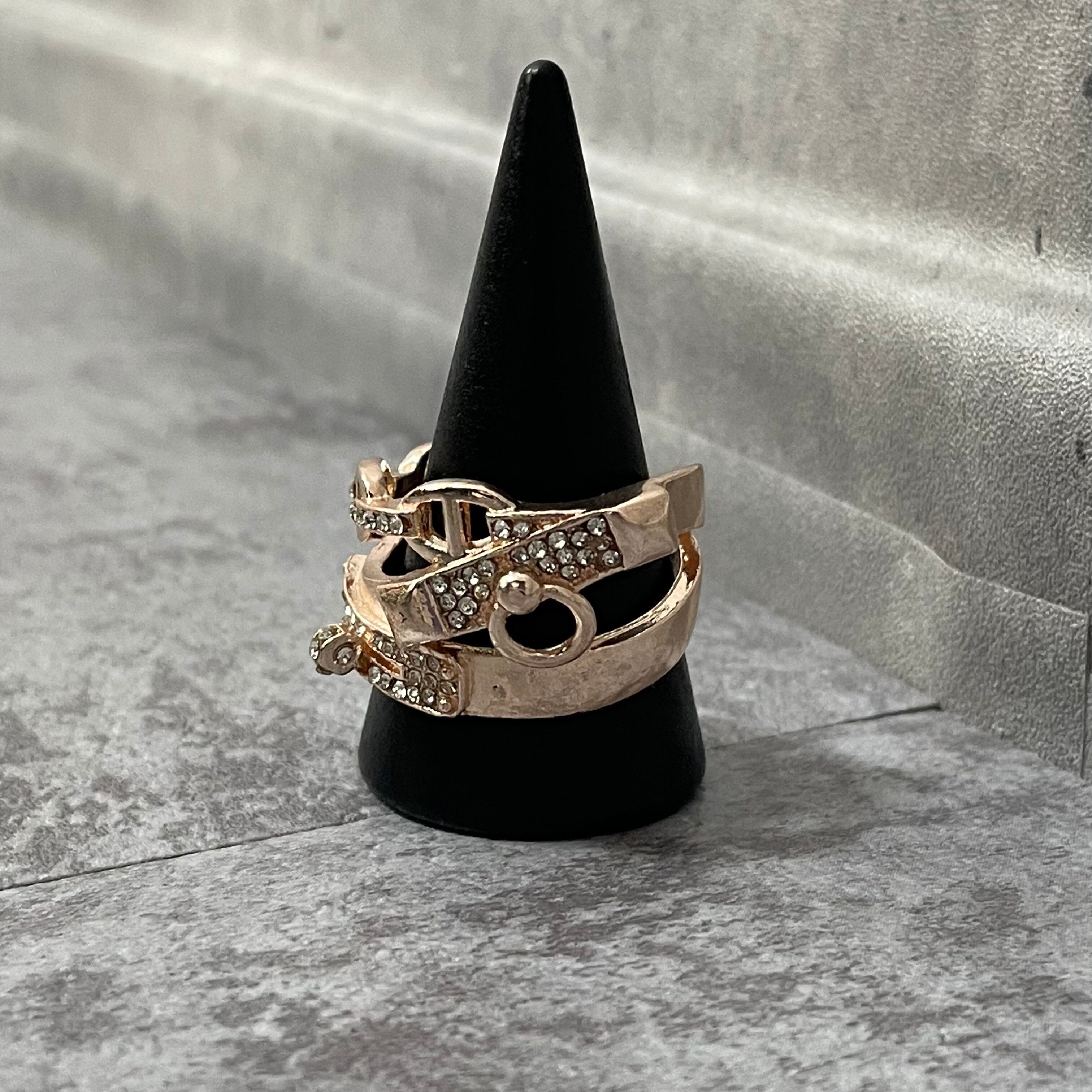 デザインリング ベルトモチーフ ゴールド ラインストーン クリア
