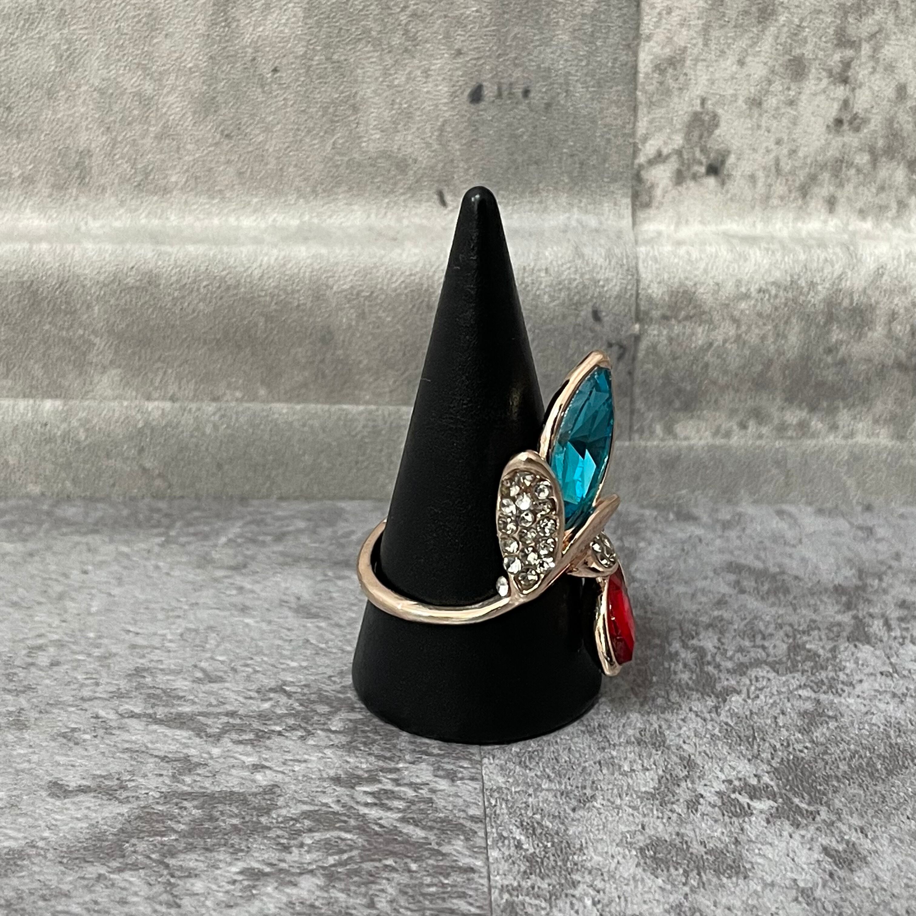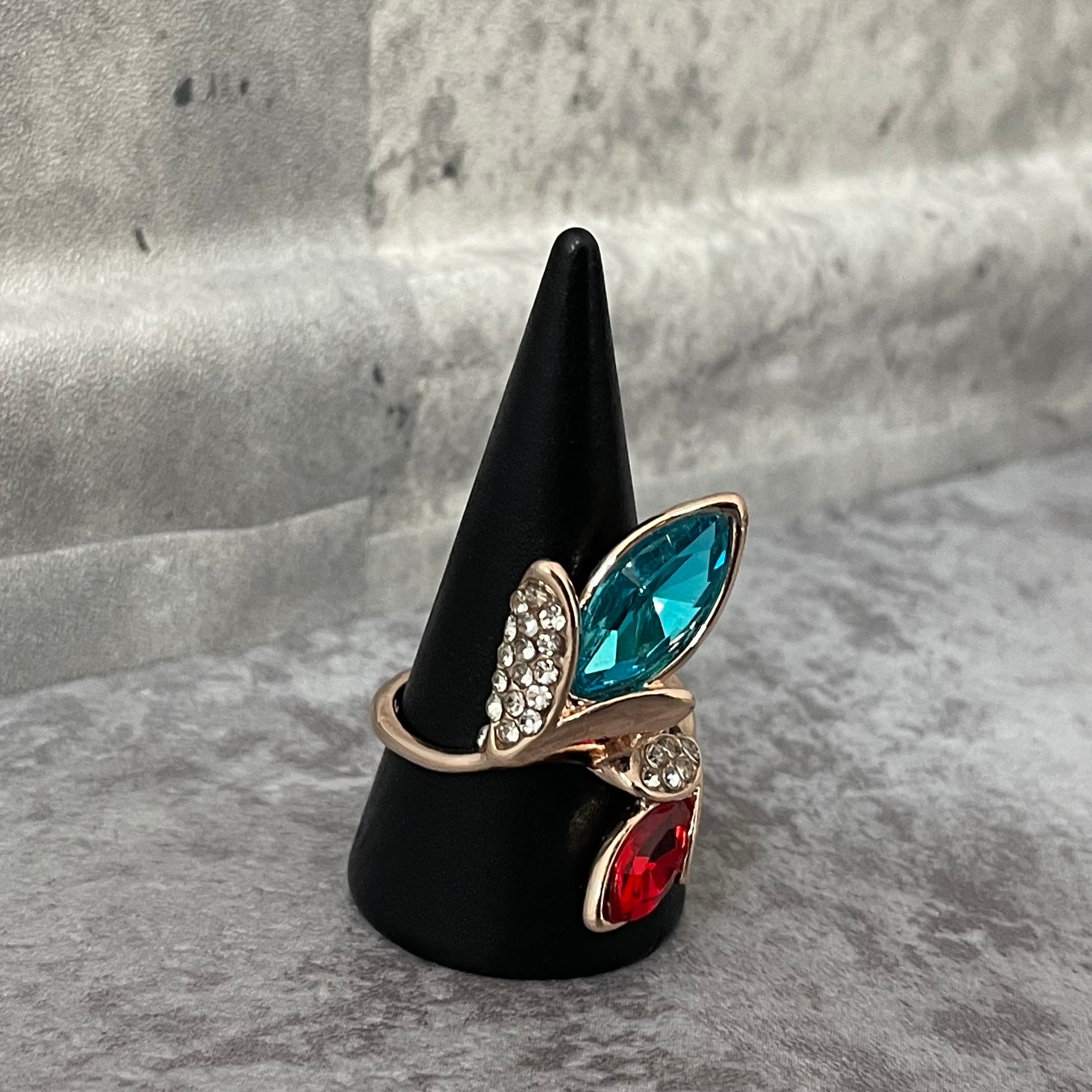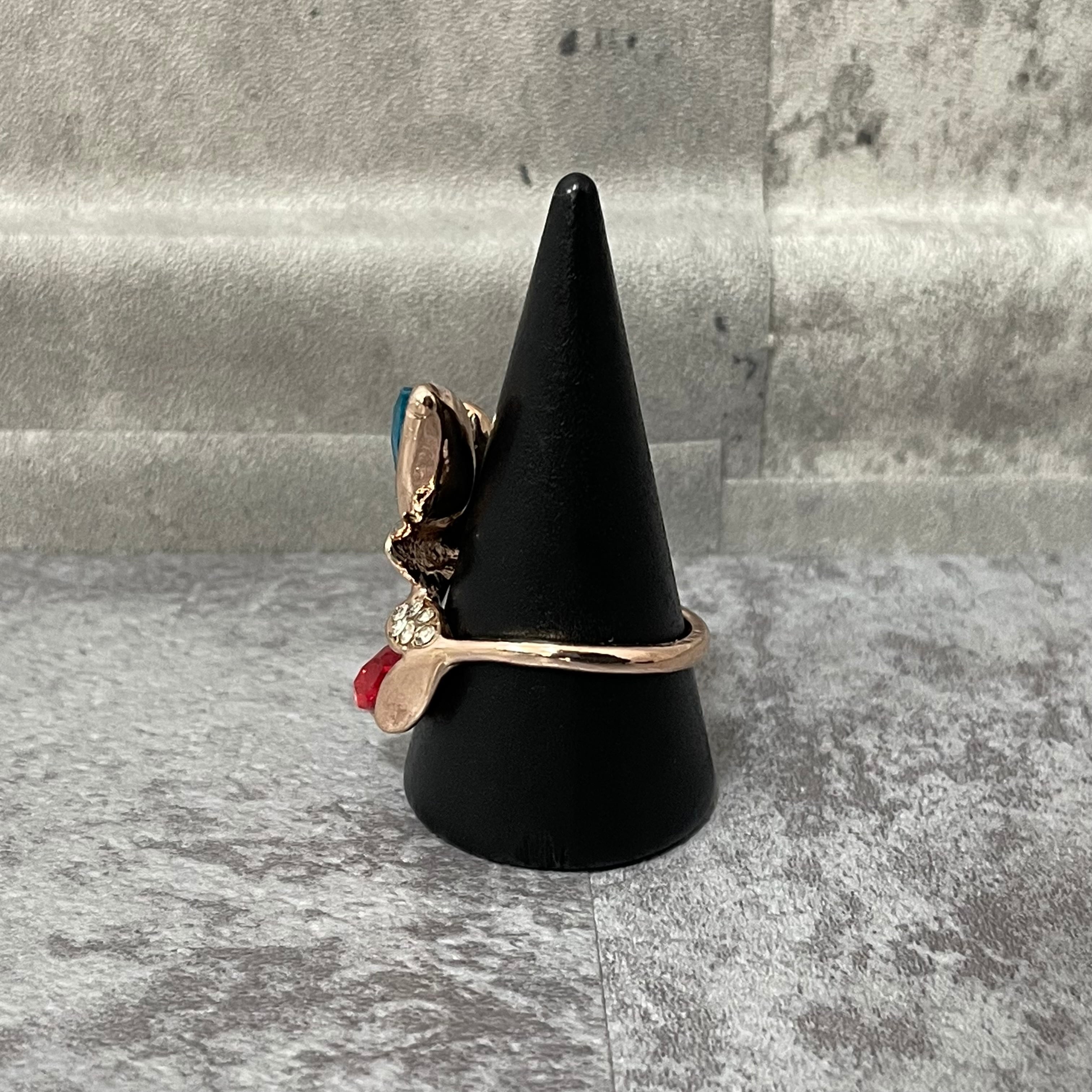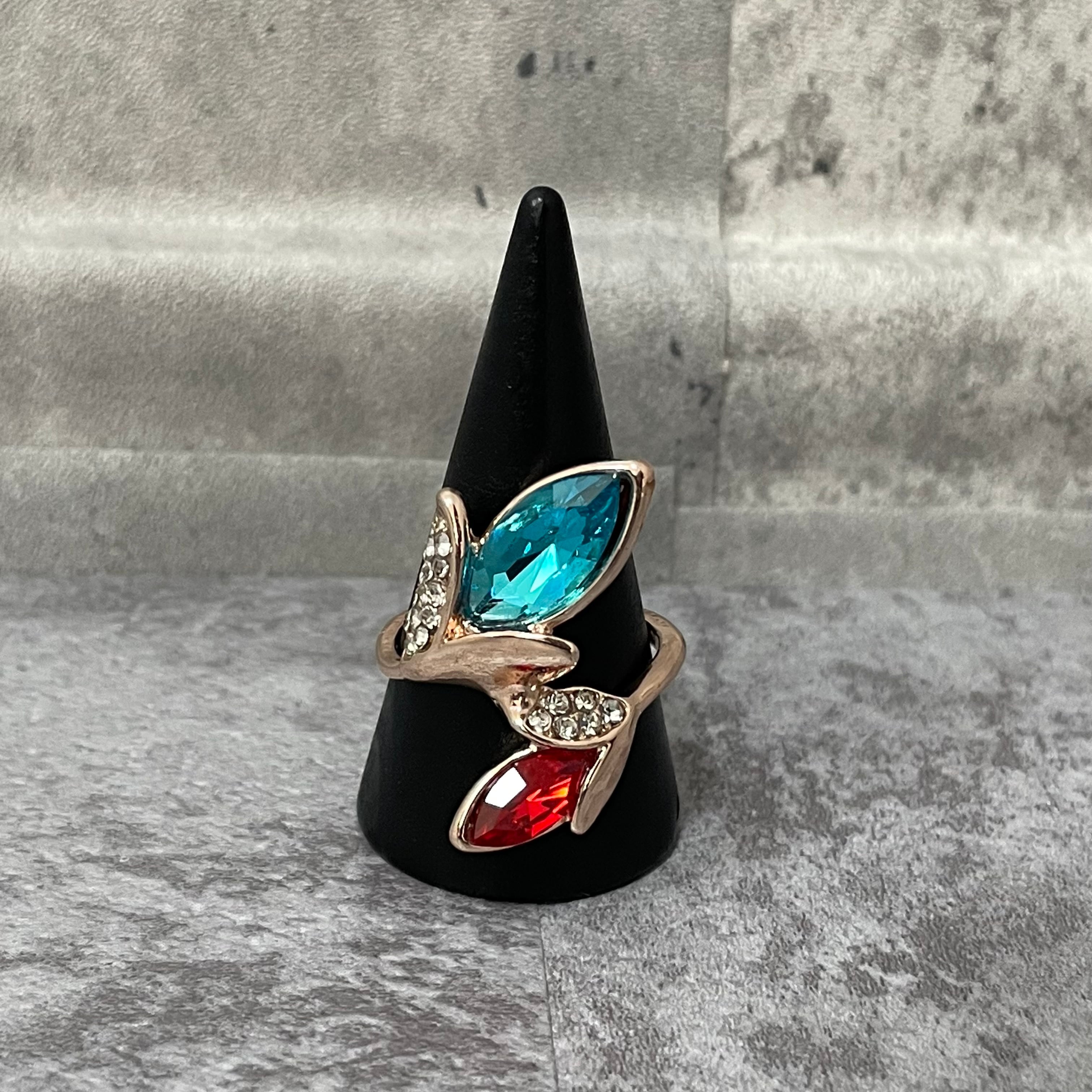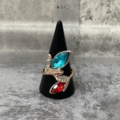 デザインリング ストーンモチーフ リーフモチーフ ゴールド バイカラー ブルー レッド ラインストーン