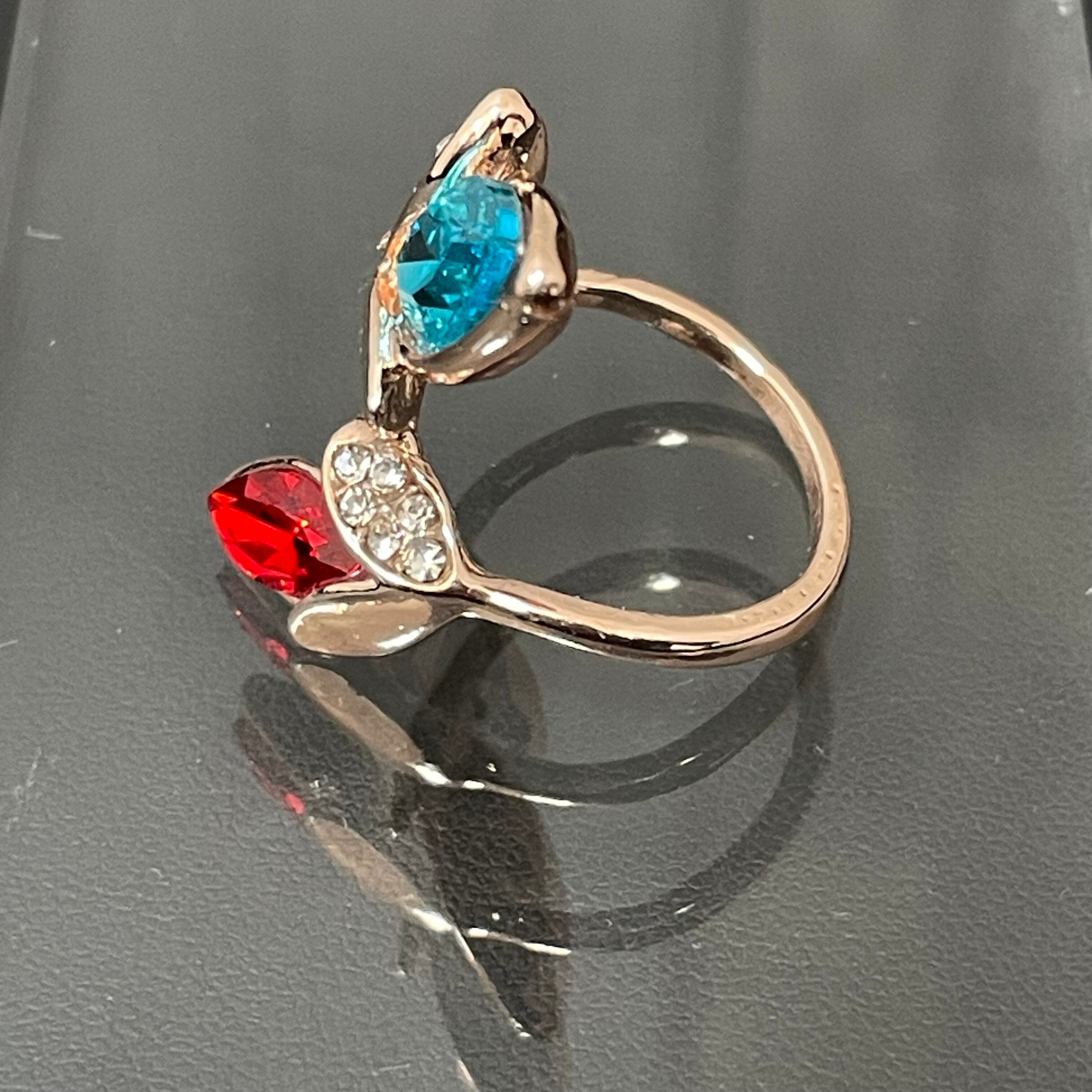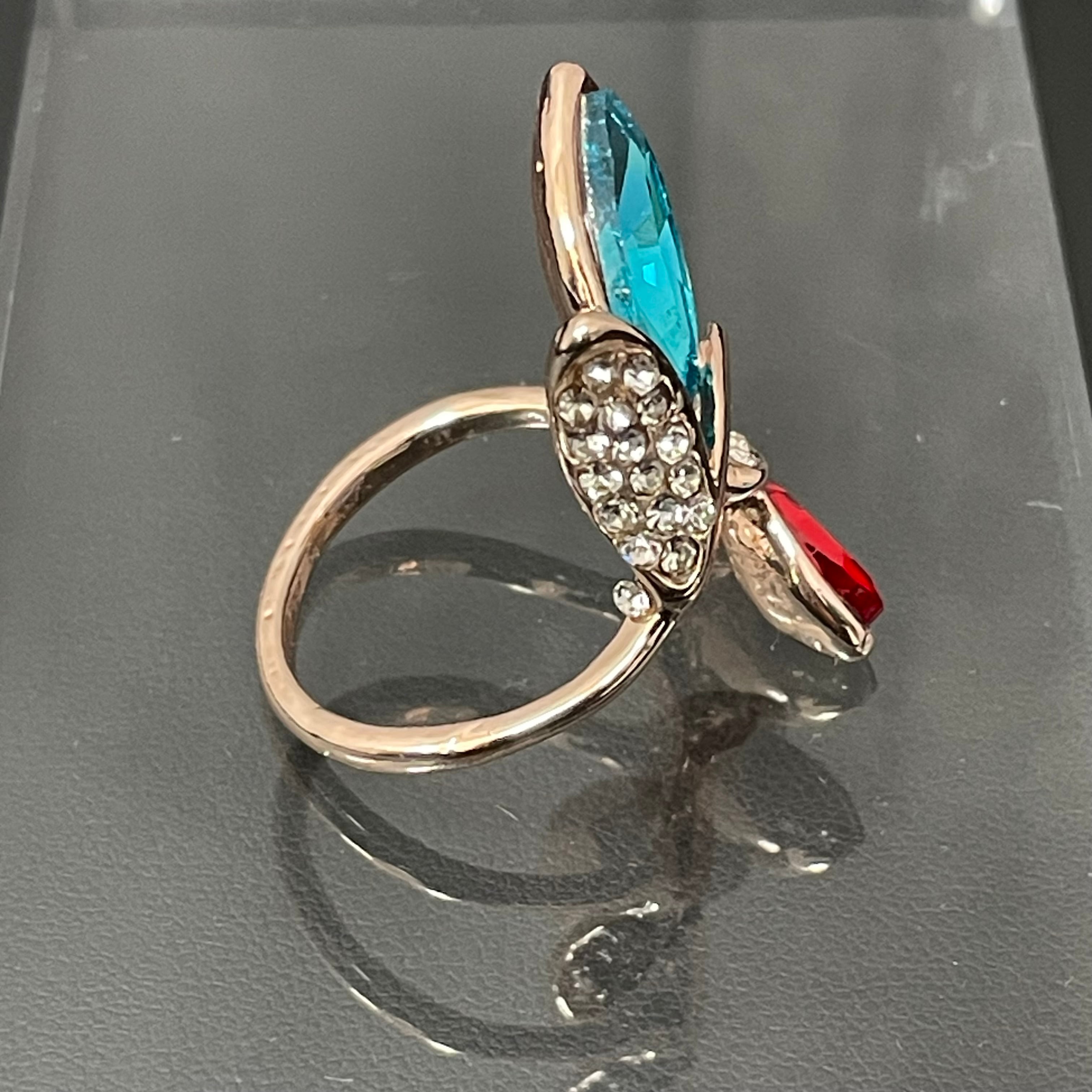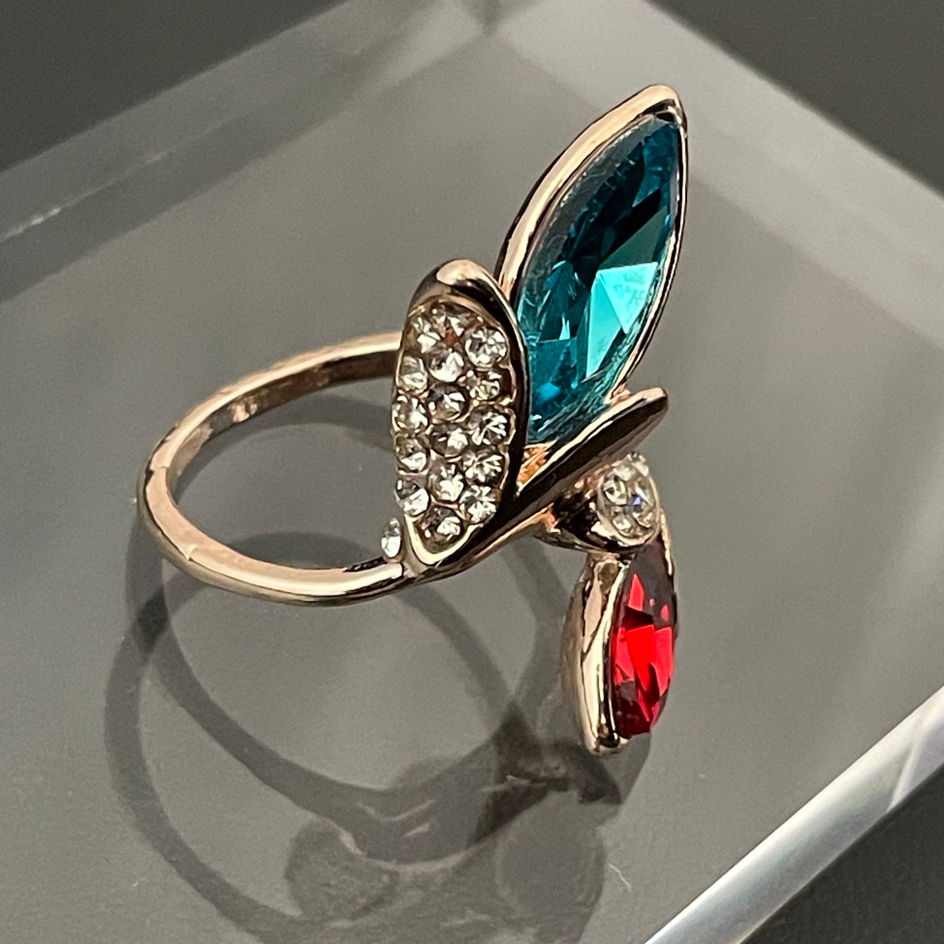 デザインリング ストーンモチーフ リーフモチーフ ゴールド バイカラー ブルー レッド ラインストーン