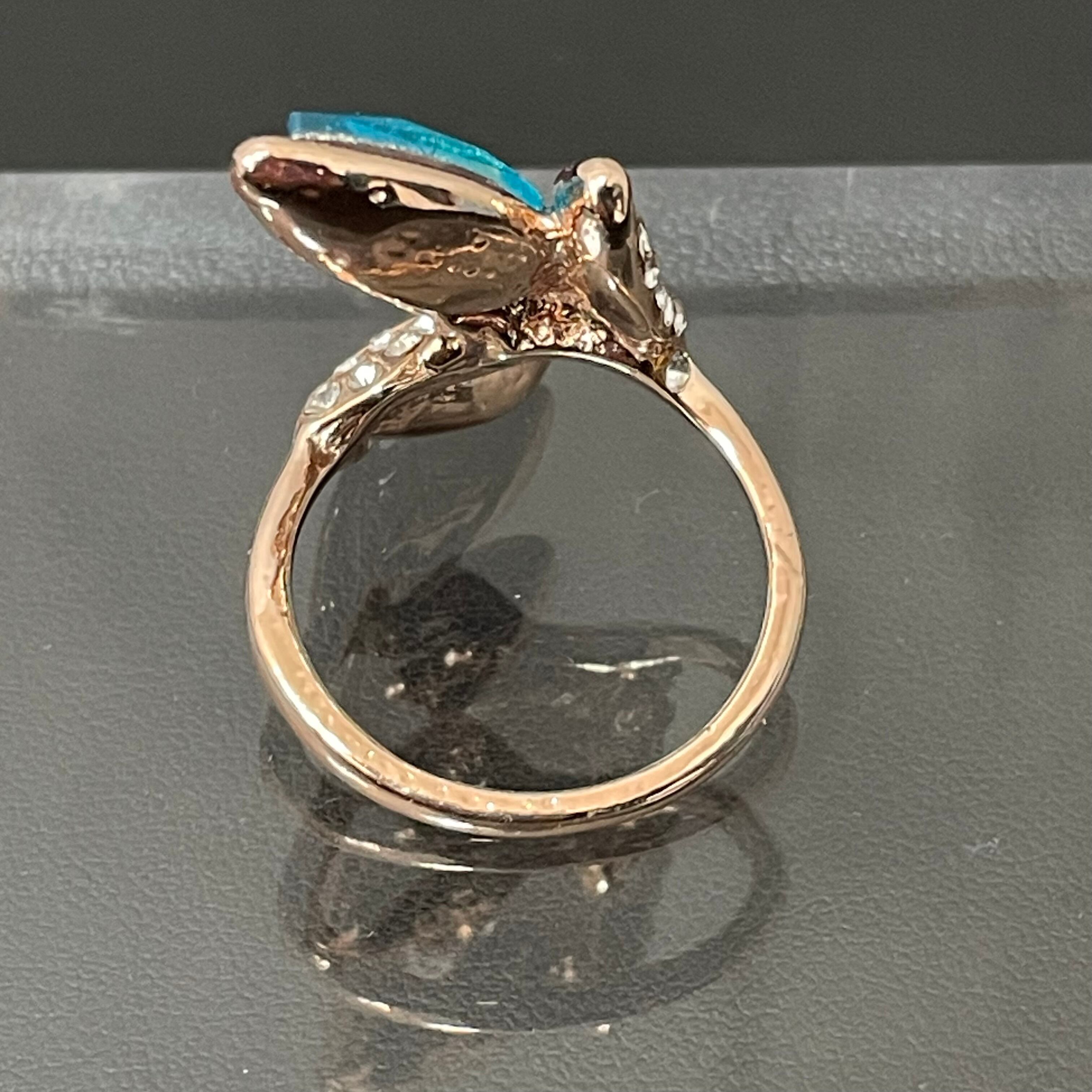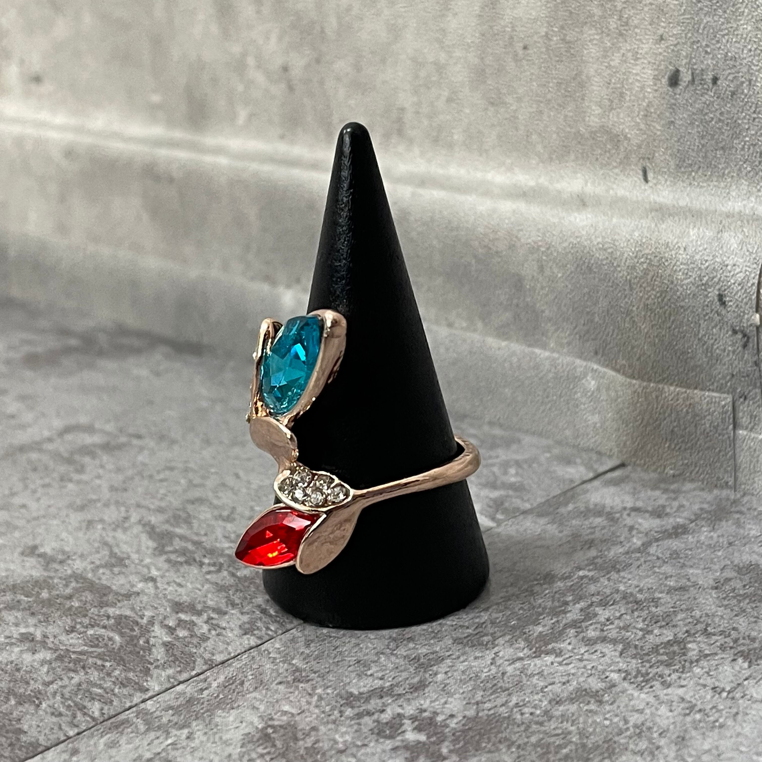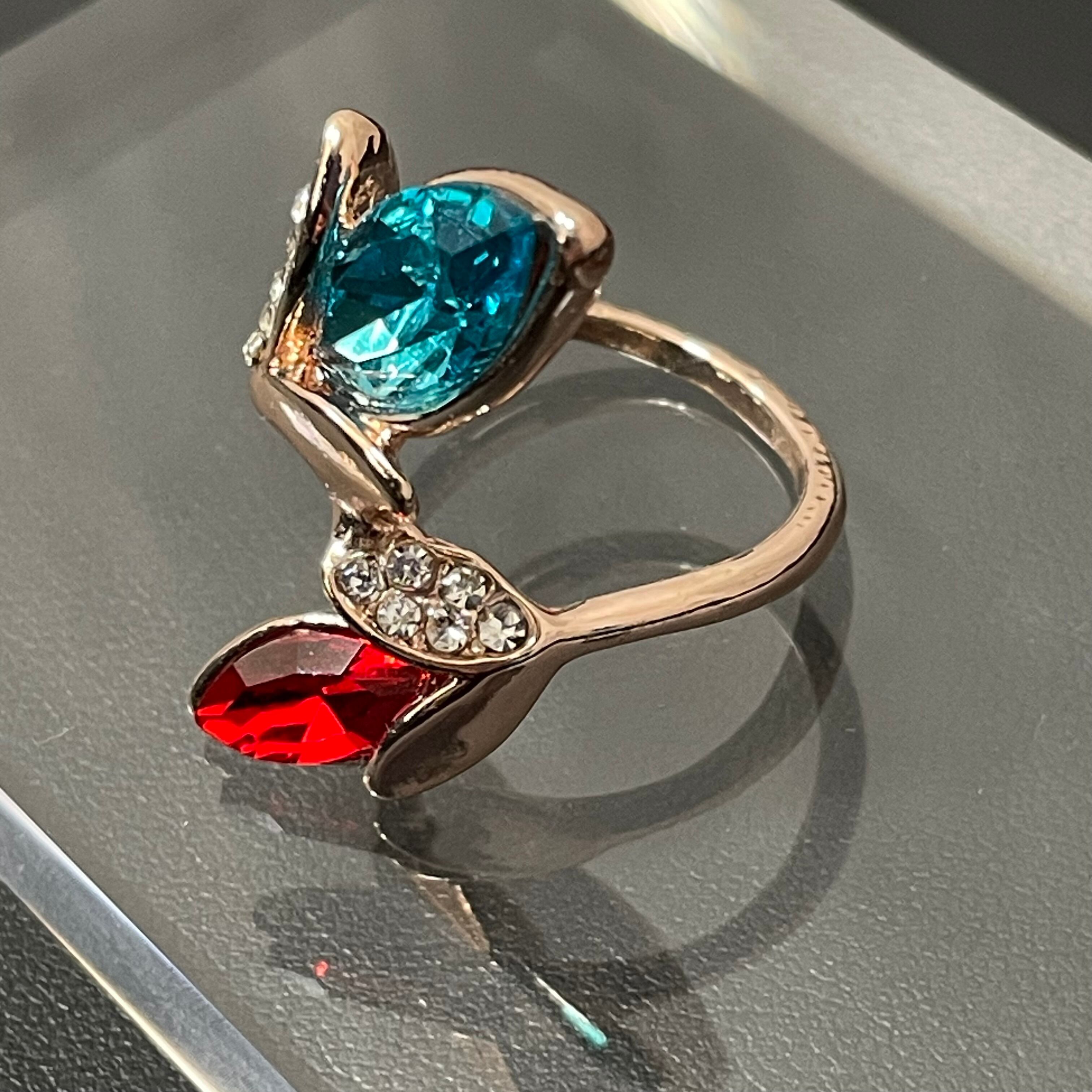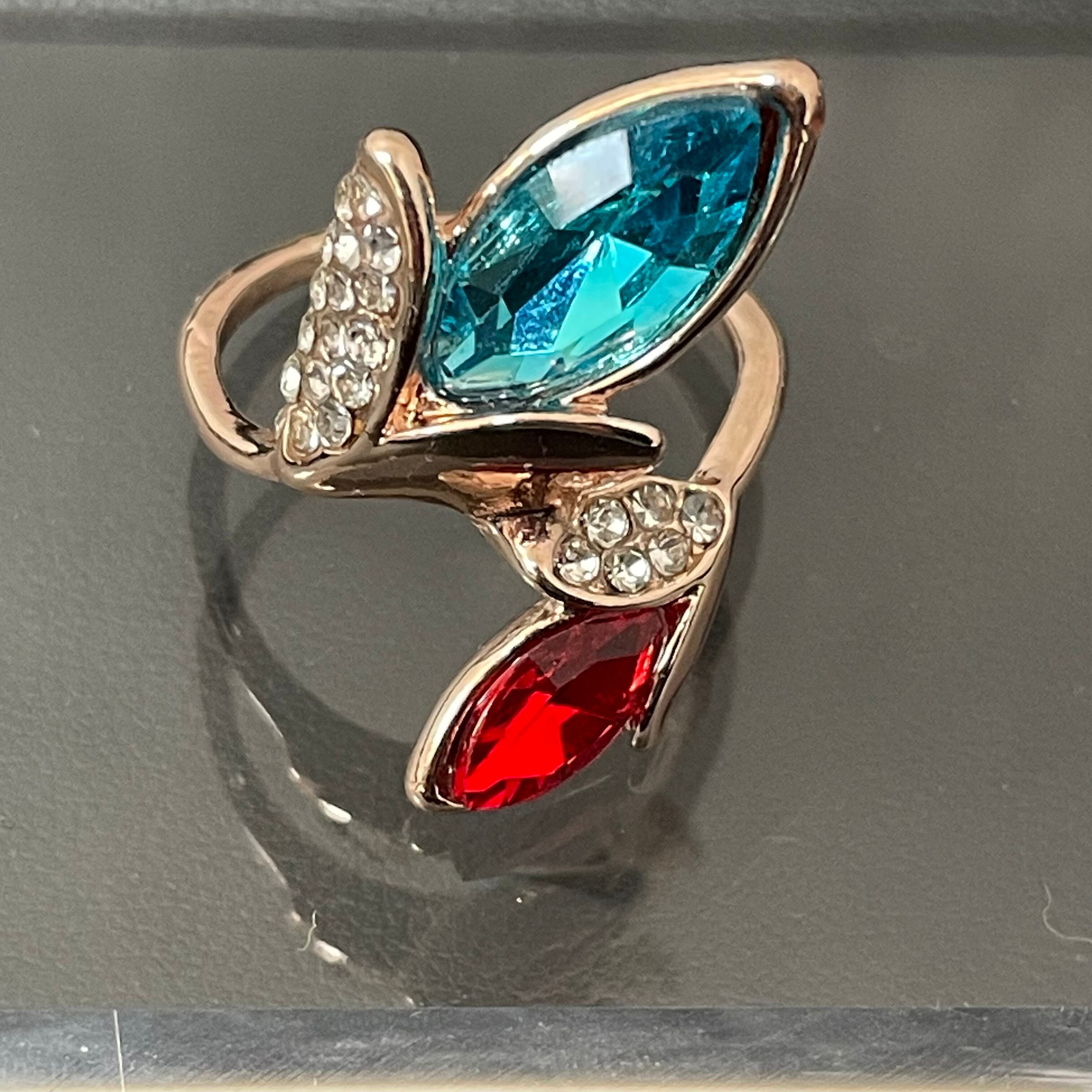 デザインリング ストーンモチーフ リーフモチーフ ゴールド バイカラー ブルー レッド ラインストーン