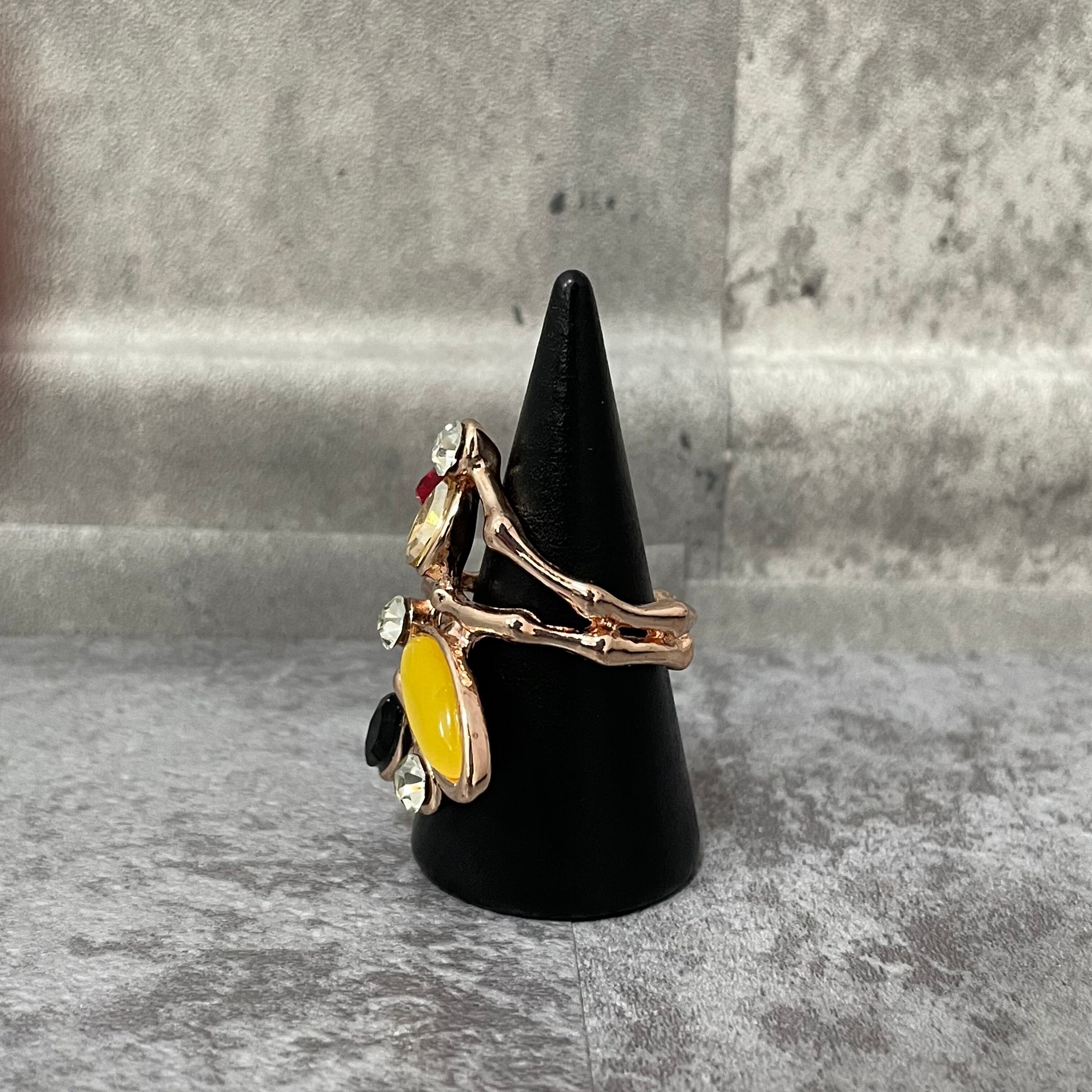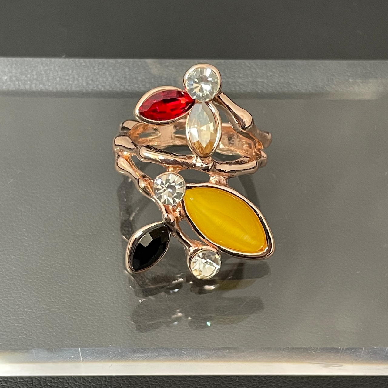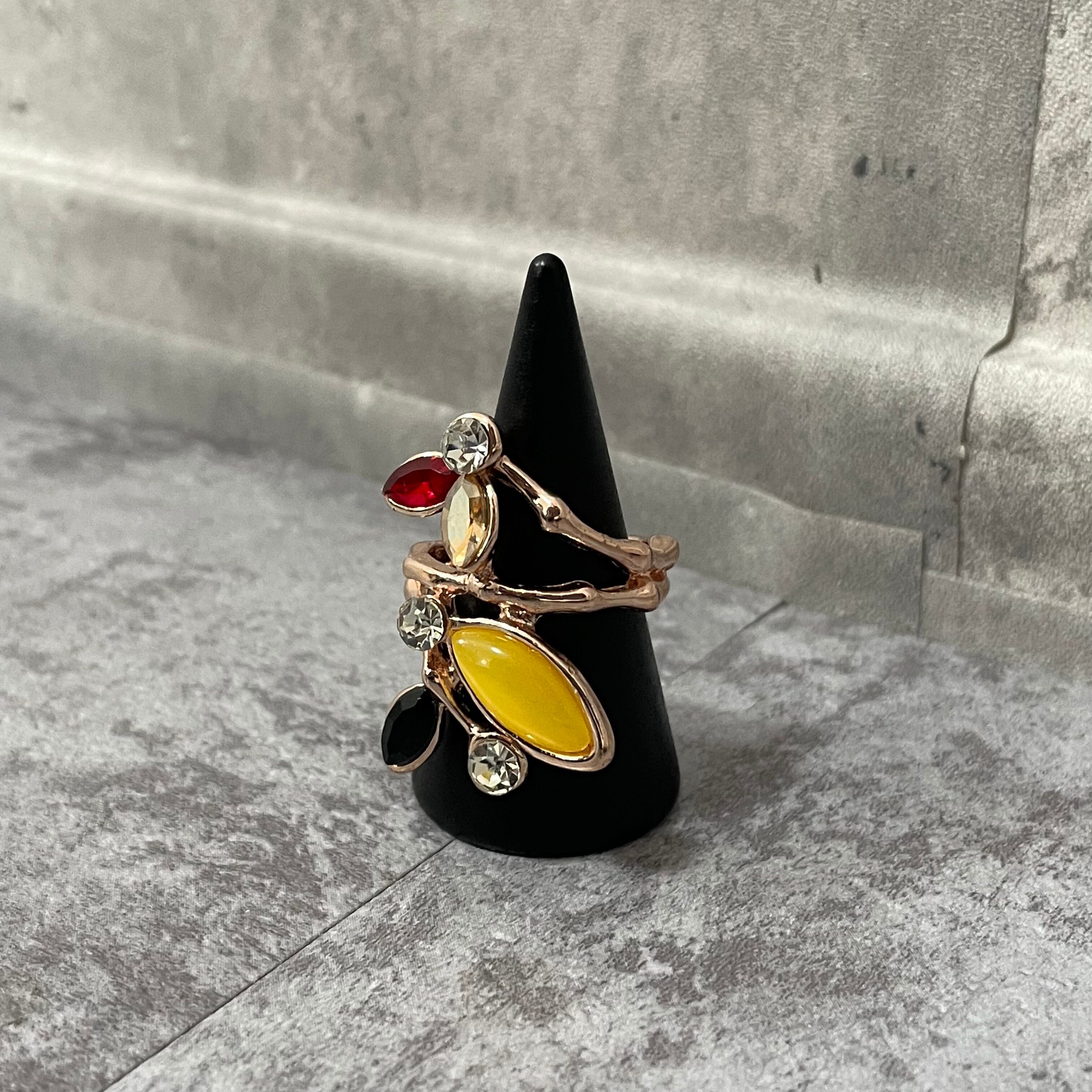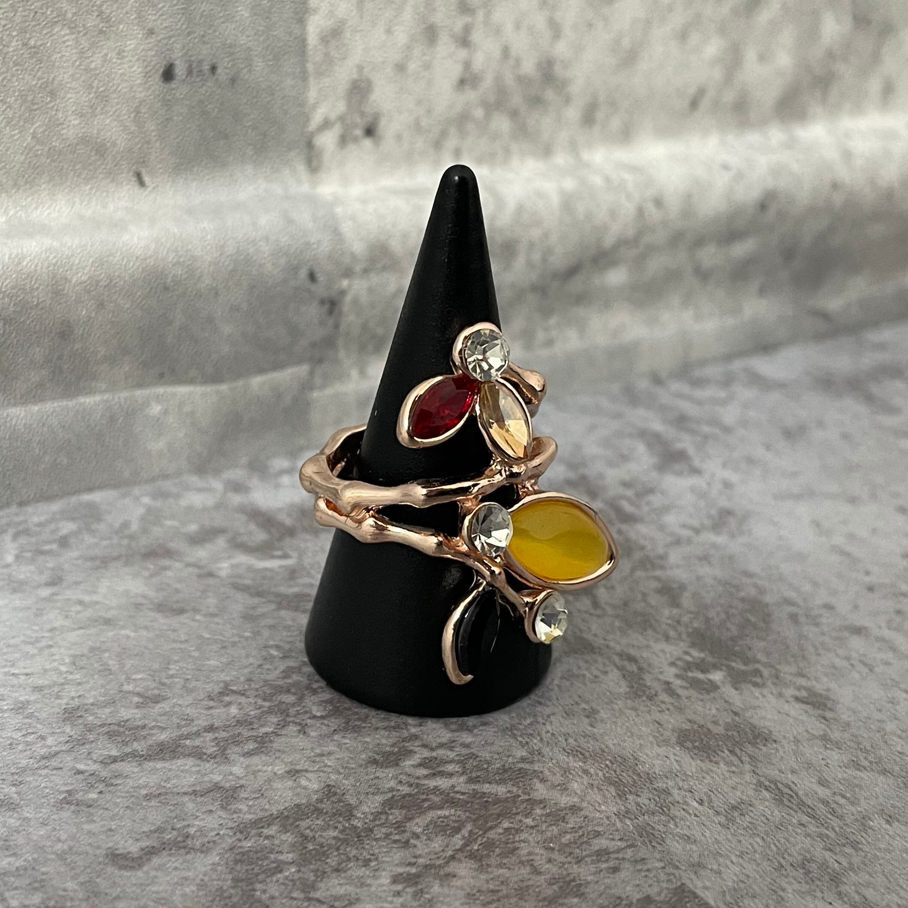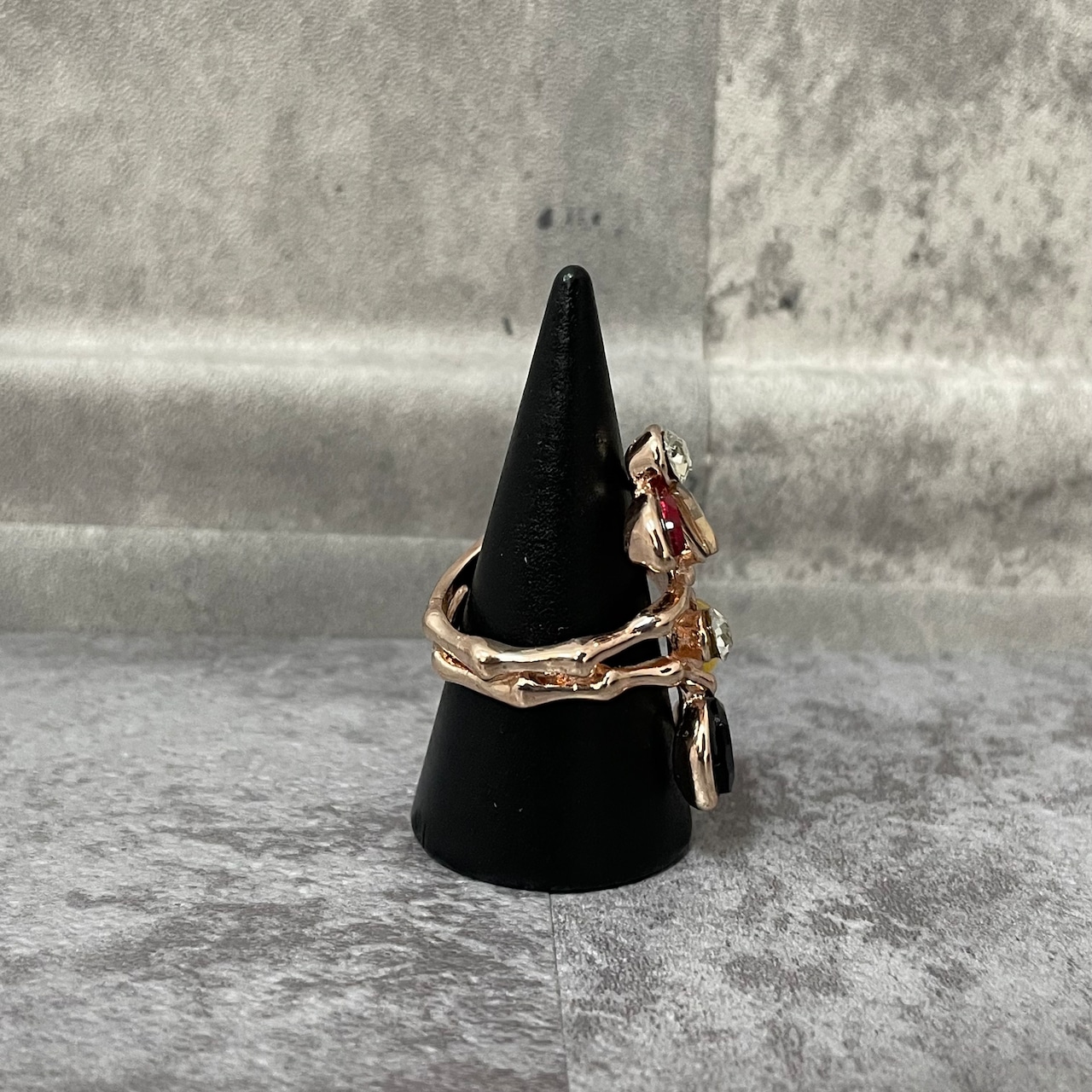 デザインリング ストーンモチーフ リーフモチーフ ゴールド レッド ピンク ブラック