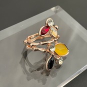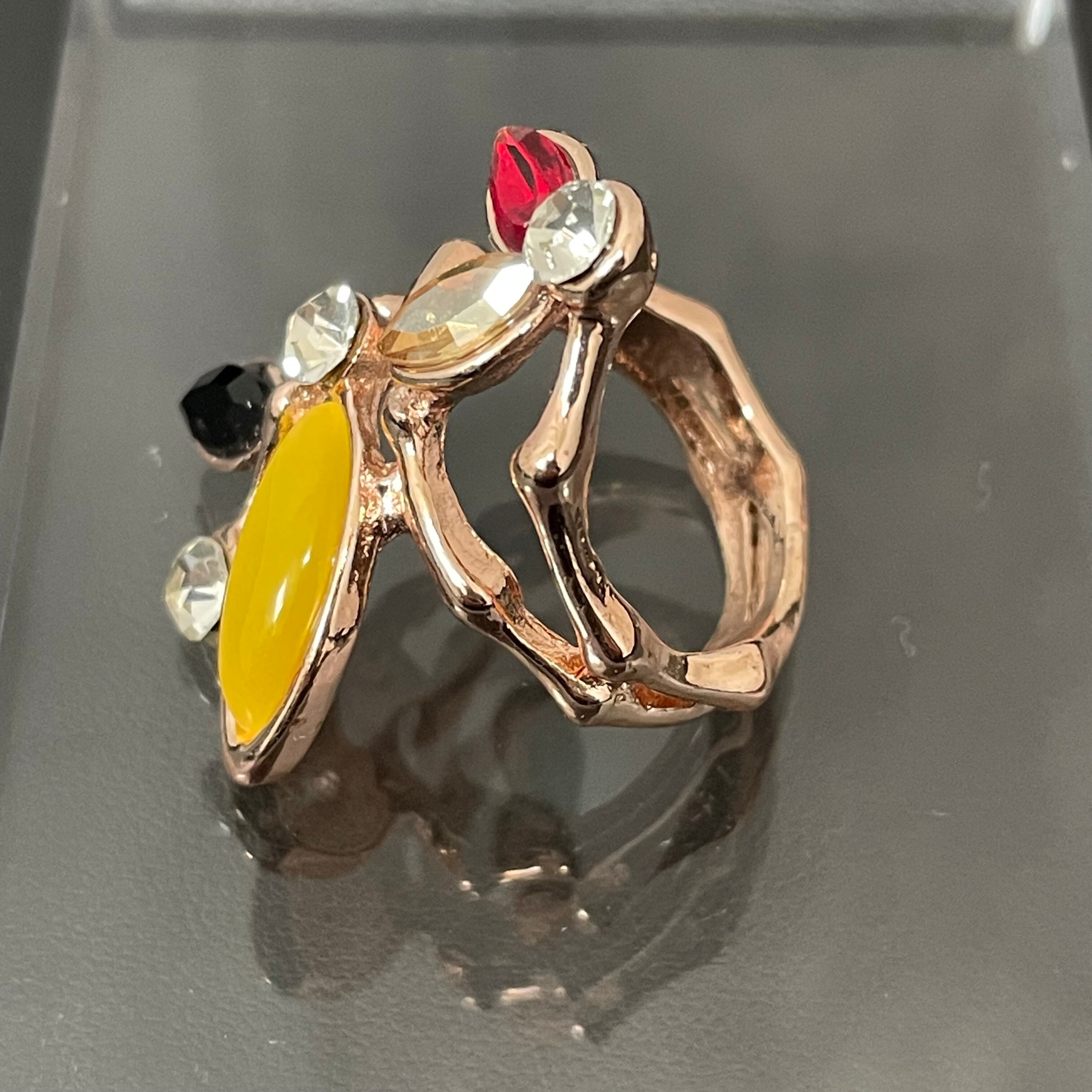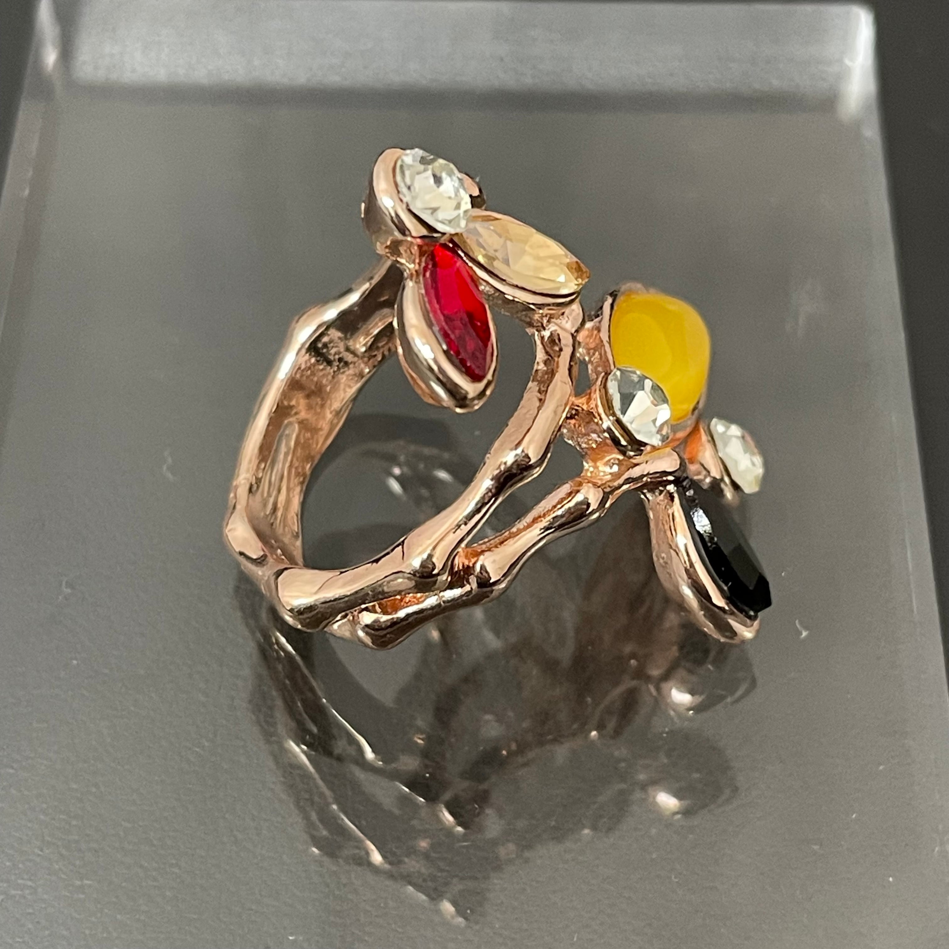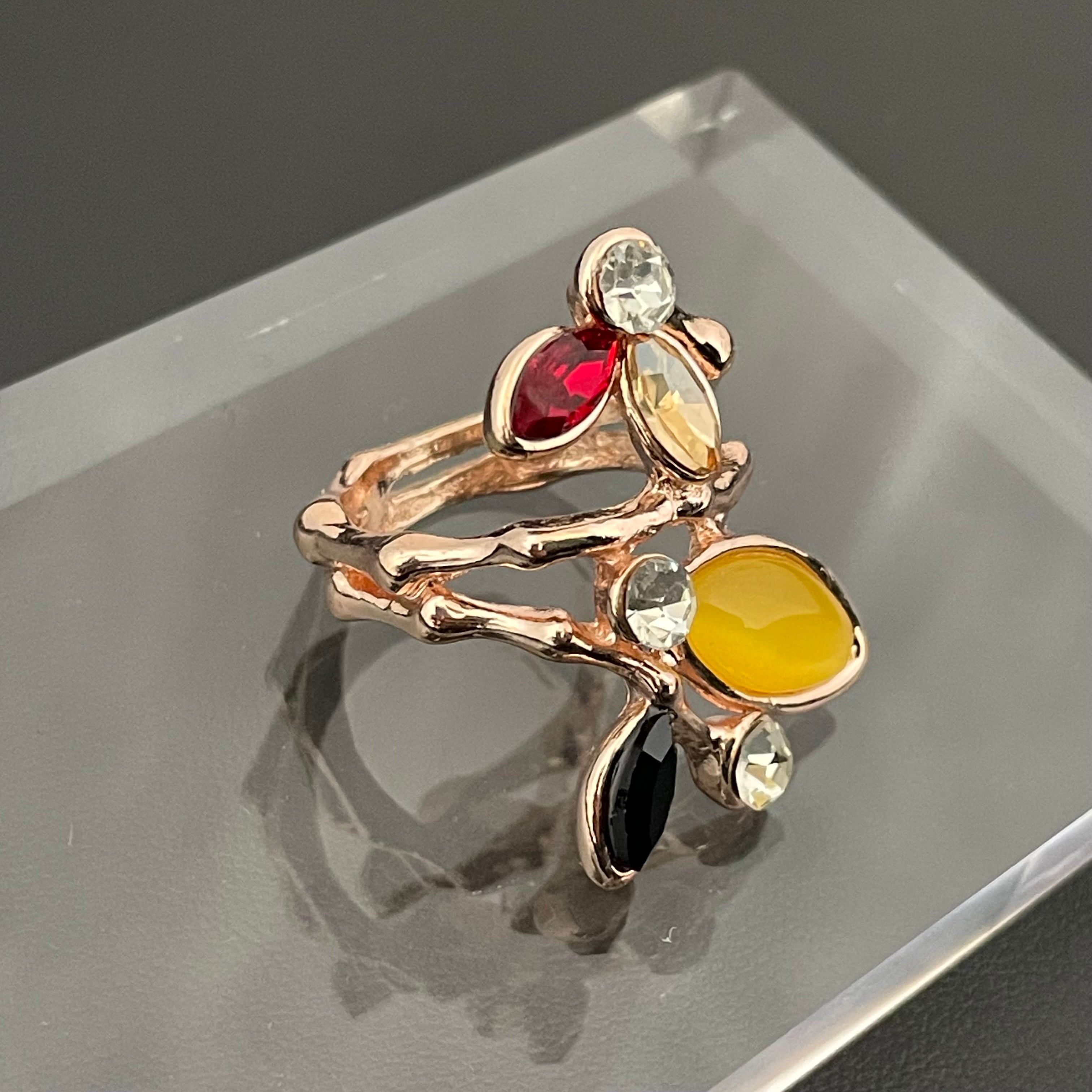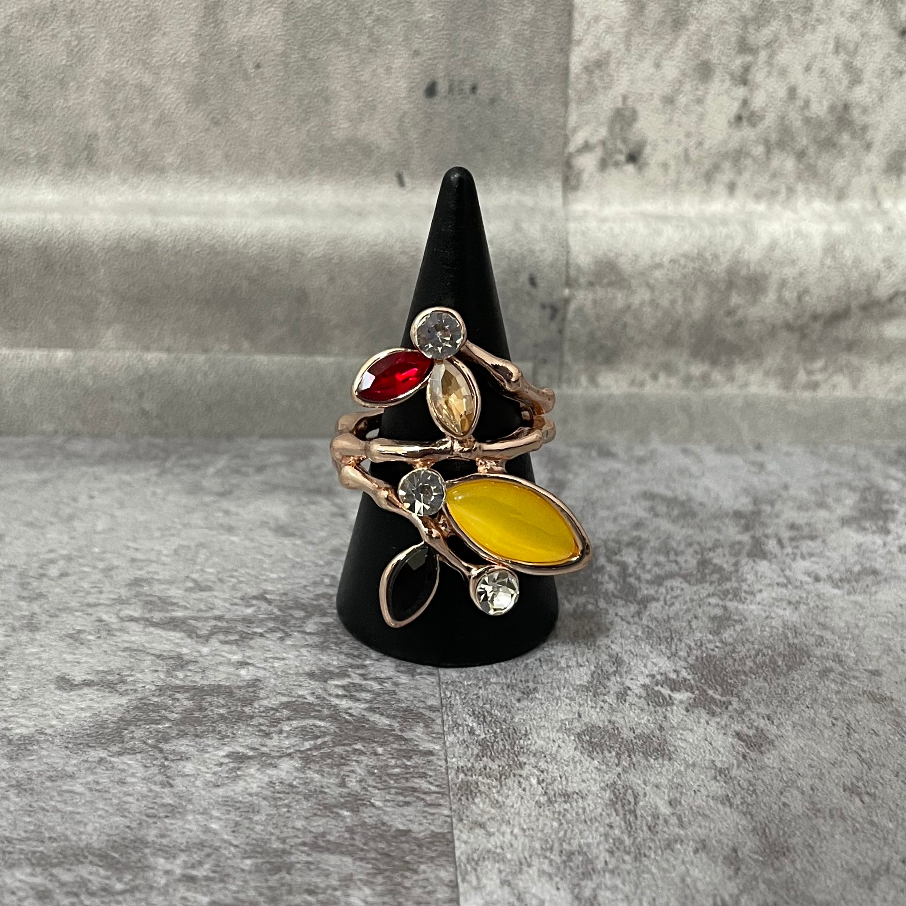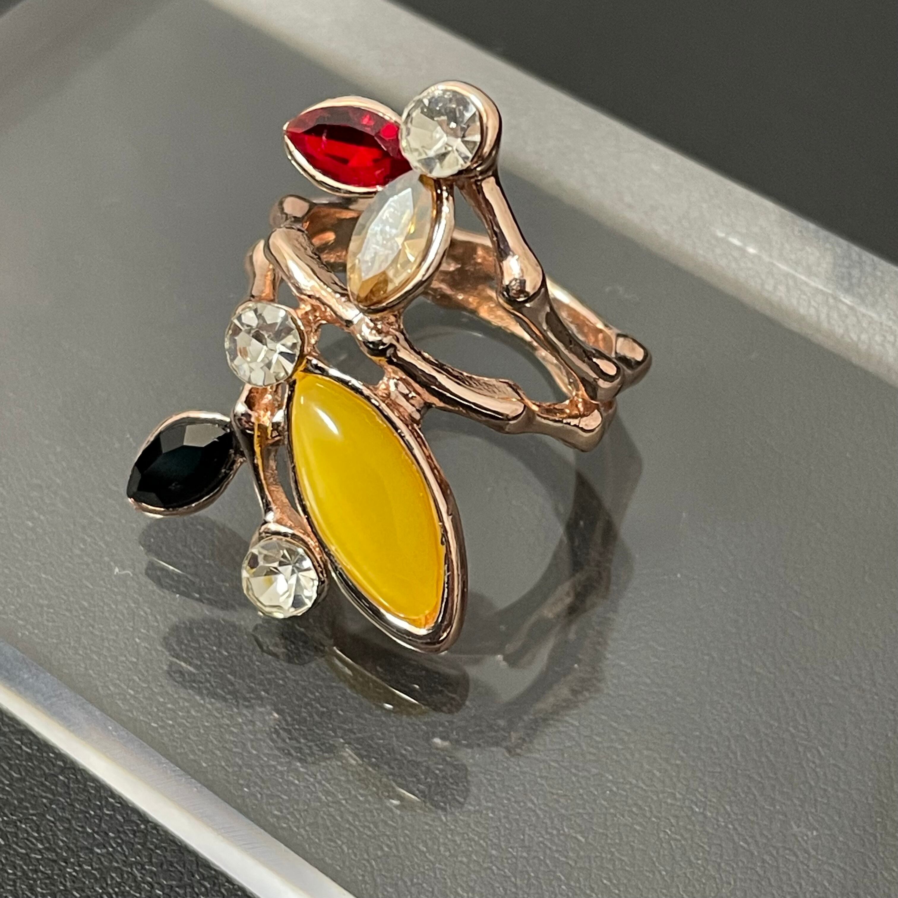 デザインリング ストーンモチーフ リーフモチーフ ゴールド レッド ピンク ブラック