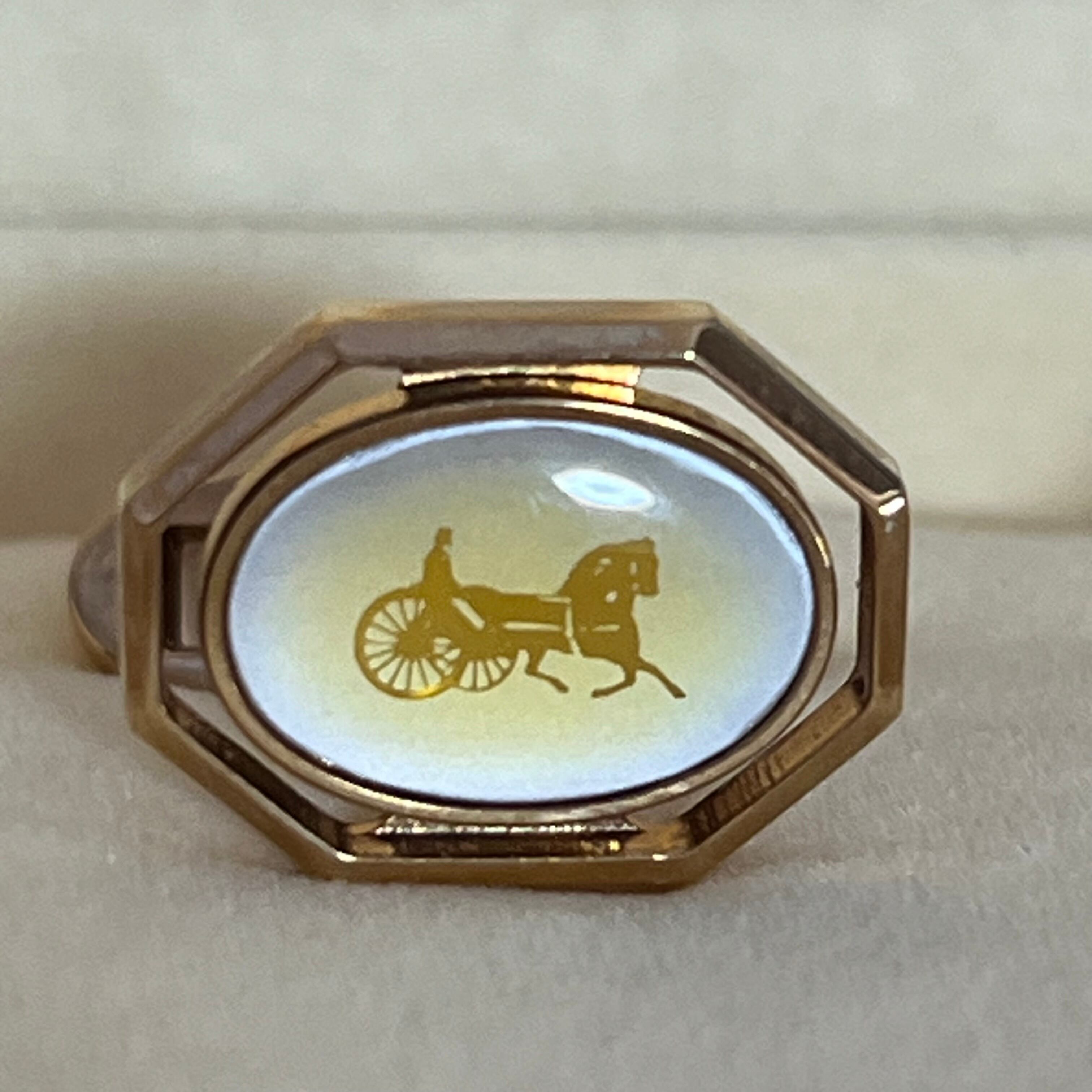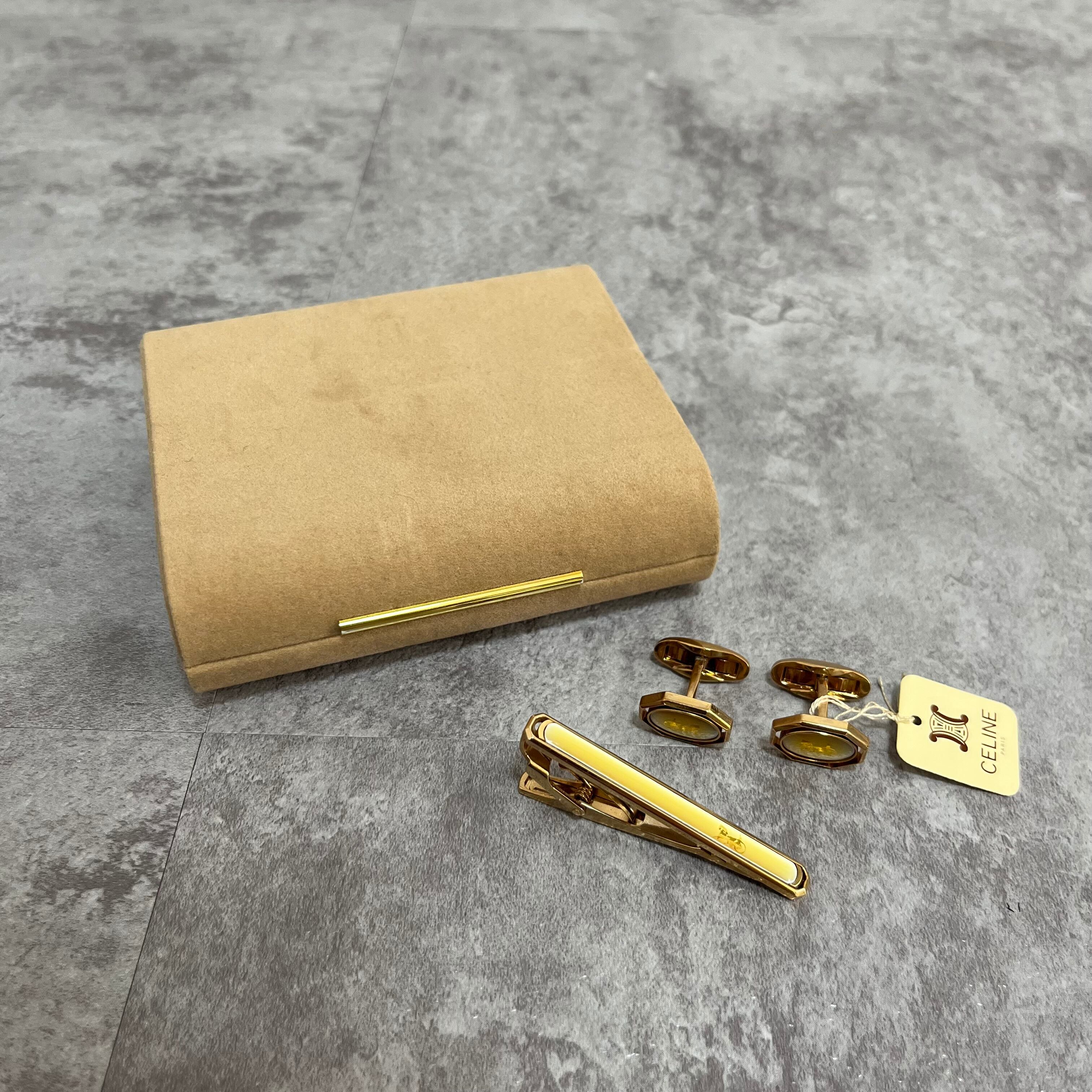 【CELINE】箱付き タグ付き セリーヌ カフスボタン カフリンクス ネクタイピン 3点セット ゴールド 馬車 トリオンフロゴ