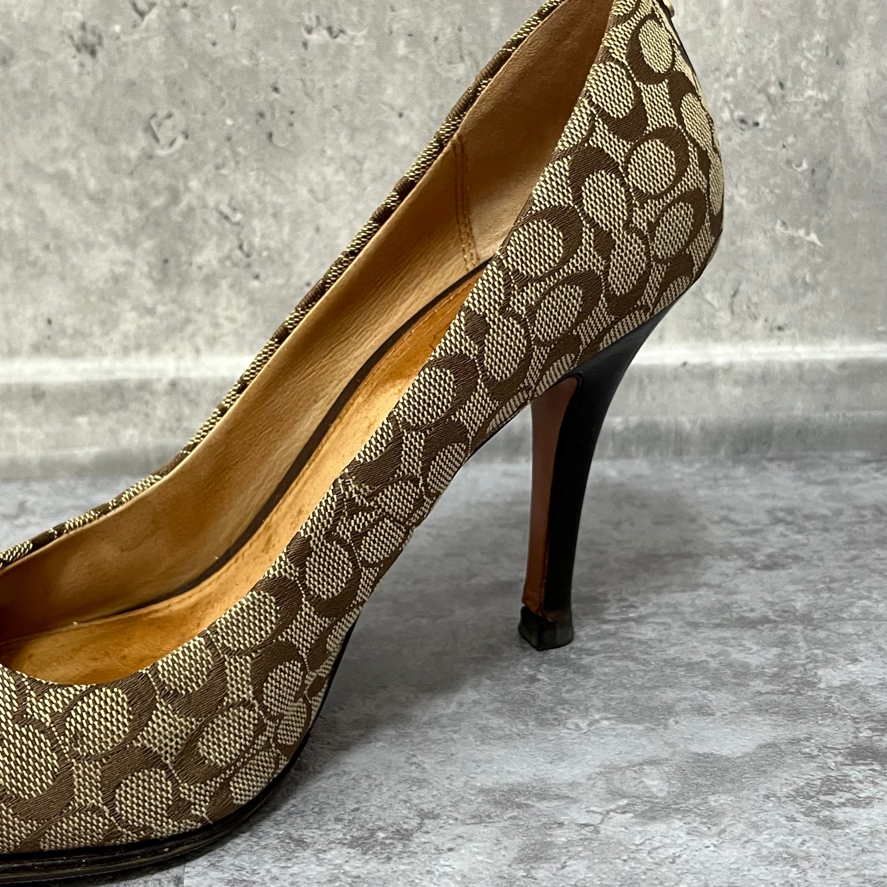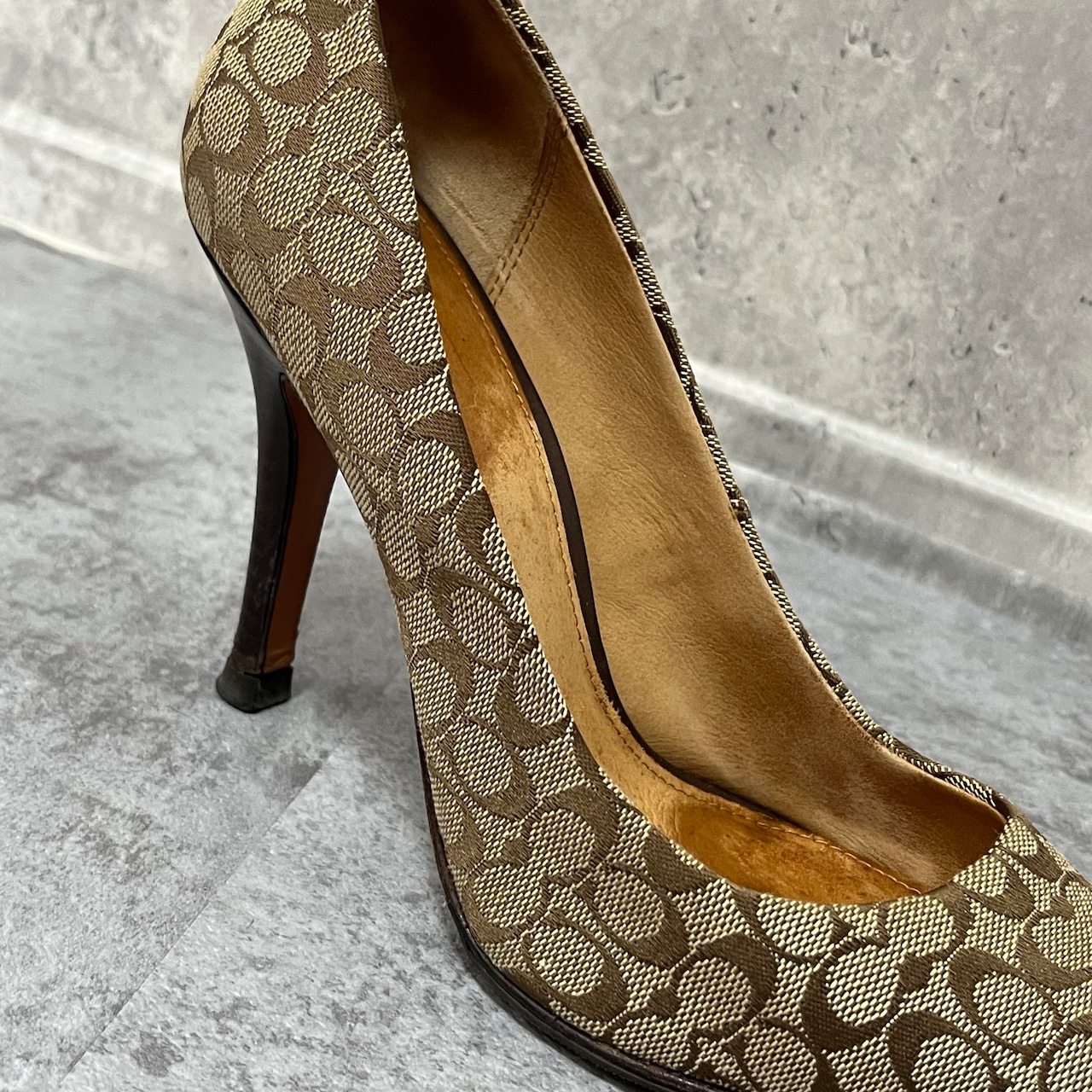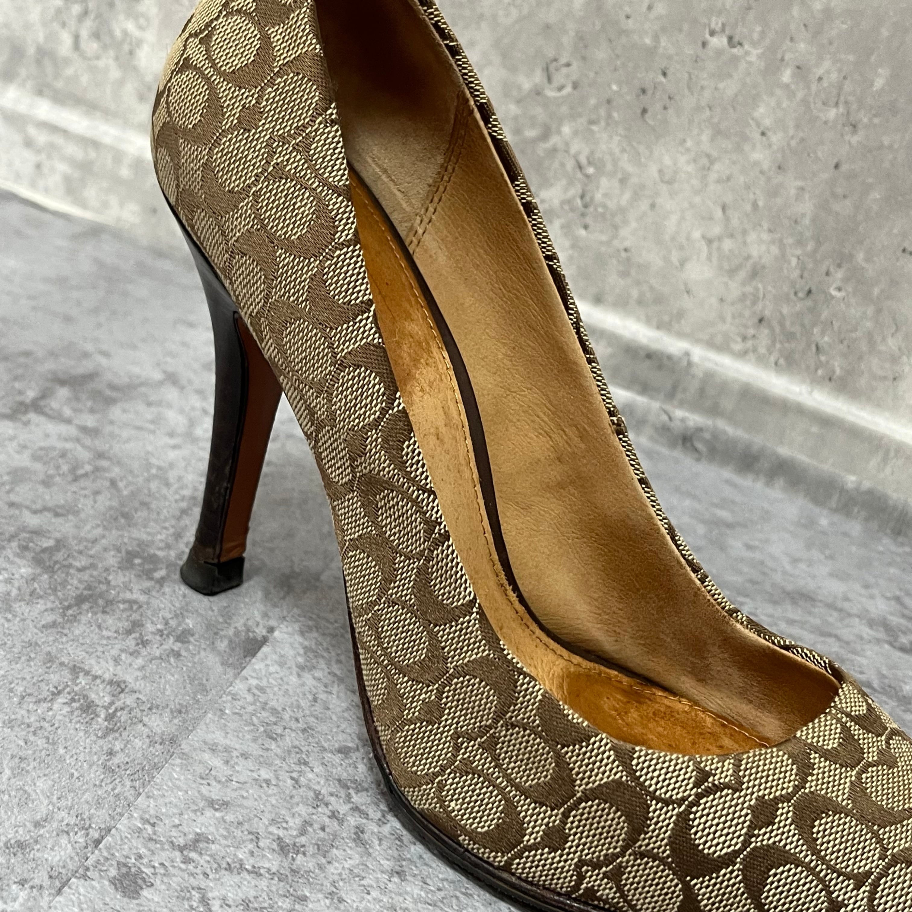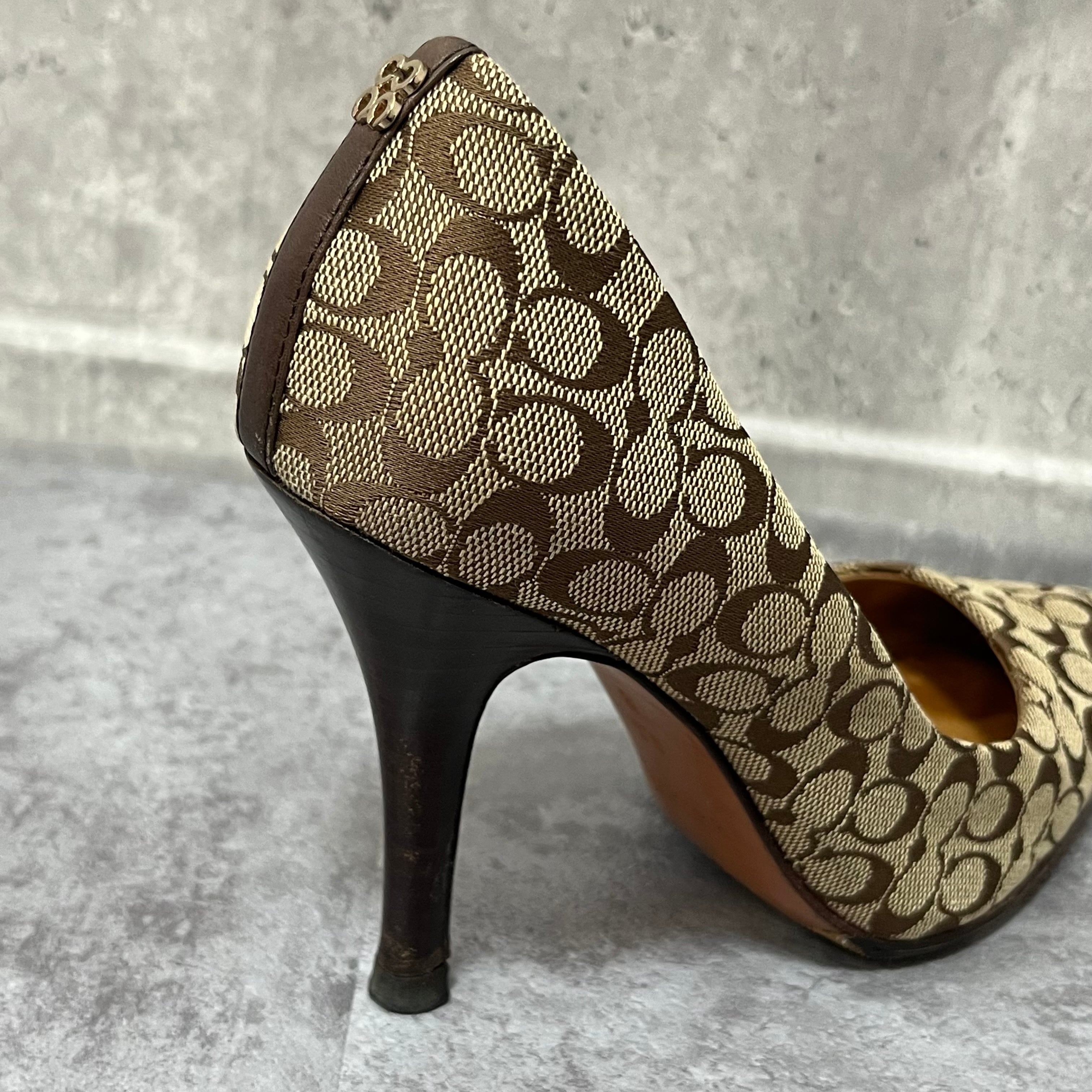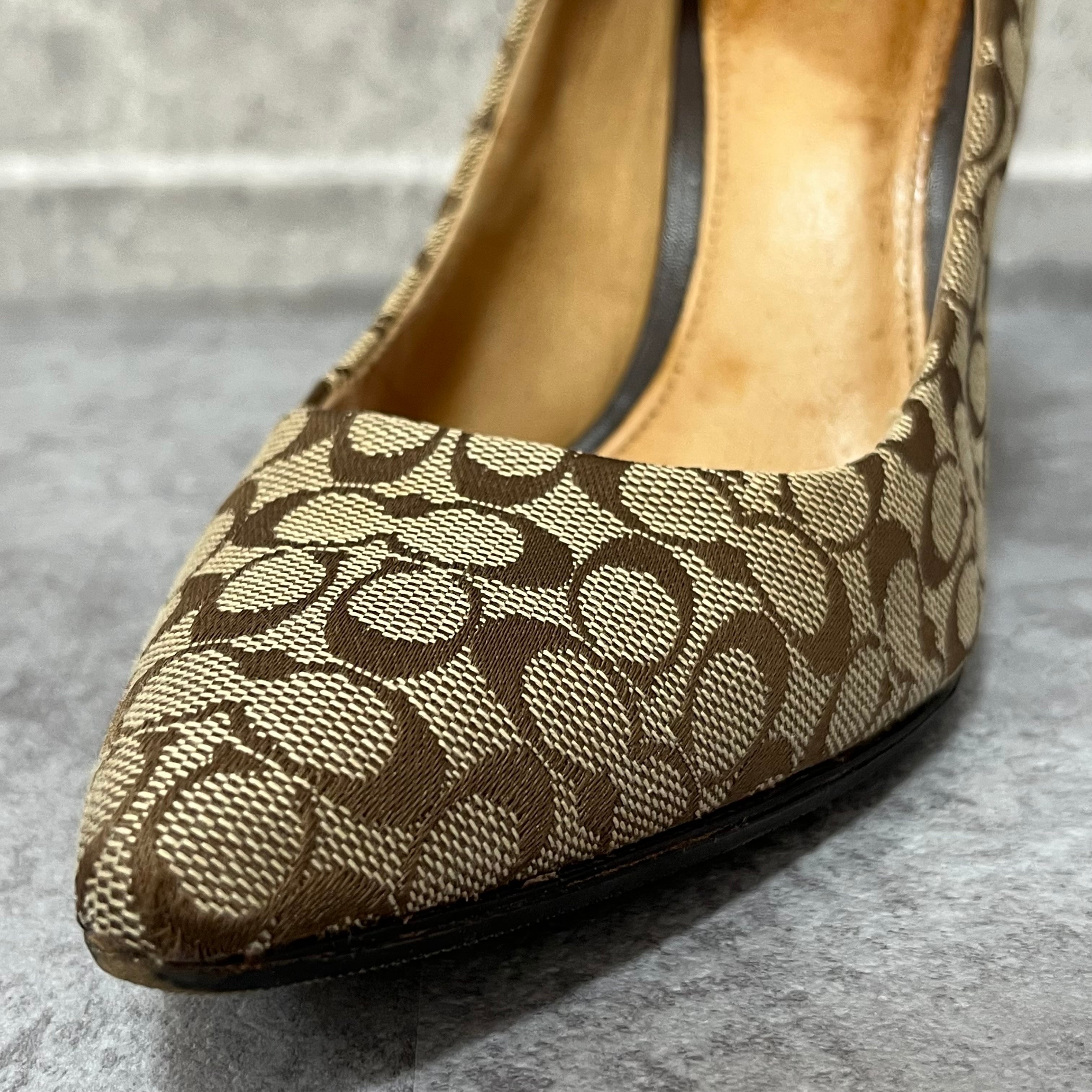 【coach】コーチ パンプス ハイヒール シグネチャー ブラウン ベージュ 6.5B