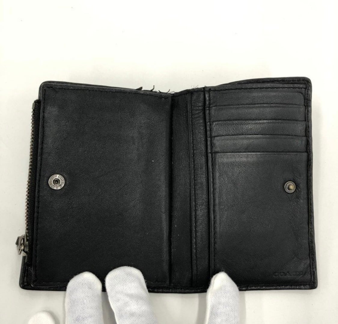 【COACH】コーチ 二つ折り財布 ブラック スナップボタン パンチングレザー