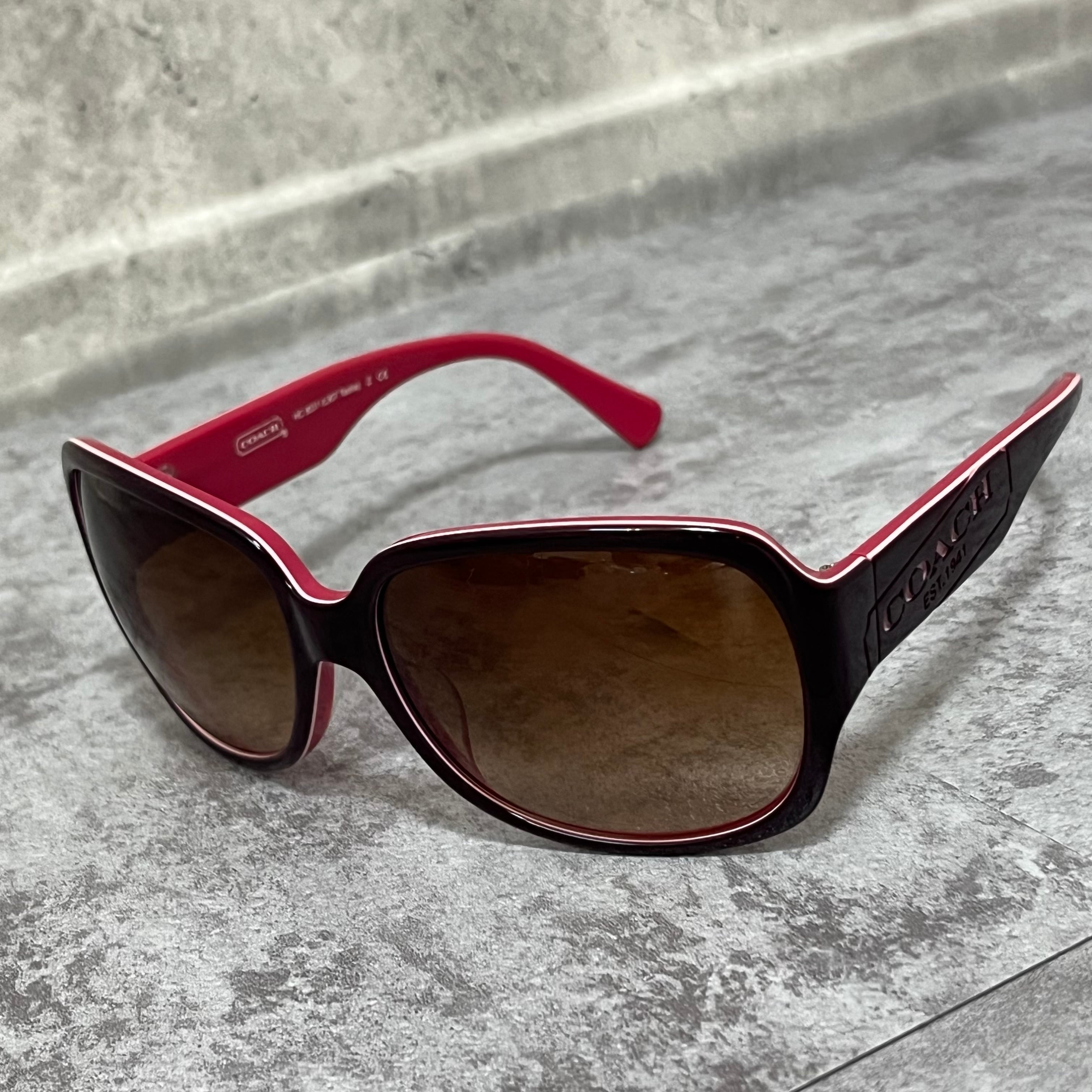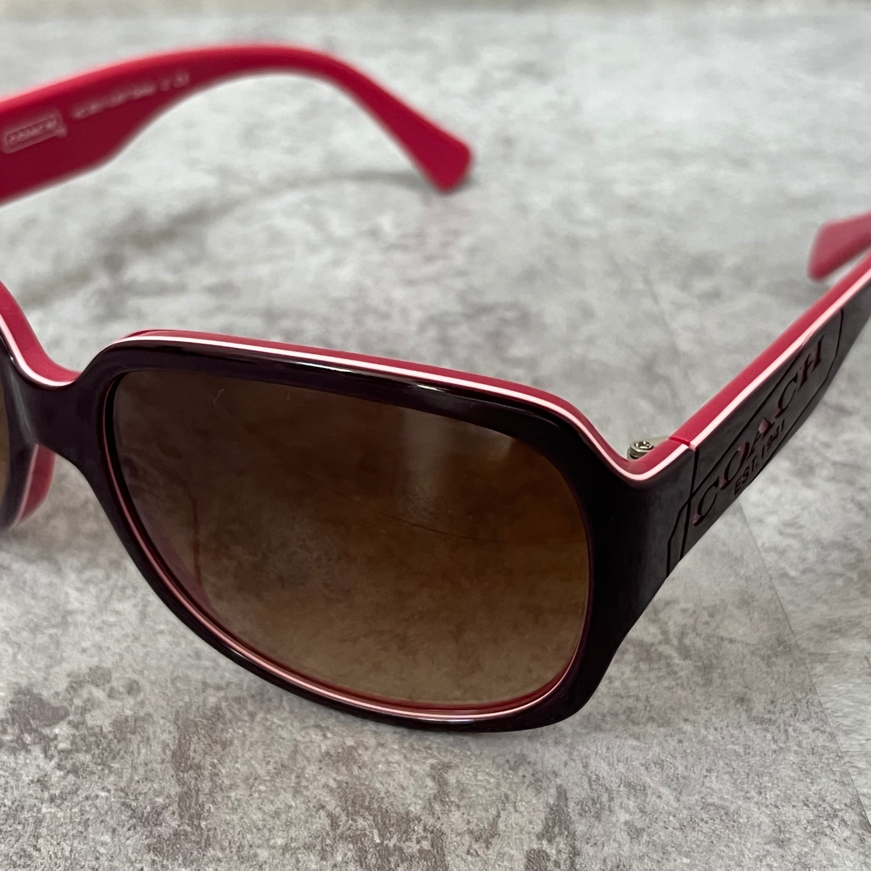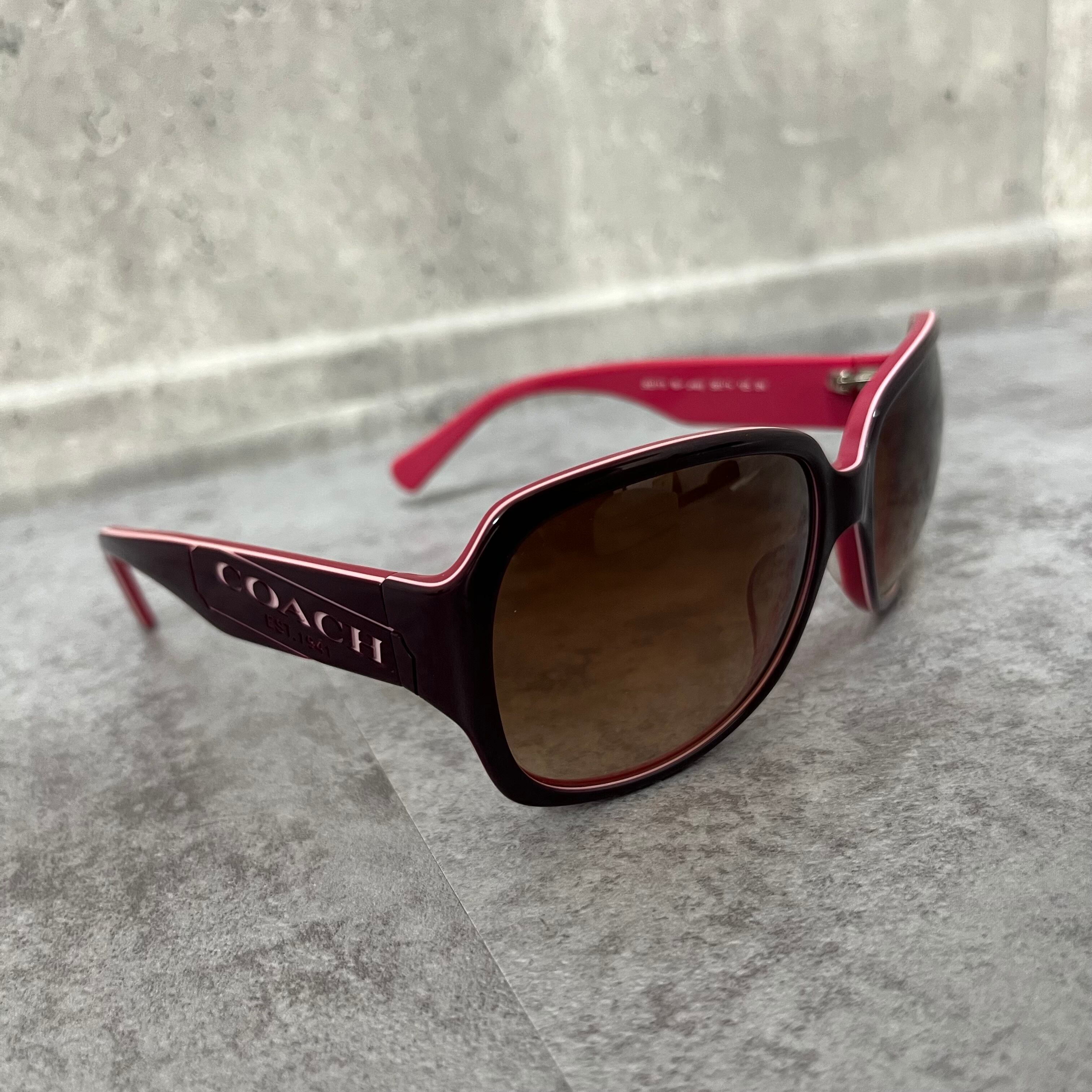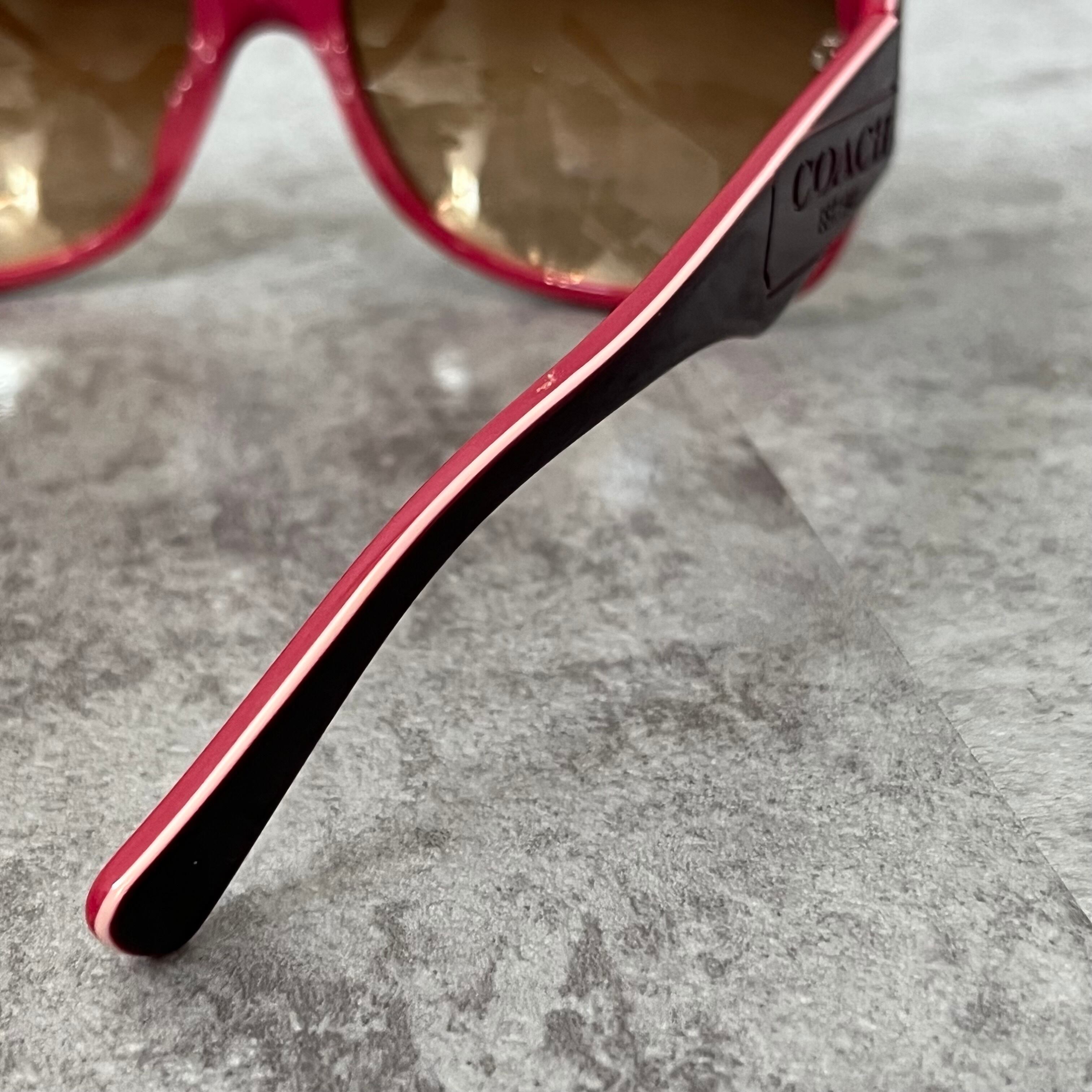 【coach】コーチ サングラス ロゴ入り ピンク ブラウン ケース付き ウェリントン