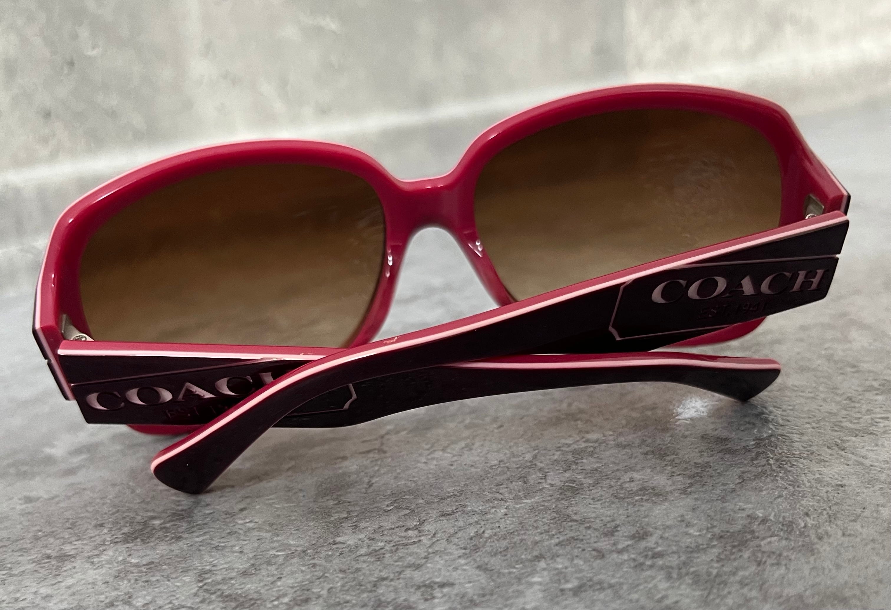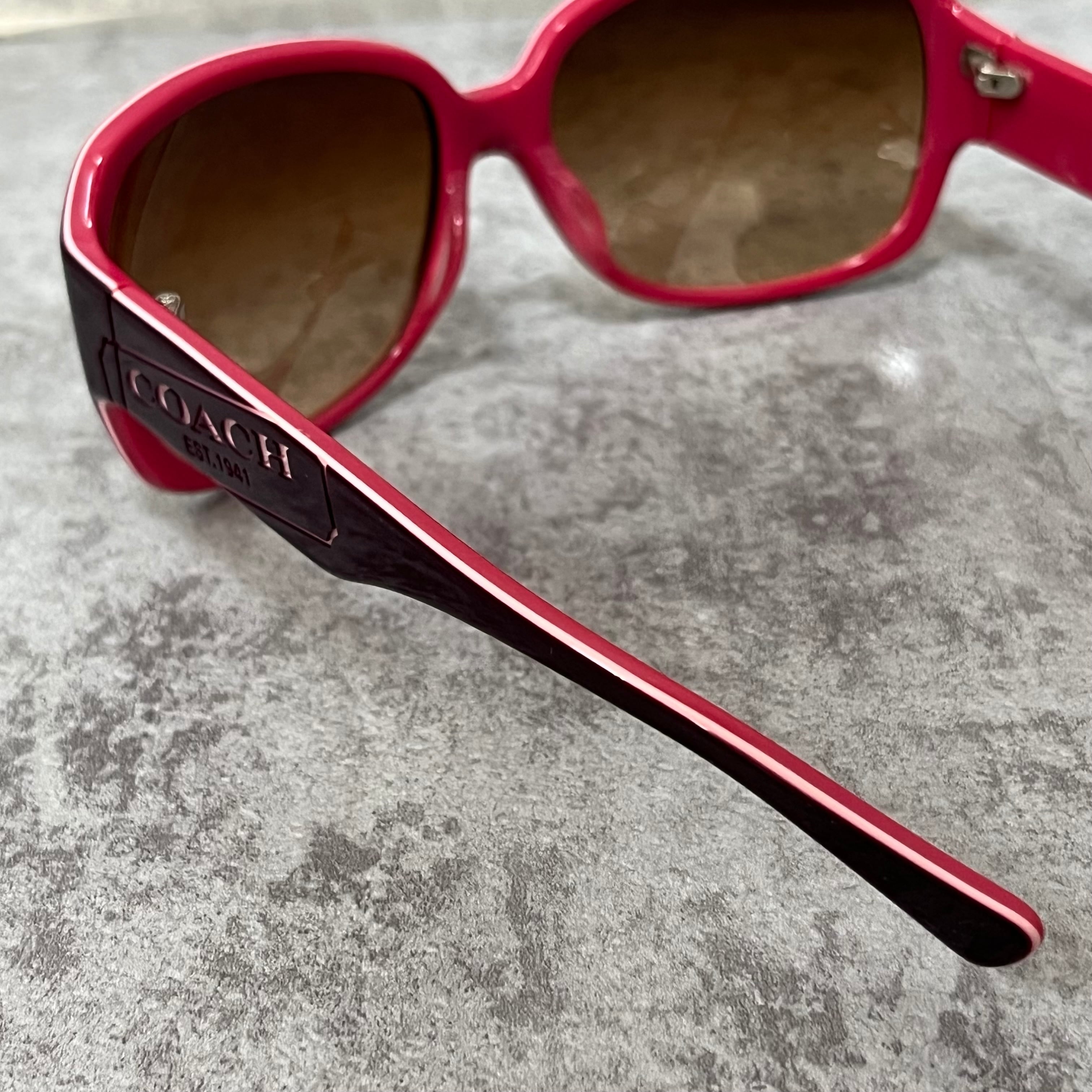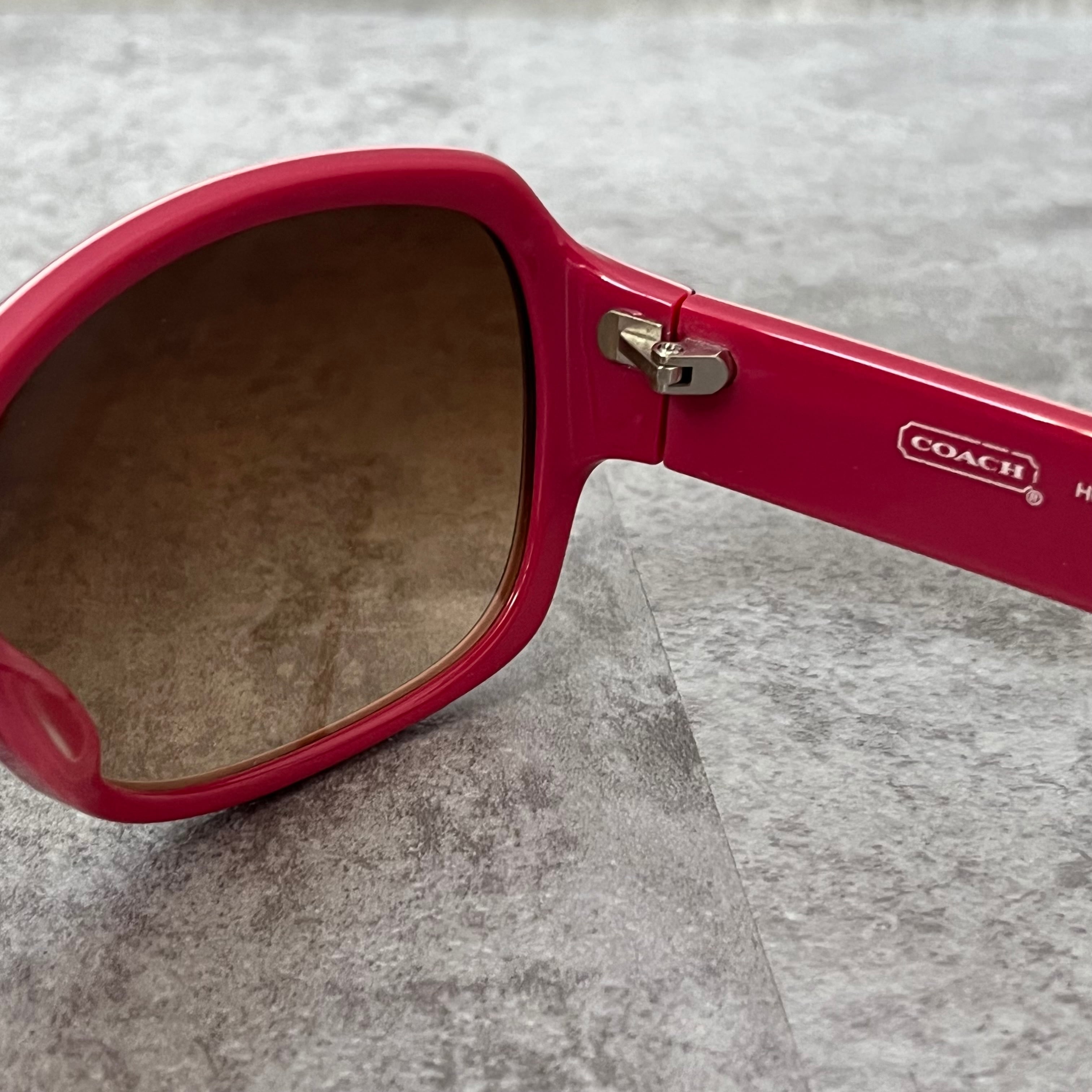 【coach】コーチ サングラス ロゴ入り ピンク ブラウン ケース付き ウェリントン