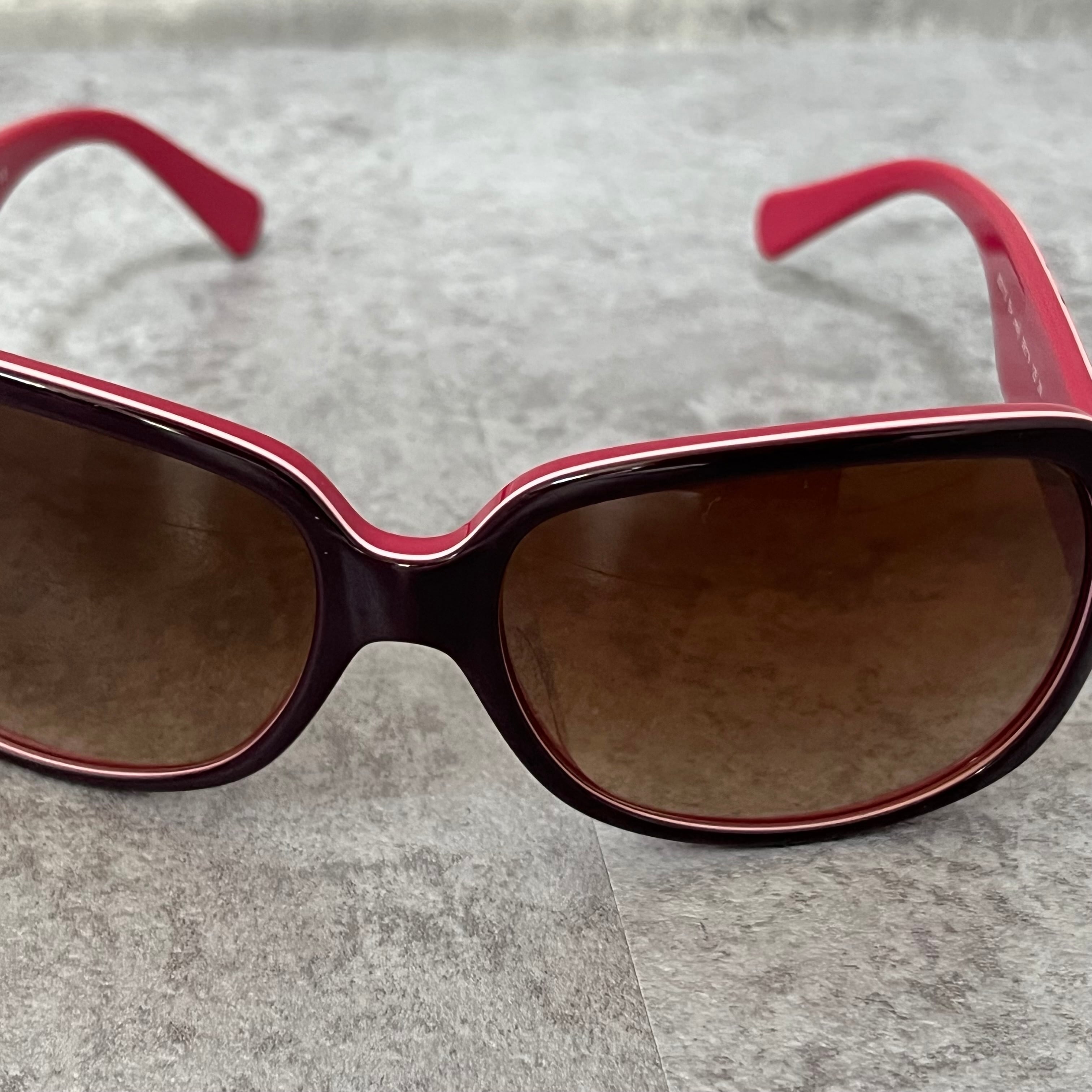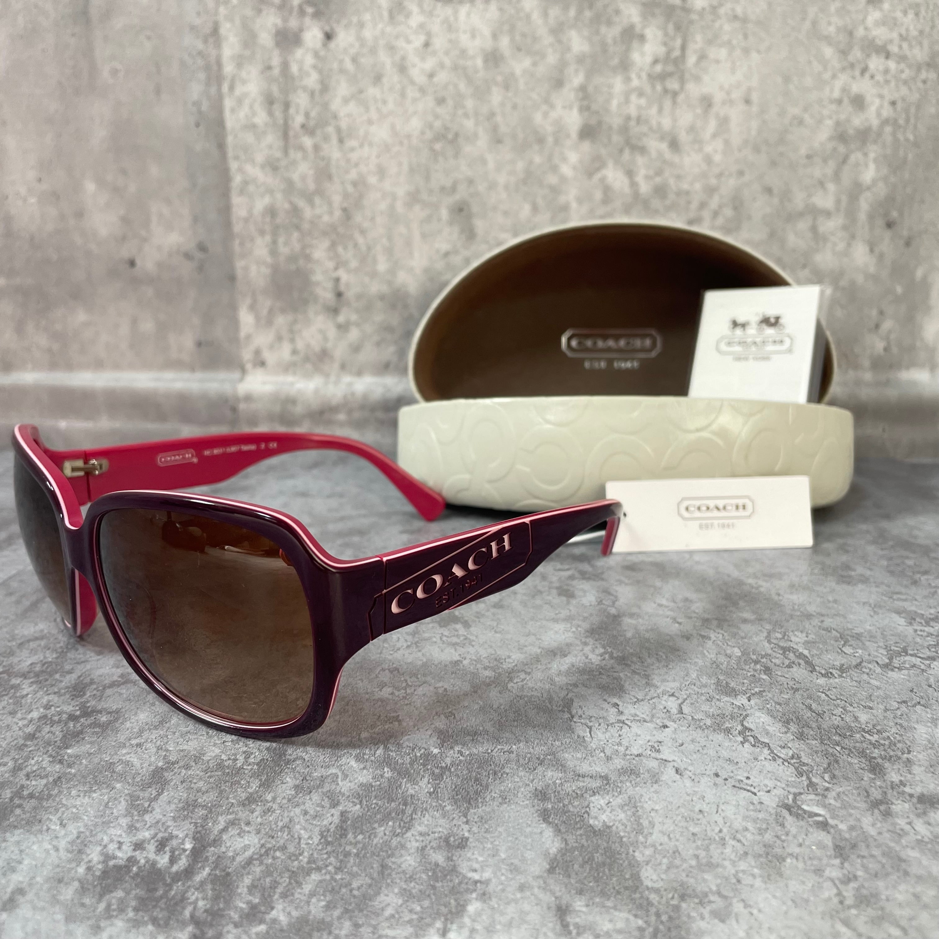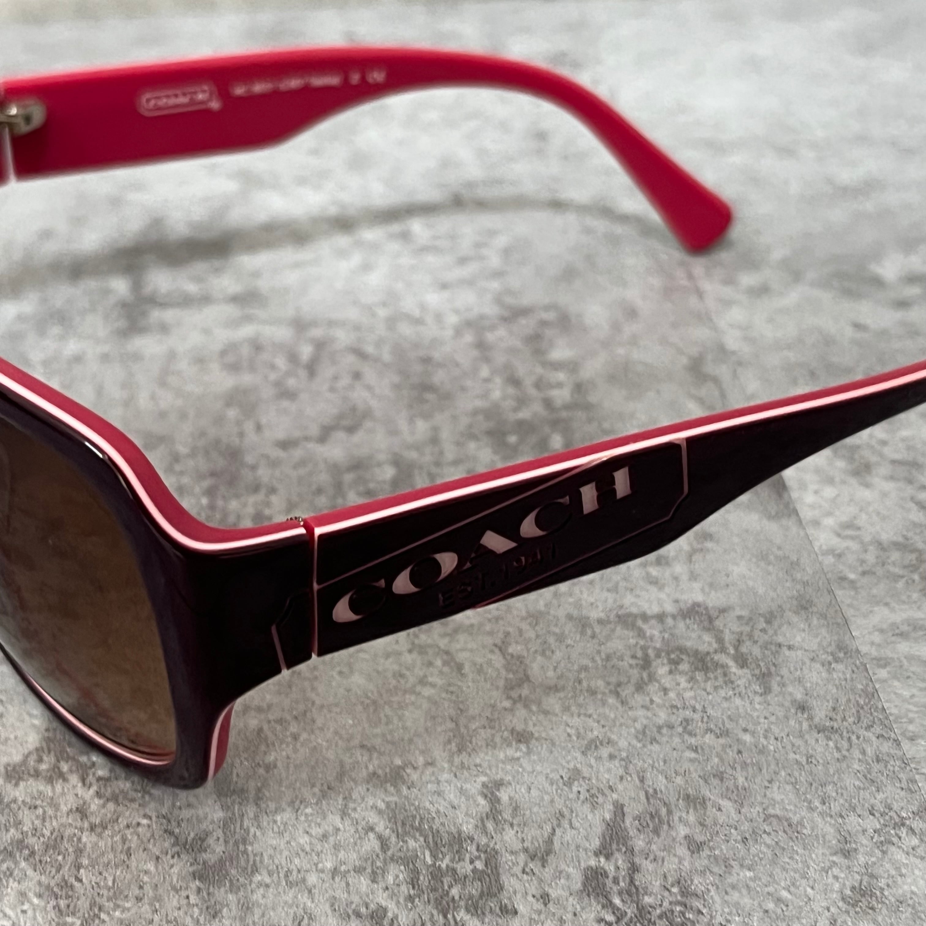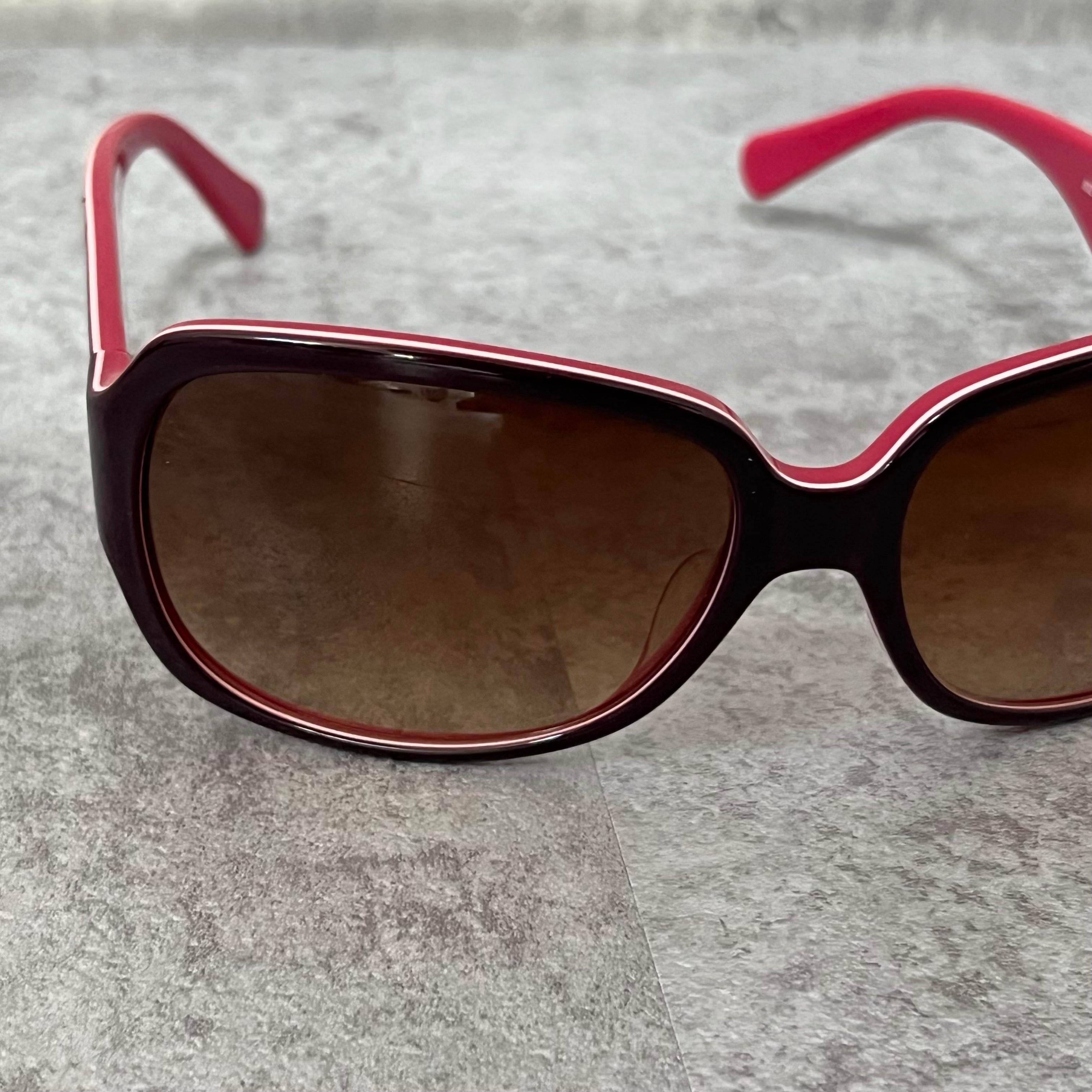 【coach】コーチ サングラス ロゴ入り ピンク ブラウン ケース付き ウェリントン