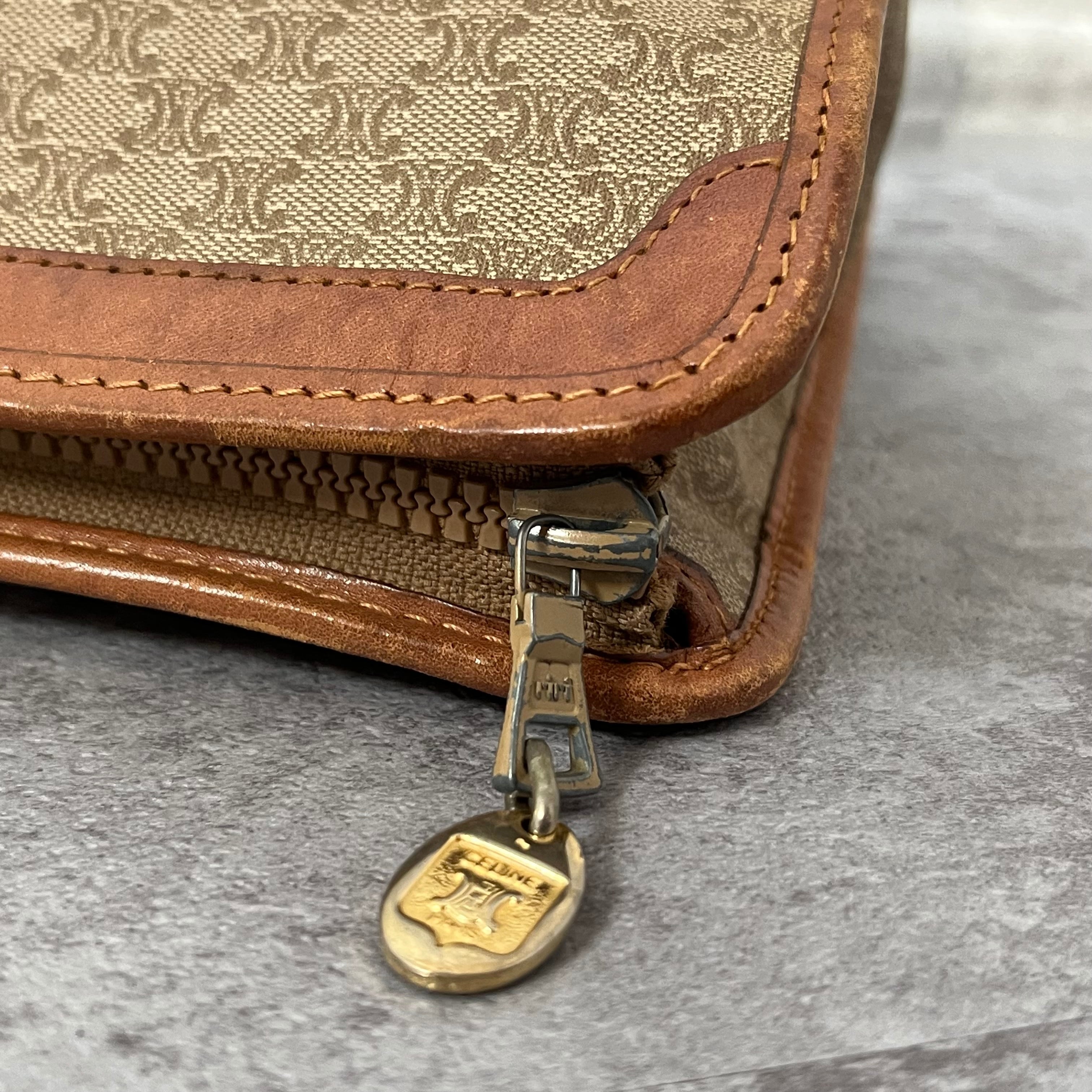 【CELINE】セリーヌ マカダムセカンドバッグ クラッチバッグ ベージュ ブラウン トリオンフ