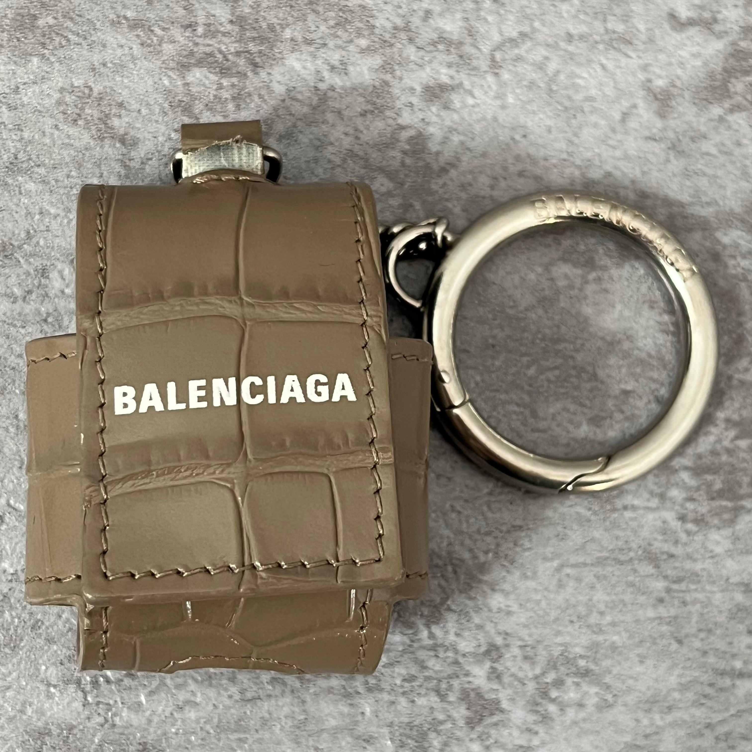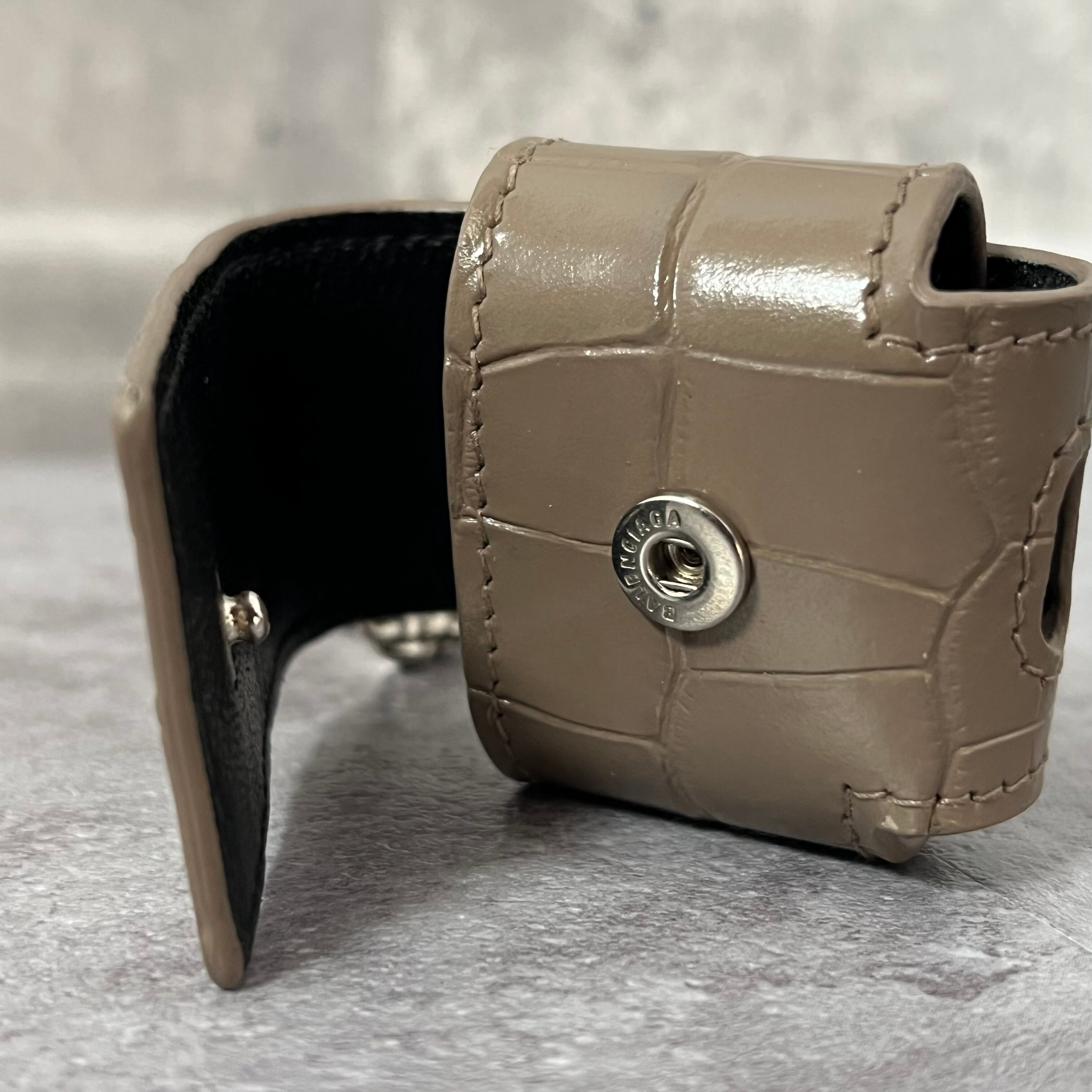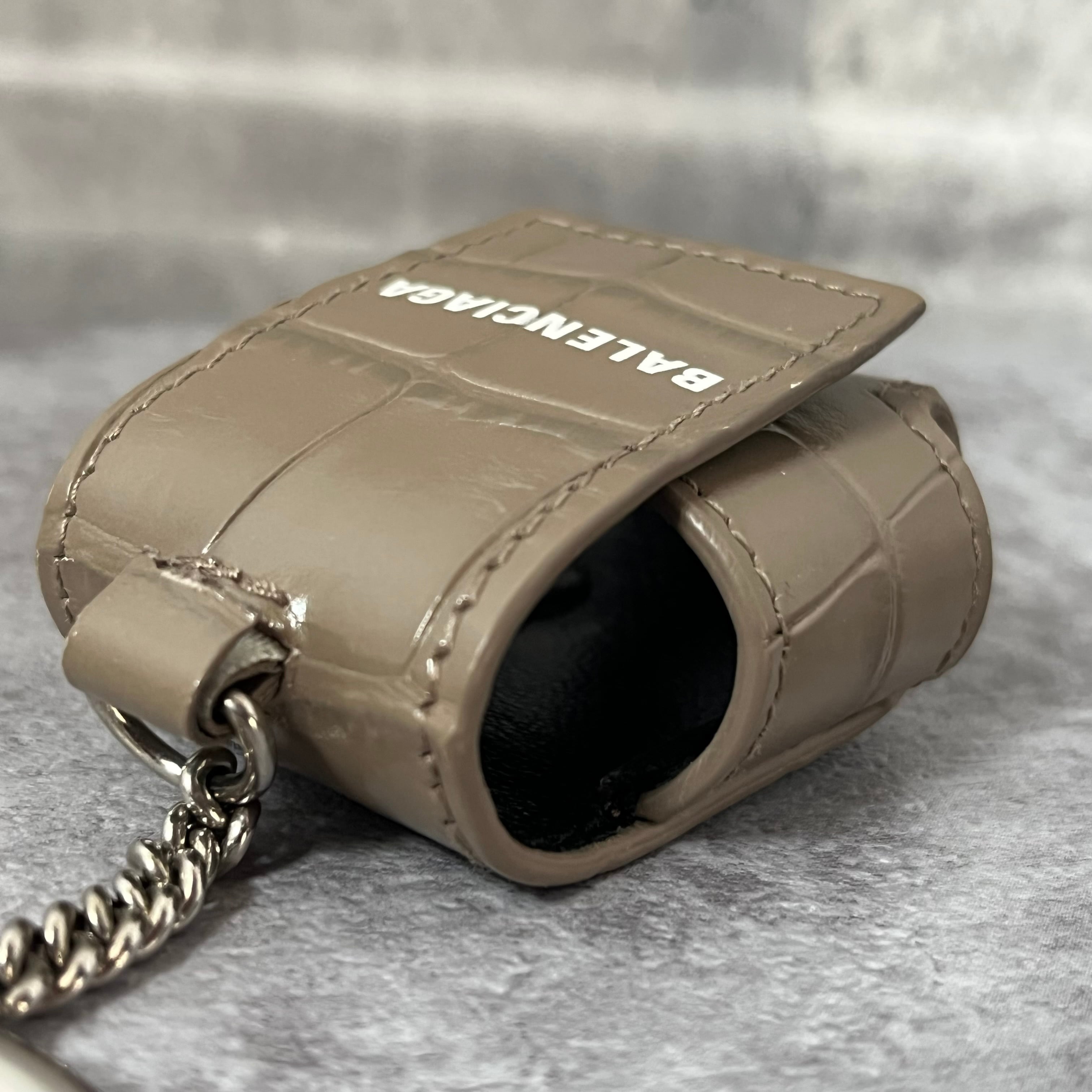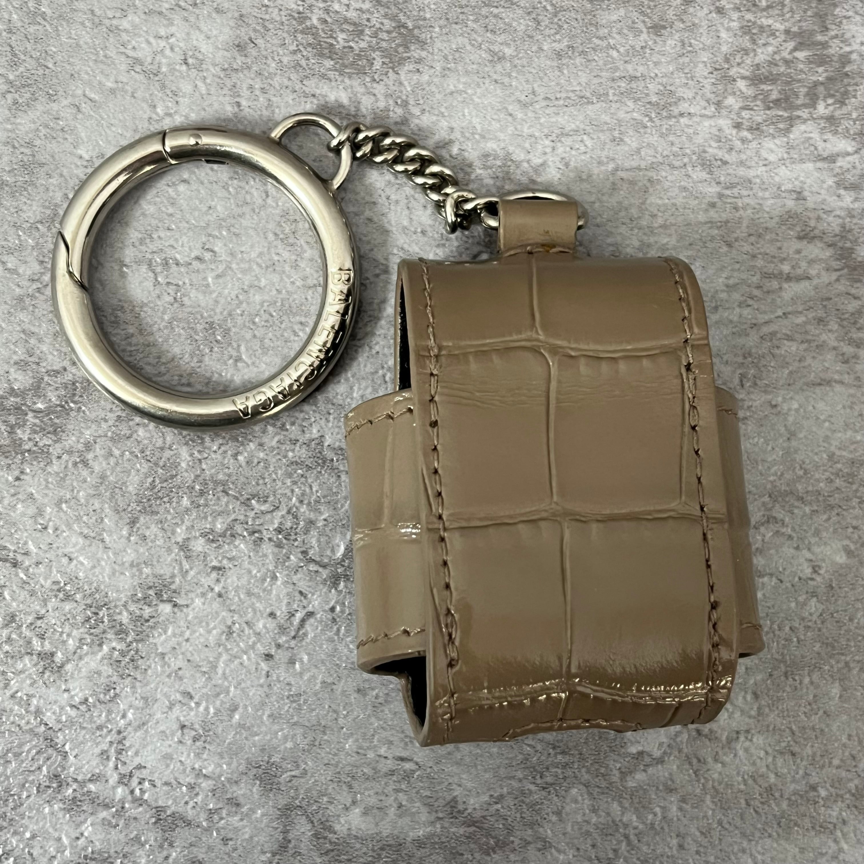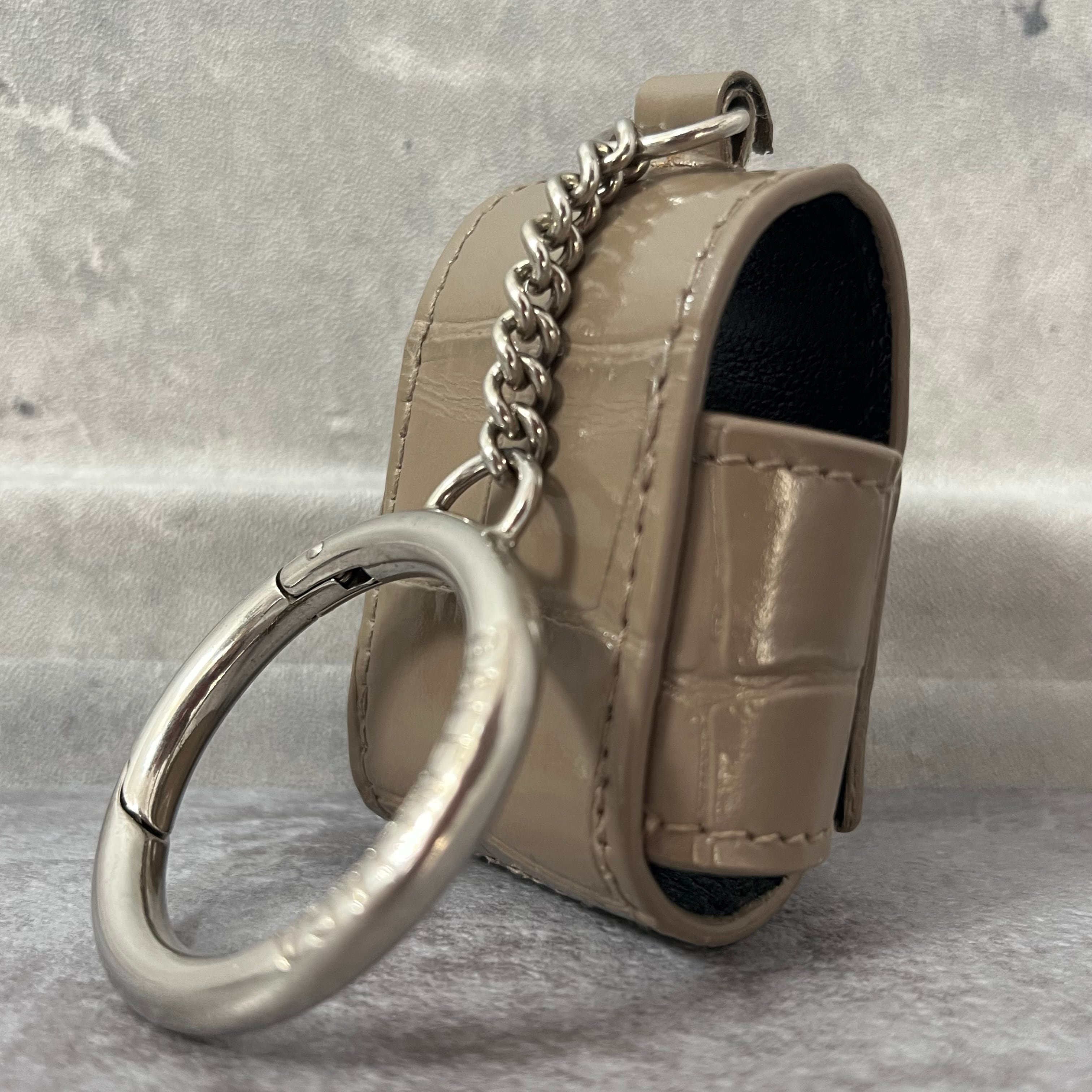 【BALENCIAGA】AirPodsケース グレージュ キーホルダータイプ スナップボタン レザー