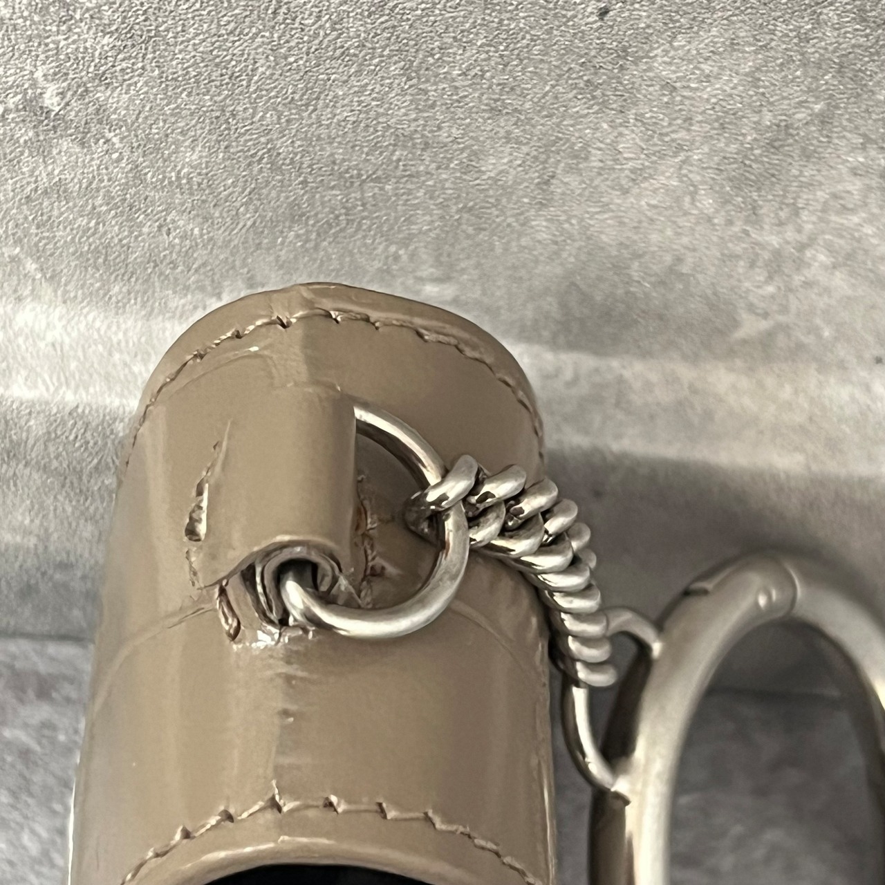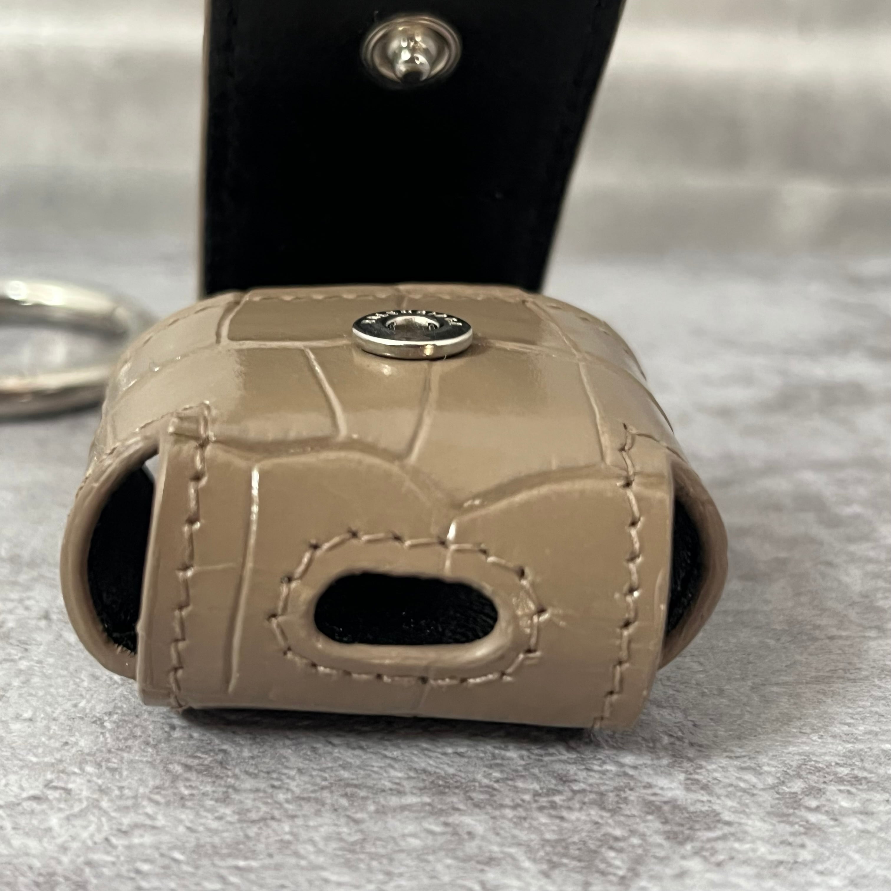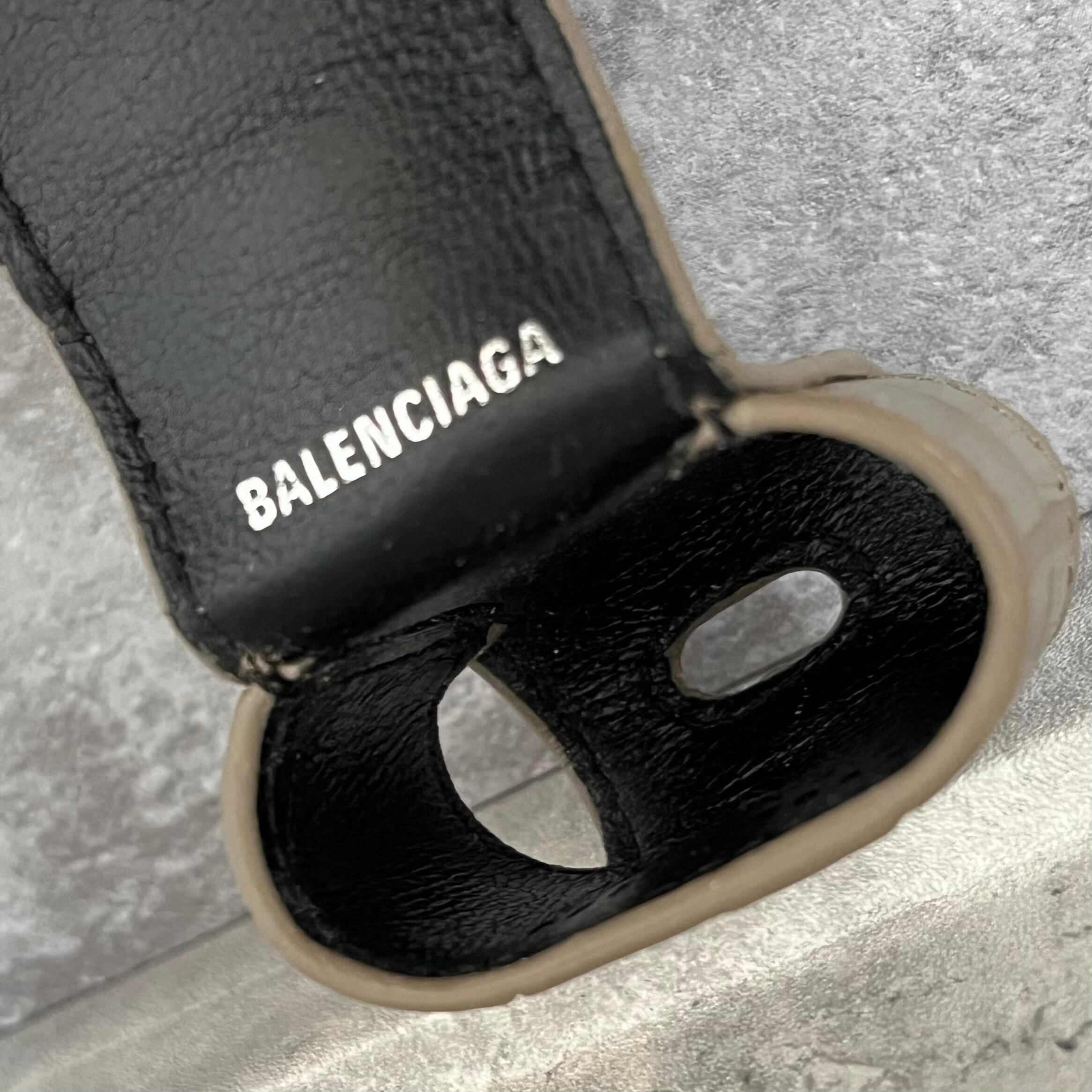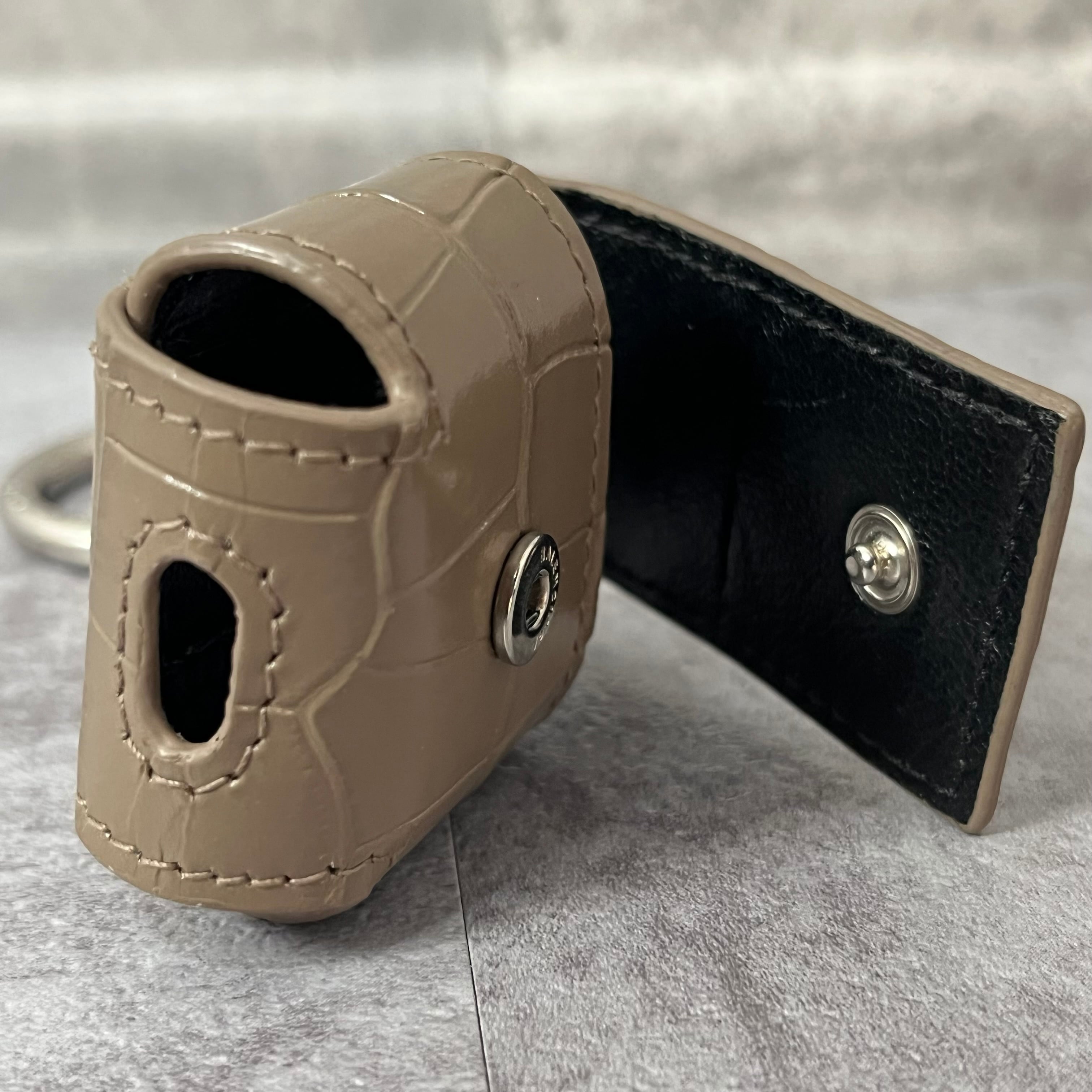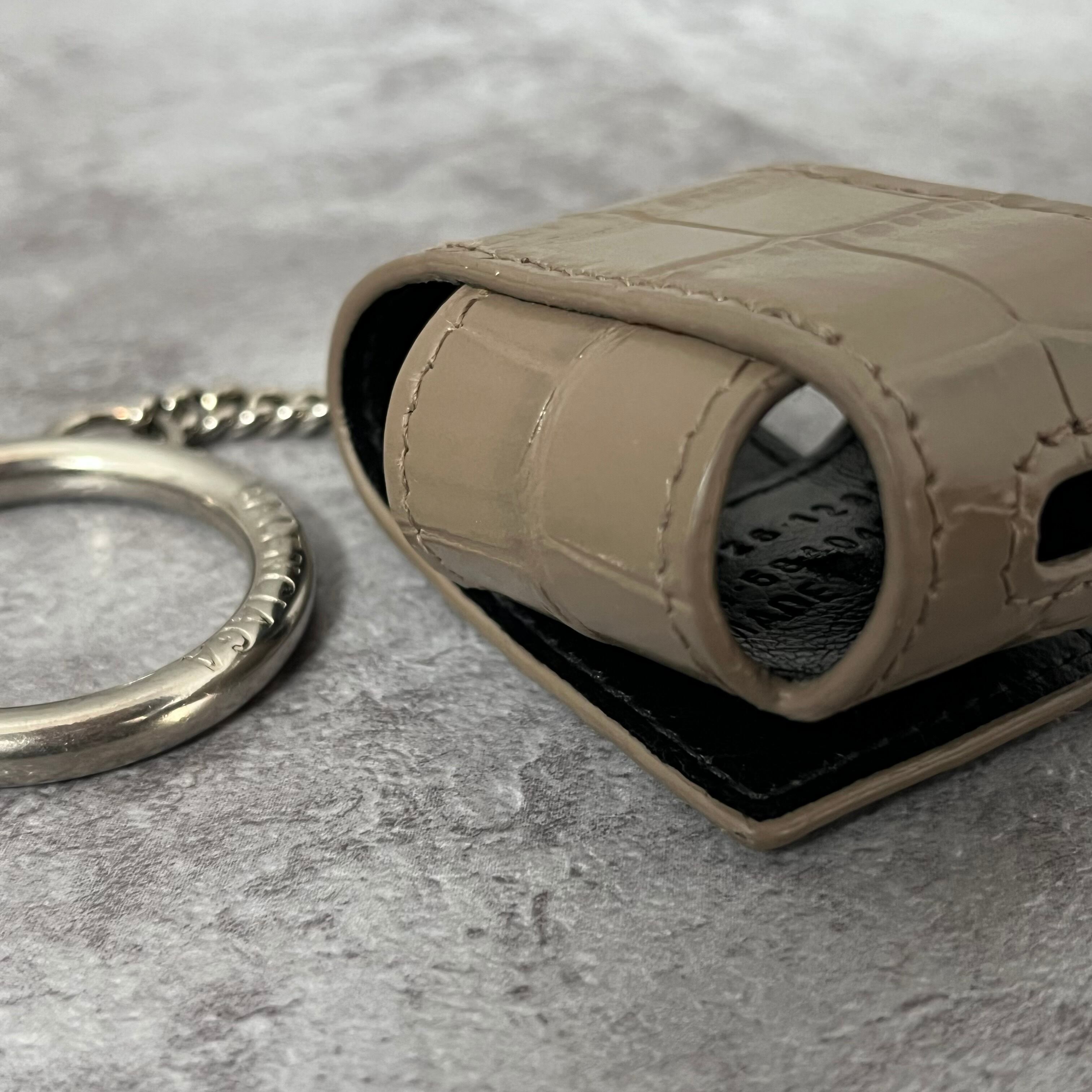 【BALENCIAGA】AirPodsケース グレージュ キーホルダータイプ スナップボタン レザー
