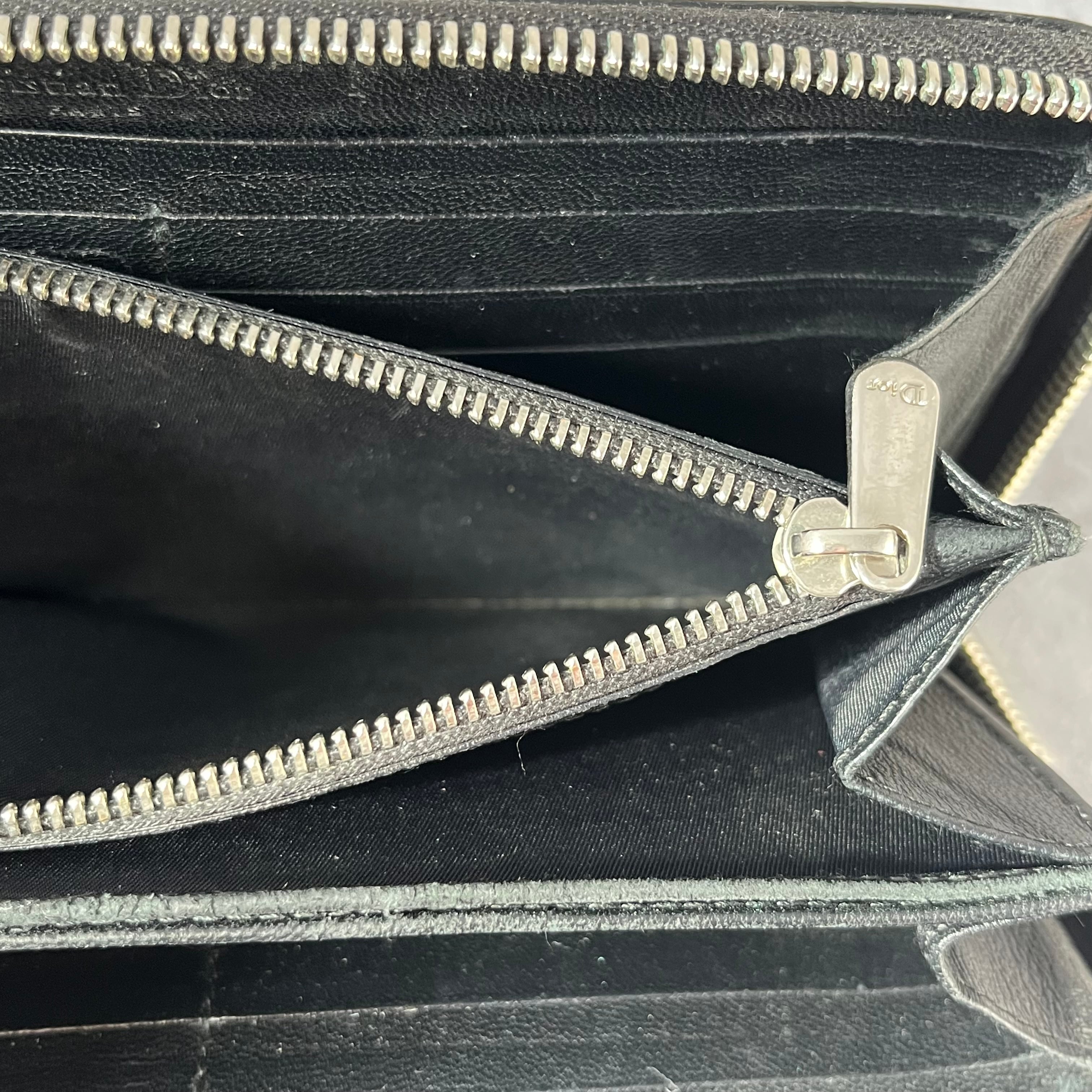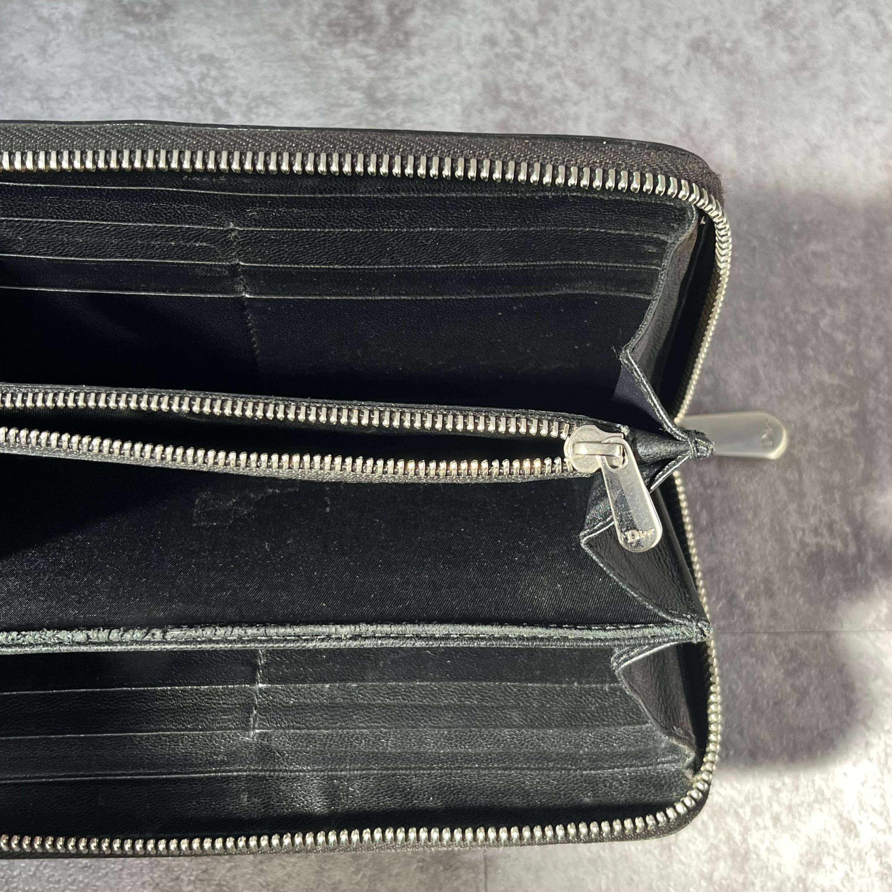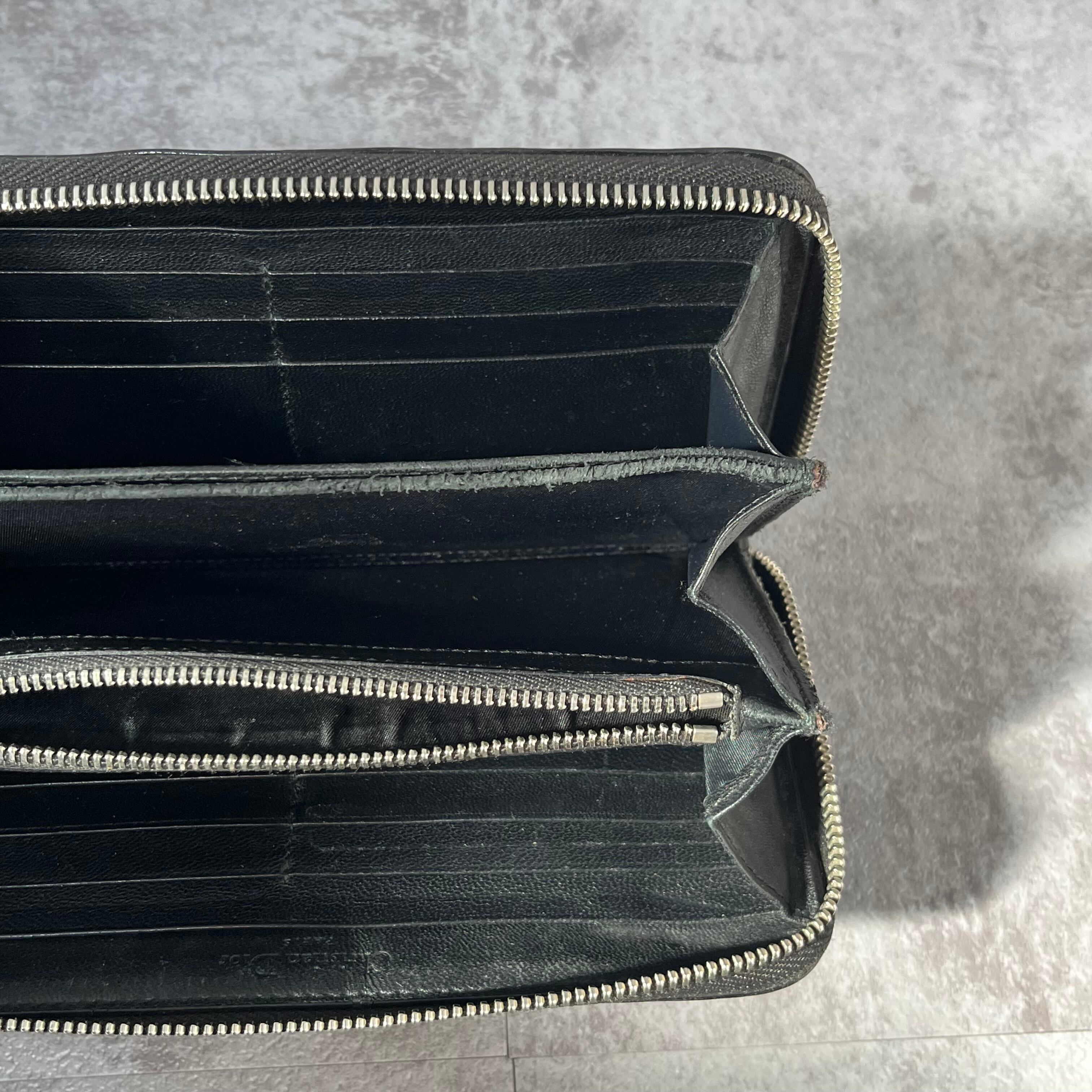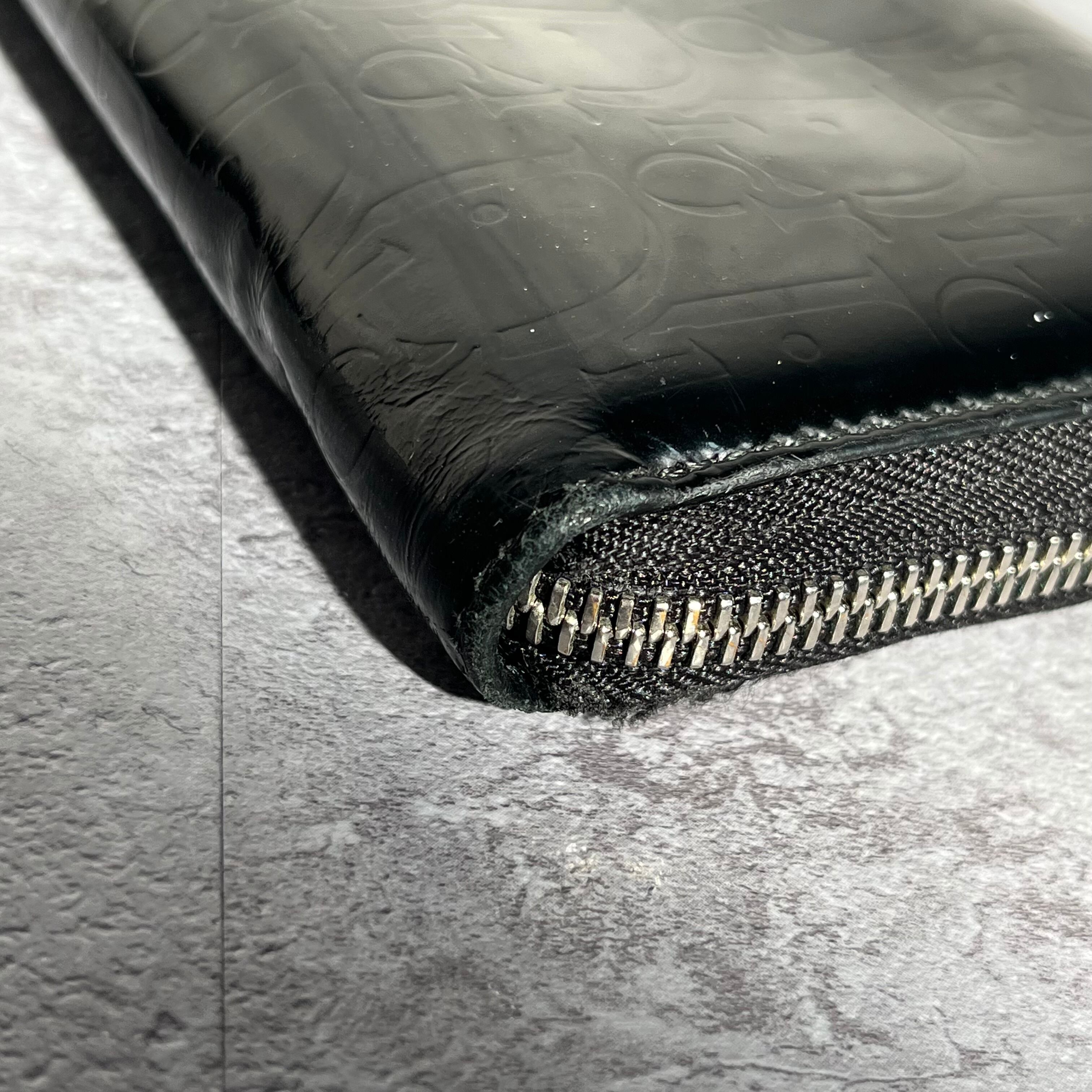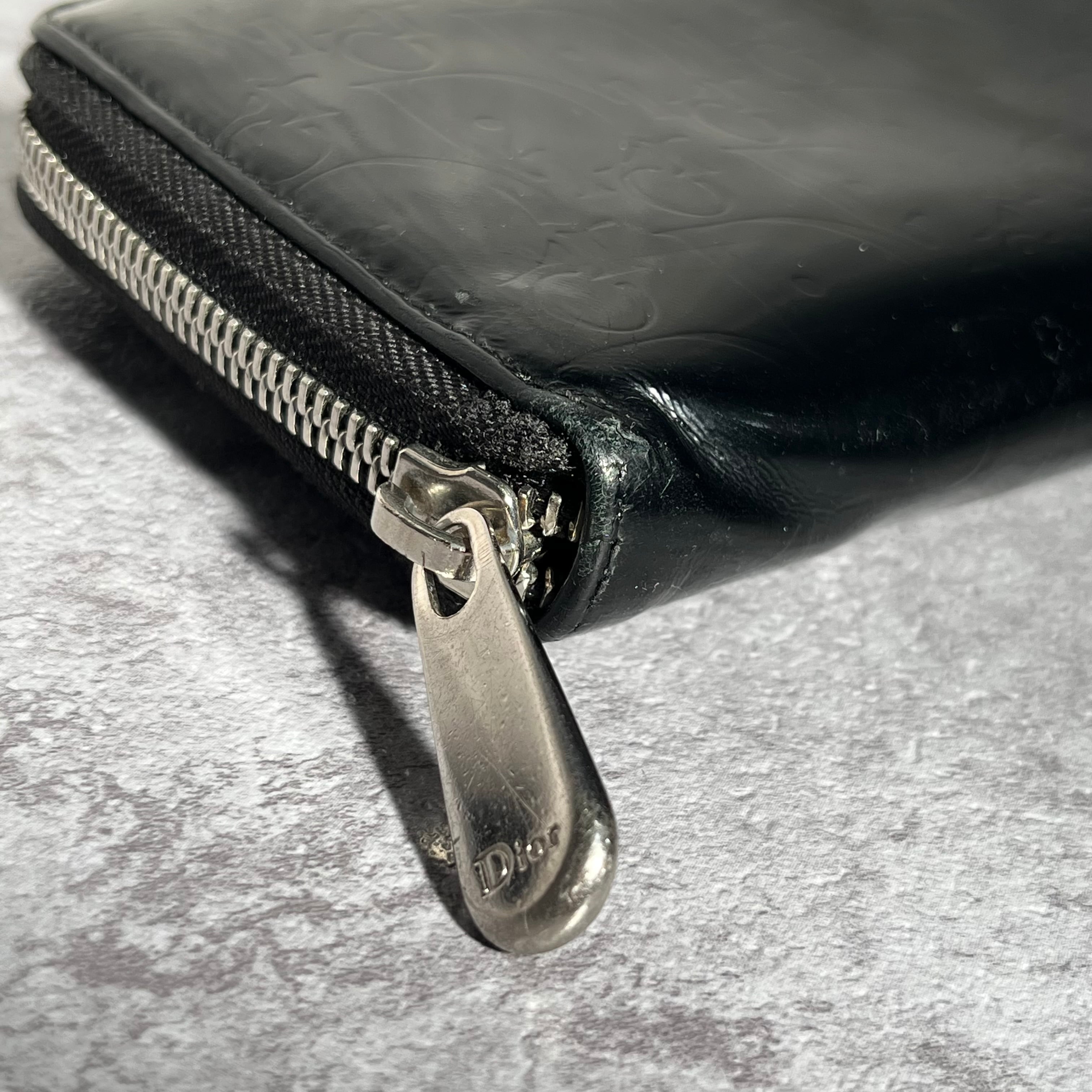【DIOR】長財布 ラウンドジップ ラウンドファスナー エナメル 光沢 ブラック 黒 ディオール 総ロゴ トロッター ロゴ総柄 箱付き 保存袋付き