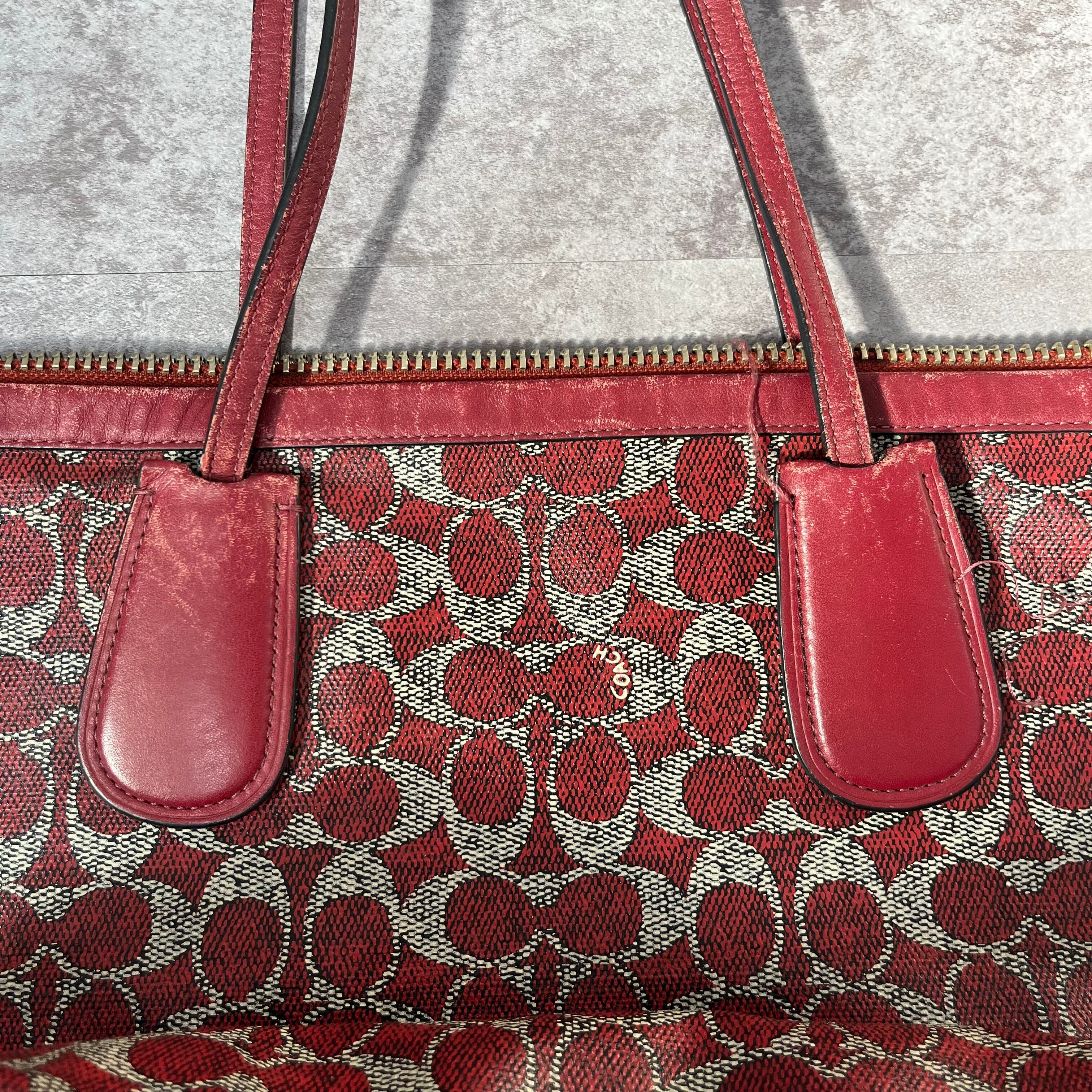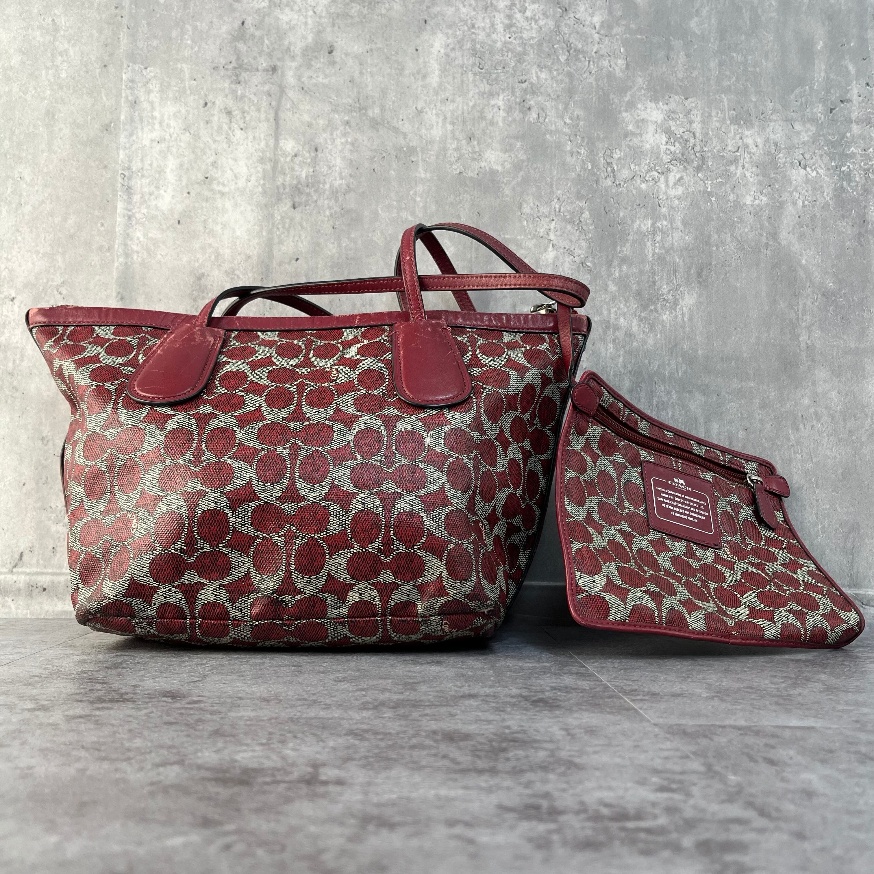 【COACH】コーチ トートバッグ ポーチ付き シグネチャー ピンク A4収納可能