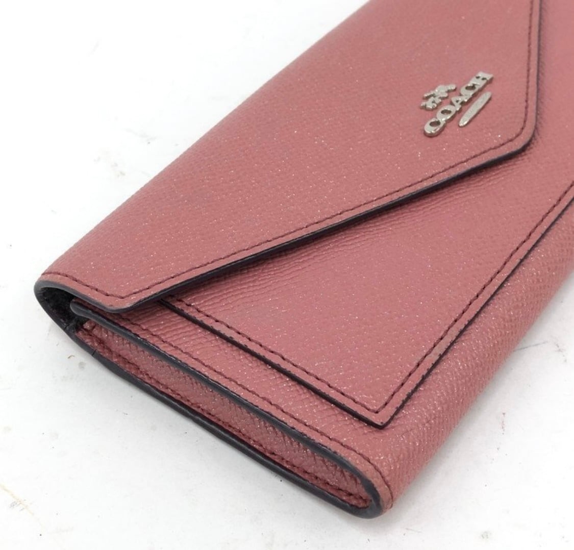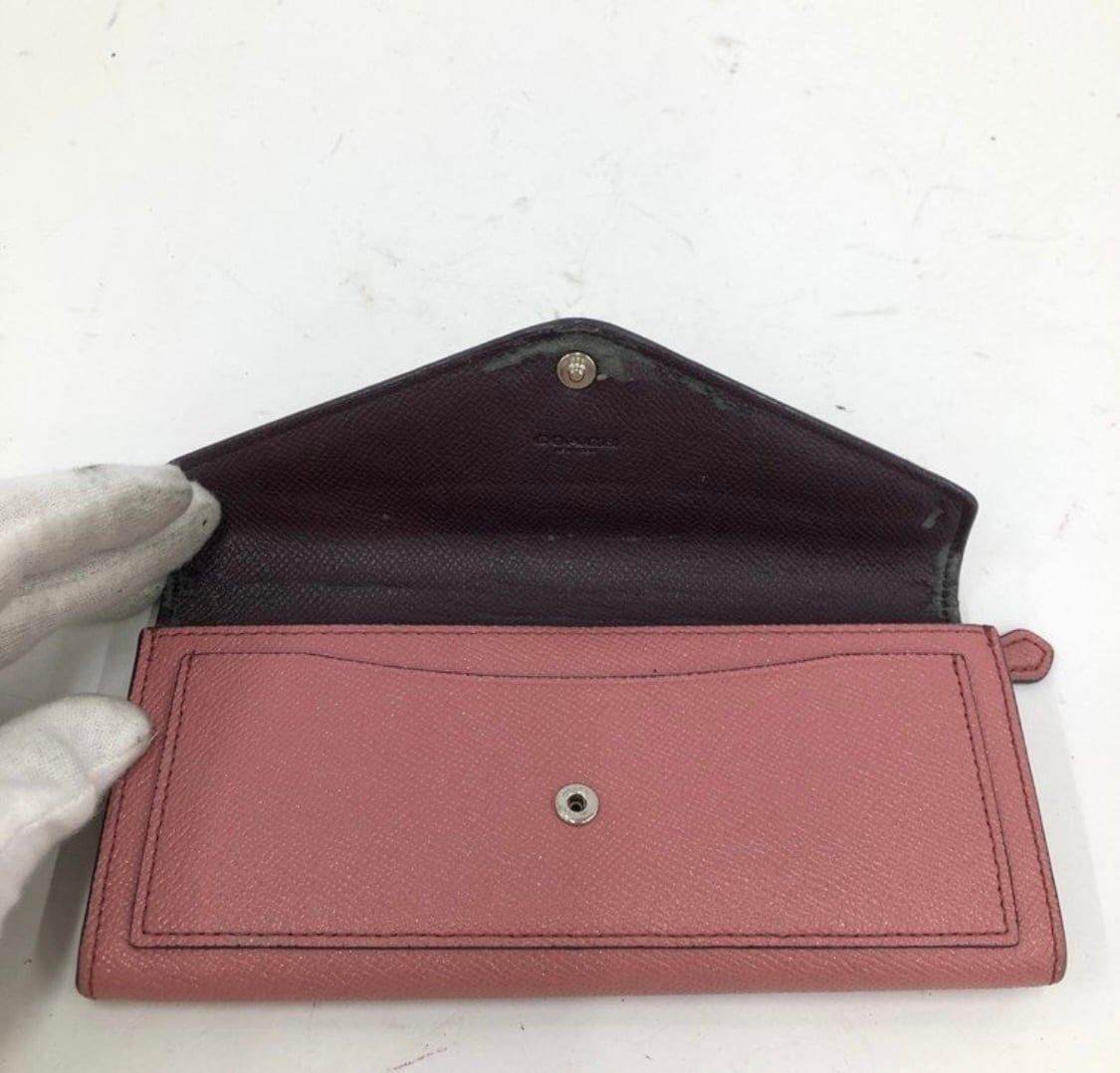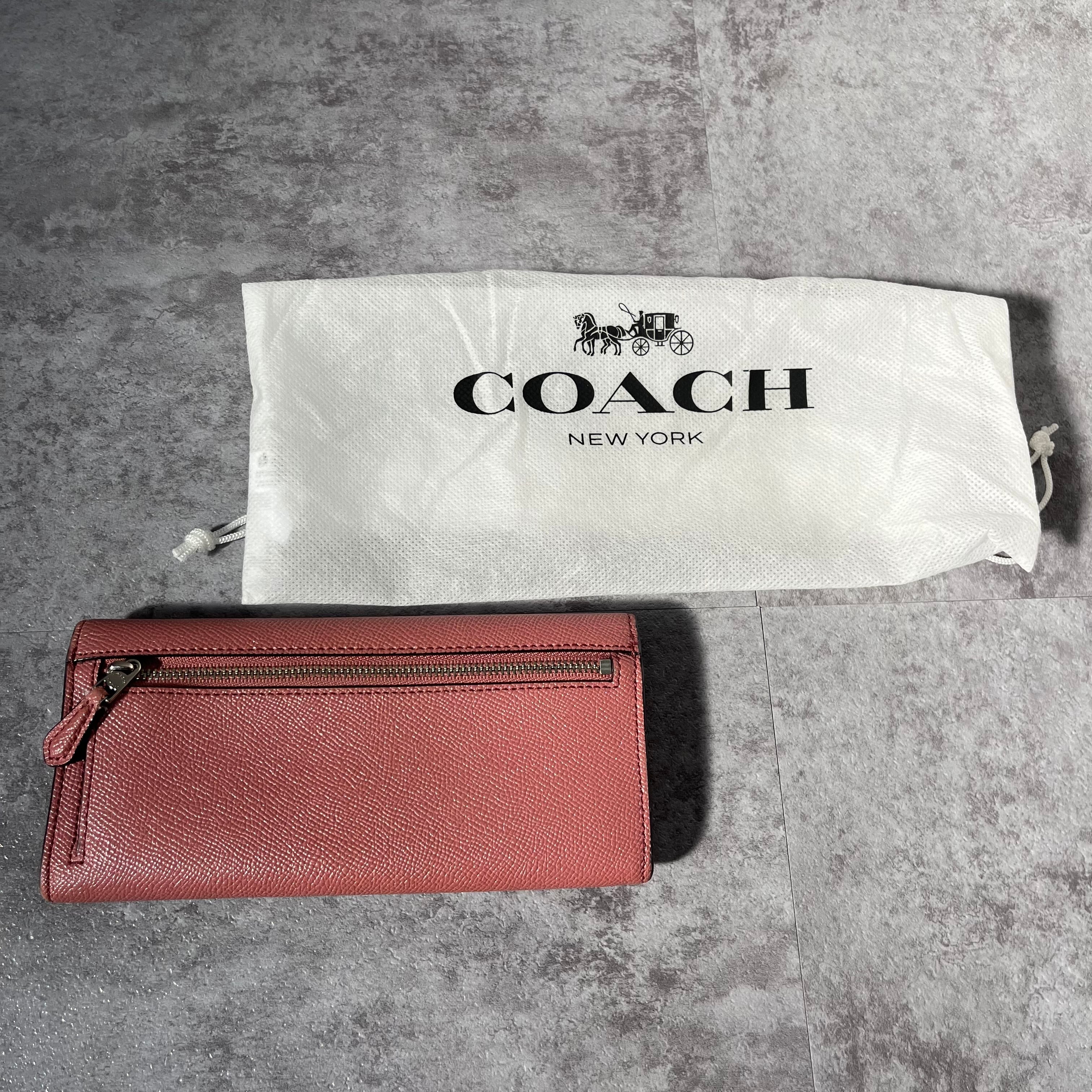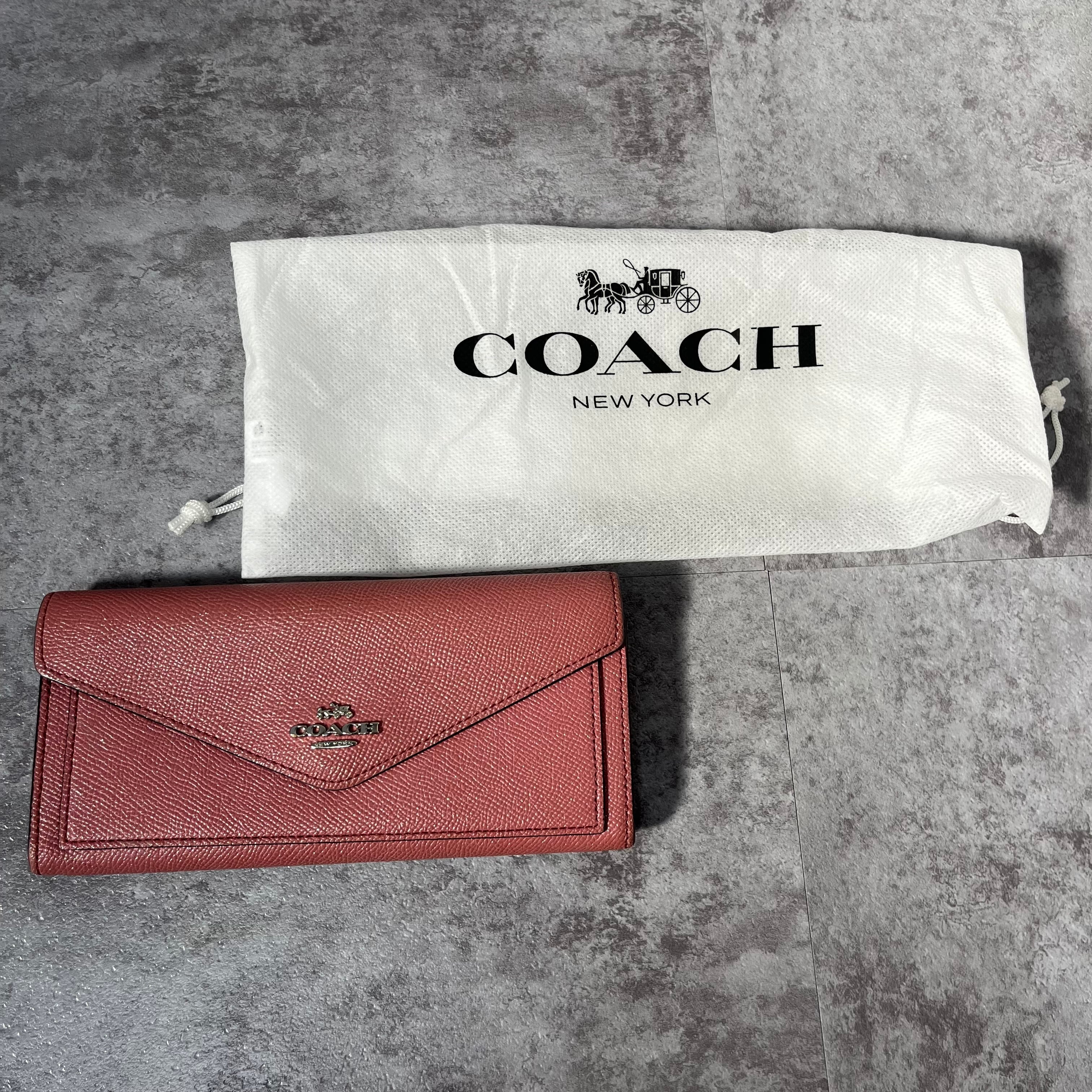 【COACH】コーチ 長財布 フラップ エンベロープ ピンク レザー 保存袋付き