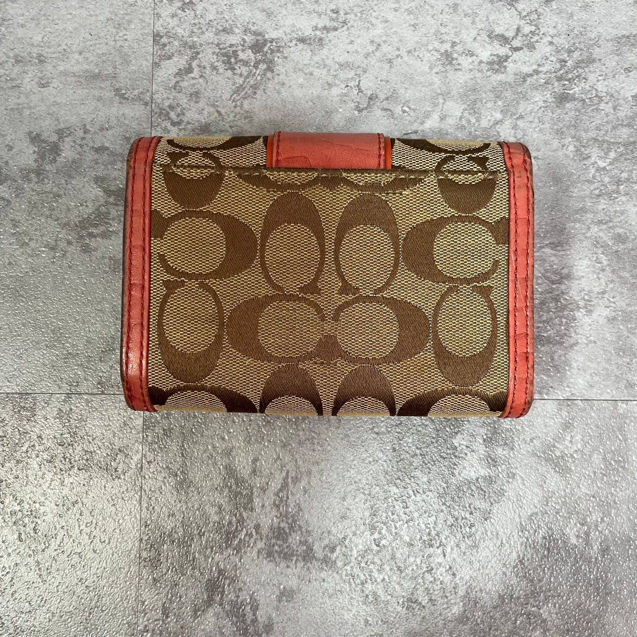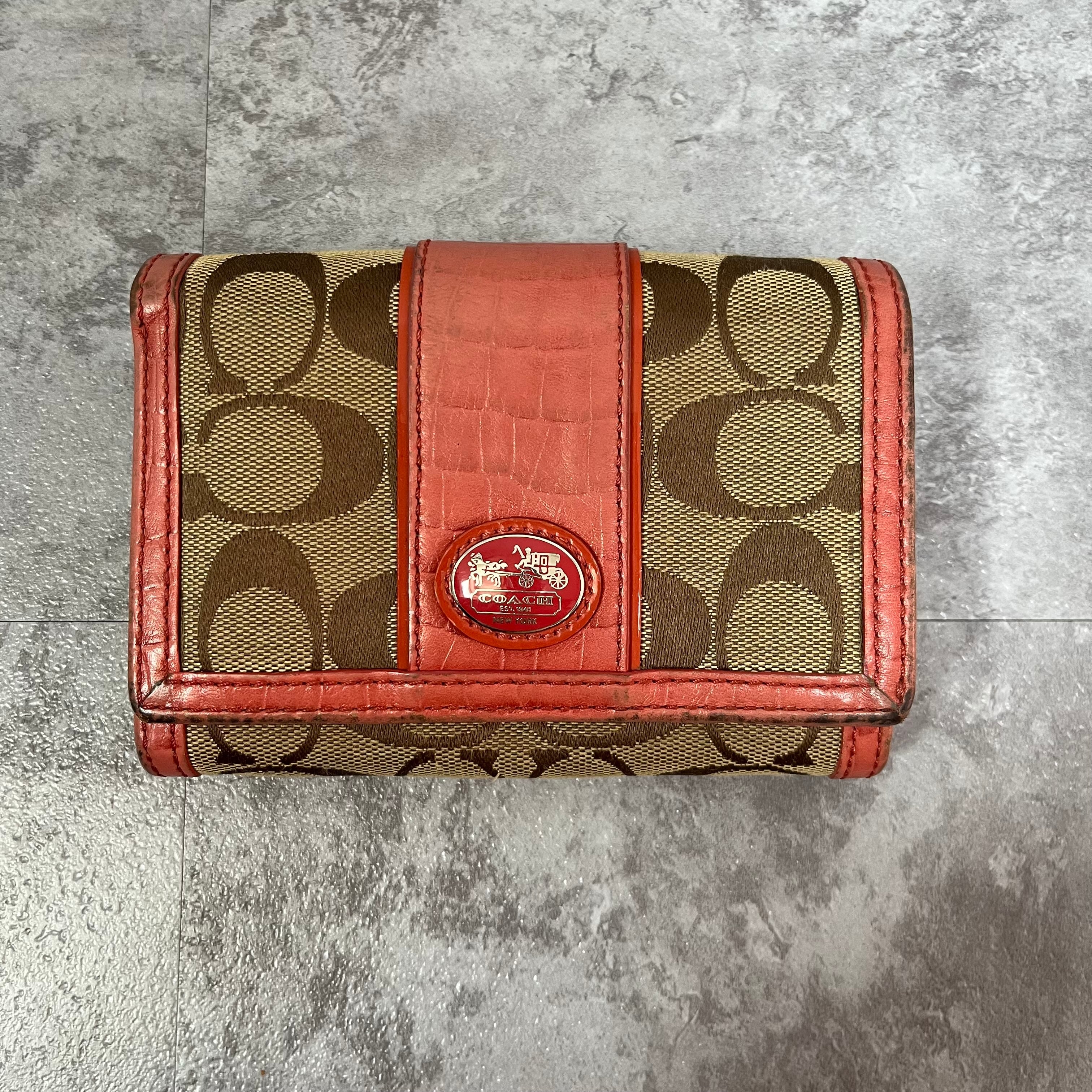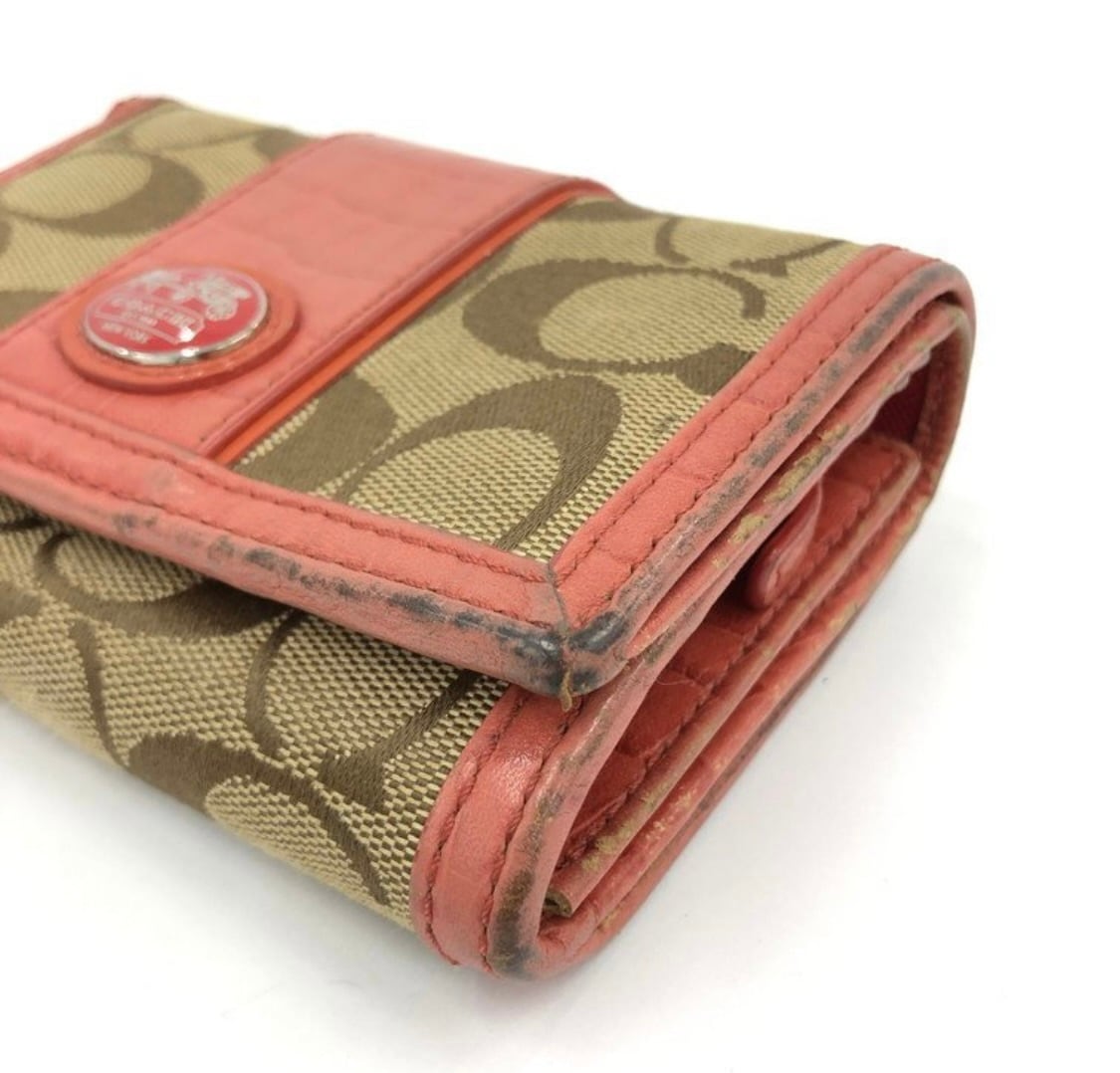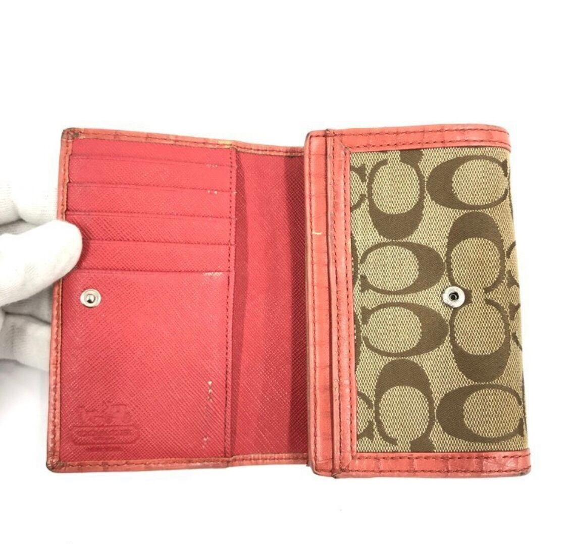 【COACH】コーチ 三つ折り財布 箱付き ピンク ベージュ シグネチャー