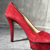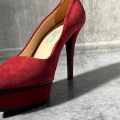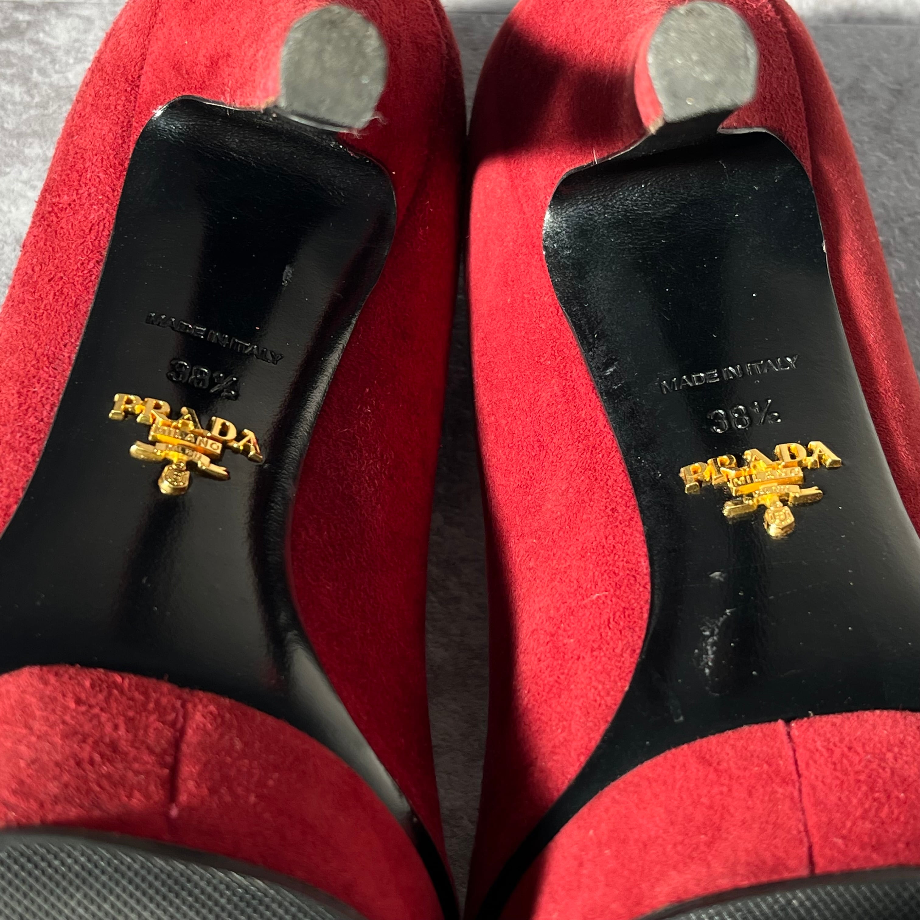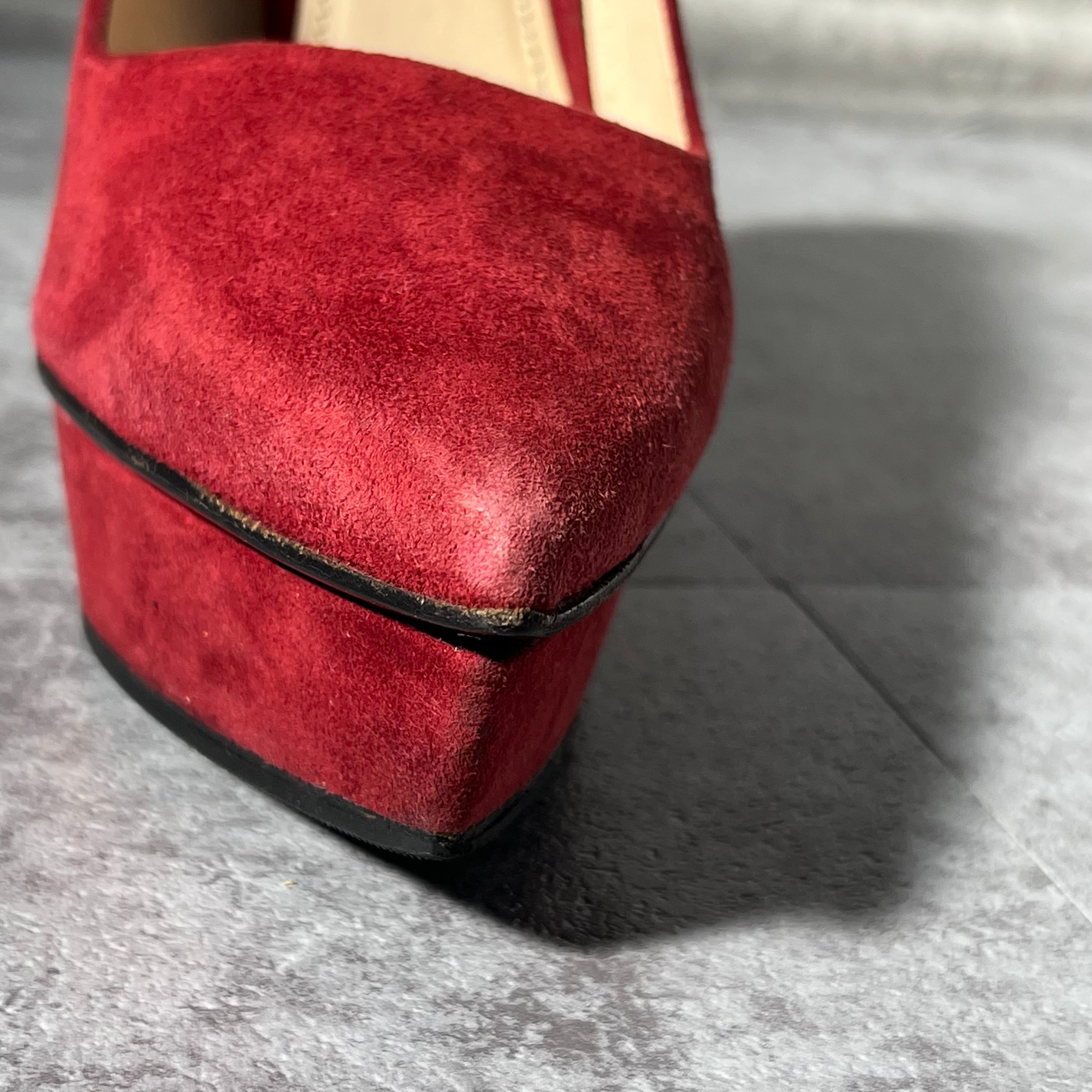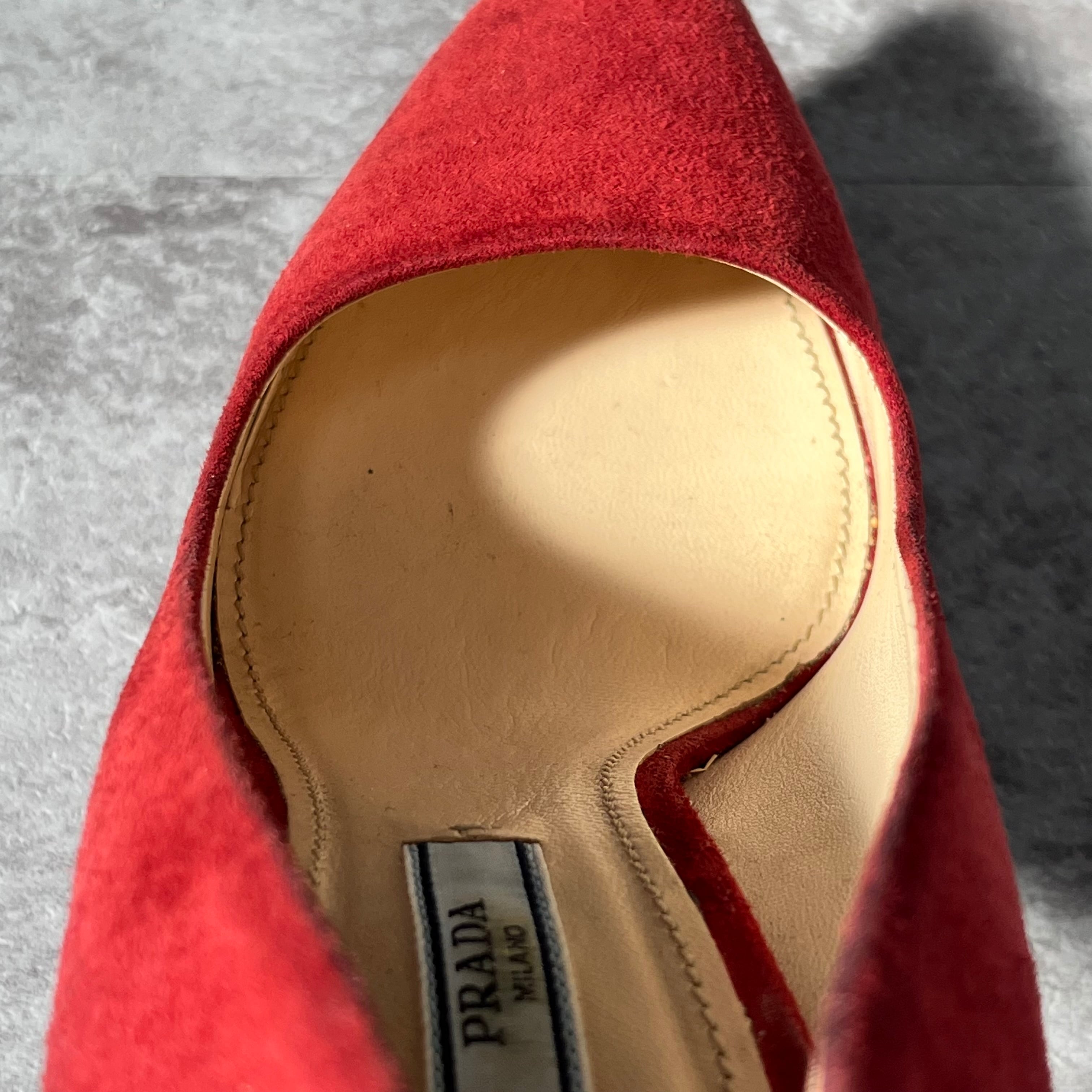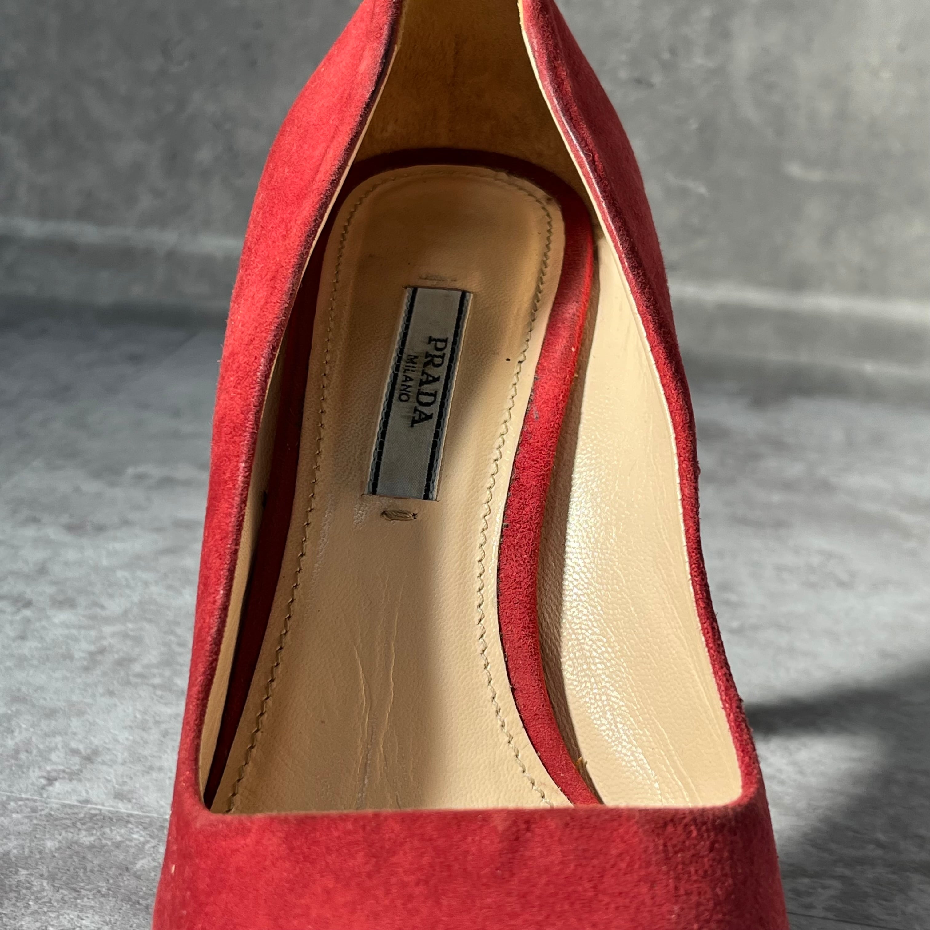 【PRADA】プラダ ハイヒールパンプス レッド スエード 厚底 ピンヒール