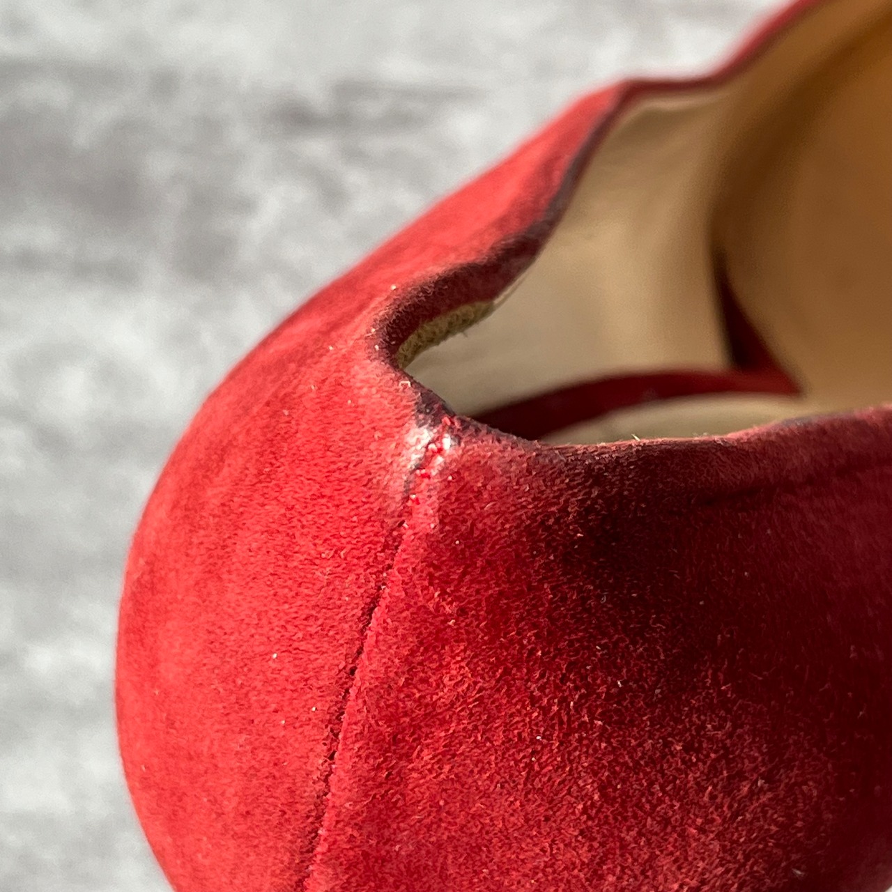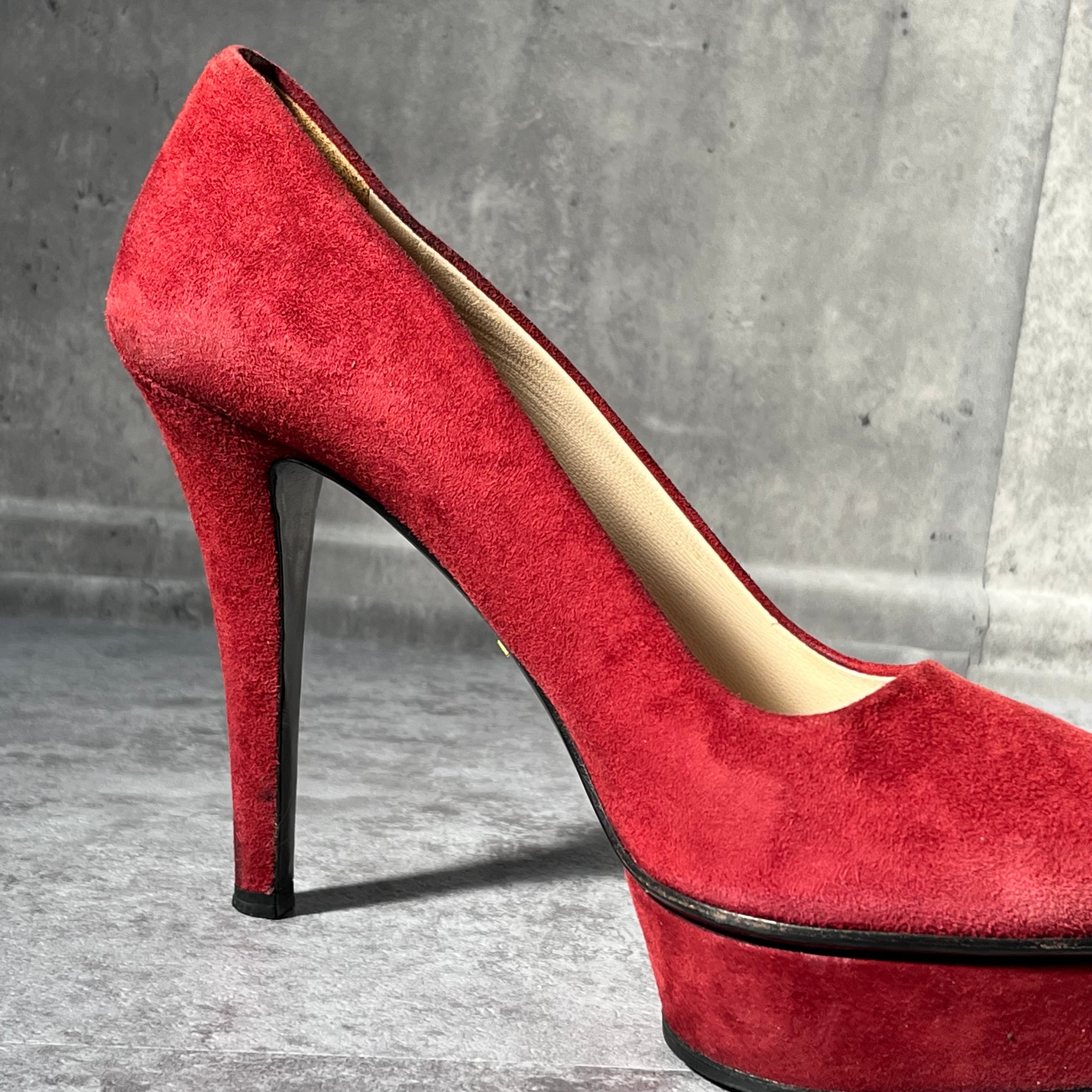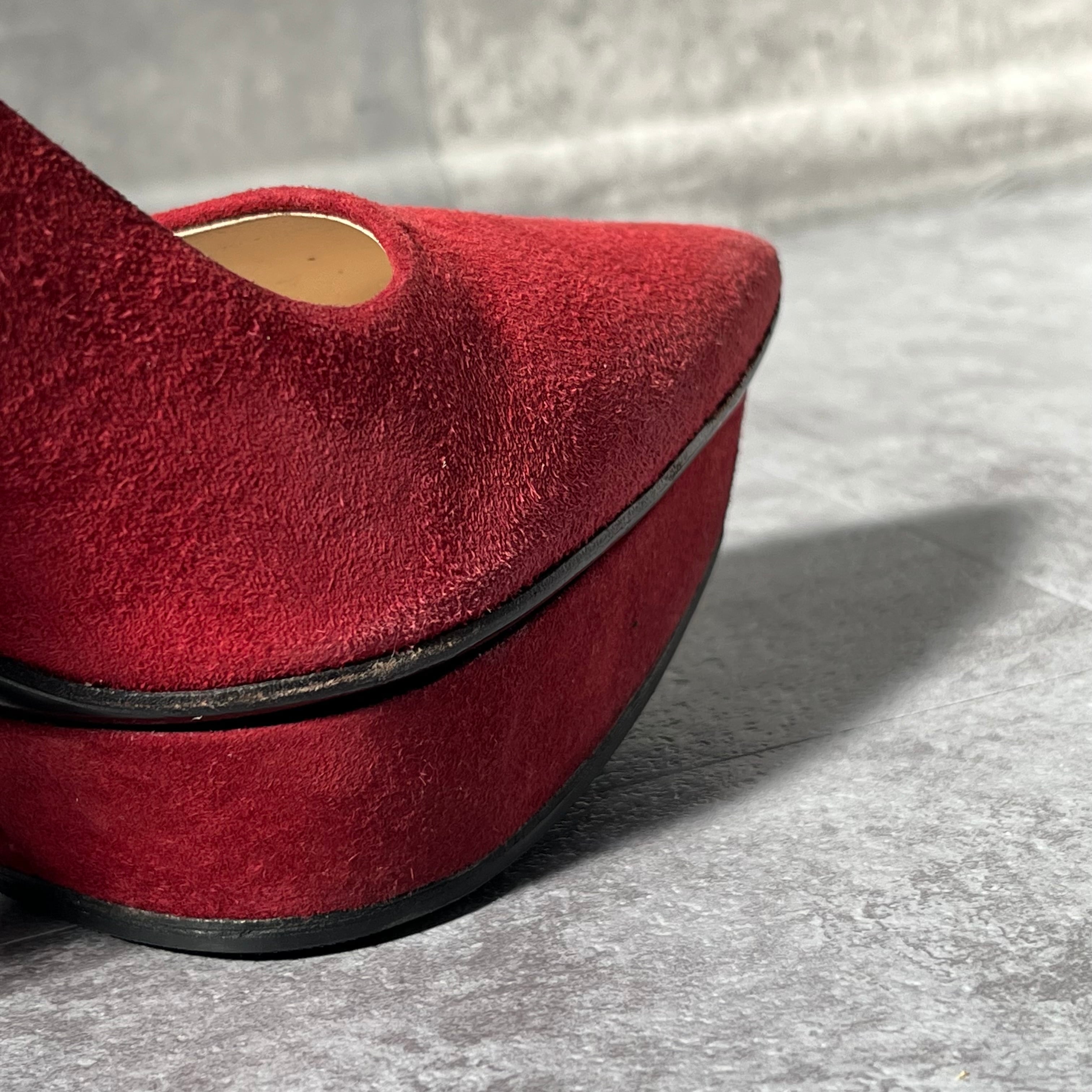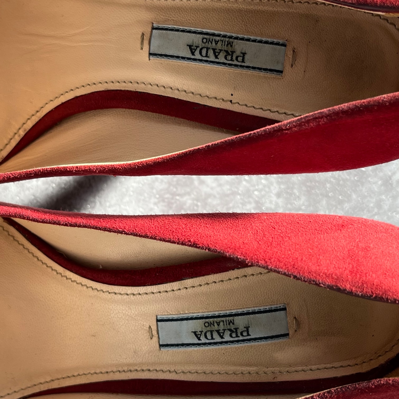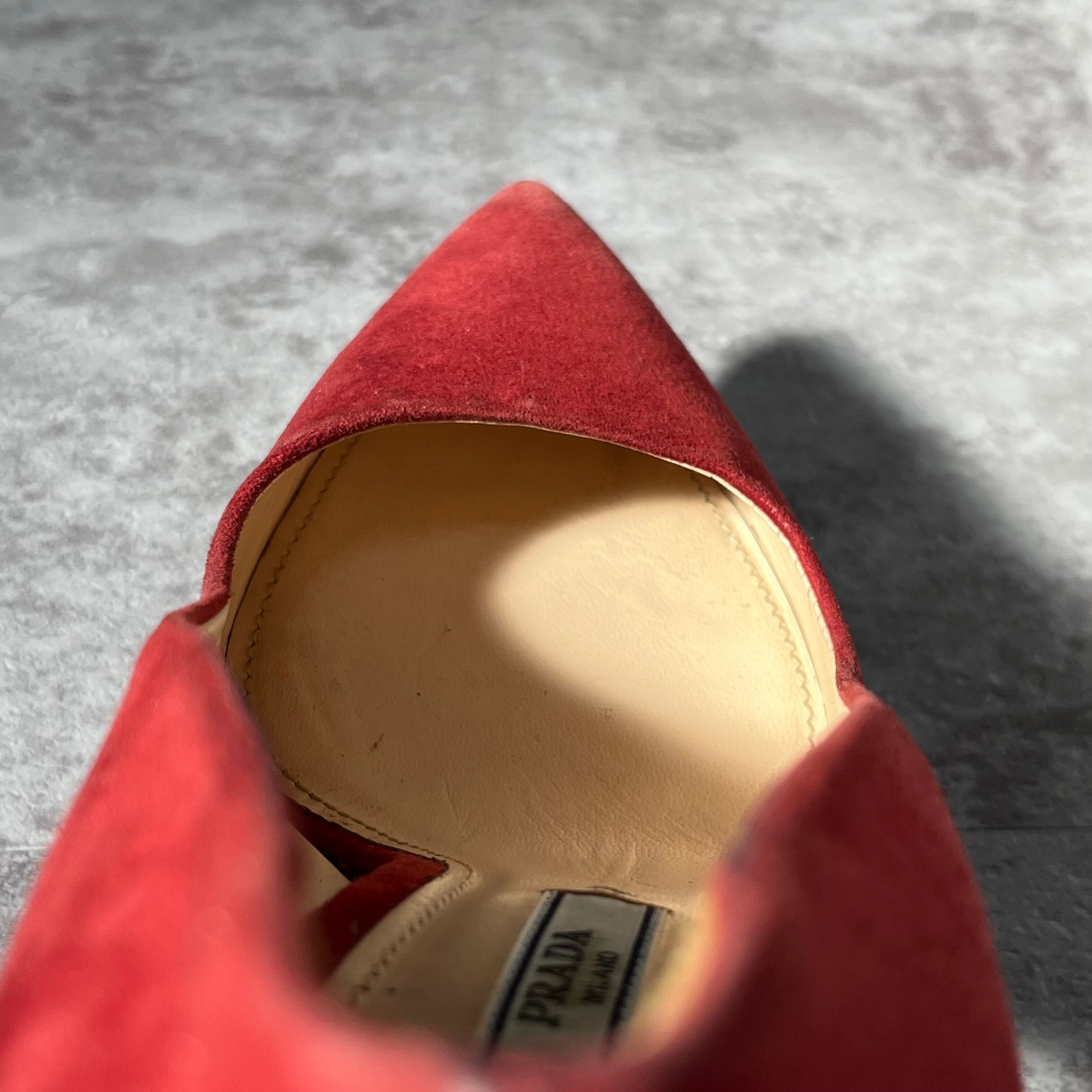 【PRADA】プラダ ハイヒールパンプス レッド スエード 厚底 ピンヒール