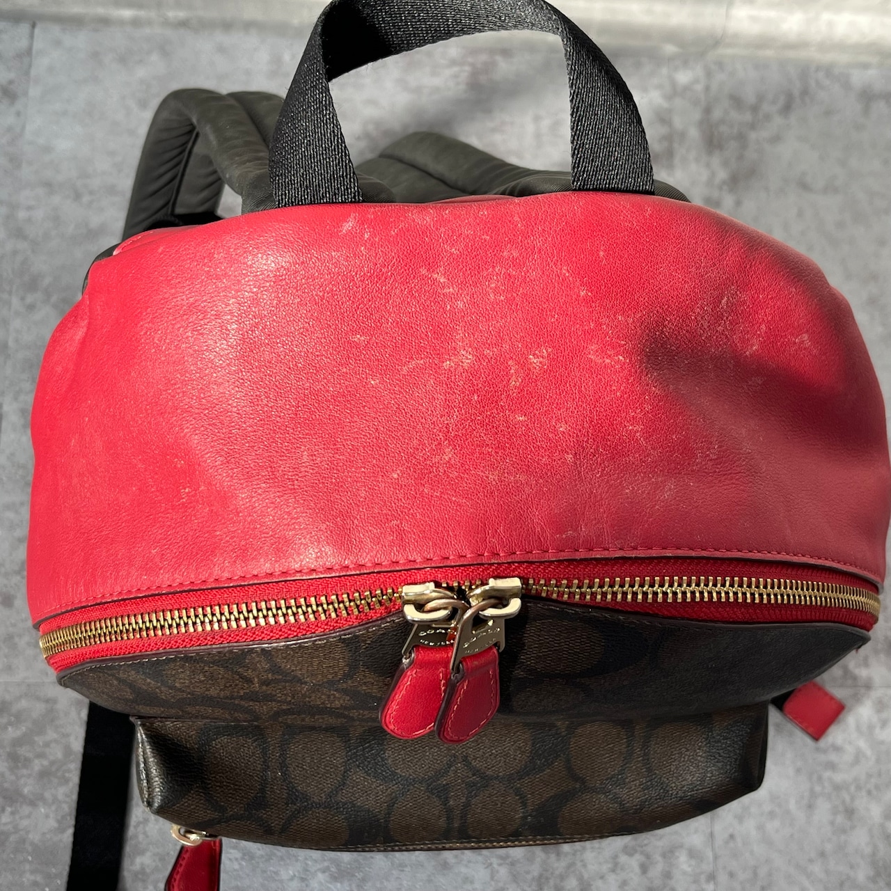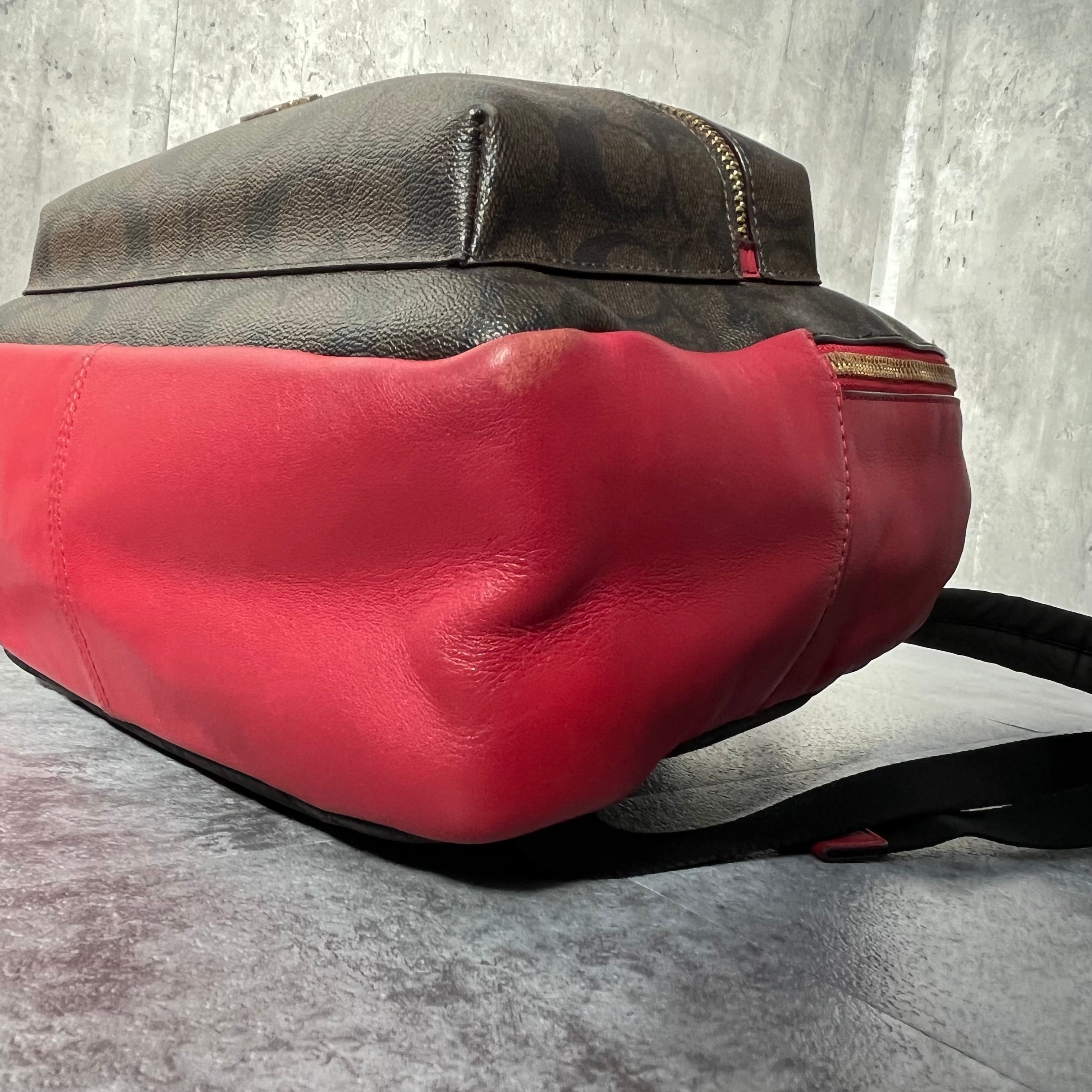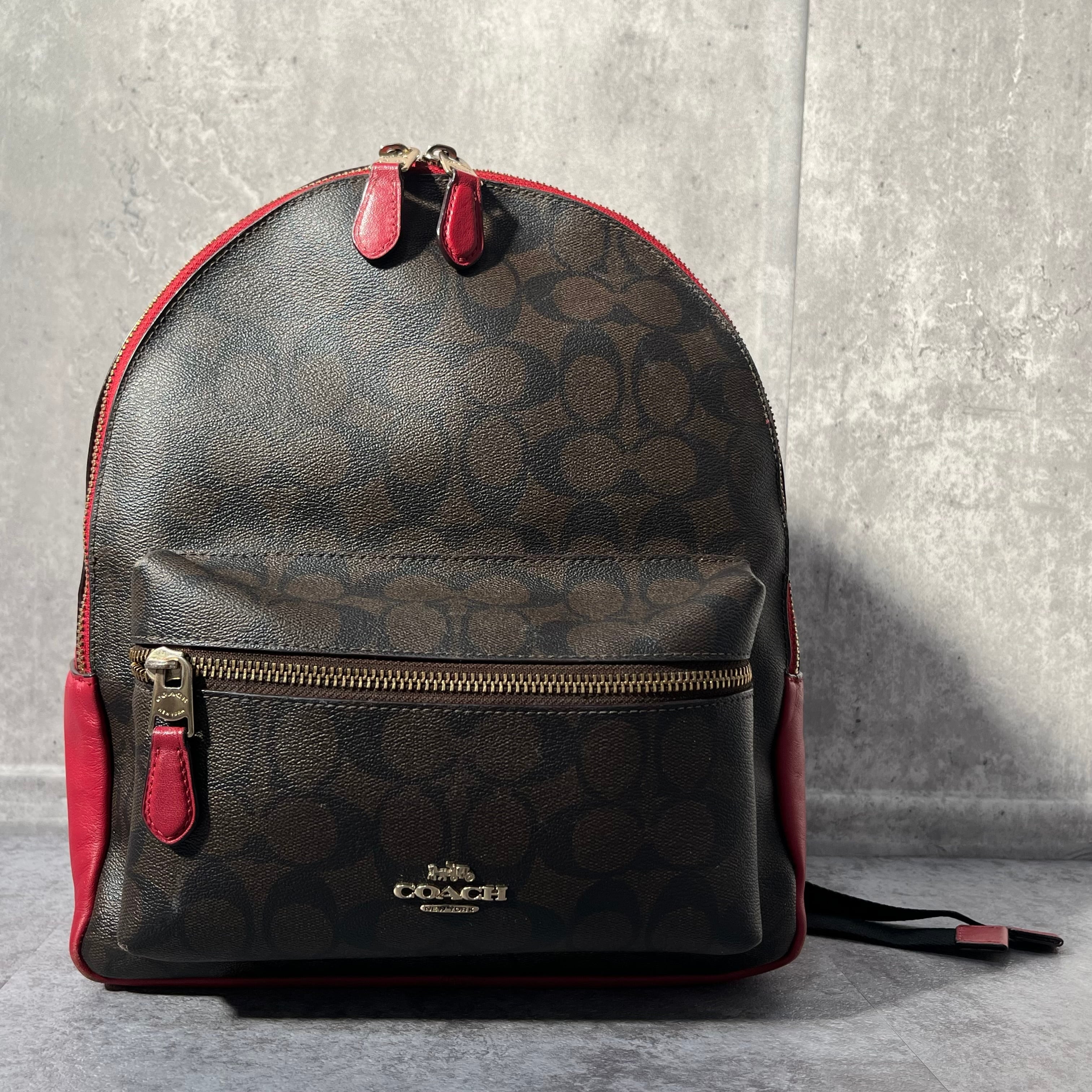 【coach】コーチ リュック バックパック シグネチャー PVC ダークブラウン レッド F32200
